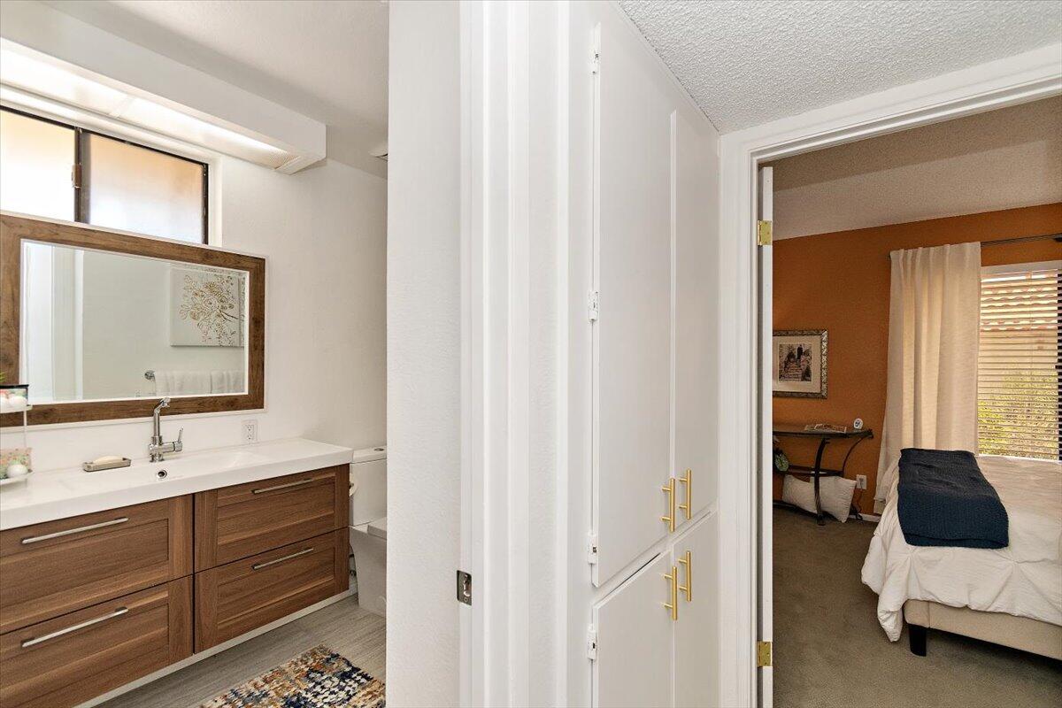 Experience the charm of this updated 2-bedroom, 1.5-bath townhouse/condo in the desirable Little Tuscany neighborhood of Casa de Oro. Surrounded by lush landscaping, this home offers a laid-back California lifestyle just minutes from Palm Springs' dining, entertainment, and nightlife. Inside, you'll find 24x12 porcelain tile flooring throughout the main level, a sleek white kitchen with Quartz countertops, stainless steel appliances, and a stylish tile backsplash. The home also includes a convenient laundry room and an updated 3/4 bathroom. Upstairs, two spacious bedrooms with plush carpeting offer mountain views and plenty of storage. The remodeled full bathroom features a vanity area in the primary bedroom. Step outside to a private brick-tiled patio with peek-a-boo mountain views, perfect for relaxing or entertaining. The detached one-car garage provides extra storage and parking. Casa de Oro amenities include 2 pools, 2 spas, a clubhouse, tennis courts, and a pickleball court. Just minutes from Uptown and Downtown Palm Springs, with shops, restaurants, and nightlife nearby. Short-term rentals are allowed with a 30-day minimum stay, and large dogs are welcome. Seller is motivated!Interested in this Listing?