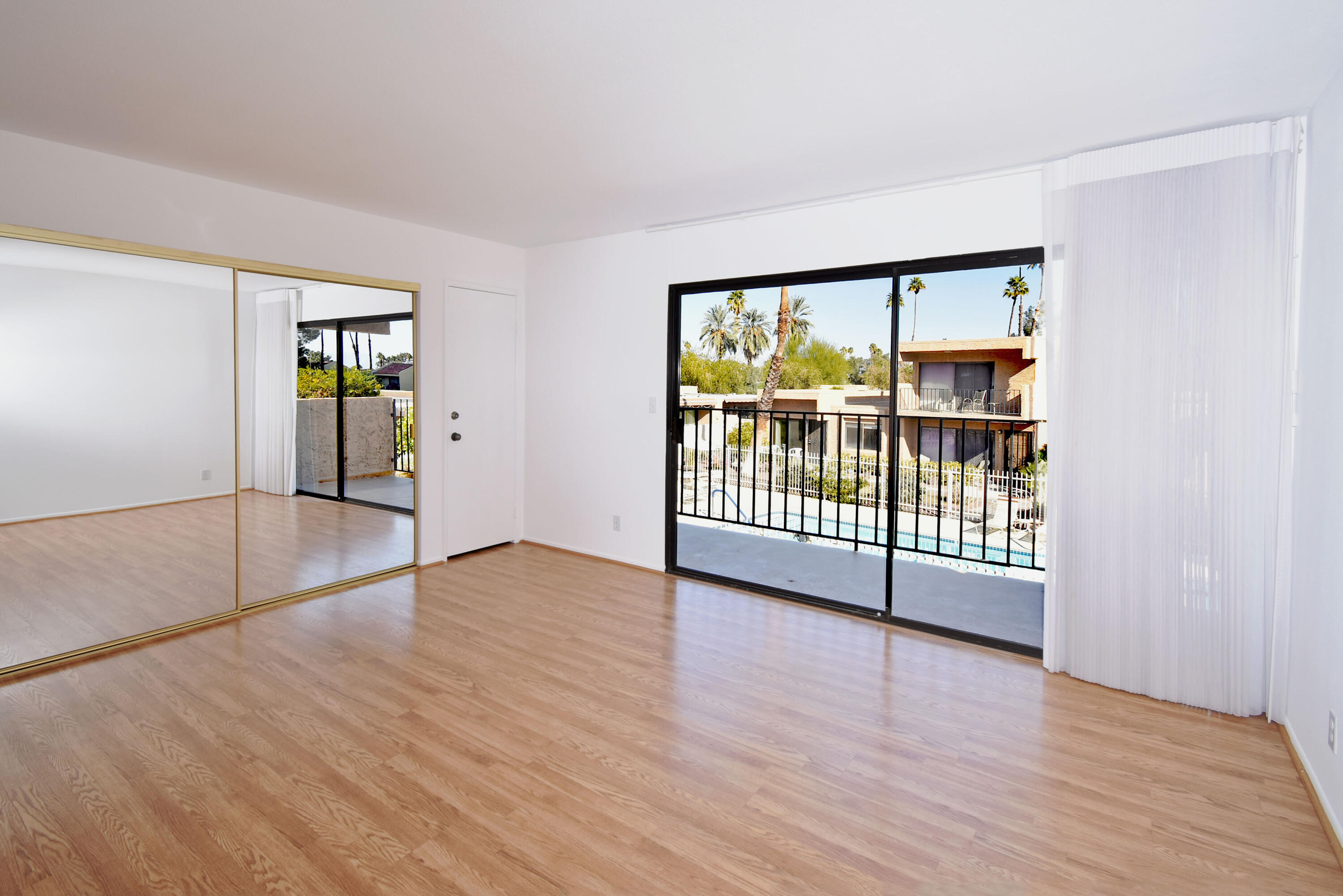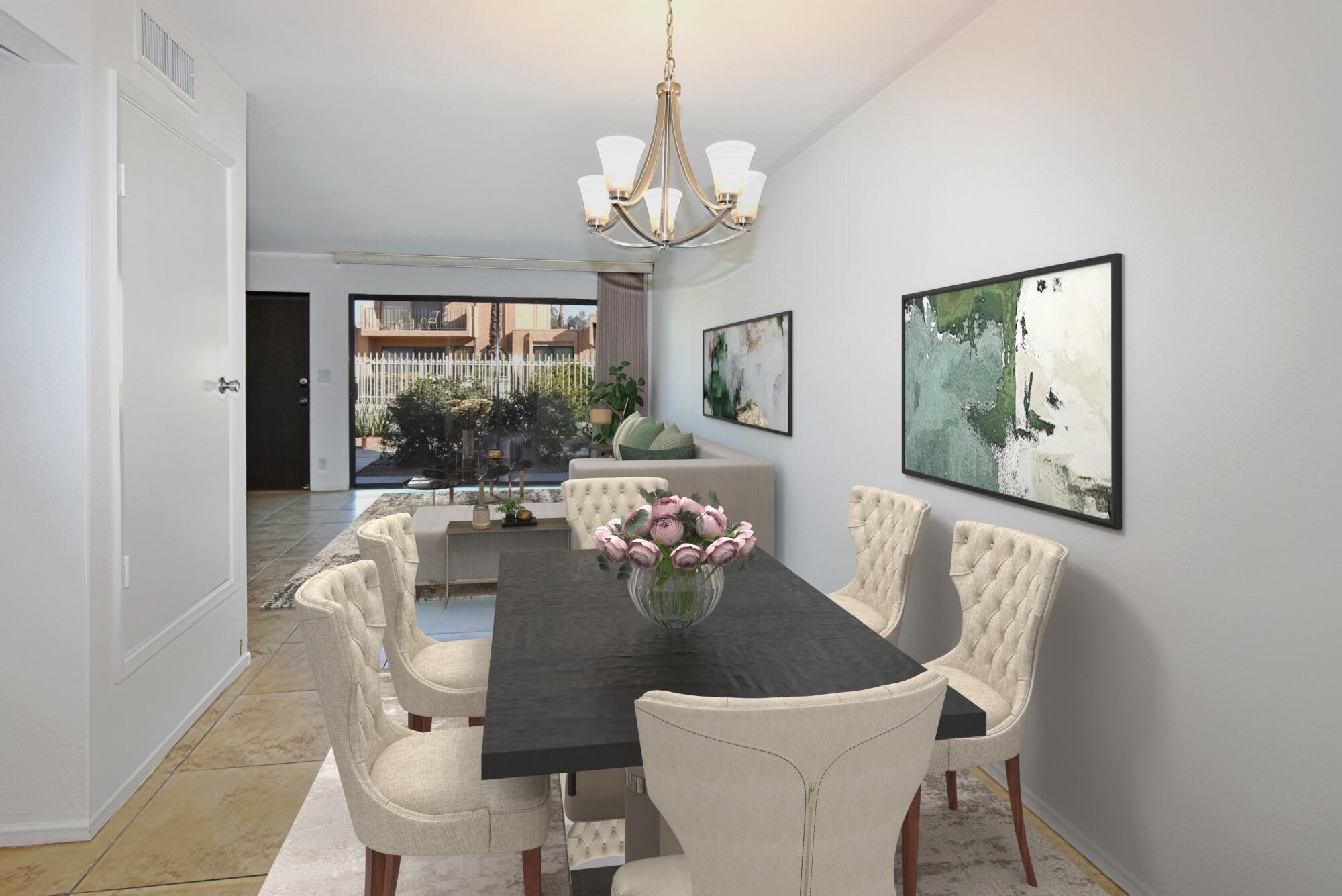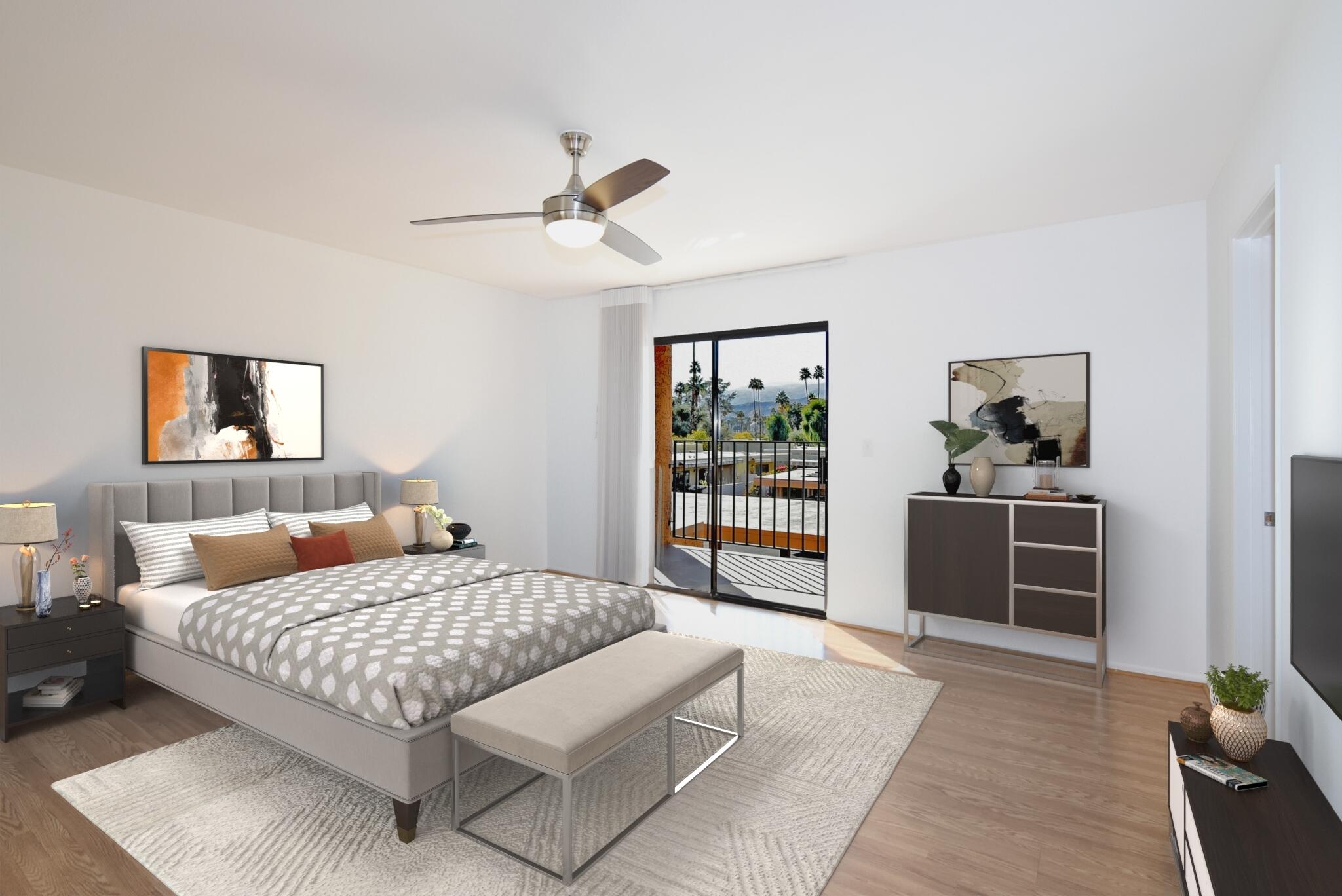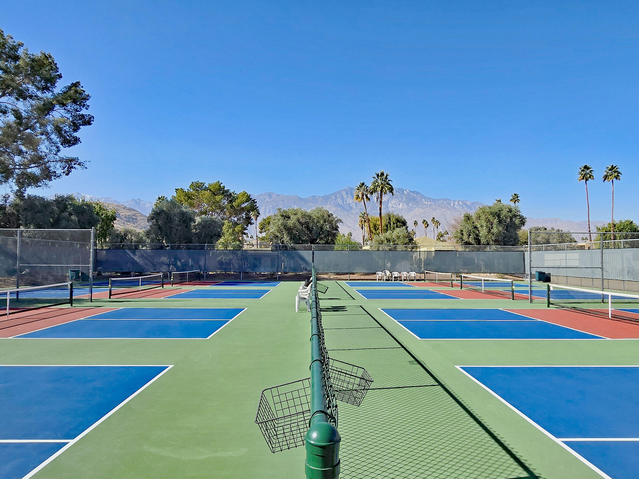 Just Reduced - new price and priced to sell! IMMACULATE and MOVE IN READY - A place to call home - or - a great investment for seasonal or a full-time rental. The TRIFECTA - Mountain, Pool & nearby Golf Course views, all just steps away! Gorgeous and updated condo on FEE land (you own it) in the popular South Palm Springs - away from the wind and close to downtown. Newer updates include A/C in 2024, new paint and garbage disposal in 2025. The updated kitchen has granite counters. Allergy sufferers love NO CARPET with tile downstairs, wood laminate on the stairs and upstairs. This home also has a private rear patio with adjoining assigned carport parking. The upstairs bedrooms are HUGE, each with their own balcony and jaw-dropping views! The downstairs bedroom is being used a den (still has a closet, but interior doors removed) with a slider to the private back patio. Step out front and enjoy the pool just a few feet away. The HOA has 11 community pools, 8 newer pickleball courts, 2 lighted tennis courts, 2 hot tubs, a workout room and a meeting room all with the ease of a 14-day minimum rental policy. Dues include water, trash, exterior maintenance and roof coverage - and new for 2025 - the HOA has earthquake insurance. The community is conveniently located, just a short drive to downtown Palm Springs, the airport, lots of shopping or a quick hop to El Paseo in Palm Desert. Shopping, bike trails, walking and hiking - all nearby - the fun starts here, come tour this home today!Interested in this Listing?