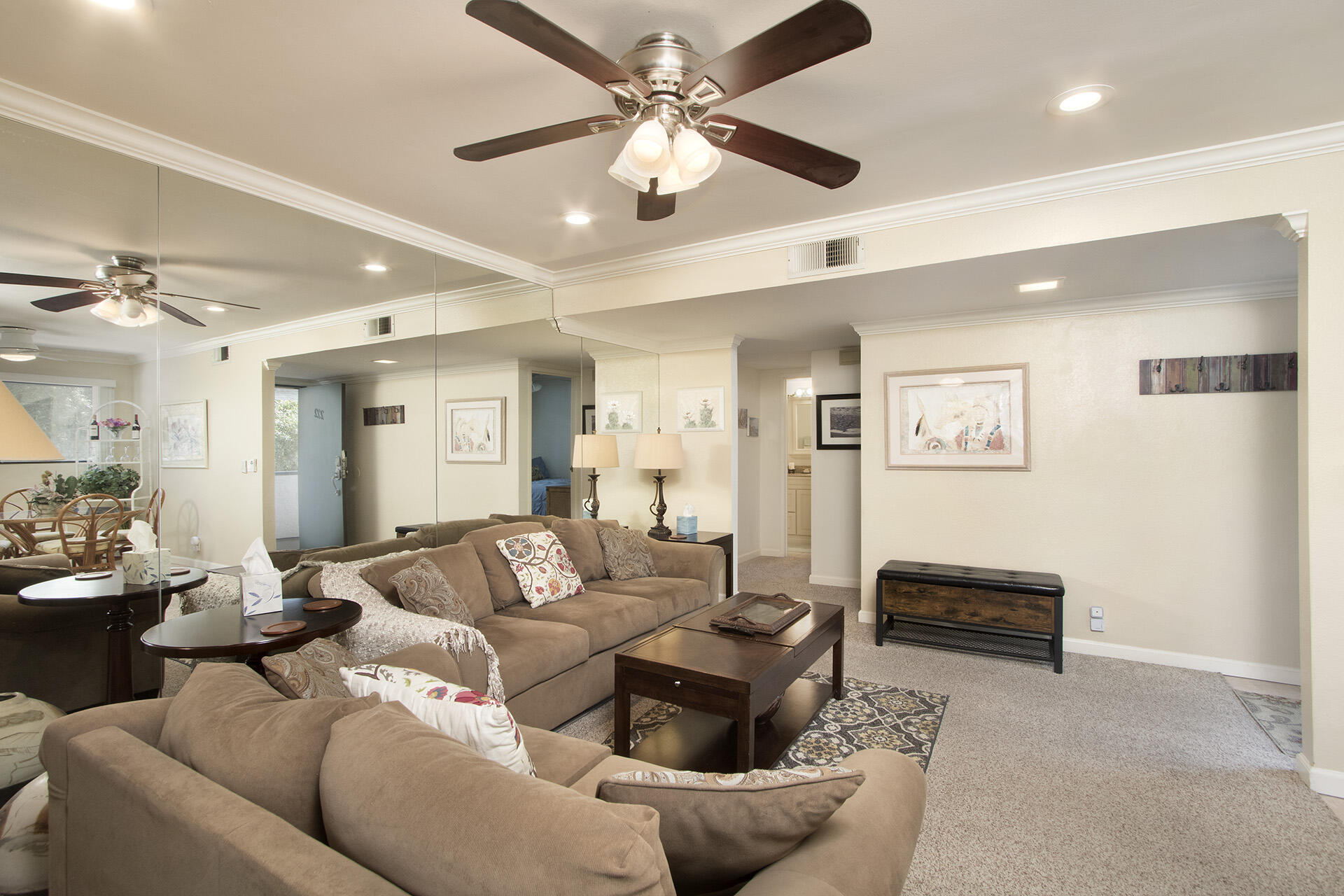 Located in the desirable Palm Canyon Villas in beautiful South Palm Springs, this 2 Bedroom 2 Bath Condo offers everything that is wonderful about Palm Springs.This FEE LAND, TOP FLOOR unit has many updates and improvements, and is offered FULLY FURNISHED and TURNKEY! Ready for your desert getaway!Beautiful kitchen and bathroom updates are light and bright. Second bedroom is a good size and has 2 beds for your guests. There is a wonderful sunlit patio complete with gas BBQ. Open the patio doors to your own washer and dryer.Enjoy access to four sparkling pools, four spas, and four tennis courts. Palm Canyon Villas have well maintained grounds, and offer close carport parking for you and your guests. Golfers will love the proximity to the Tahquitz Creek Golf Resort, offering two 18-hole courses. Also close by are restaurants and shopping, including Trader Joe's, Target, Vons and Starbucks. Walking and Hiking trails are also close by. Palm Canyon Villas are one of the few HOA's that permit short-term rentals, 5 day minimum, making this an excellent option for both primary residence or an investment property. Don't miss this chance at a rare jewel of the wonderful Palm Springs lifestyle!Interested in this Listing?