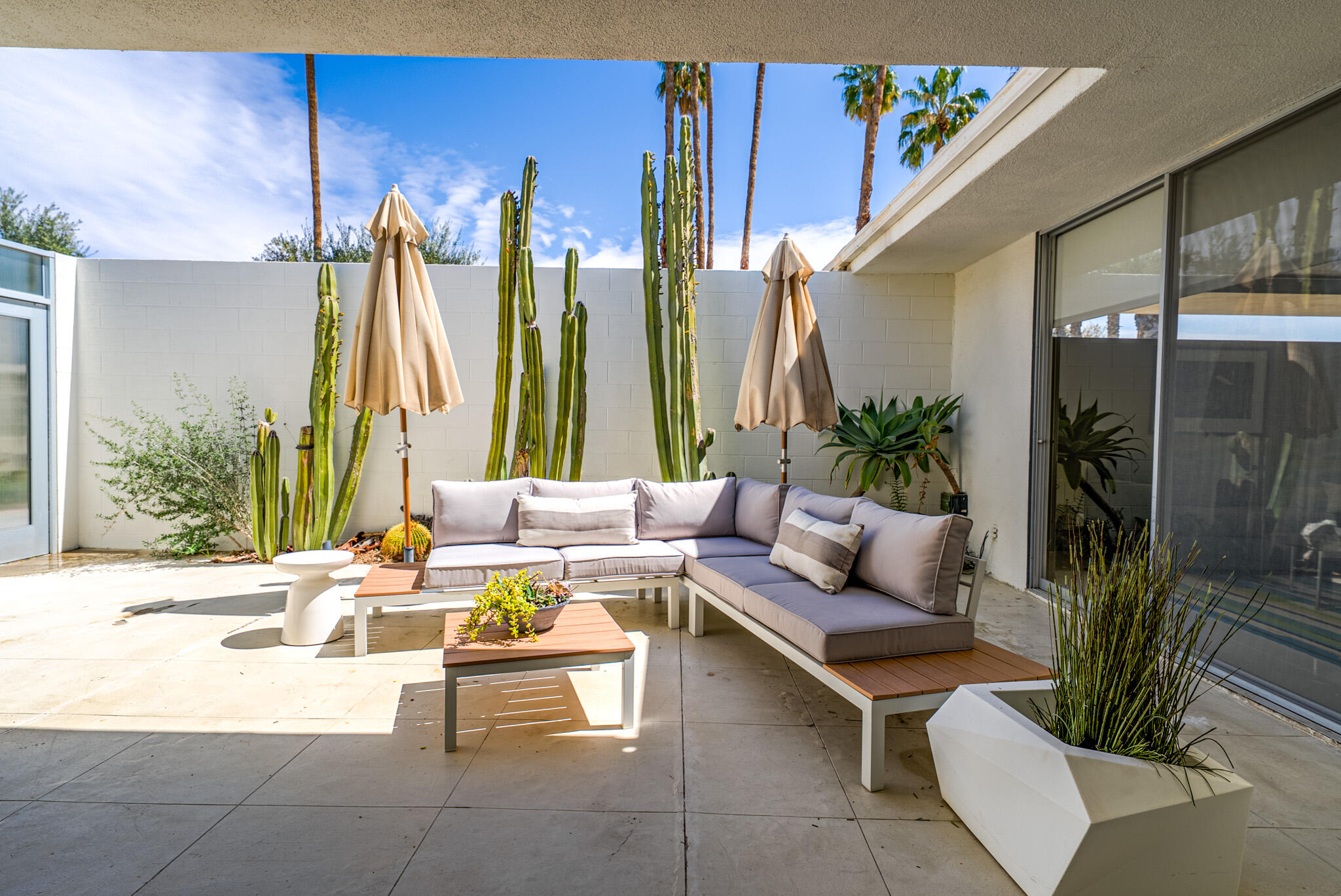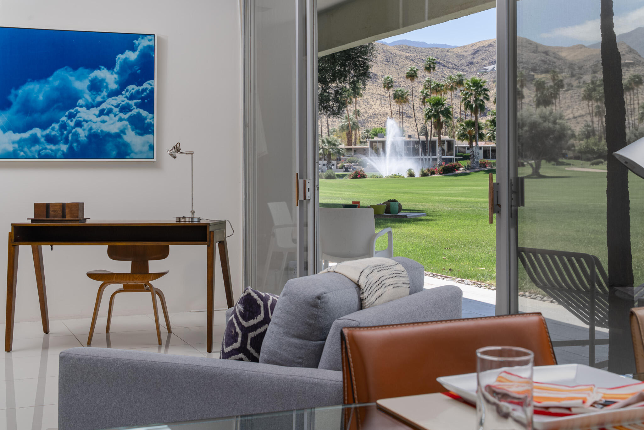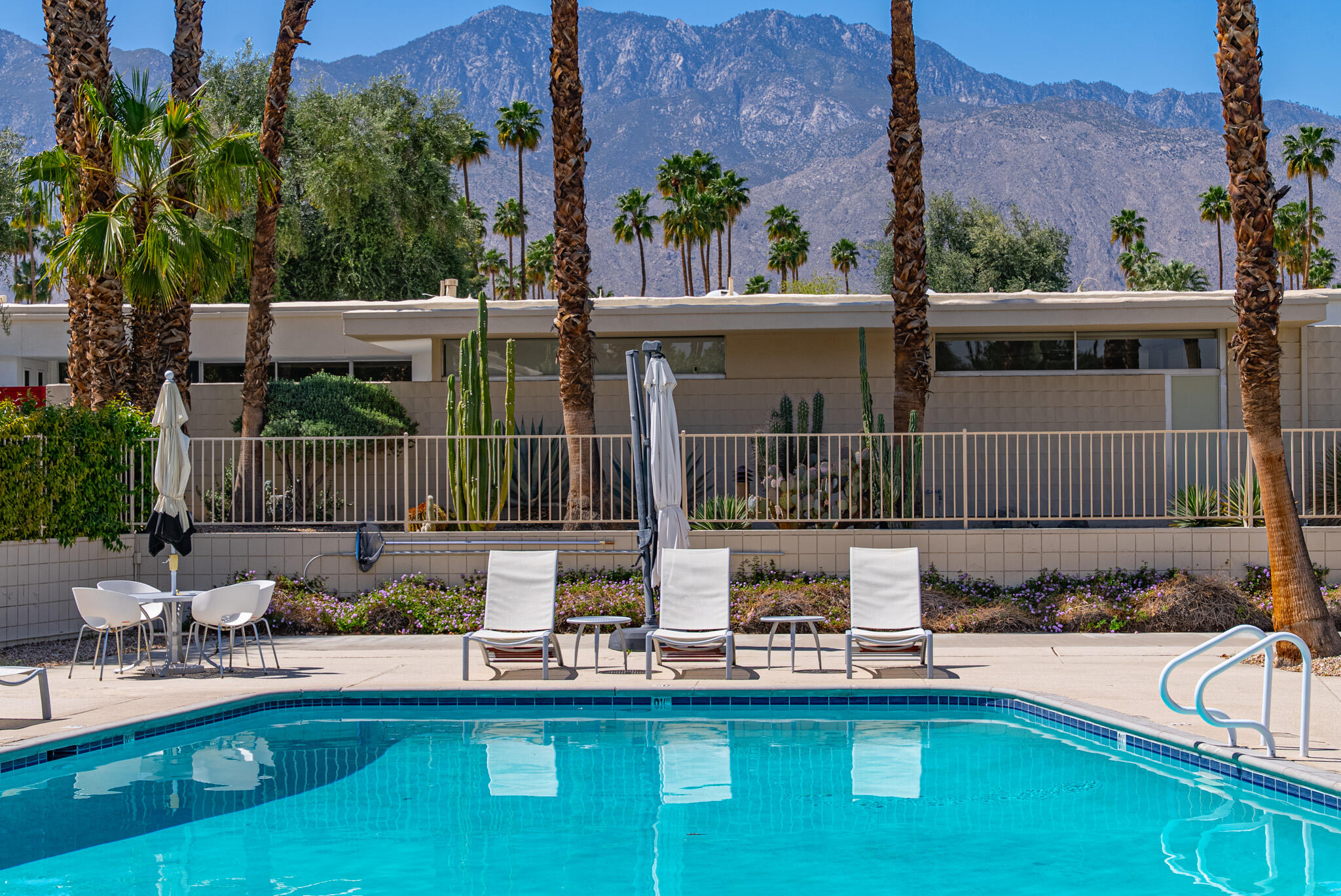 Welcome to this breathtaking 2-bedroom, 2-bathroom home located in one of the most sought-after view locations within the prestigious Seven Lakes Golf & Country Club. Designed by renowned architect Richard Harrison, this mid-century modern gem offers the perfect blend of timeless architecture and modern luxury. Step inside and you'll immediately notice the open and airy layout, accentuated by floor-to-ceiling windows that showcase sweeping, panoramic views of the San Jacinto and San Gorgonio mountains. With an incredible three fairway view, this home offers some of the most iconic vistas in the entire community. The spacious living area is perfect for entertaining, with direct access to a private courtyard where you can enjoy the tranquil desert landscape or host intimate gatherings. The well-appointed kitchen offers both functionality and style, while the two bathrooms are beautifully designed with sleek finishes that complement the home's mid-century modern aesthetic. The master suite offers a peaceful retreat, with abundant natural light and stunning views. A separate guest bedroom provides ample space for family or visitors. Additional features include a one-car garage, on-site management, and 24-hour guard-gated security for ultimate peace of mind. Residents also have access to the William Cody-designed Clubhouse, which boasts a dining room, lounge, and outdoor terrace--perfect for enjoying the desert sunsets with friends and neighbors. Whether you're an avid golfer or simply appreciate iconic design and breathtaking scenery, this home offers a lifestyle of unparalleled luxury and tranquility. Don't miss the opportunity to own this exceptional property in one of Palm Springs' most exclusive communities.Interested in this Listing?