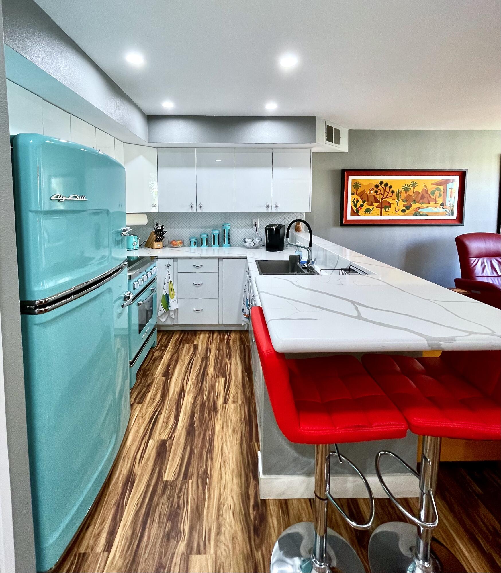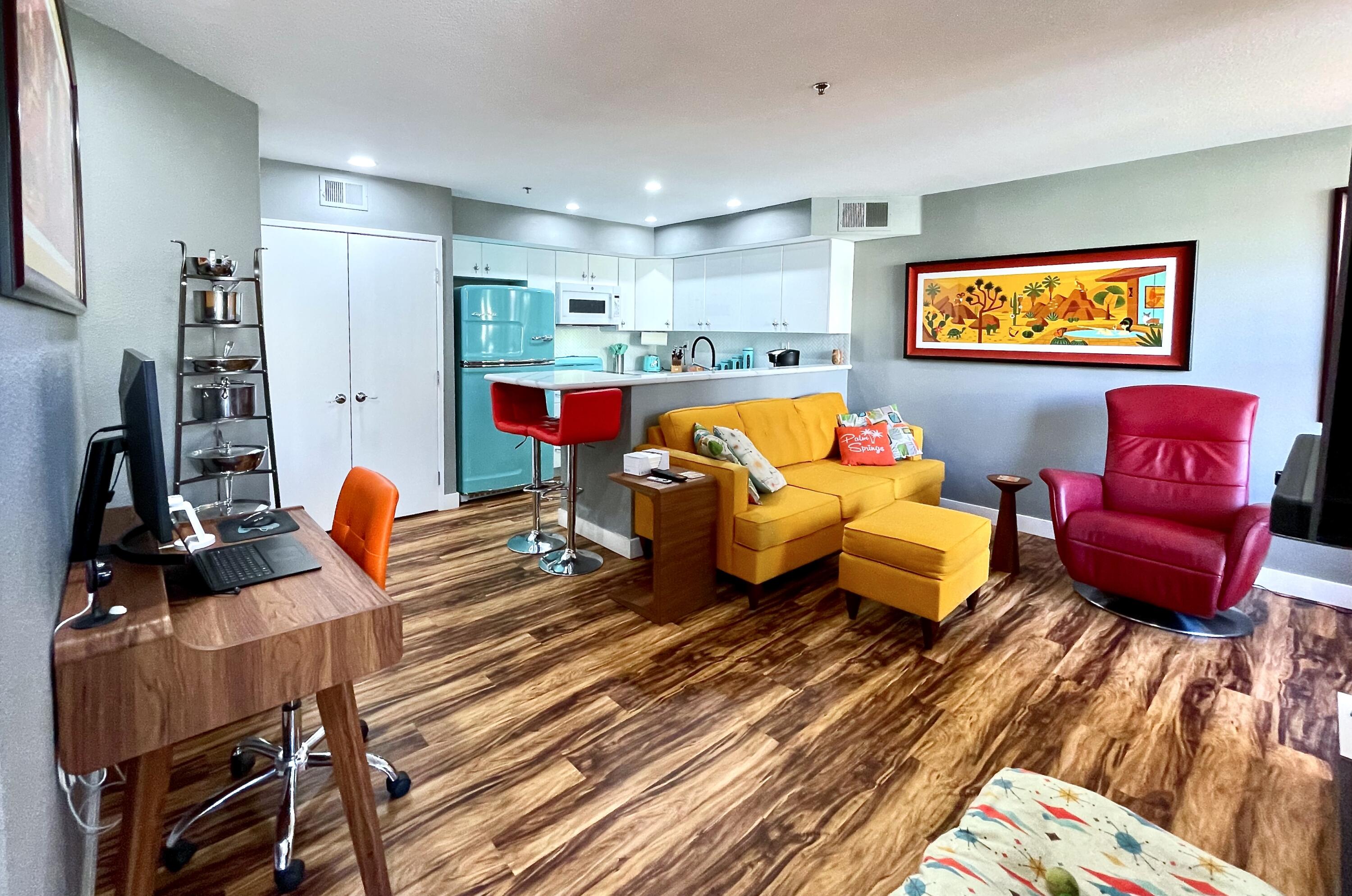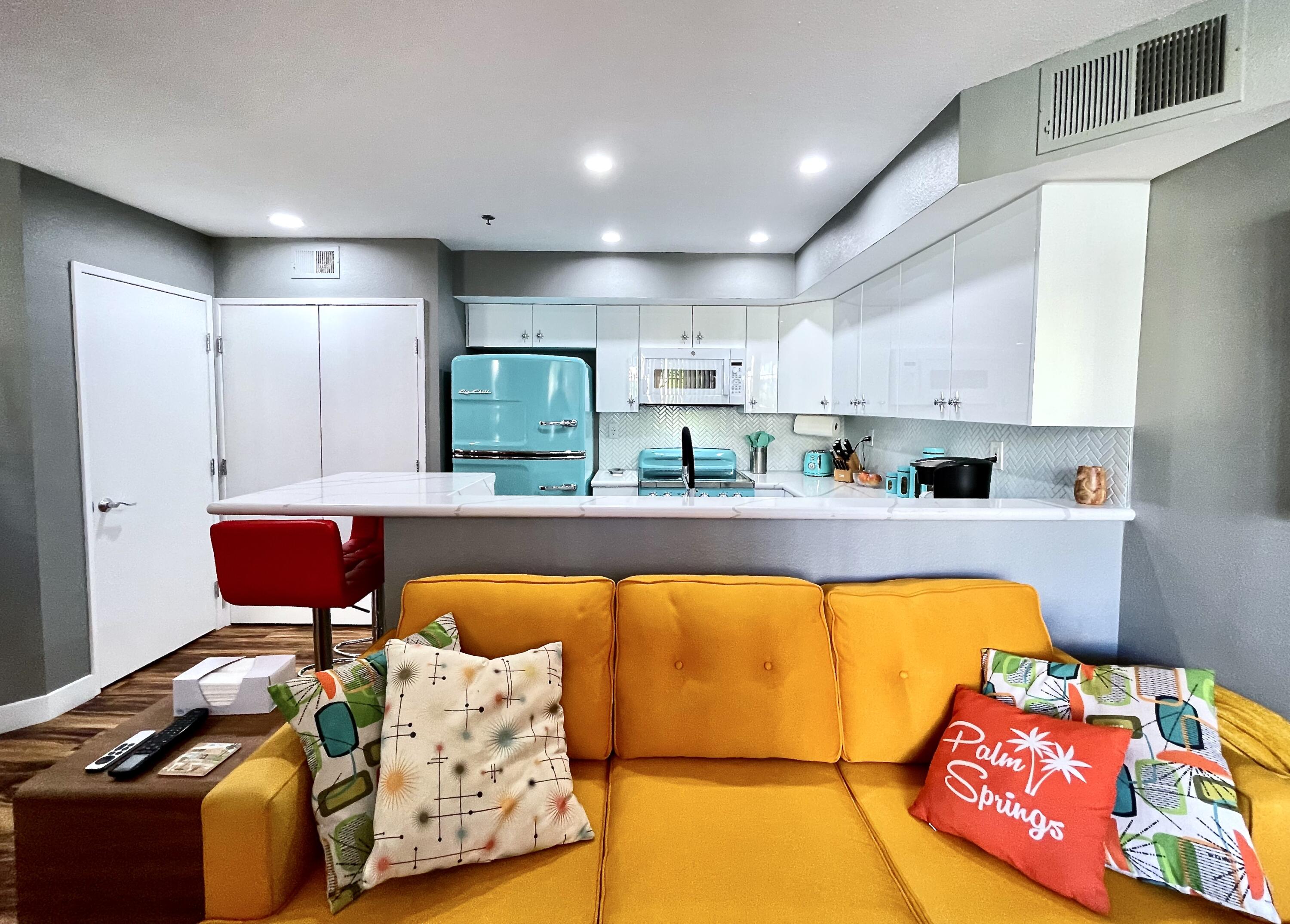 Welcome to Desert Sun Condos! This resort-style community offers beautifully landscaped grounds, a stunning saltwater pool and a relaxing spa. Conveniently located near downtown, the art district, shopping, nightlife, and top restaurants, you'll also have easy access to the Aerial Tram, casino, and airport.This fully remodeled condo features luxury vinyl flooring, quartz countertops, custom closet storage, Big Chill appliances, and a state-of-the-art Dimplex Ignite XL Bold electric fireplace. The half bath has been converted into a pantry but can easily be restored. Located within an inviting Au Naturalist community, it provides a relaxed and welcoming atmosphere for like-minded residents.Sold furnished (check with your agent about the list)--just bring your clothes and toothbrush! All information is deemed reliable but not guaranteed. Buyer(s) to verify independently.Interested in this Listing?