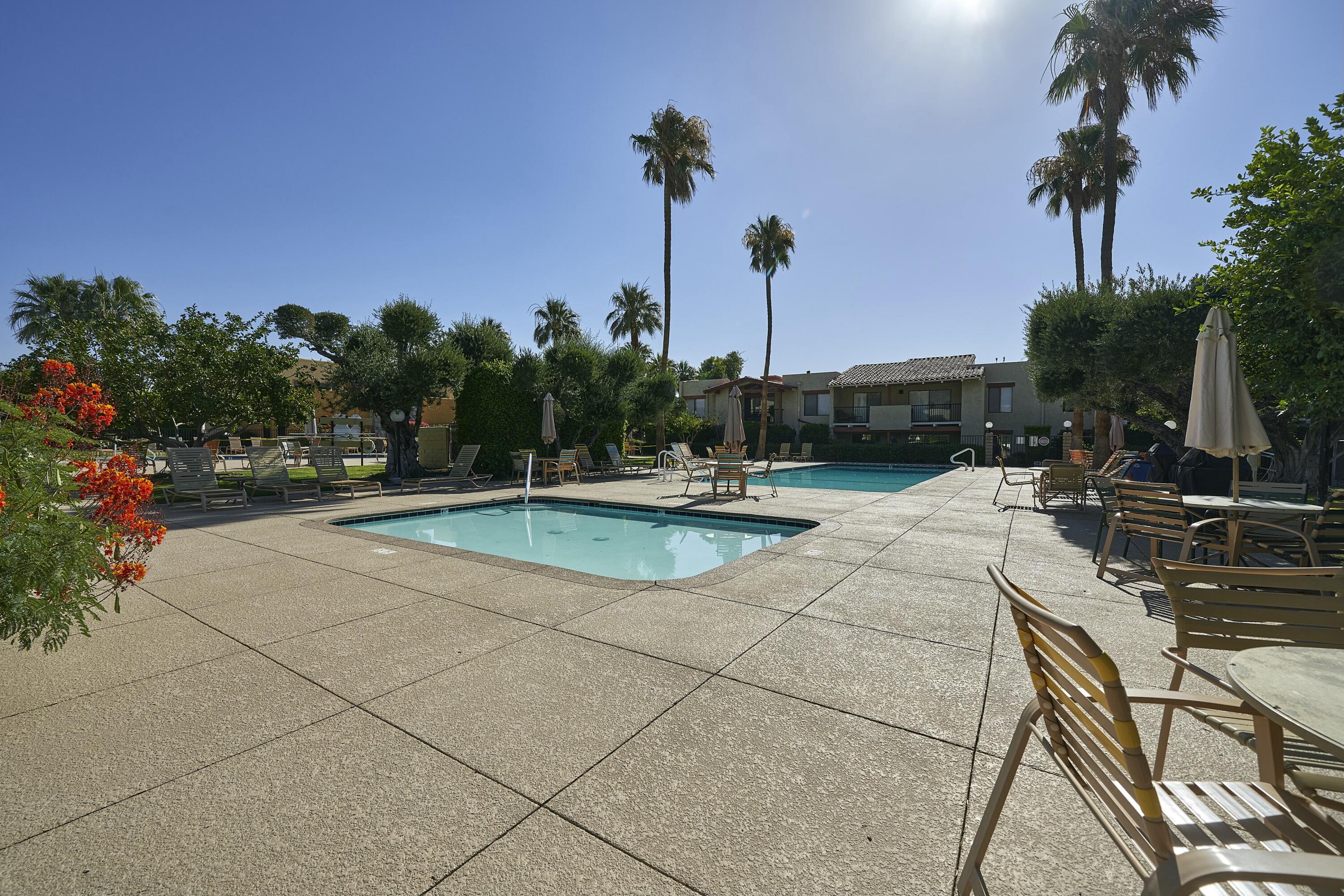 Price improvement!! Location, Location, Location! Enjoy the amazing mountain views from this top-floor 1-bedroom condo, perfectly nestled in a sought-after gated community where you own the land, not on leased land. Soaring vaulted post and beam ceilings. The spacious floor plan is perfect. Premium amenities abound, including covered carport parking, tennis and pickleball courts, a vibrant community room, a fully equipped gym, and a relaxing sauna. Not to mention the 3 heated pools, 2 spas, and BBQ area. The HOA allows short-term rentals with 15-day minimums if city permits are available. Your HOA fee covers Spectrum cable TV, internet, water, and trash, your lifestyle is made effortlessly convenient. Freshly painted and carpeted, this condo is move-in ready. Located close to transportation, shopping, and downtown Palm Springs, this condo offers the ultimate blend of serenity and accessibility. Seize this rare opportunity to own an extraordinary property that truly has it all!Interested in this Listing?
