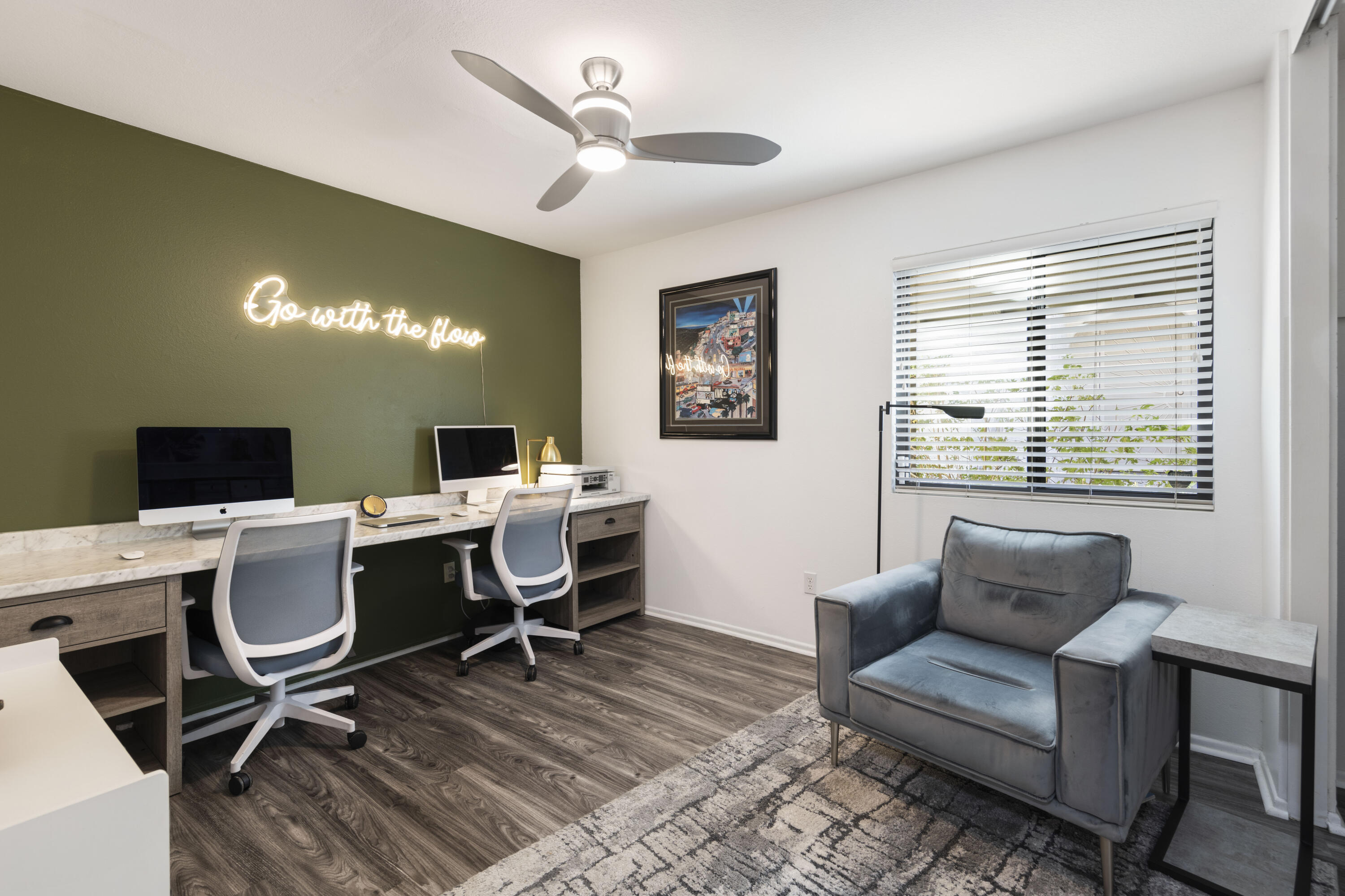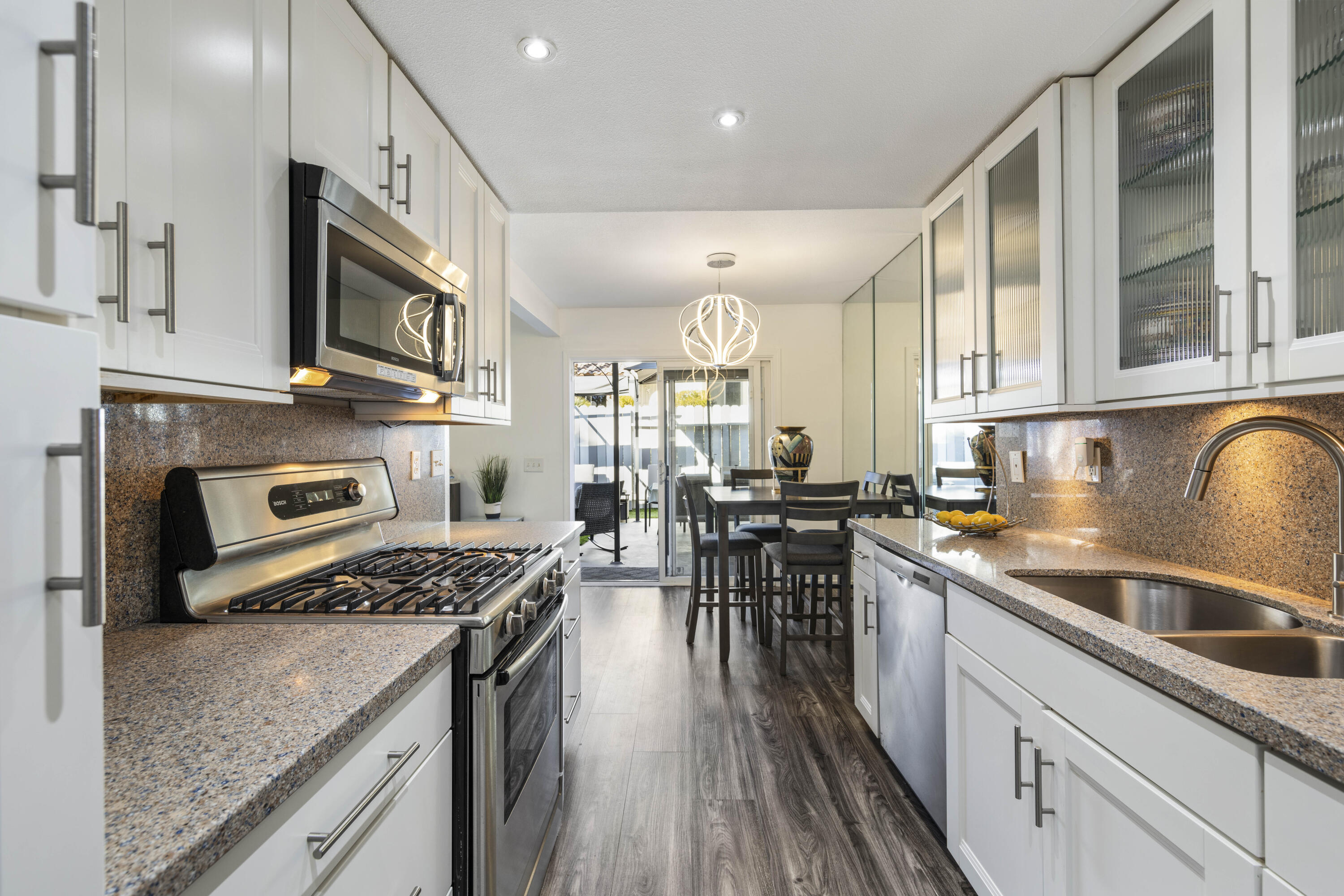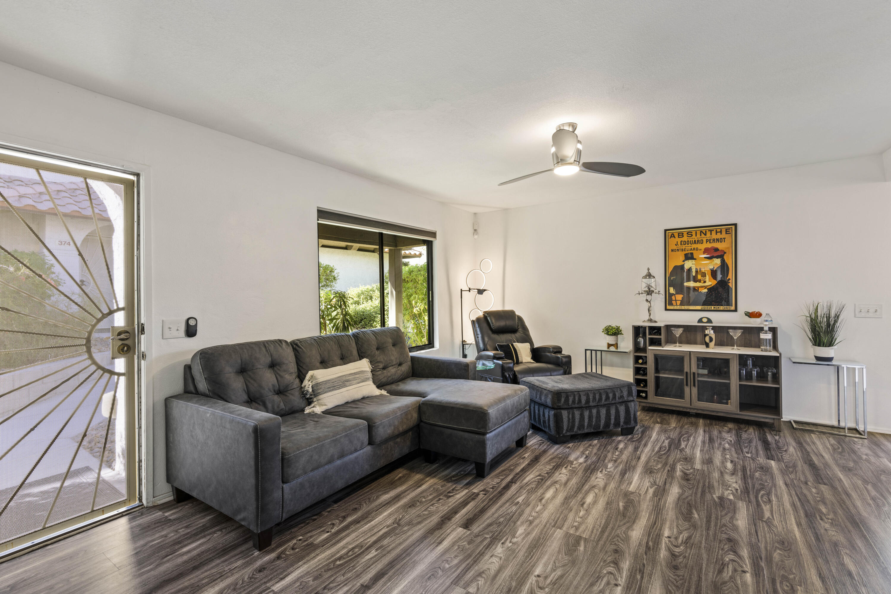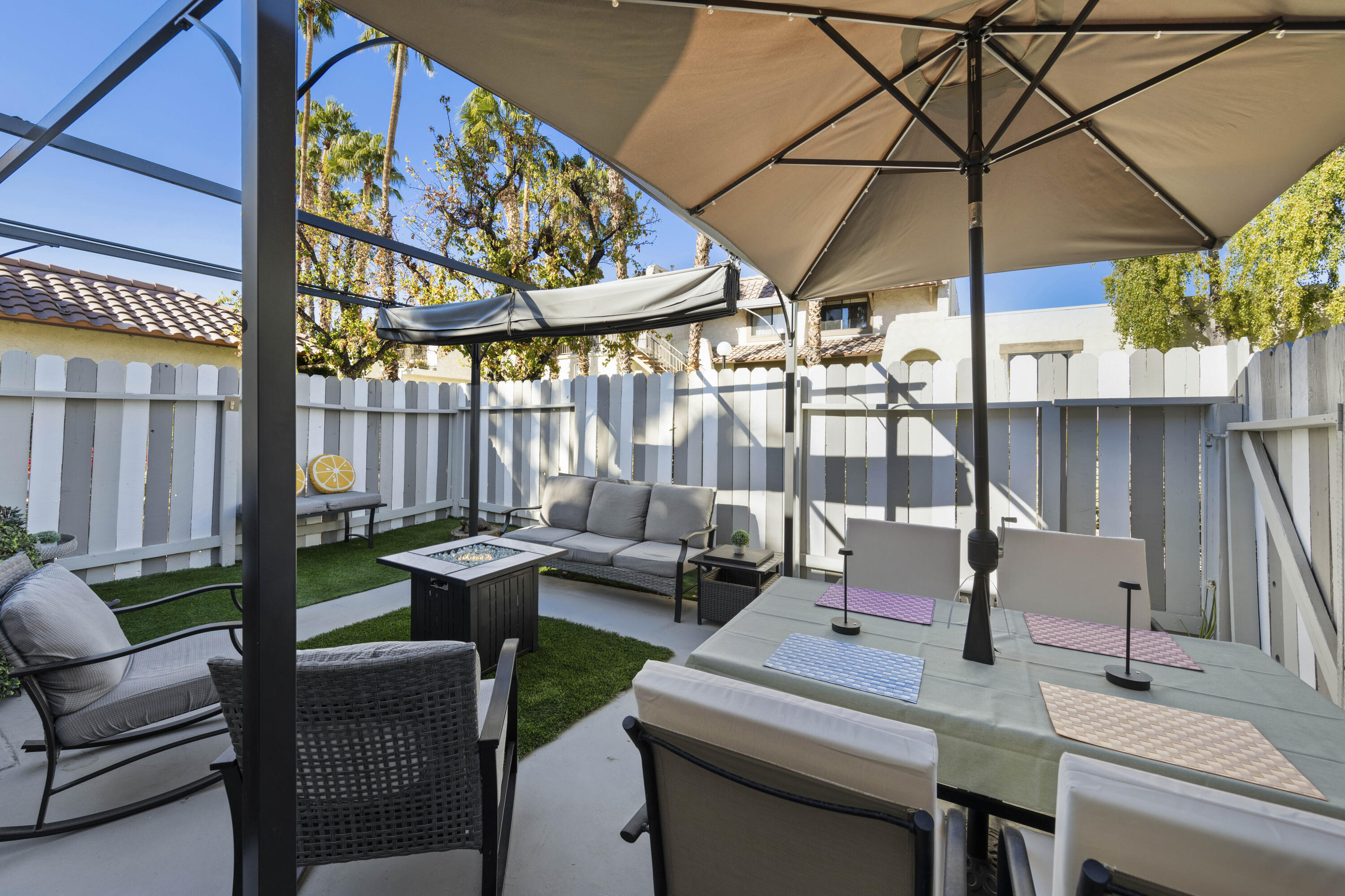 Located in the highly desirable Little Tuscany neighborhood, this beautifully upgraded single-level condo at 350 West Santa Elena Road is part of the prestigious Casa de Oro Condominium complex. Built in 1976, Casa de Oro offers a serene lifestyle with 96 units, two large swimming pools with Jacuzzis, two tennis courts, a pickleball court and ample guest parking. This 3-bedroom, 2-bathroom ground level condo spans 1,116 square feet and features an oversized private fenced back patio and two side-by-side garages with abundant storage. The current owners have made over $50,00 in upgrades since purchase including a new HVAC system, sliding doors, gray laminate flooring, refrigerator, modern lighting, ceiling fans, vanities, faucets, toilets and paint. The large patio has been fully renovated with resurfaced concrete, artificial turf and a retractable canopy. Situated on a quiet, low-traffic street, this home offers peace and privacy while being just minutes from Uptown and Downtown Palm Springs, with its vibrant shops, restaurants, and nightlife. Short-term rentals (30-day minimum) are permitted, and pets are welcome. Casa de Oro is nestled in the heart of Palm Springs with quiet surroundings and easy access to local attractions!Interested in this Listing?