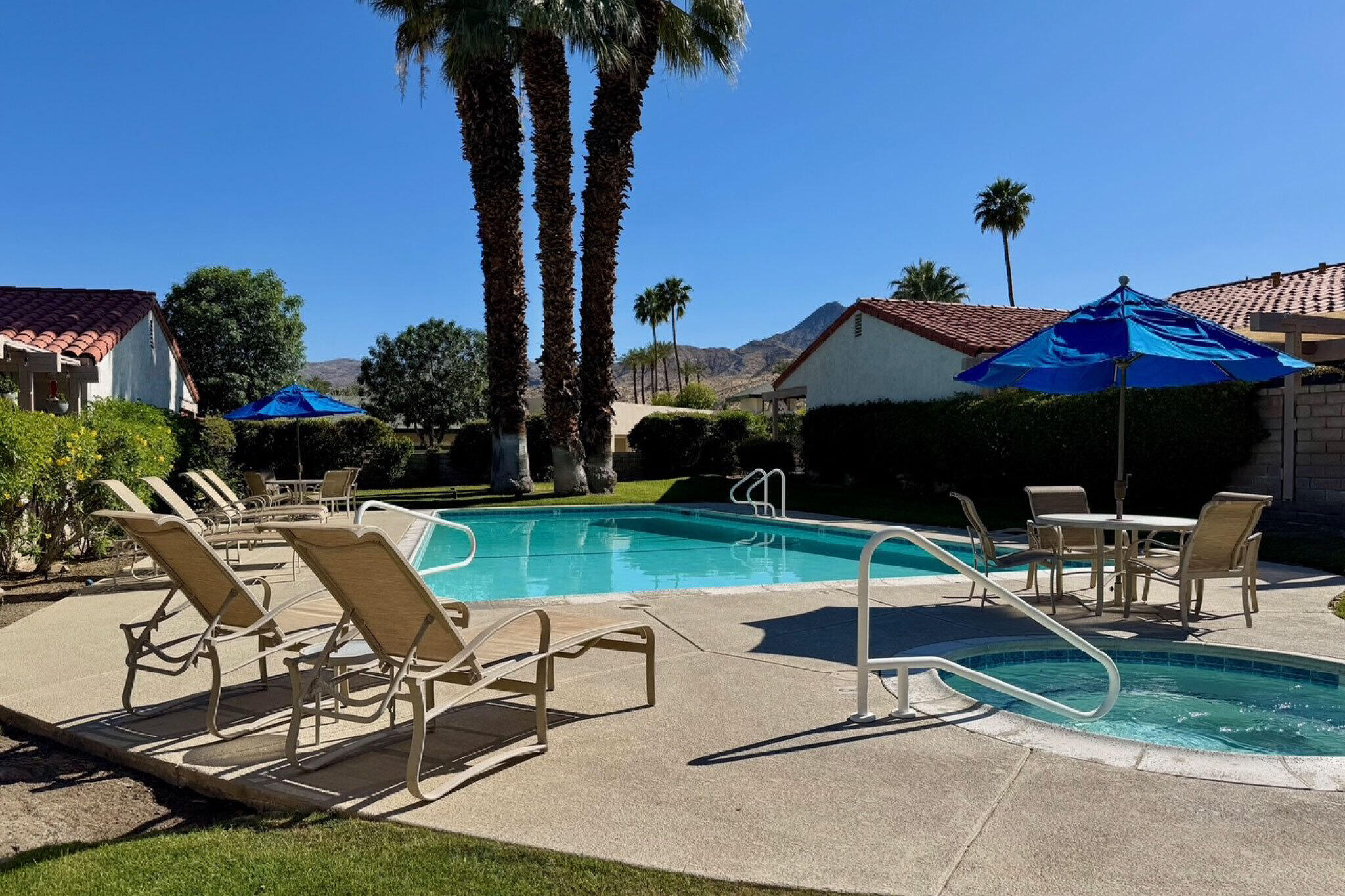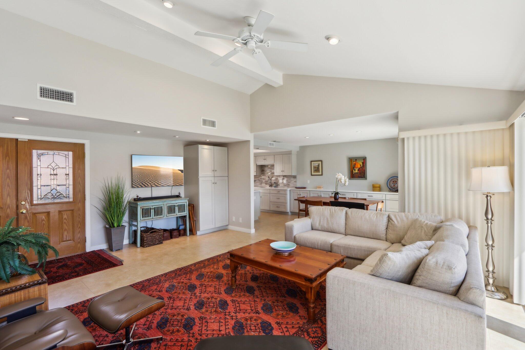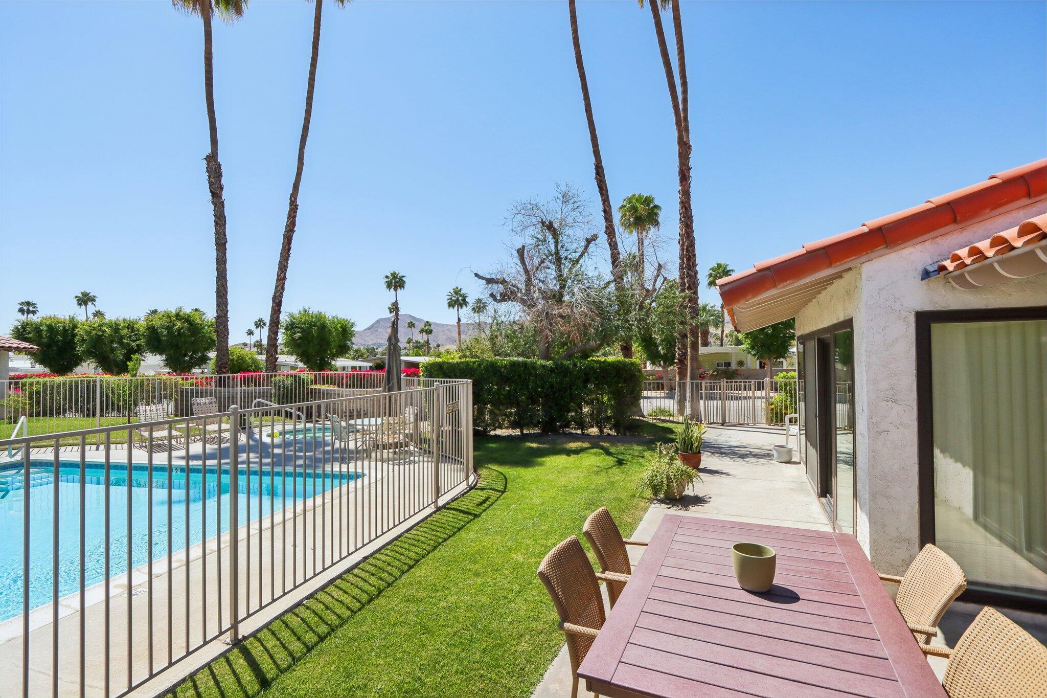 Welcome to your desert oasis at 6159 Driver Road, Palm Springs! This stunning single-level condo offers over 1,500 square feet of living space, featuring 2 spacious bedrooms and 2 bathrooms. Nestled in the sought-after south end of Palm Springs, just a stone-throw from the 36-hole Tahquitz Creek Golf Resort, this property is part of an exclusive 48-unit community featuring 6 pools and 3 spas--perfect for relaxing and unwinding in the sunny desert climate.Inside, you'll find elegant, beamed ceilings and an updated cook's kitchen with quartz countertops. The open floor plan seamlessly connects the living, dining, and outdoor spaces, making it ideal for entertaining. Additional highlights include in-unit laundry, 2-car garage, and breathtaking mountain views. Recent updates include Tesla charger in garage, new windows, new electric panel.Situated on land you own, this home combines convenience and luxury in a prime location. Enjoy proximity to popular destinations like Starbucks, Trader Joe's, and Target, making errands a breeze. Whether you're looking for a full-time residence or a vacation retreat, this property is priced to sell quickly. Don't miss your chance to own a piece of paradise!Interested in this Listing?