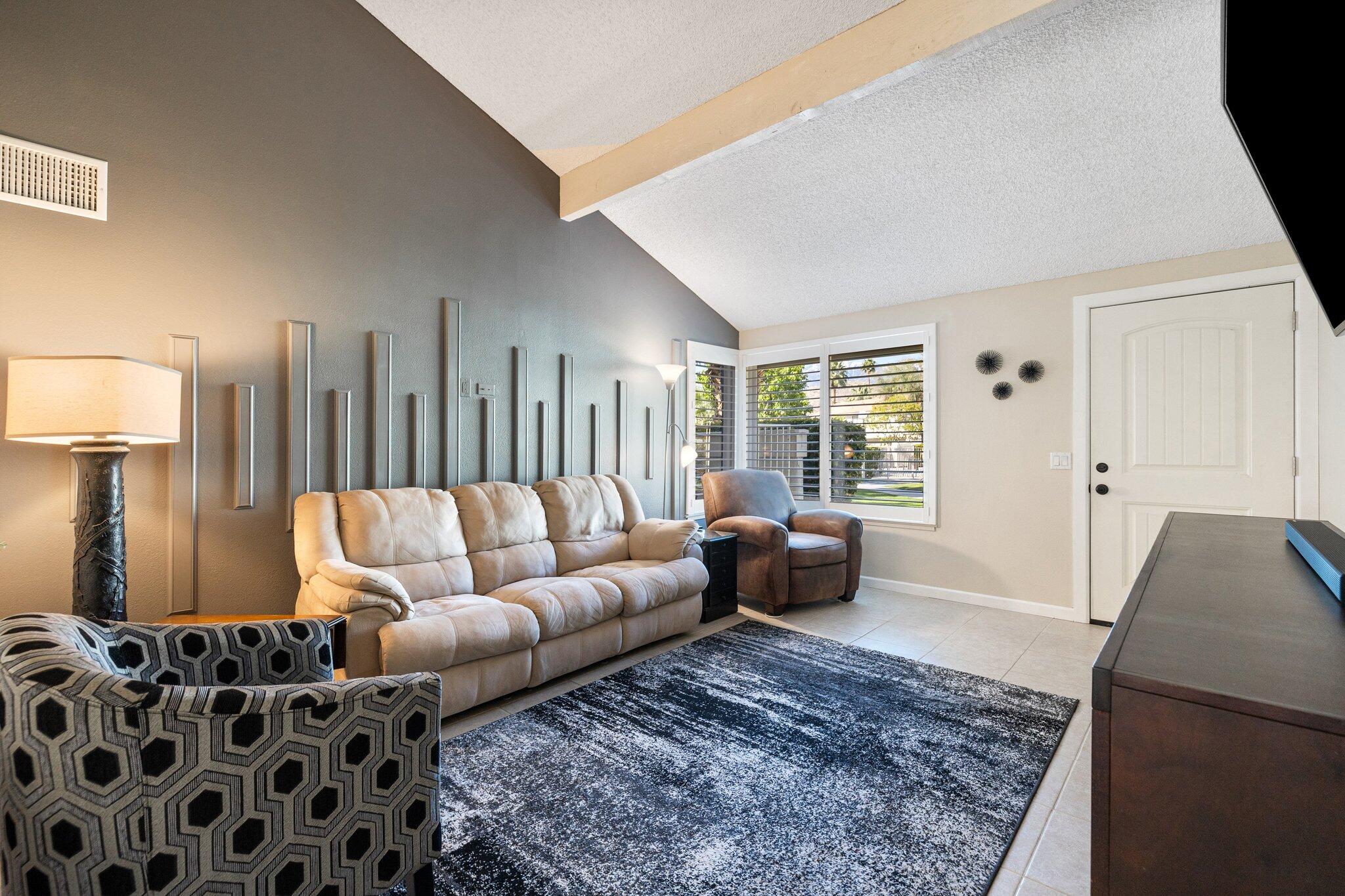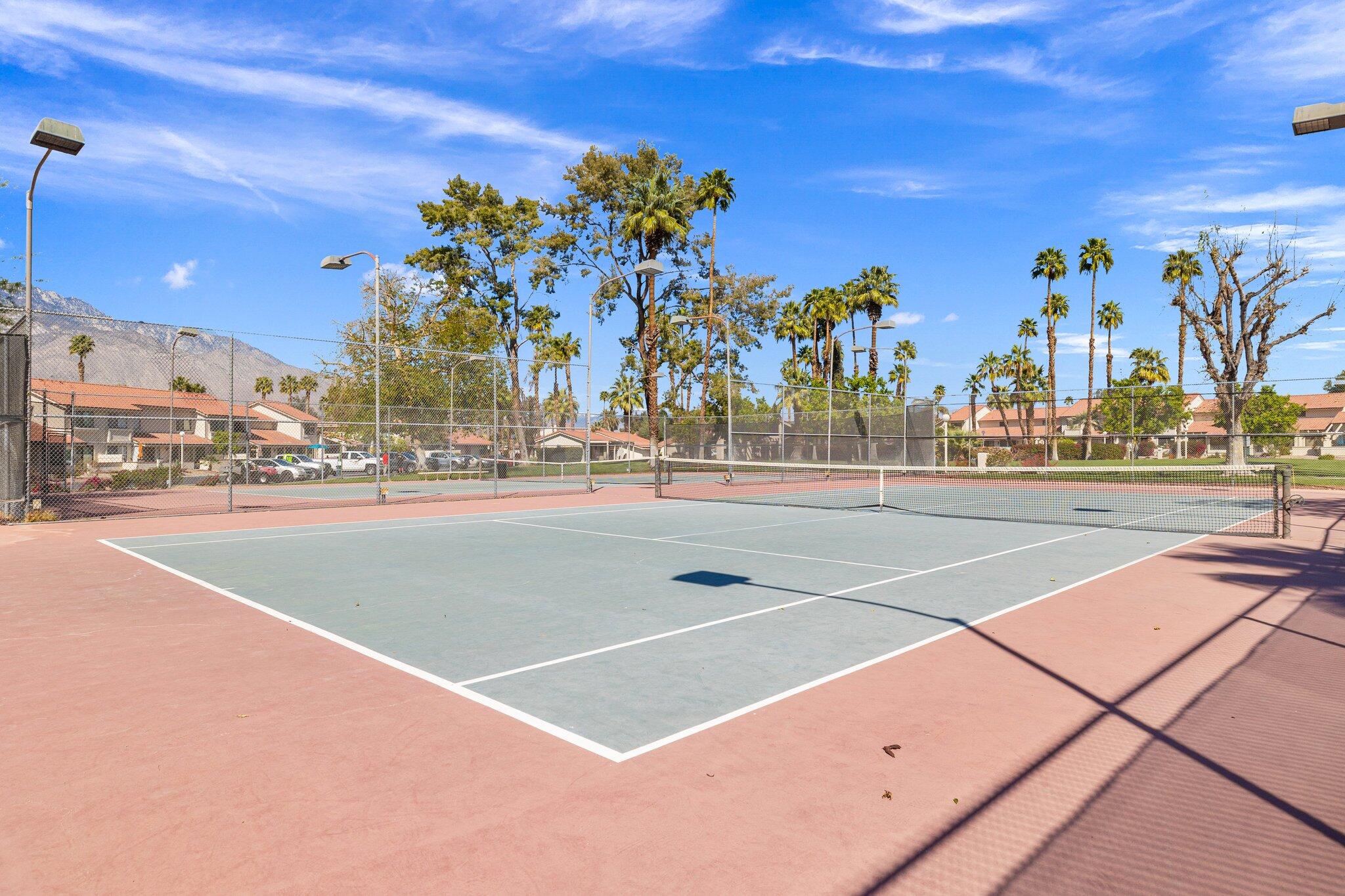Golf, swim, relax, REPEAT! If you're looking for resort-style living just minutes from Palm Springs, you've FOUND it! The gated community of Mountain Shadows, surrounded by Tahquitz Creek Golf Resort, offers easy access to the airport, golf, hiking, shops, and world-class dining! With 6 sparkling pools, a spa, 2 lighted tennis courts, and beautifully landscaped grounds featuring grapefruit, orange, lime, avocado, and lemon trees, you'll be in VACATION MODE in NO TIME!Inside this 2-level, 3-bedroom, 2.5-bath townhouse, you'll find tasteful updates like a contemporary color scheme, updated flooring, and custom wood accents. Downstairs features a cozy family room, powder room, laundry, guest bedroom with MOUNTAIN VIEWS and an enclosed patio. The kitchen and dining area are adjacent to another private patio, perfect for grilling and outdoor dining. Upstairs, the bedrooms are well separated. The primary suite has ample closet space, a stylish feature wall, and an updated shower. Another guest bedroom boasts AMAZING VIEWS of the San Jacinto Mountain range and is adjacent to a full bath. Whether you're looking for a full-time residence, 2nd home, or a vacation rental, this is for YOU!Interested in this Listing?
