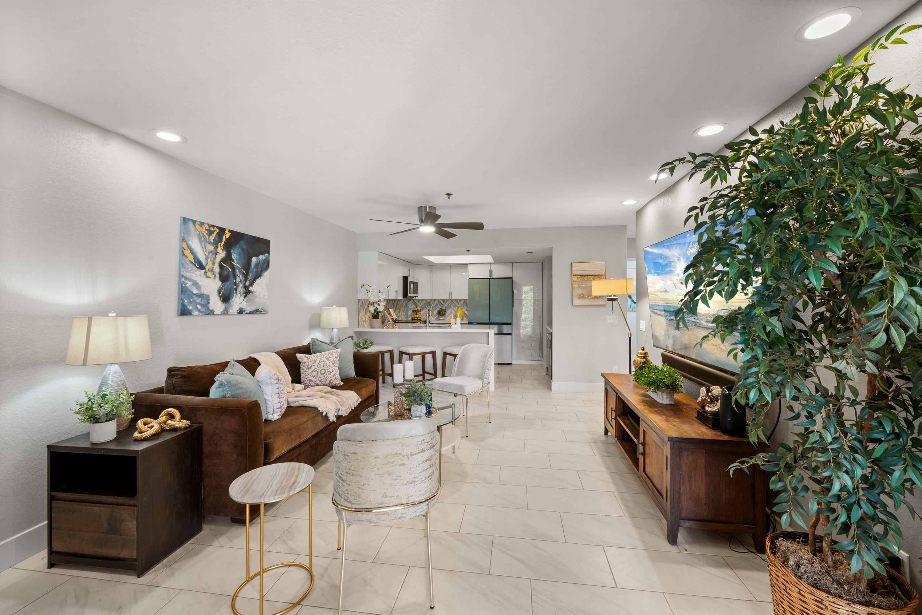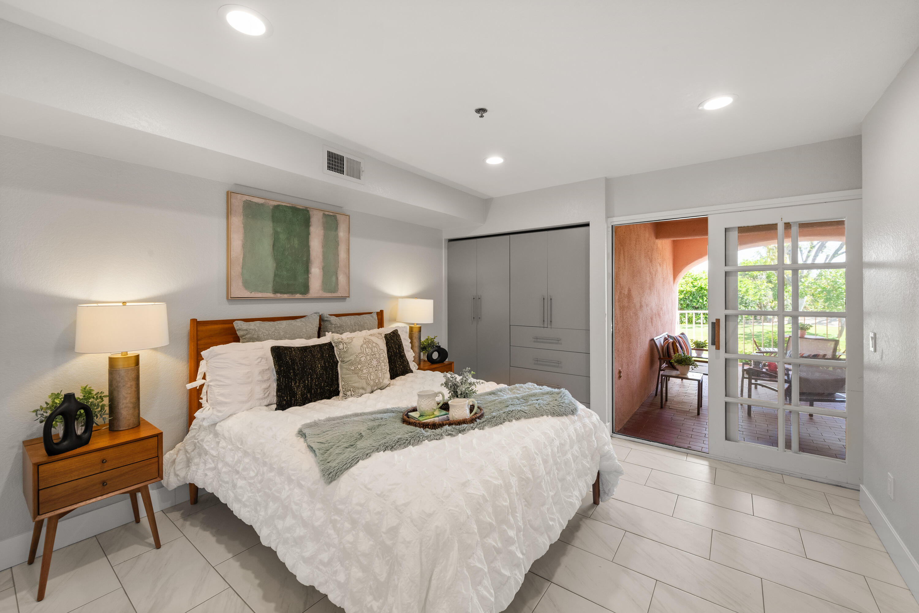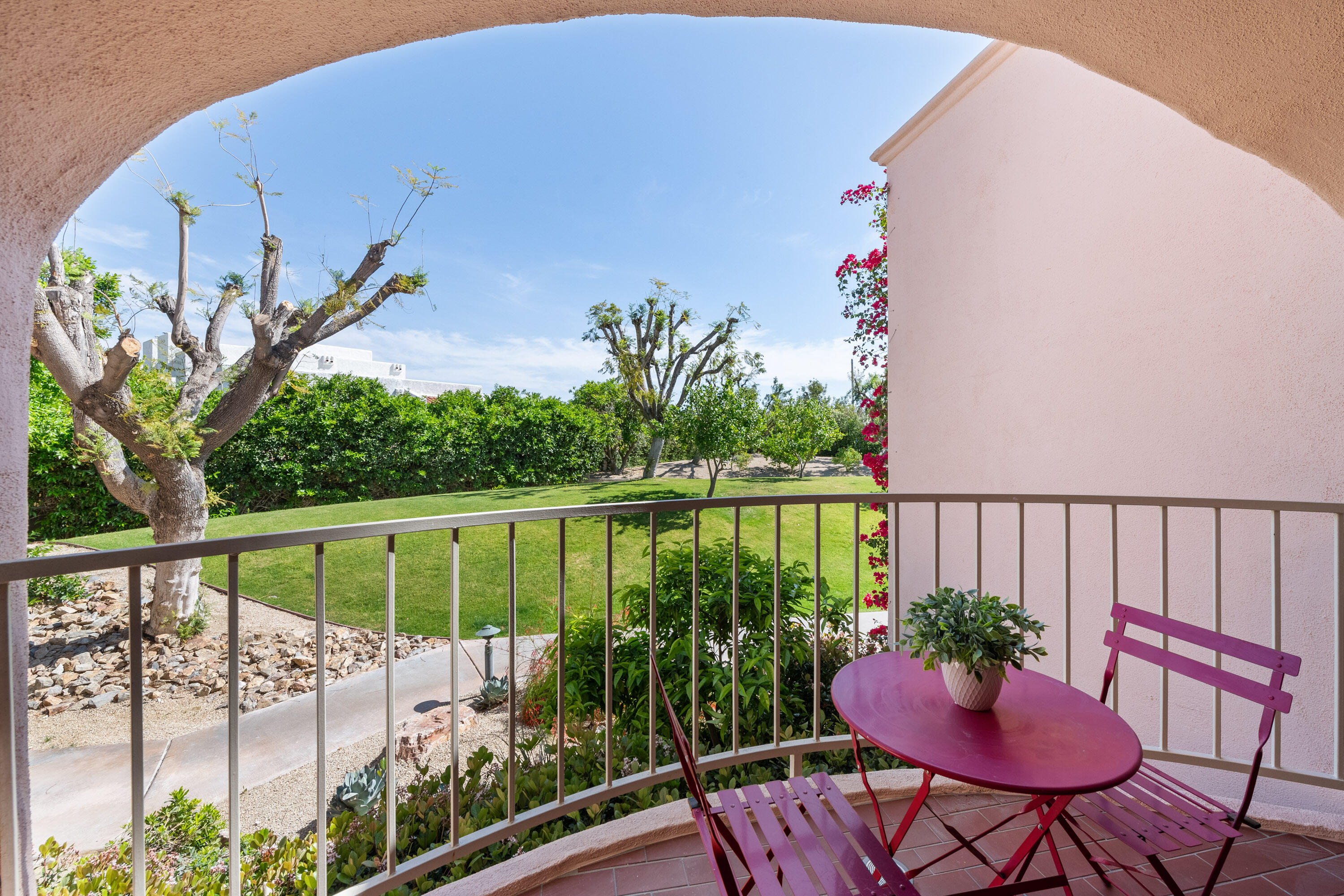 FABULOUS PALM SPRINGS LOCATION! Only two short walking blocks from Downtown Palm Springs with restaurants, shops, nightlife and one block from the Casino! Whether you're looking for a short-term rental investment (14-day minimum rental policy), a seasonal getaway or a full-time residence, this unit checks all the boxes. Be part of the sought-after iconic, beautifully maintained 9-acre Deauville gated community with resort-style amenities galore: 3 pools and spas, fitness center, private clubhouse for events, two tennis courts (one night-lit), reflection pools, shaded underground parking with bike rack and each unit's storage space, plus stunning mountain views. RENOVATED light-filled SINGLE STORY, LOWER UNIT, One Bedroom, Two Bath Condo features a delightful and spacious OPEN-CONCEPT living space with NEW Tauleto Bianco polished porcelain tile flooring and 5'' baseboard throughout. A $13,000 Trane HVAC system was installed in June 2023. The Great Room lets in much natural light through the paned doors and includes LEC canned lights, 80'' flat-screen mounted Smart TV and a premium ceiling fan. Enjoy preparing meals in the UPGRADED contemporary kitchen with beautiful quartz countertops, polished marble and brass chevron mosaic tile backsplash, Samsung Bespoke appliances, lots of high-gloss cabinetry, LED light fixture and an eat-in breakfast bar. The large Bedroom includes a slider out to the patio, plus terrific custom Closet World storage. Both Baths have been MODERNIZED with NEWLY installed attractive wall tile and vanities. Additional storage closets are located in the hall and primary bath. Delight in the convenient in-unit stackable washer/dryer. The sizeable covered private Patio is wonderful for outdoor dining, entertaining or simply relaxing, as it connects you to the natural beauty with a view of a lush green hillside. HOA dues include water, garbage removal, exterior grounds, building maintenance and internet. This PALM SPRINGS PARADISE GEM is in a fabulousInterested in this Listing?