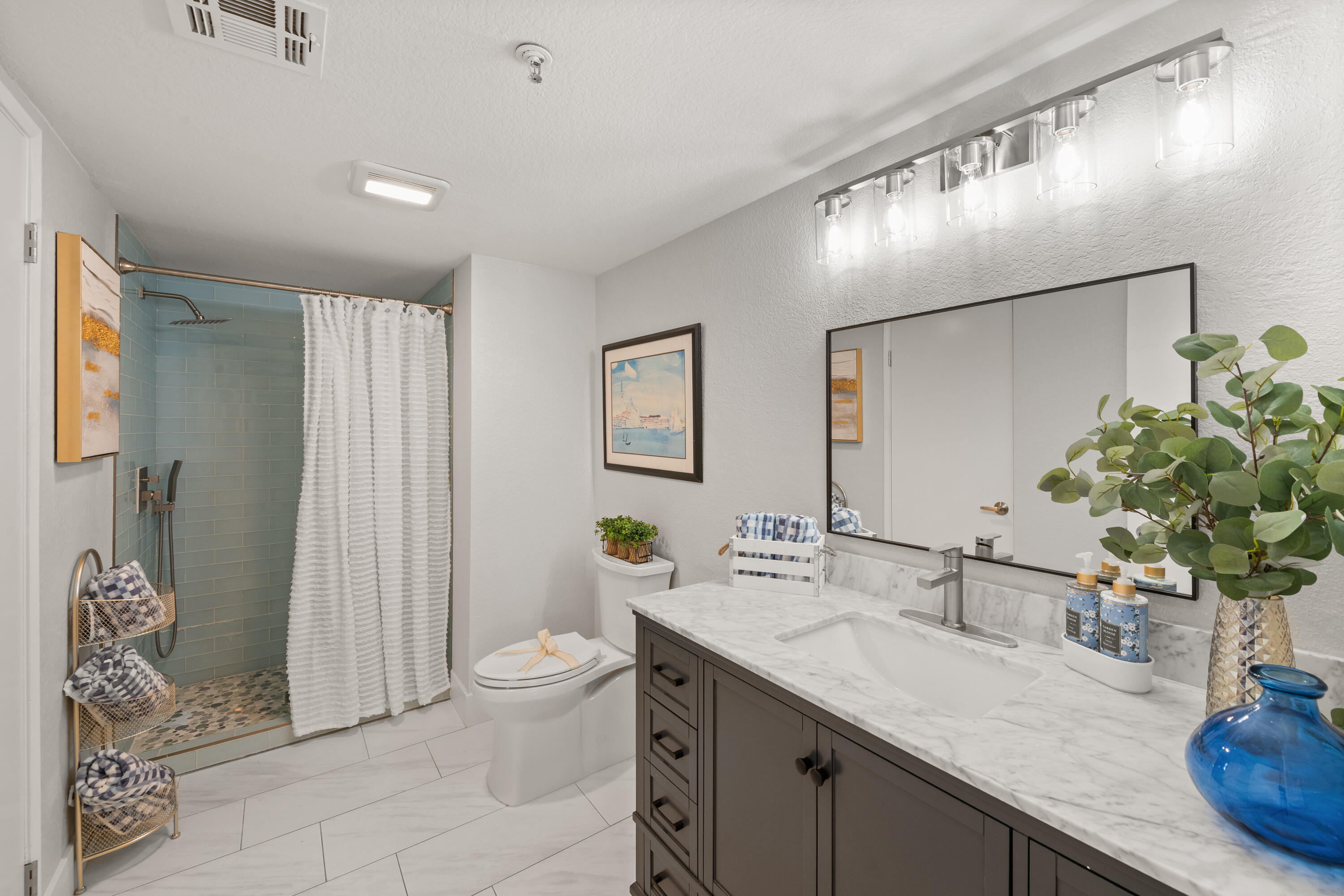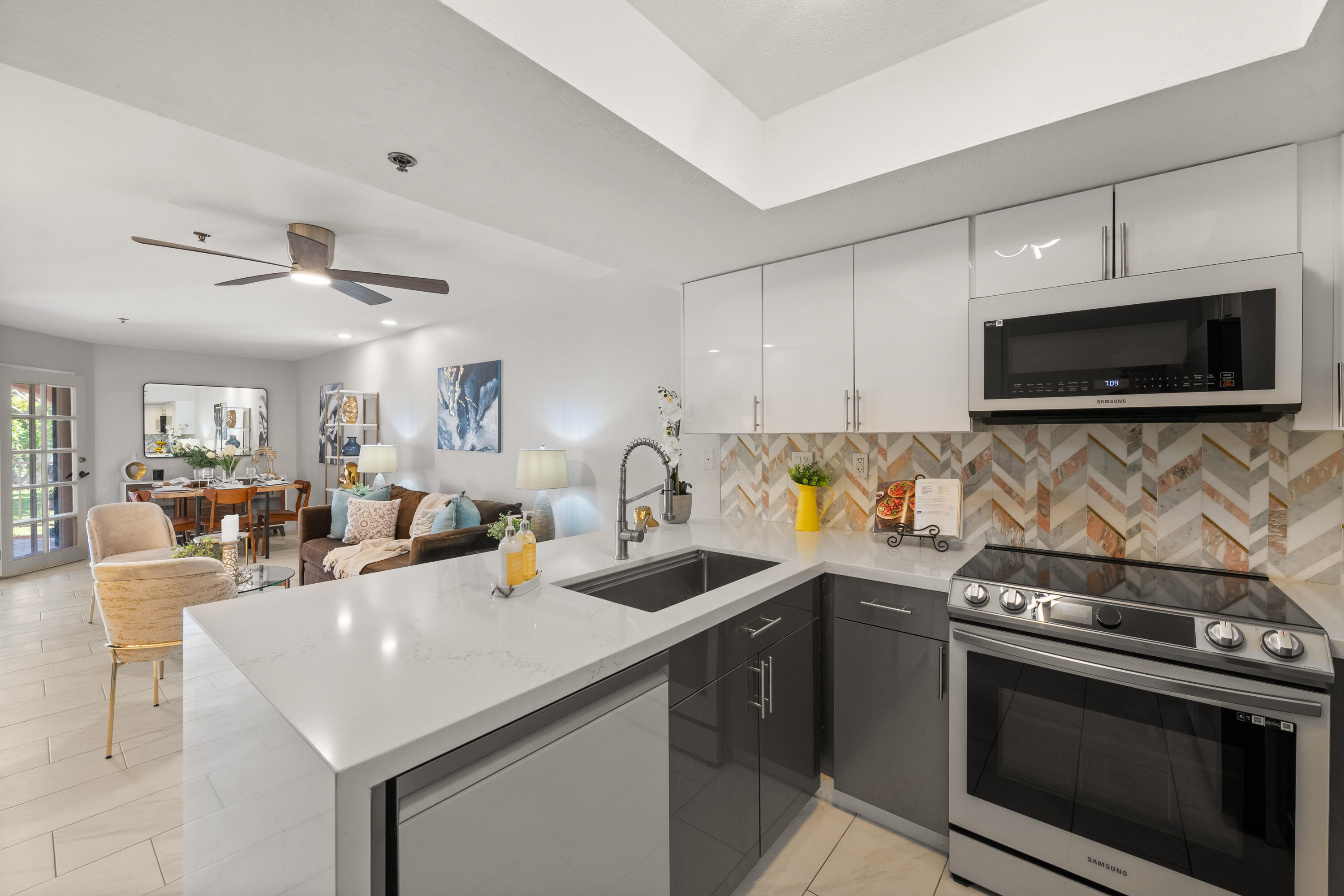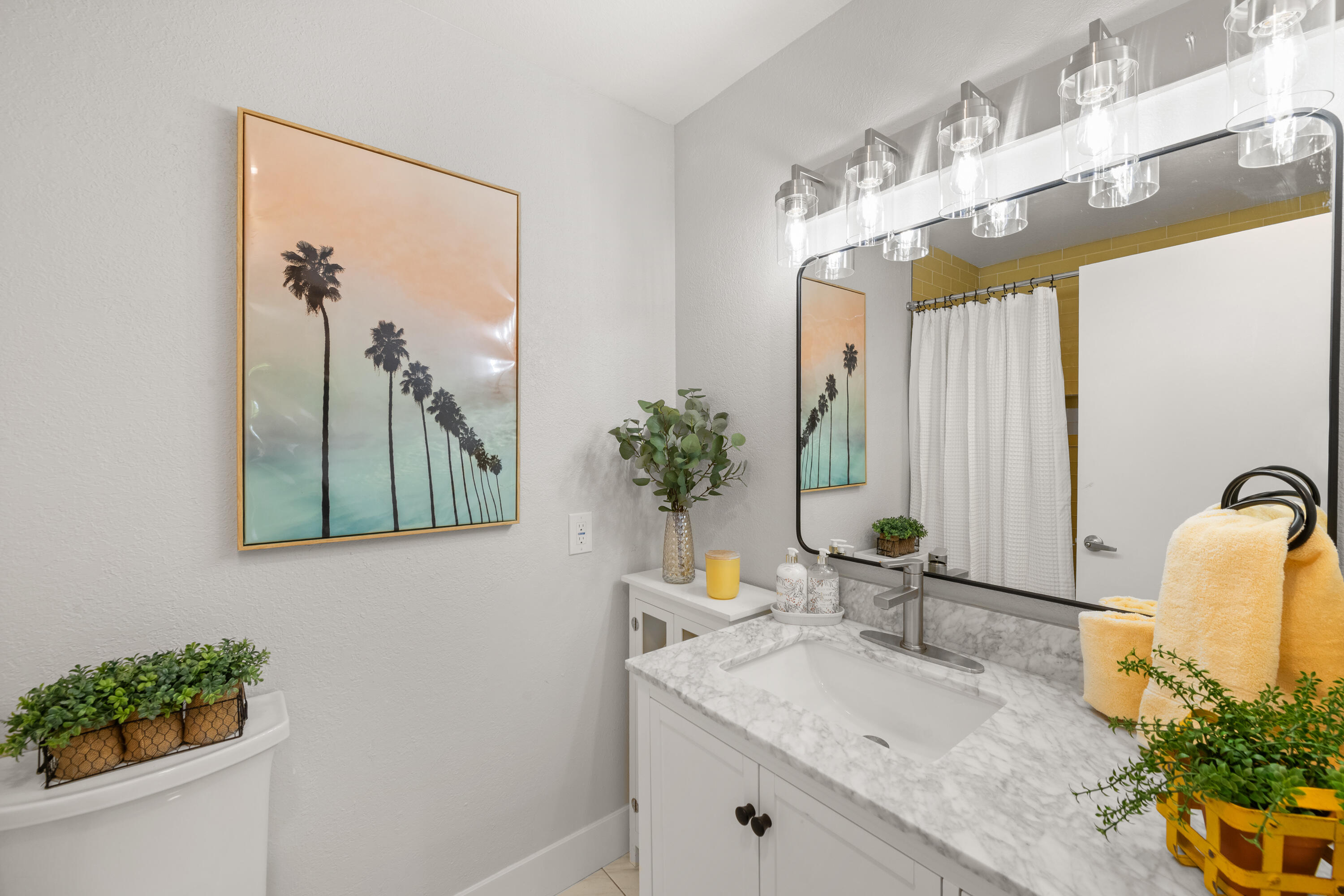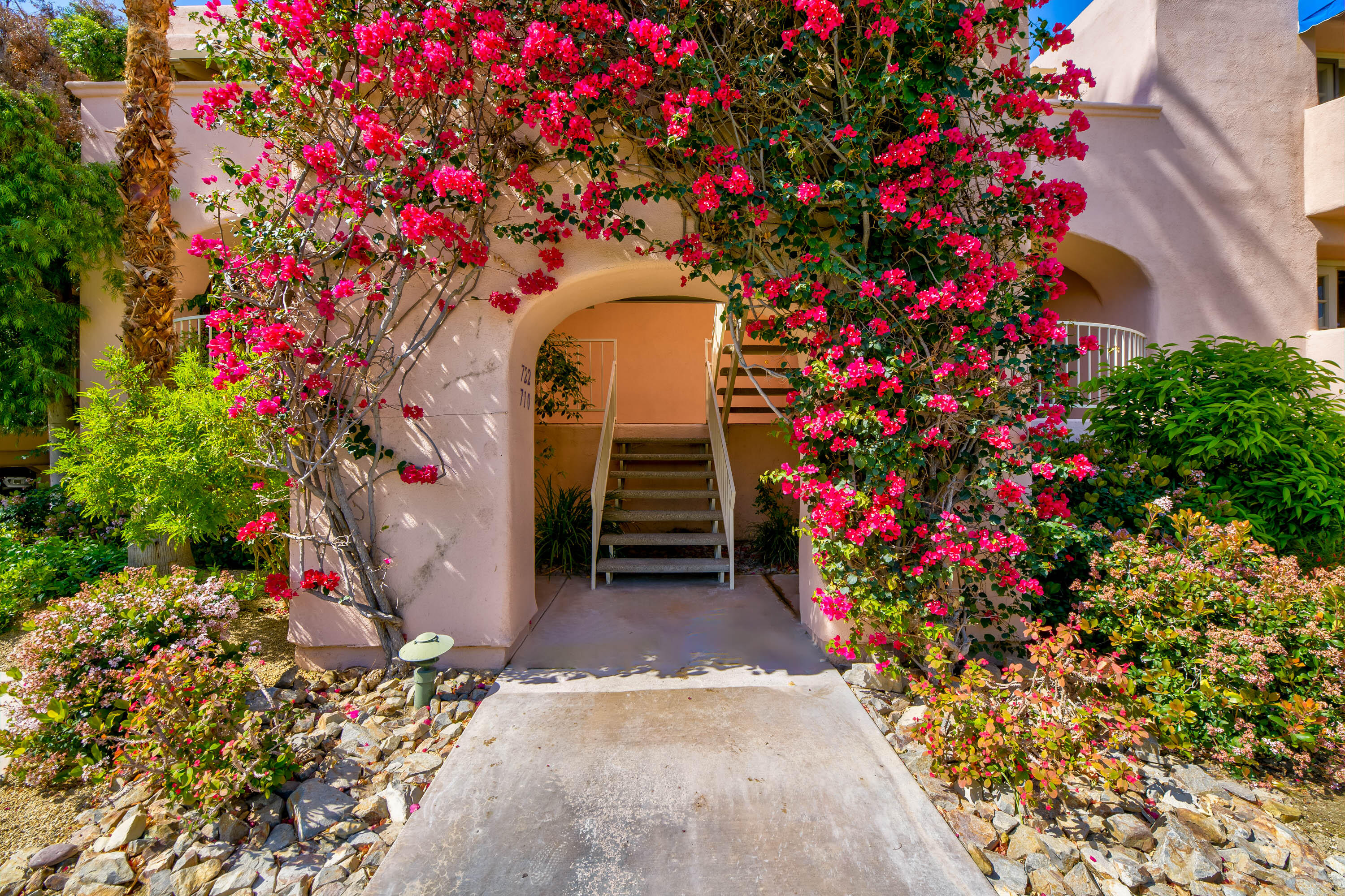 FABULOUS PALM SPRINGS LOCATION! Only two short walking blocks from Downtown Palm Springs with restaurants, shops, nightlife and one block from the Casino! Whether you're looking for a short-term rental investment (14-day minimum rental policy), a seasonal getaway or a full-time residence, this unit checks all the boxes. Be part of the sought-after iconic, beautifully maintained 9-acre Deauville gated community with resort-style amenities galore: 3 pools and spas, fitness center, private clubhouse for events, two tennis courts (one night-lit), reflection pools, shaded underground parking with bike rack and each unit's storage space, plus stunning mountain views. RENOVATED light-filled SINGLE STORY, LOWER UNIT, One Bedroom, Two Bath Condo features a delightful and spacious OPEN-CONCEPT living space with NEW Tauleto Bianco polished porcelain tile flooring and 5'' baseboard throughout. A $13,000 Trane HVAC system was installed in June 2023. The Great Room lets in much natural light through the paned doors and includes LEC canned lights, 80'' flat-screen mounted Smart TV and a premium ceiling fan. Enjoy preparing meals in the UPGRADED contemporary kitchen with beautiful quartz countertops, polished marble and brass chevron mosaic tile backsplash, Samsung Bespoke appliances, lots of high-gloss cabinetry, LED light fixture and an eat-in breakfast bar. The large Bedroom includes a slider out to the patio, plus terrific custom Closet World storage. Both Baths have been MODERNIZED with NEWLY installed attractive wall tile and vanities. Additional storage closets are located in the hall and primary bath. Delight in the convenient in-unit stackable washer/dryer. The sizeable covered private Patio is wonderful for outdoor dining, entertaining or simply relaxing, as it connects you to the natural beauty with a view of a lush green hillside. HOA dues include water, garbage removal, exterior grounds, building maintenance and internet. This PALM SPRINGS PARADISE GEM is in a fabulousInterested in this Listing?