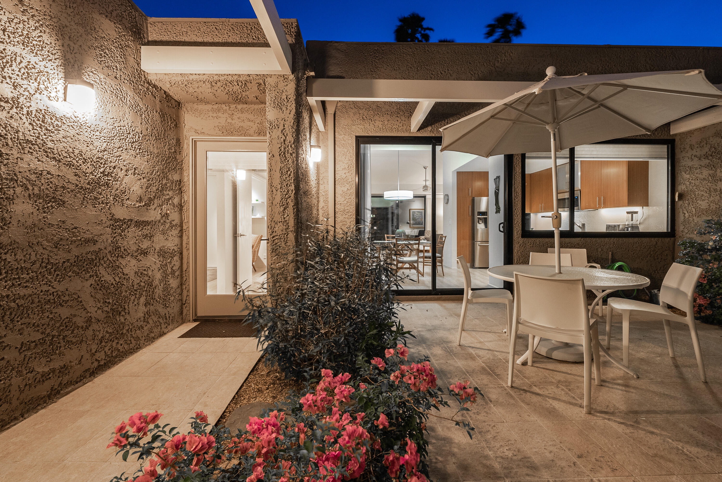 Welcome to your dream retreat in Sunrise Oasis, Palm Springs! This exquisite 3-bedroom, 2-bathroom home offers breathtaking views of the San Jacinto Mountains and an unmatched living experience. Recently renovated from top to bottom, this home showcases meticulous attention to detail, ensuring both luxury and comfort. Step inside to discover an open floor plan accentuated by high ceilings, recently installed premium energy-efficient double-pane windows and doors throughout, and an abundance of natural light. The state-of-the-art surround sound system and new Pergo flooring throughout add a touch of modern sophistication. The custom kitchen is a chef's delight, featuring high-end appliances, sleek cabinetry, and quartz countertops. The insulated primary bedroom suite is a serene sanctuary with mesmerizing views, recessed lighting, and ample closet space. The spa-inspired en-suite bathroom boasts a walk-in shower, dual vanities, and elegant finishes. The third bedroom offers versatility as a guest room or home office. Full size washer and dryer has been relocated INSIDE the condo. Outside, the private patio is perfect for entertaining or relaxing, with stunning mountain views and direct access from the living areas. The one-car garage has been fully renovated and includes additional storage. Multiple guest parking locations available. Optional fully furnished down to the last detail available. Located just minutes from downtown Palm Springs, Sunrise Oasis is a low-density community with beautifully maintained greenbelts, three resort-style swimming pools, and two tennis courts. Cont...Interested in this Listing?