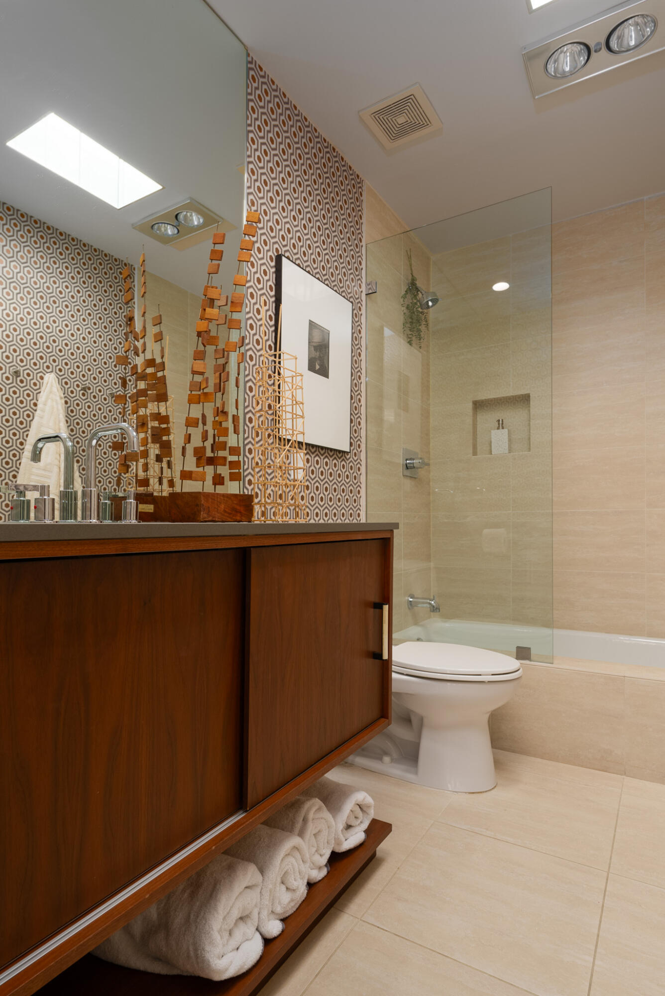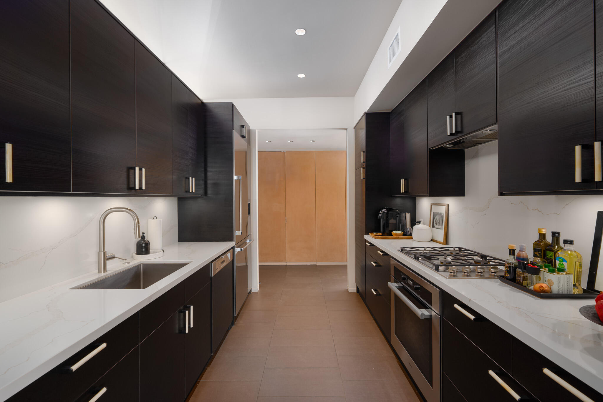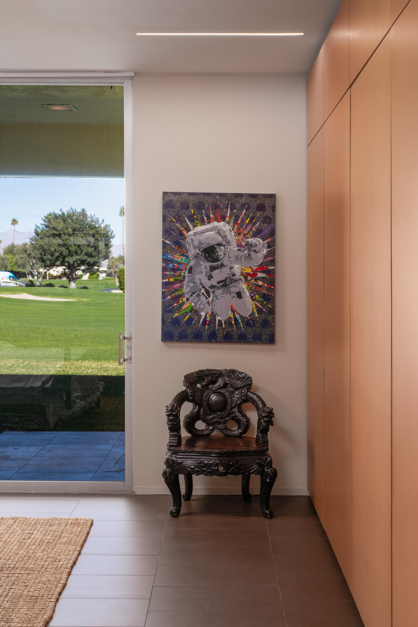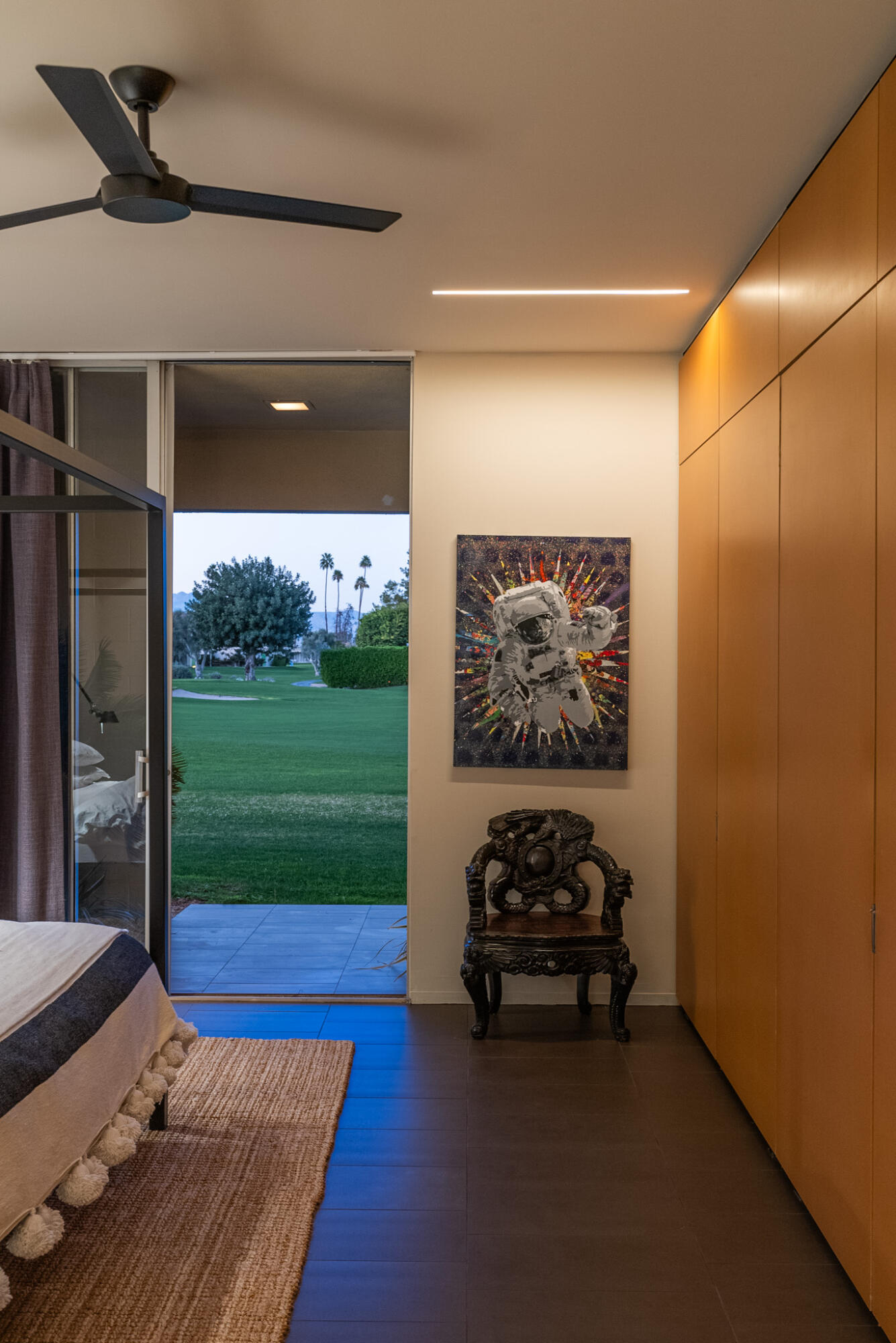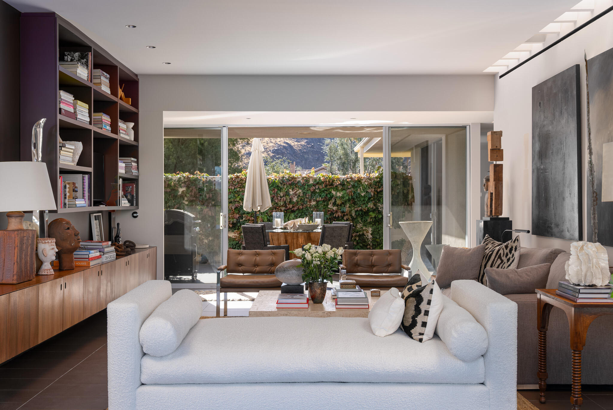 Embrace the iconic Palm Springs Mid-Century lifestyle in the coveted Seven Lakes Country Club. Situated in a prime location with breathtaking triple fairway views, this architectural gem, designed by renowned modernist architect Richard Harrison, epitomizes desert luxury. Step into a sun-drenched living space, where natural light pours in through a dramatic linear skylight that stretches across the living room. A custom cantilevered rosewood credenza thoughtfully divides the living and dining areas, adding a touch of artistry and sophistication. Each room seamlessly connects to the outdoors, with floor-to-ceiling sliders that open onto either a serene private patio or a lush inner courtyard--perfect for year-round indoor-outdoor living. The home's porcelain tile, laid in a striking ashlar bond pattern, exudes contemporary elegance while flowing effortlessly from interior spaces to exterior tranquility, creating a harmonious connection to the surrounding landscape. At the heart of the home, a modern chef's kitchen awaits, outfitted with premium Miele and Thermador appliances and custom wooden cabinetry crowned with sleek new quartz countertops--an ideal space for culinary creativity. New ceiling fans and discreet linear HVAC diffusers ensure optimal comfort in every room. Both spacious bedrooms feature lacquered cabinetry, built-in shelving, and ample closet storage, offering a blend of practicality and style.This exceptional residence is the ultimate retreat, where refined design and luxury living converge in one of Palm Springs' most desirable communities.Interested in this Listing?
