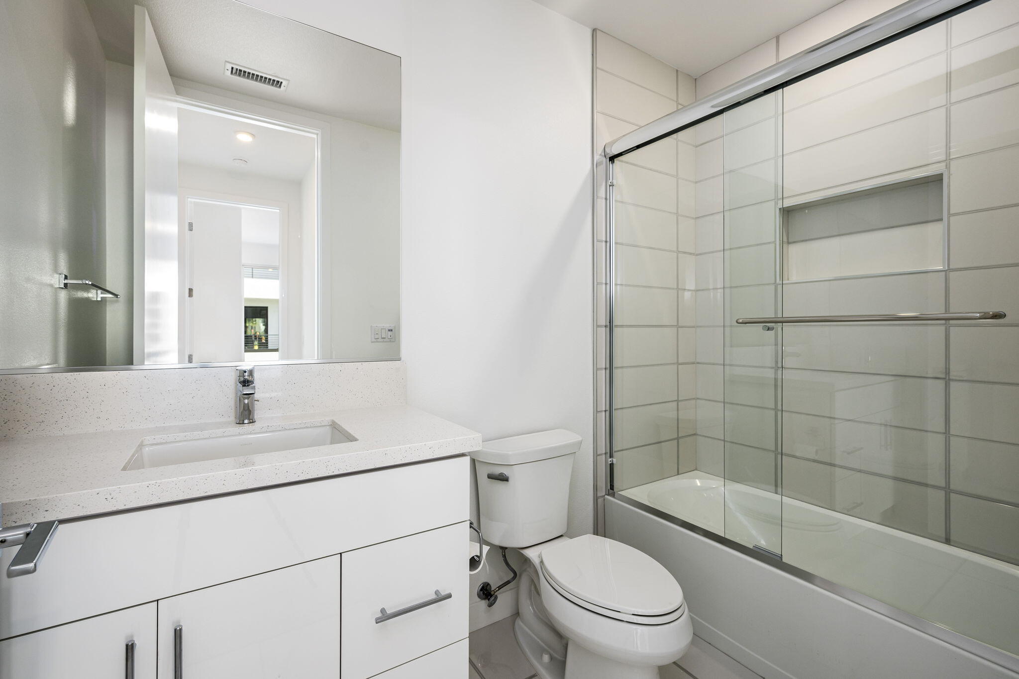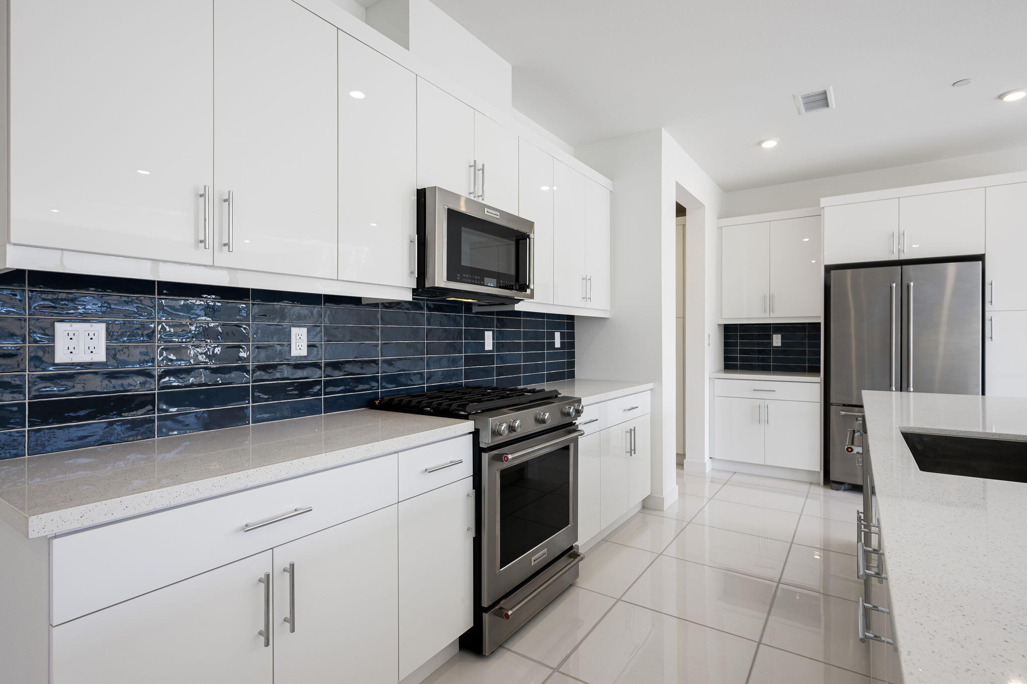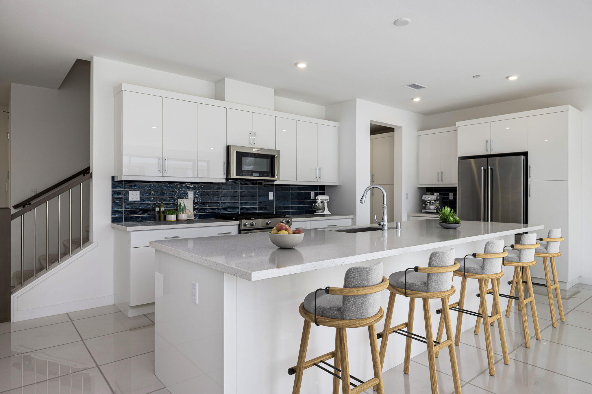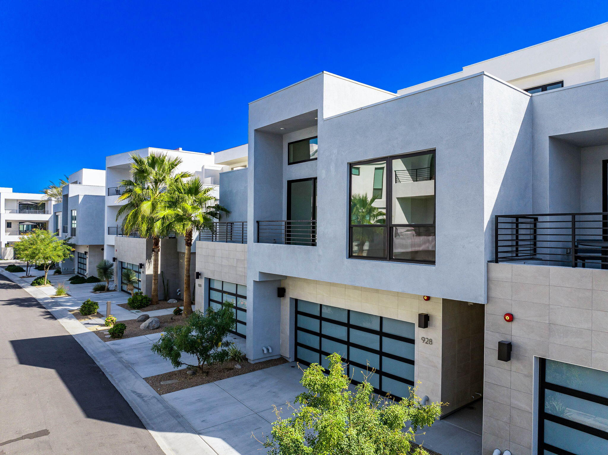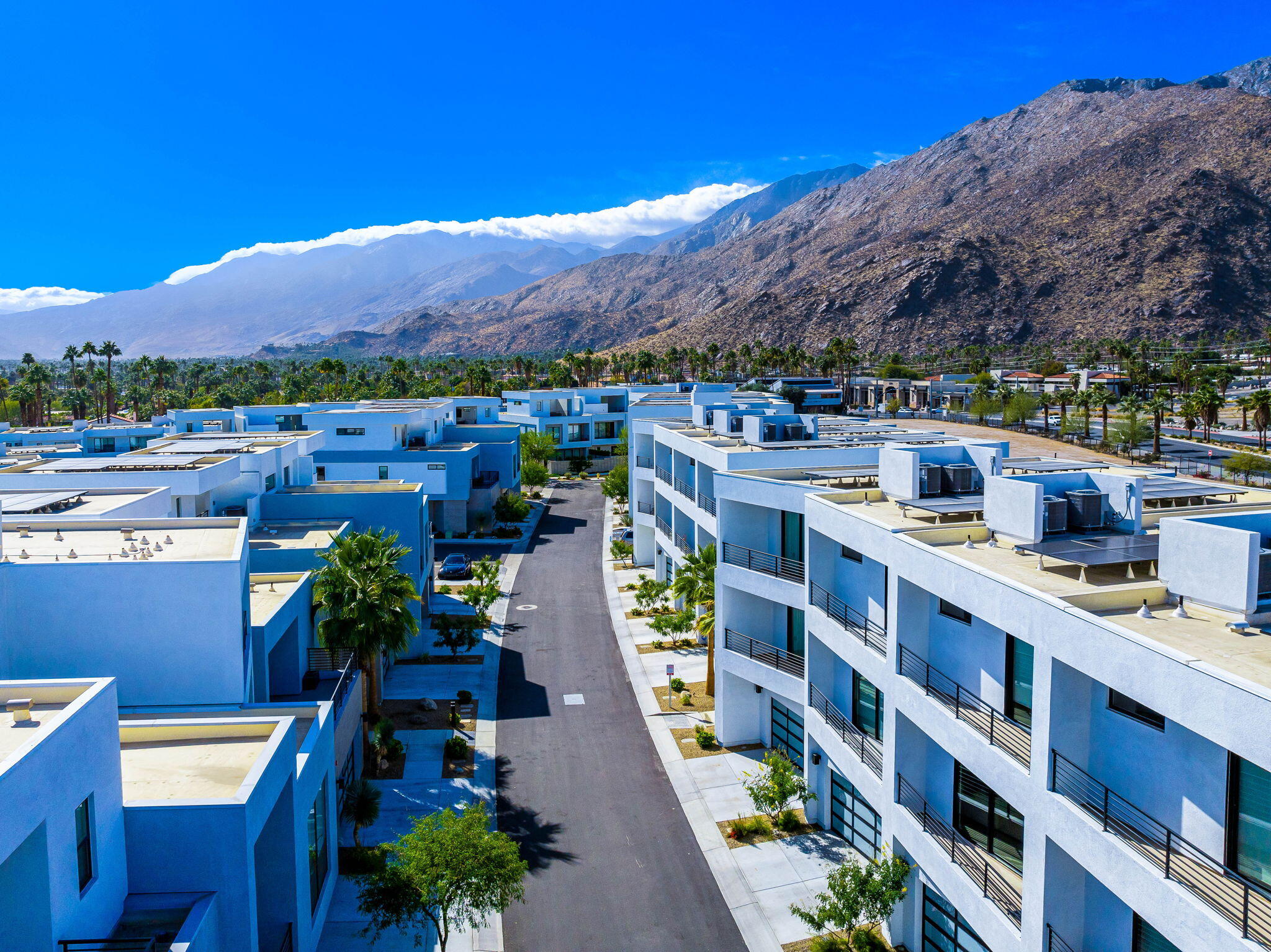 Experience the best of Palm Springs living in this stunning contemporary home located in Cody Place, a premier gated community just moments from downtown. Enjoy the convenience of being within walking distance of top rated restaurants, vibrant nightlife, and shopping, all while indulging in resort style amenities. This exquisite multi-level residence is designed for modern comfort and efficiency, featuring an owned solar system, a finished two-car garage with epoxy flooring, EV charging, and a dual-zone HVAC system for year-round comfort. Step inside to find a custom-upgraded kitchen with a spacious island, perfect for entertaining. The open concept first level is accentuated by large custom tile flooring and sliding stack doors that seamlessly extend the living/dining space to an outdoor area, ready for your personal touch. A grand staircase leads to the second floor, where a loft with soaring ceilings and clerestory windows offers breathtaking west-facing mountain views. This flexible space can serve as a den, media room, or home office. The second floor also features a laundry room, a guest bedroom with an adjacent bathroom, and a primary suite boasting southern mountain views of Southridge, with a spa-like ensuite, and a spacious walk-in closet. The highlight of this home is the third-level covered rooftop deck, perfect for entertaining or relaxing while taking in the breathtaking views. The home is also prewired for all your media and electrical needs, ensuring seamless connectivity throughout. Cody Place offers residents exclusive access to a beautiful clubhouse, two resort-style pools, including an olympic sized lap pool, a large spa, an outdoor fire pit, and a dog park. Don't miss this opportunity to own a luxurious, energy-efficient home in one of Palm Springs' most desirable communities. In the heart of the city, this is Cody Place!