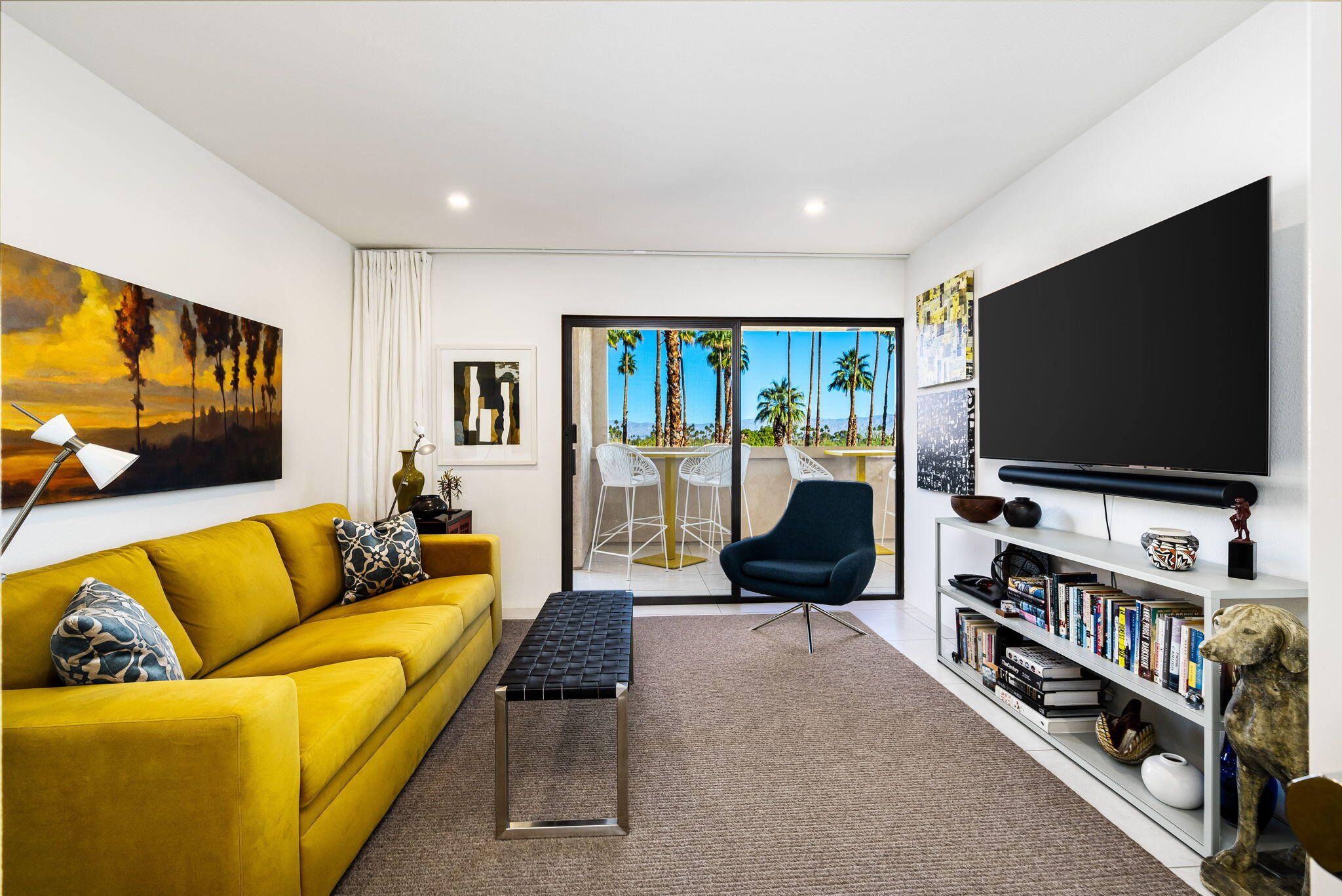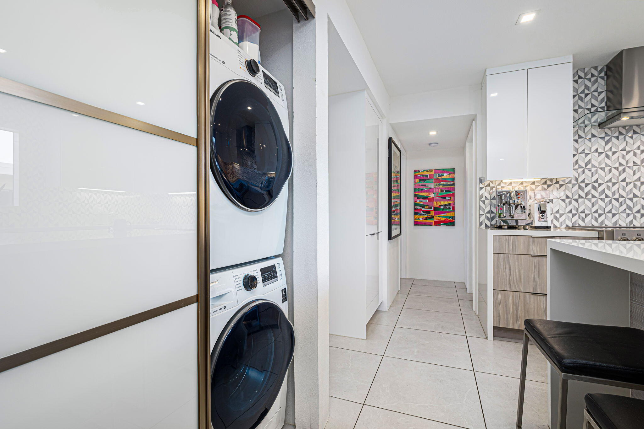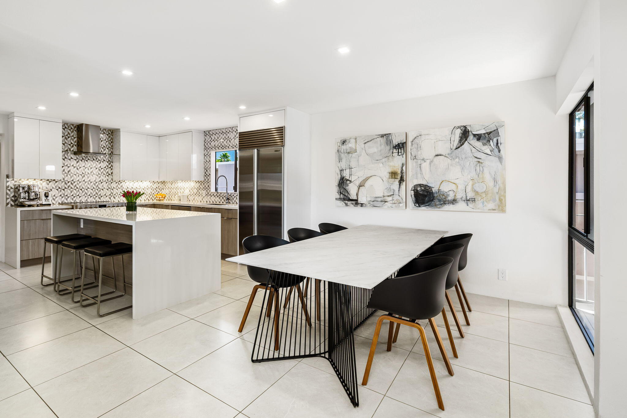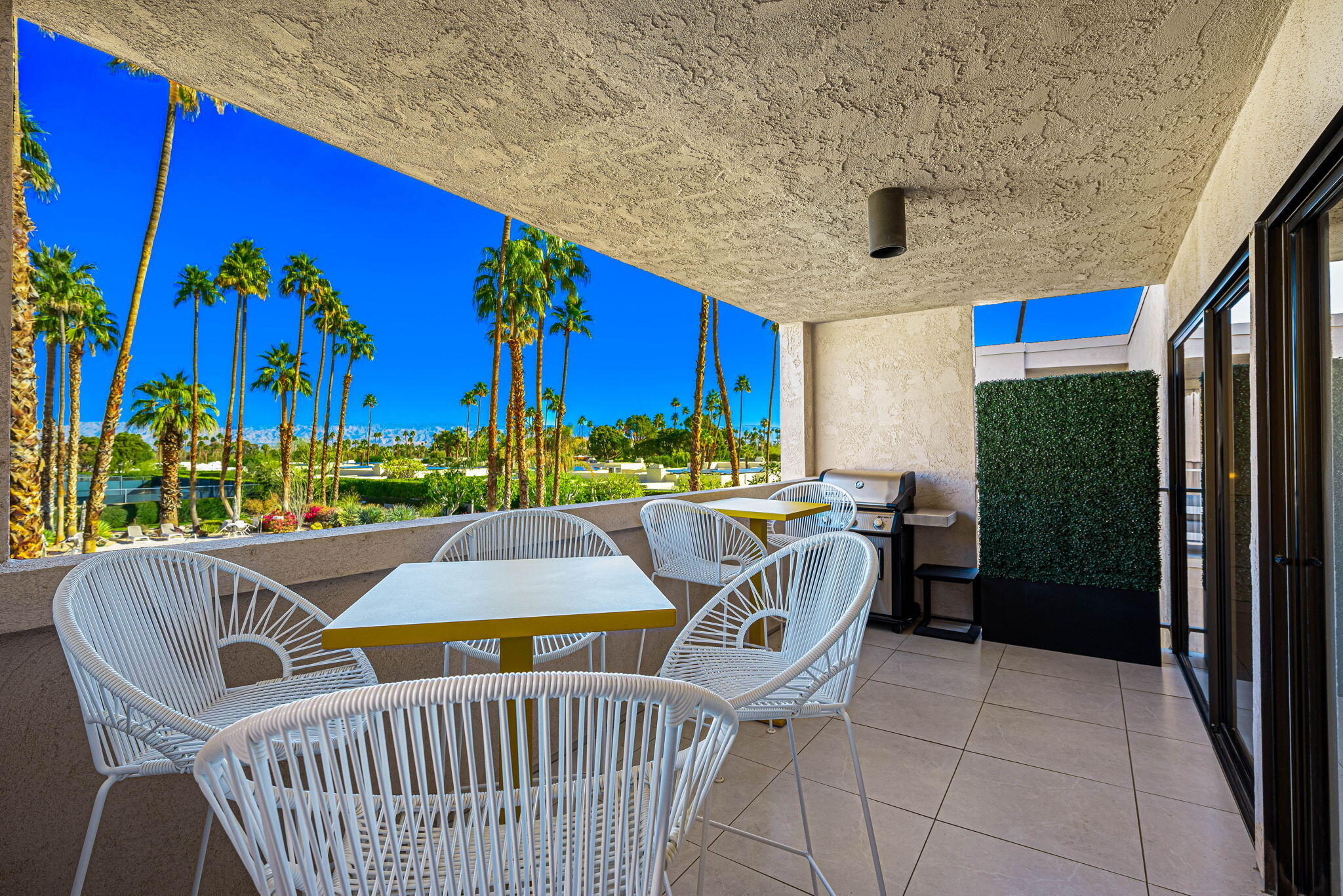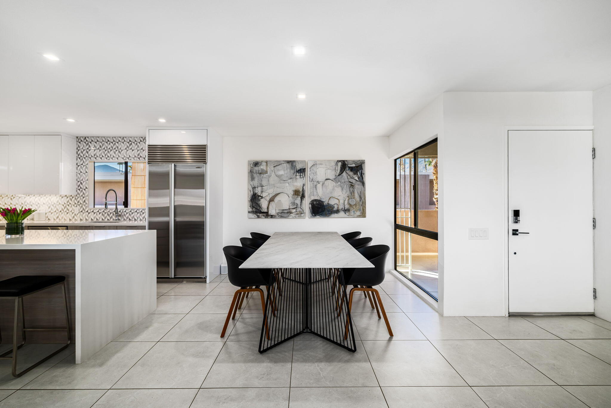 You're gonna love this spectacular mid-century residence. This top-floor unit is extensively remodeled, bringing out the best in modern design. Architect Donald Wexler's talents shine in this historic hidden gem, the Twin Springs community. Feel the clean lines and sleek design from top to bottom. A spacious living room extends onto the large patio area. A chef's ideal space is created in this kitchen with high-gloss cabinetry, full-slab quartz countertops, an oversized island with a microwave drawer and wine/beverage center, Sub-Zero built-in refrigerator, Bosch and Fulgor-Milano appliances and a separate pantry. Large primary suite with custom-built-ins, a walk-in and wardrobe closet, a spa-like bath with a walk-in shower, and a jetted free-standing tub. Additional bedroom, a dedicated office space, and a second full bath. Renovations include imported 24x24 inch porcelain tile floor throughout (with installed sound barrier), custom lighting, Lennox HVAC system, new duct work, and new water heater. Meticulously maintained gated community offers a clubhouse with pool table, sauna, fitness and recreation area, two sparkling pools and spas, tennis/pickleball courts, assigned covered parking, and private storage unit. Featured on the 2025 Modernism Week Home Tour.Interested in this Listing?
