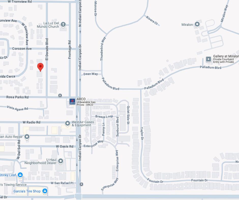 From N Indian, make a right on Corazon Avenue, and left on El Dorado. The lot is on the right. |