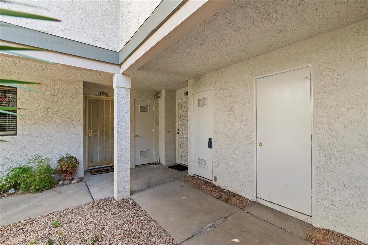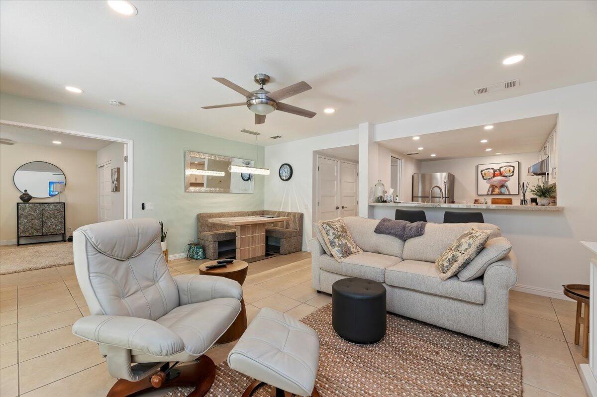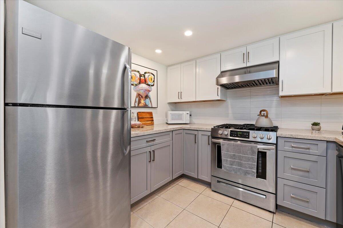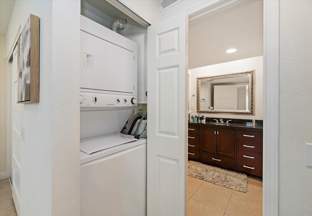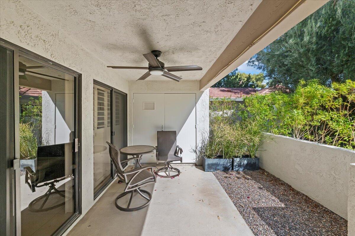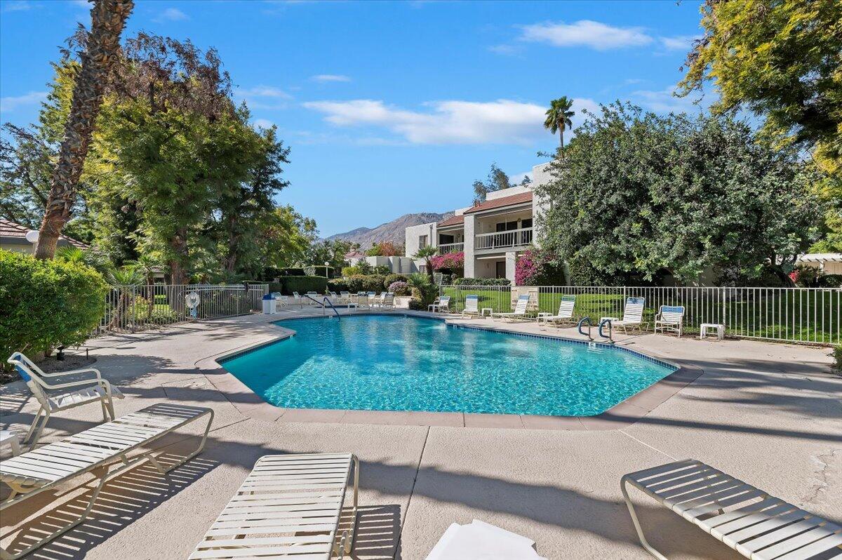 Embrace the Palm Springs lifestyle with this beautifully remodeled one-bedroom condo in Riviera Gardens. Fully furnished and move-in ready, this lower-level unit, accessible through Gate #4, offers the perfect blend of comfort and style. Step into a brand-new kitchen featuring slab granite countertops, a convenient breakfast bar, and modern recessed lighting. The ceramic tile flooring throughout not only adds elegance but also ensures easy maintenance. The dining area is thoughtfully designed to maximize space, while plantation shutters provide a touch of sophistication and privacy. The primary bedroom opens to a private patio through a sliding door, creating a seamless indoor-outdoor living experience. You'll love the primary bath with its large shower and sleek, modern vanity, and the convenience of a stacked washer and dryer discreetly located in the primary bedroom. Just around the corner, the community pool invites you to unwind and soak up the sun. With easy access from the street side and reasonable HOA dues, this condo is more than just a home -- it's your gateway to a relaxed desert lifestyle. Schedule your private showing today and discover why this is the perfect place to call home!