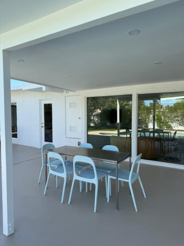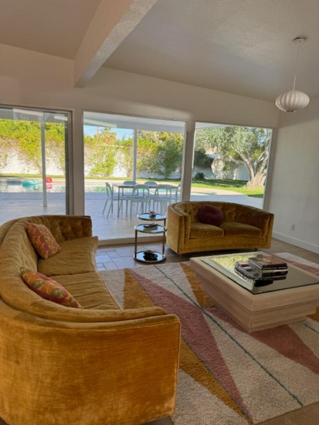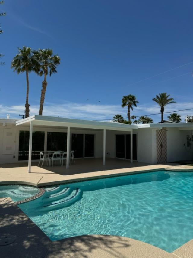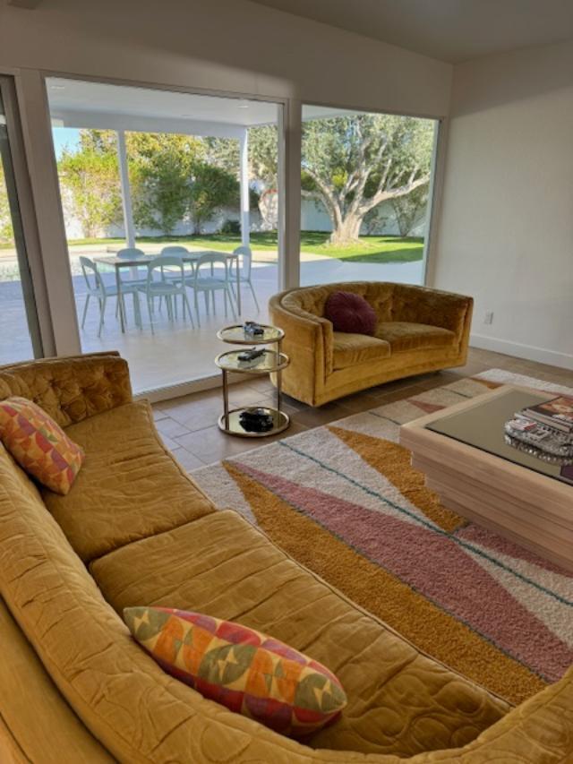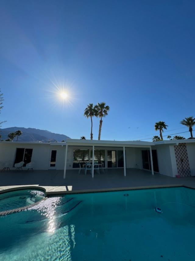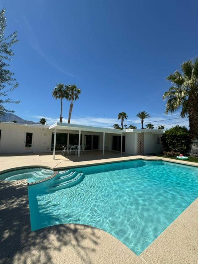 Here's your chance to lease a midcentury home in beautiful Palm Springs with lots of natural light. This home has been totally remodeled from the roof to the pool with new AC/Heater system & newly installed solar. Utilities are included. The interior boasts of 3 bedrooms & 2 remodeled baths, with walk in showers with an extra 500 sq ft bonus room with it's own bath, bar, pool table, table game & AC. & could be used as a game room, office, another bedroom, with a separate entrance. The kitchen has been totally remodeled with a new stove, new LG dishwasher, lots cabinets, 3 large pantries & SMEG refrigerator. There is a stackable washer/dryer included, along with pool service & gardener. Enjoy wonderful days & nights under the covered patio with recessed lights, in the newly redone large pool & spa, new equipment with lighting & under the moonlight,, with outdoor hot/cold shower.. There are trees, which includes lemon tree, grass and a block wall all around the backyard for privacy and a great view of the mountain. Home is well maintained and looks brand new. There is more! This is a must see. Look for the pink door/pink mailbox on a 1/4 acre corner lot. Very peaceful, beautiful neighborhood. Call for your private showing. Home will be available for 6 months starting May 15. Thanks for looking!Interested in this Listing?