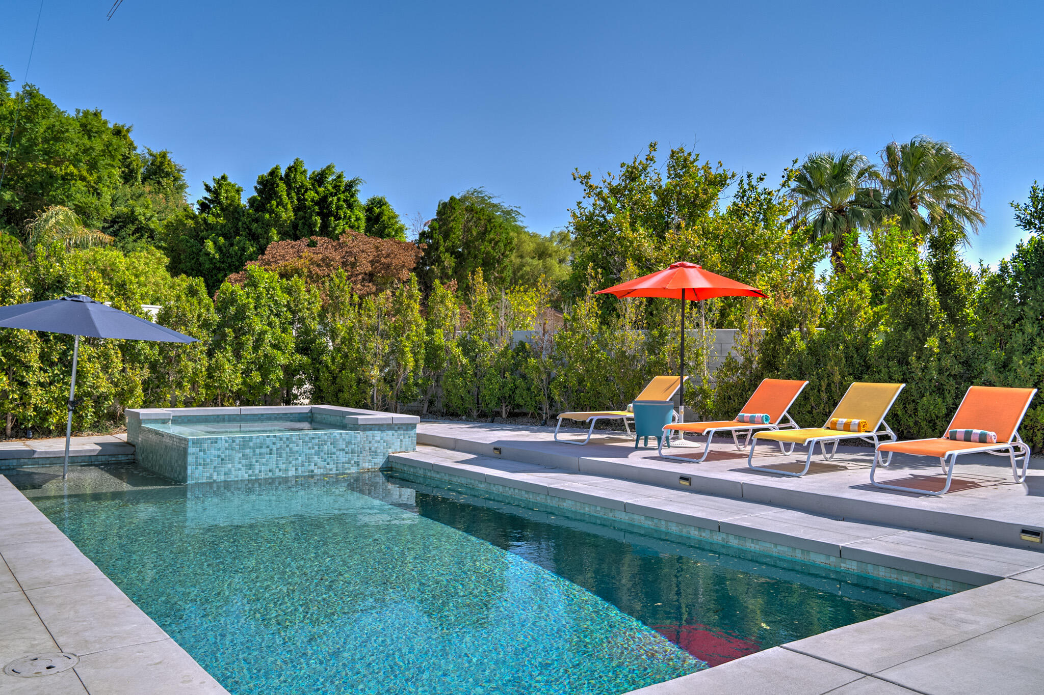Come make this unique, mid-century modern home that has been completely remodeled from top to bottom with impeccable design and smart home systems yours! Expansive patio wrapping the pool, spa and outdoor fire-pit with built in patio umbrellas. Beautiful desert landscape, custom lighting, block walls, fencing and gas BBQ! Originally built in 1968 but lives and feels like a brand new! Being offered turn-key furnished! Ideally located close to Palm Springs north-end Design Districts shopping and restaurants.Interested in this Listing?