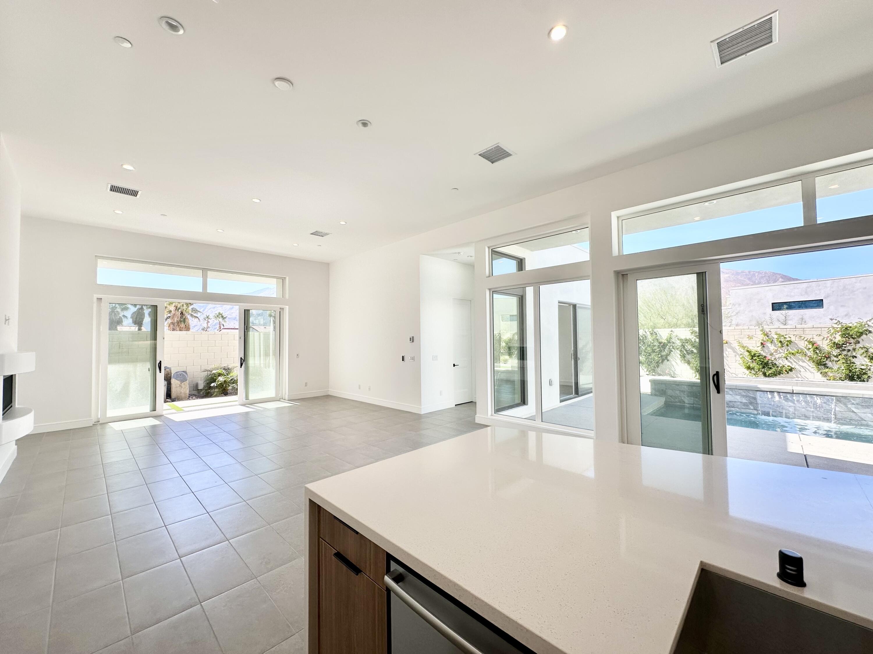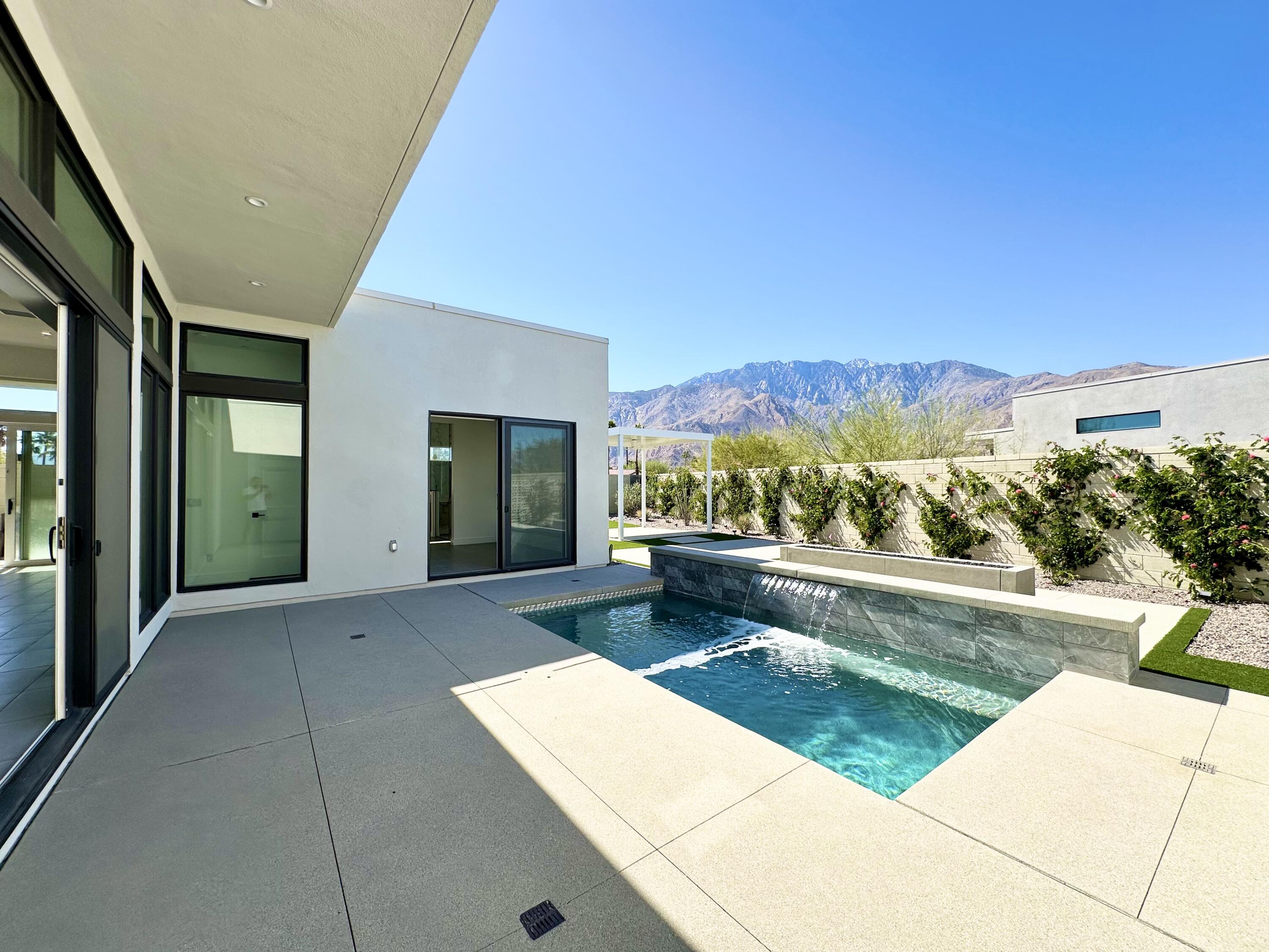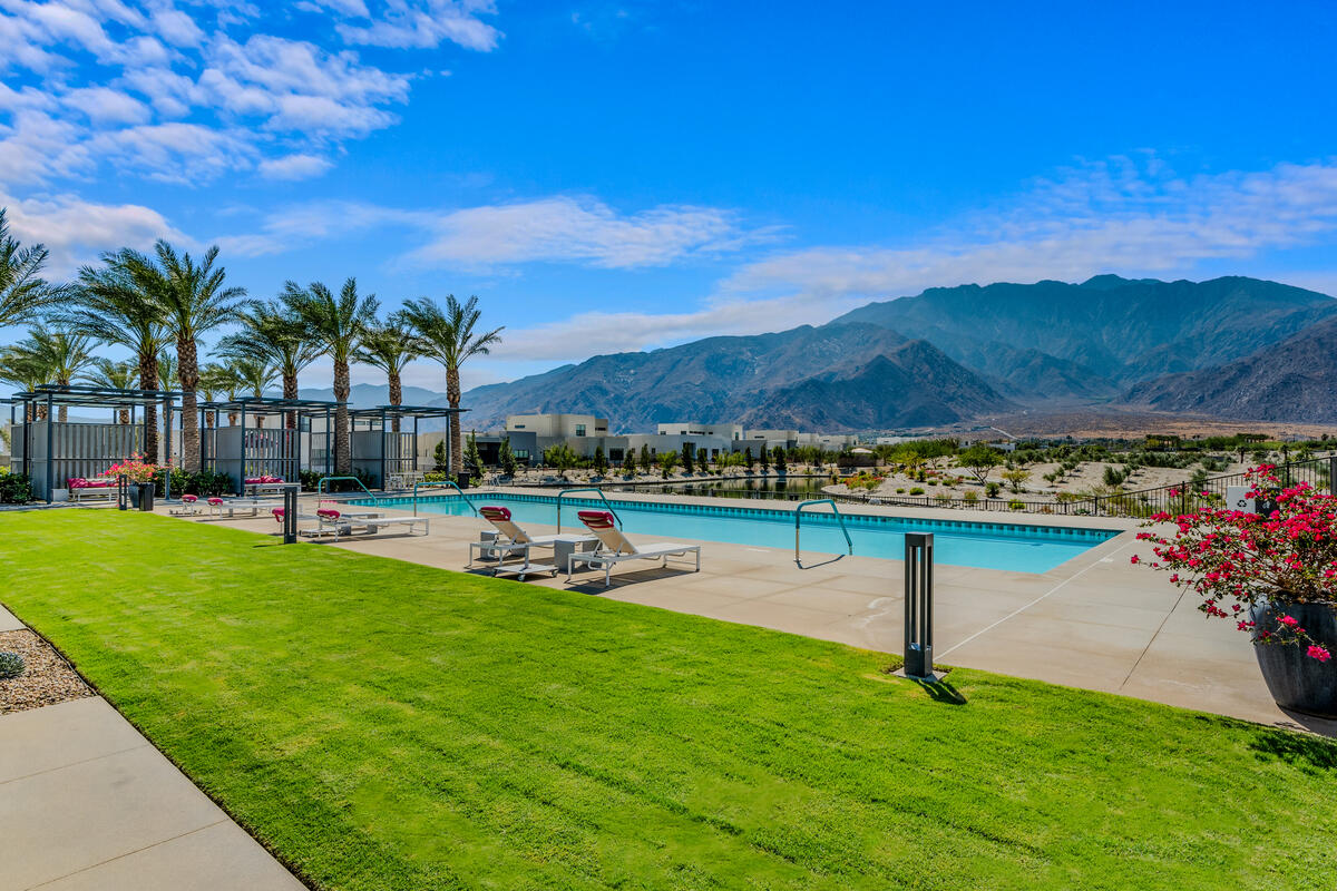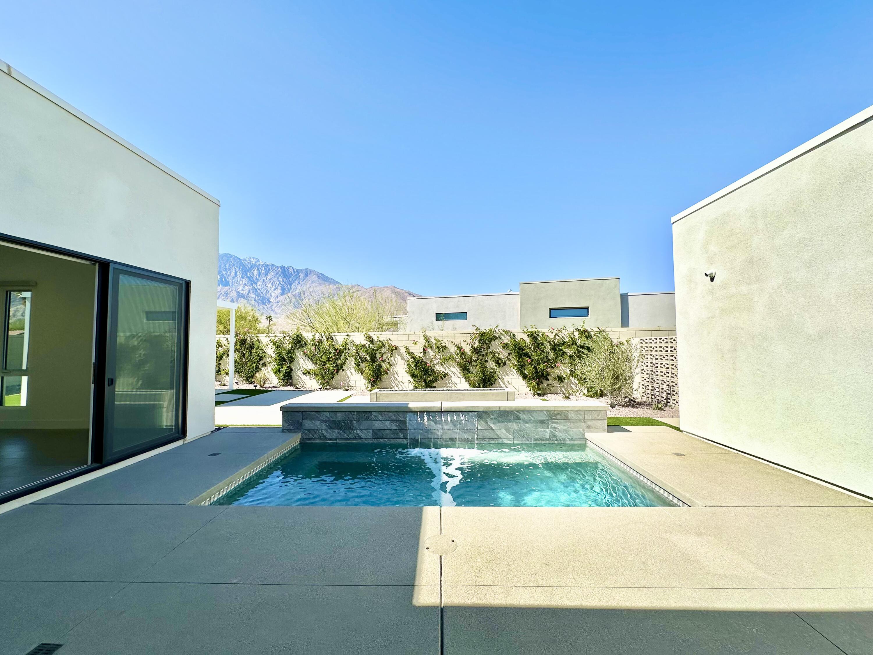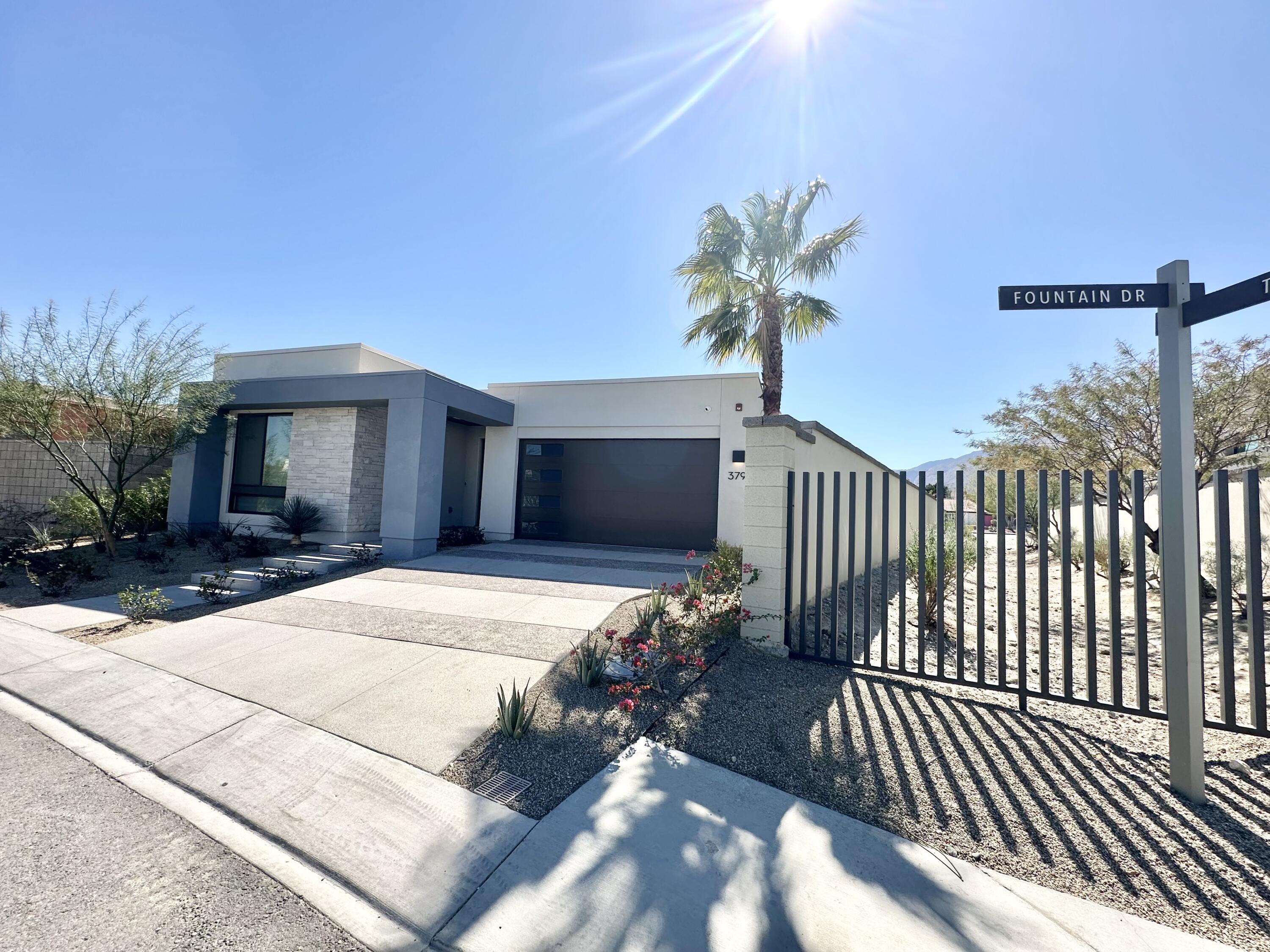 Welcome to 379 Fountain Drive, where modern meets luxury and lifestyle. Located in the award-winning Miralon community, inspired by resort living at its best, and minutes from Downtown Palm Springs. Featuring one of the larger lots in Miralon with magnificent views of the San Jacinto mountains. This residence is brand new and never lived in, offering the modern luxury and the indoor-outdoor living experience everyone in Palm Springs loves. The interior has an open-concept floorplan design, the twelve-foot-high soaring ceilings, sliding glass doors in the living room and in the kitchen overlooking the pool area. Spectacular, spacious outdoors for dining and outdoor enjoyment, featuring lush mature landscaping, a fire pit, a sparkling spool pool, pergola, an outdoor shower, and mountain views. Miralon amenities offer olive groves, a state-of-the-art clubhouse with two pools, a spa, a fitness center, a yoga studio, a Wi-Fi cafe, a full-service bar, dog parks, a u-pick garden, a bocce ball court, a demo kitchen, a conference room, five lakes, and seven miles of walking trails.Interested in this Listing?