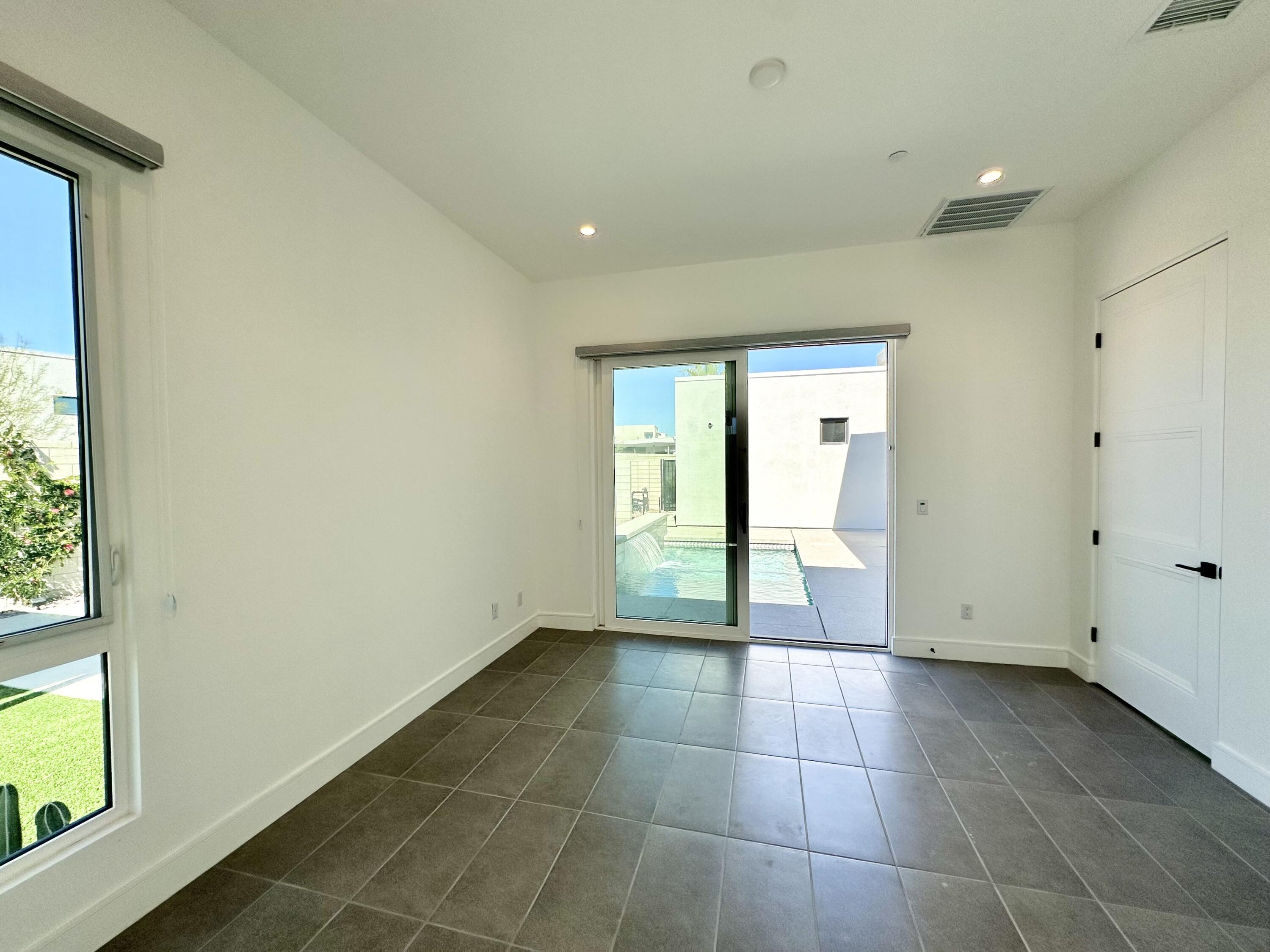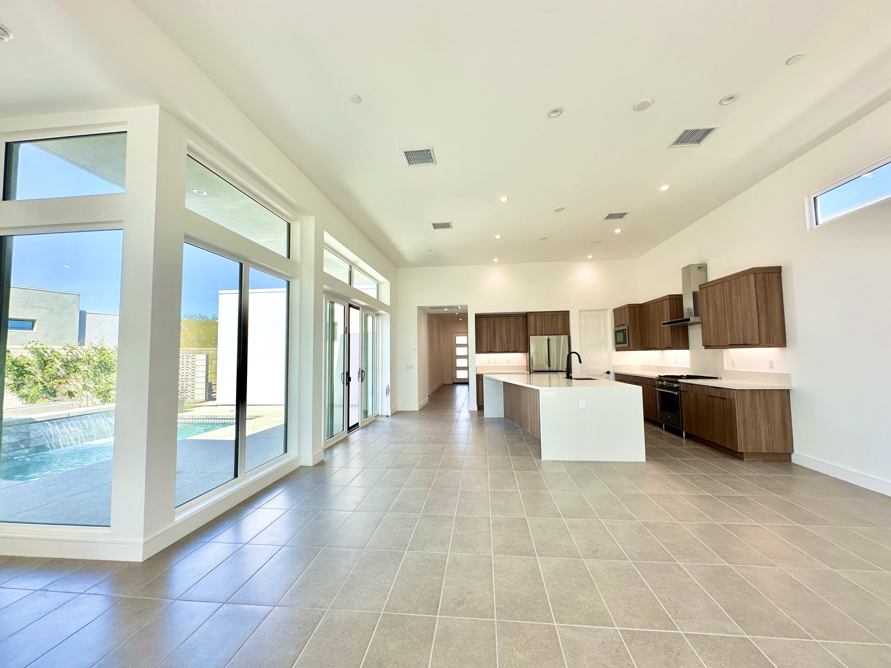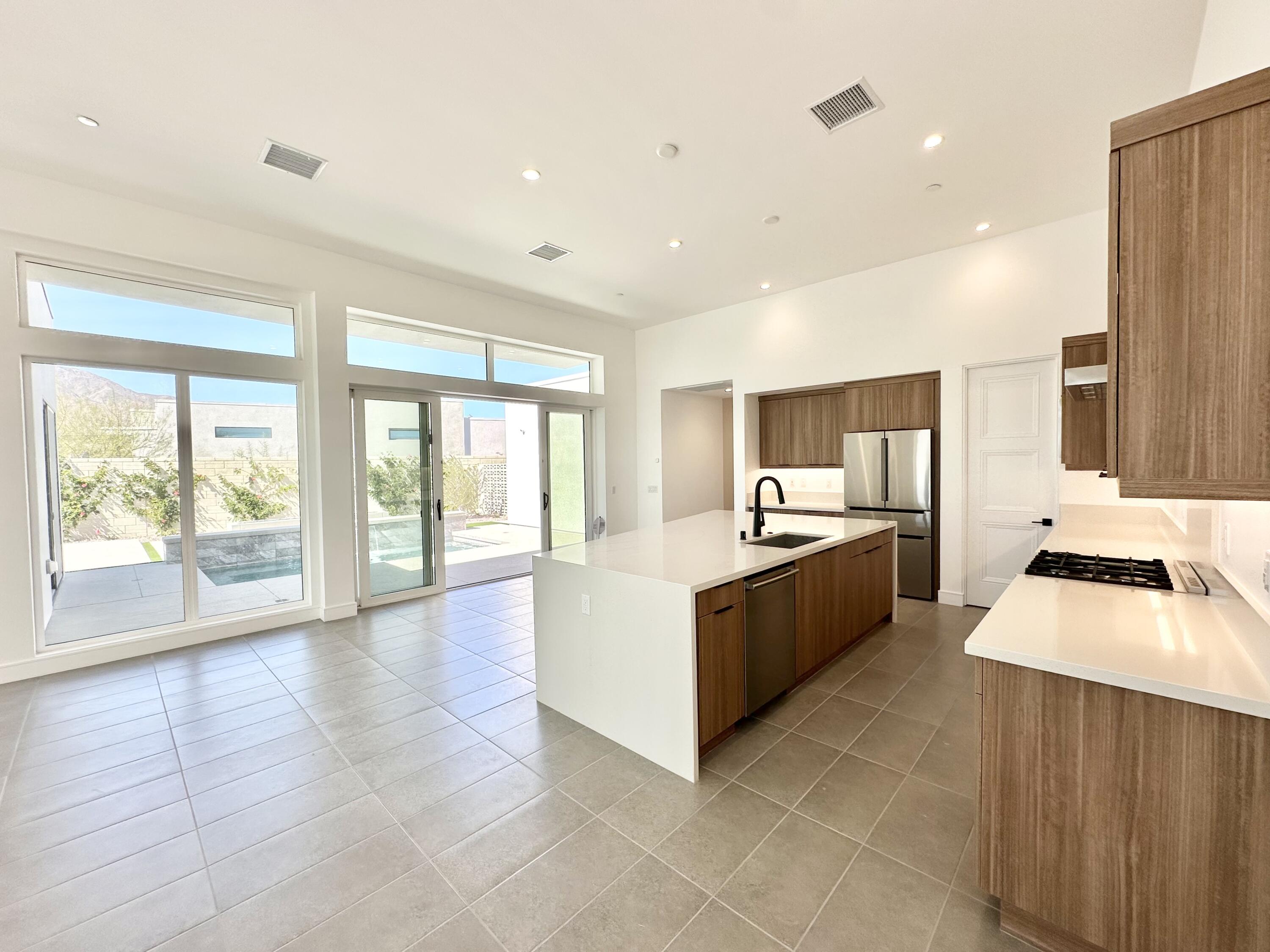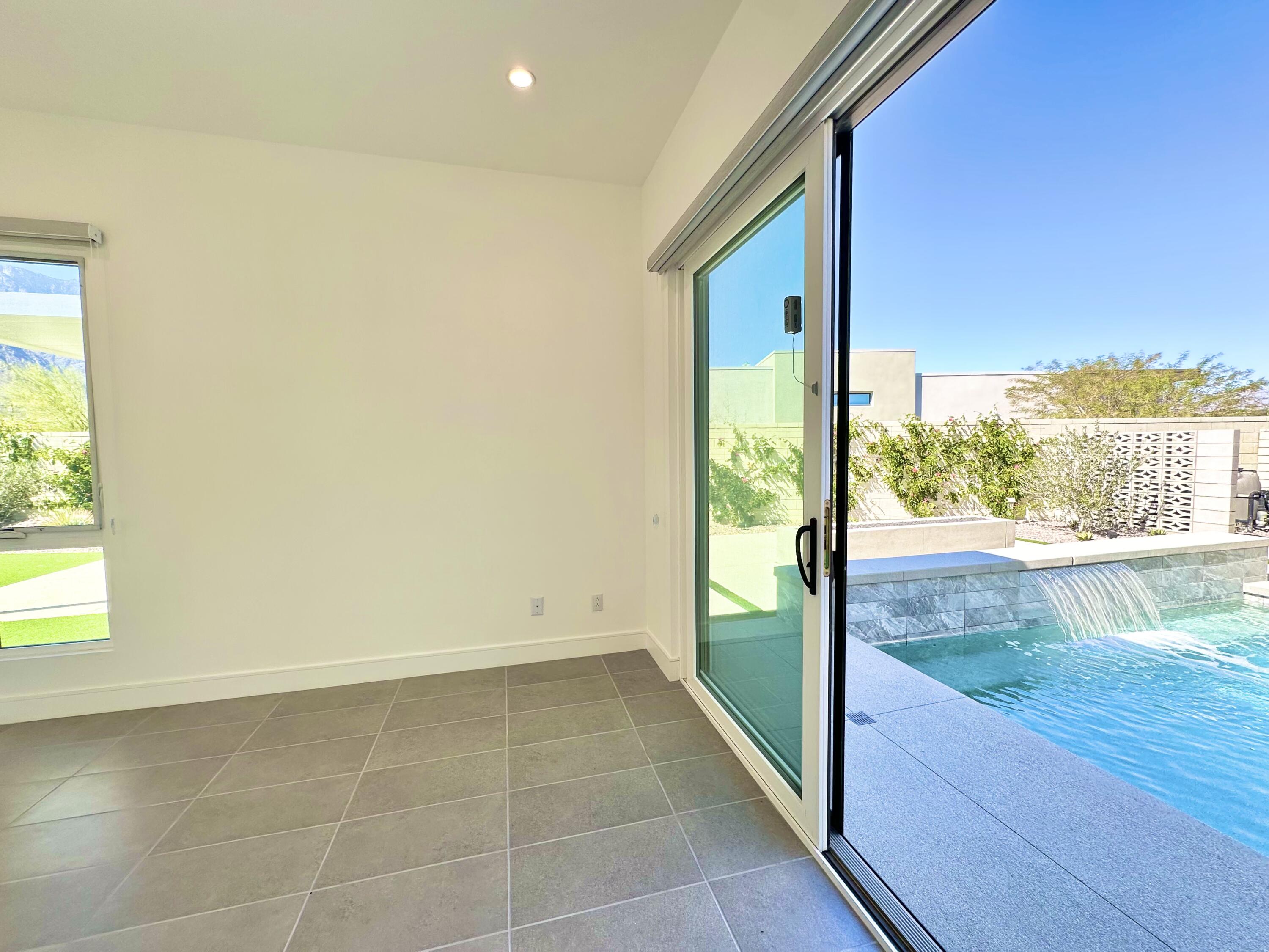 Welcome to 379 Fountain Drive, where modern meets luxury and lifestyle. Located in the award-winning Miralon community, inspired by resort living at its best, and minutes from Downtown Palm Springs. Featuring one of the larger lots in Miralon with magnificent views of the San Jacinto mountains. This residence is brand new and never lived in, offering the modern luxury and the indoor-outdoor living experience everyone in Palm Springs loves. The interior has an open-concept floorplan design, the twelve-foot-high soaring ceilings, sliding glass doors in the living room and in the kitchen overlooking the pool area. Spectacular, spacious outdoors for dining and outdoor enjoyment, featuring lush mature landscaping, a fire pit, a sparkling spool pool, pergola, an outdoor shower, and mountain views. Miralon amenities offer olive groves, a state-of-the-art clubhouse with two pools, a spa, a fitness center, a yoga studio, a Wi-Fi cafe, a full-service bar, dog parks, a u-pick garden, a bocce ball court, a demo kitchen, a conference room, five lakes, and seven miles of walking trails.Interested in this Listing?