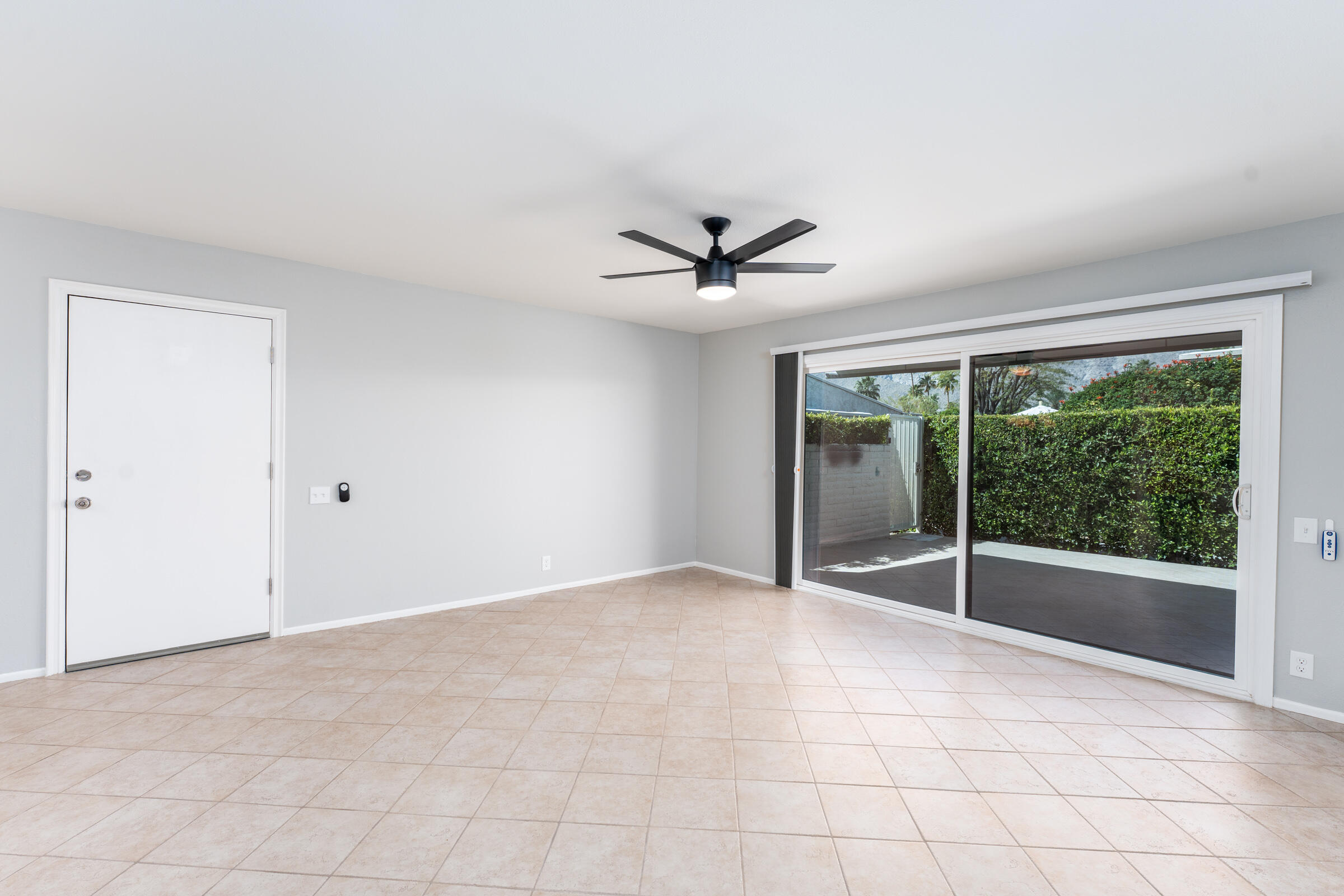 Spectacular annual rental opportunity on this fresh, remodeled unit at Ramona Villas in South Palm Springs. This fantastic condo is Fresh! With new tile floors & new window treatments. This condo also includes washer and dryer. New windows and doors enhance the upscale feel you'll enjoy. Single-level living (no one ''upstairs'') with a huge PRIVATE patio! You've never seen a condo with this much private outdoor space. Built In storage throughout the unit including two exterior closets. The main Bedroom suite features large closet and direct patio access. Remodeled bath has a walk-in Shower. The secondary bath, also remodeled, has a Shower. Enjoy all tile flooring except in the bedrooms, wood paneling stainless appliances, new ceiling fans and a total interior repaint. This gated community has a nice clubhouse with fitness room as well as a resort style pool and tennis courts. Be close to downtown Palm Springs and everything you want to do in a gate community with Privacy. Water and trash are included. Parking: There is an assigned carport space with a storage locker. Details: Offered unfurnished - Available April 1st So call today and find yourself in a ''like new'' property in beautiful South Palm Springs. Pets: small dogs okay - pet rent is $50 per pet per month. Fees: $350 Non-refundable cleaning fee $2900 refundable security deposit Tenant Pays electric/gas and Cable/internetEach occupant over the age of 18 must do a credit report tenant pays credit app fee. No Smoking on property Yearly rentals onlyWe strongly recommend you call us first before filling out the application and paying the fee. Thanks! West Facing PatioW/Remote Controlled AwningsRemodeled BathsWasher and Dryer In UnitQuiet Back of Complex LocationClubhouse with fitness room and Resort style PoolCovered assigned ParkingOutdoor Storage ClosetsUpgraded LightingBuilt In StorageFreshly PaintedBrand New Window TreatmentsWest Facing PatioW/Remote Controlled AwningsRemodeled BathsWasher and Dryer In