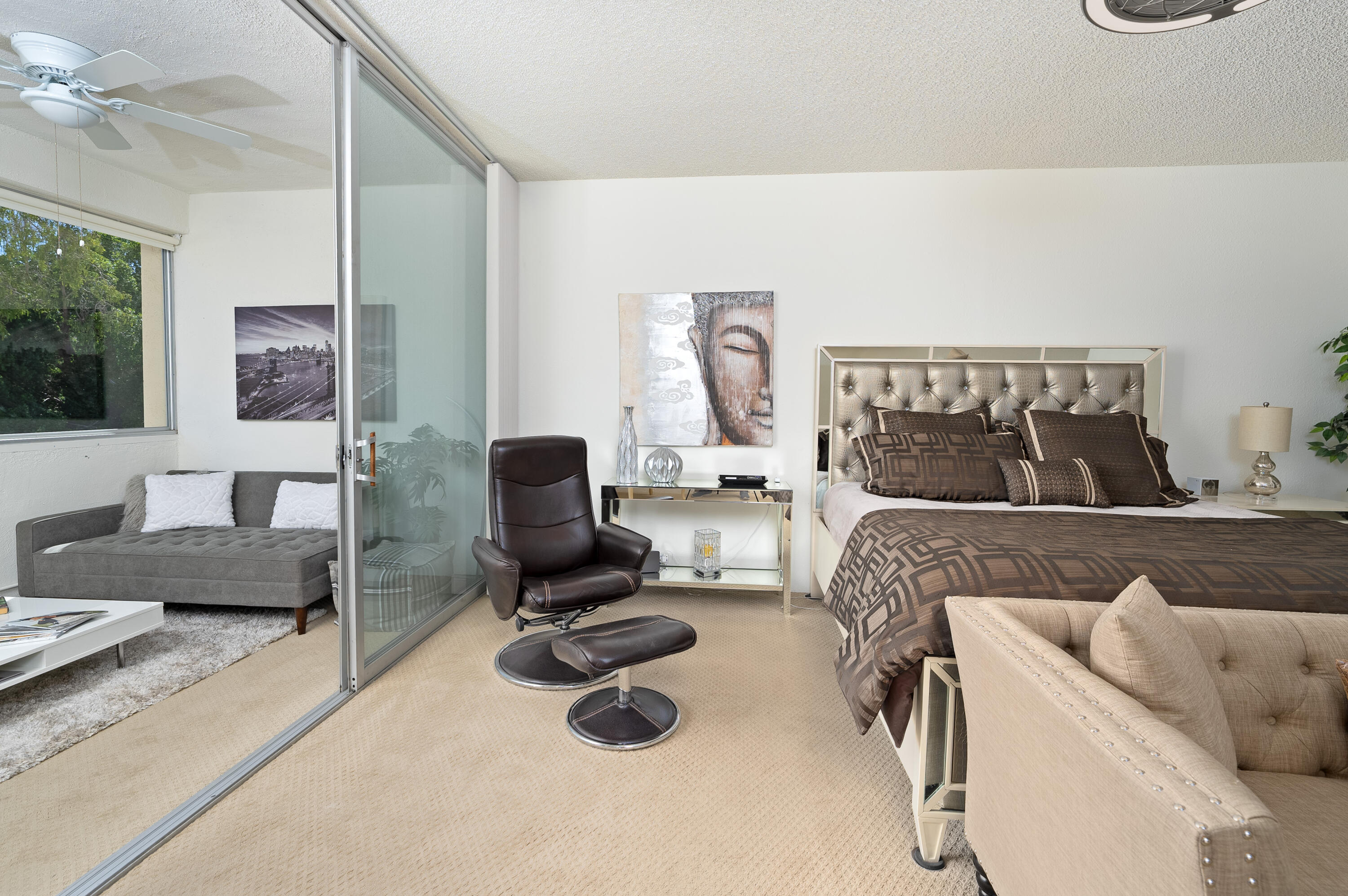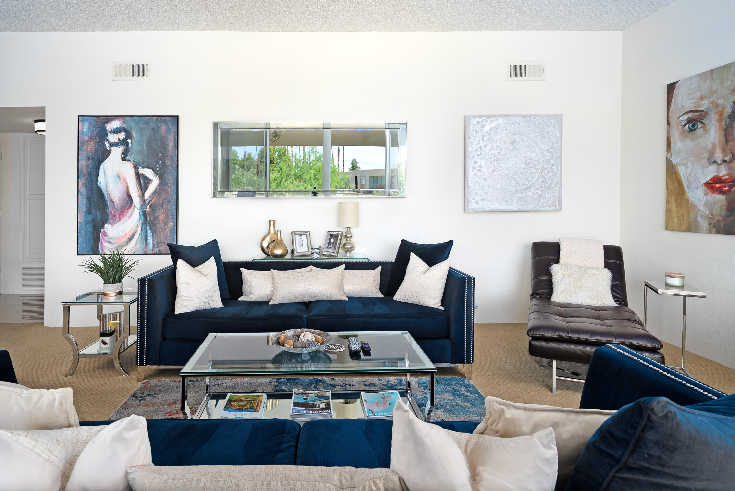 Luxurious 2-bed, 2-bath midcentury condo on the top floor of Seven Lakes Golf & Country Club available for long term lease. Over 1700 sq ft of living space in a private enclave overlooking the largest greenbelt, pool, and spa. Long-term lease available. Walk to renovated tennis/pickleball court. Spacious living areas with 10 ft sliders, integrated entertainment center, 65'' TV, and WiFi Bluetooth audio. Wake up to mountain views, custom closets in bedrooms, and a private two-car garage. Architectural gem by Rick Harrison, steps from William Cody's clubhouse and The Parker Hotel. Golf, pools, tennis - all in the exclusive 24-hour guarded and gated Seven Lakes community in Palm Springs!Interested in this Listing?