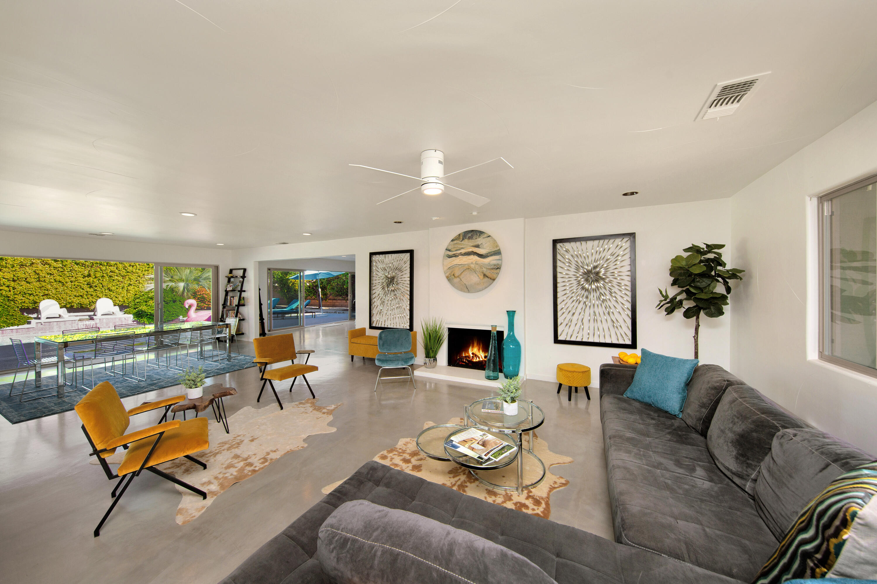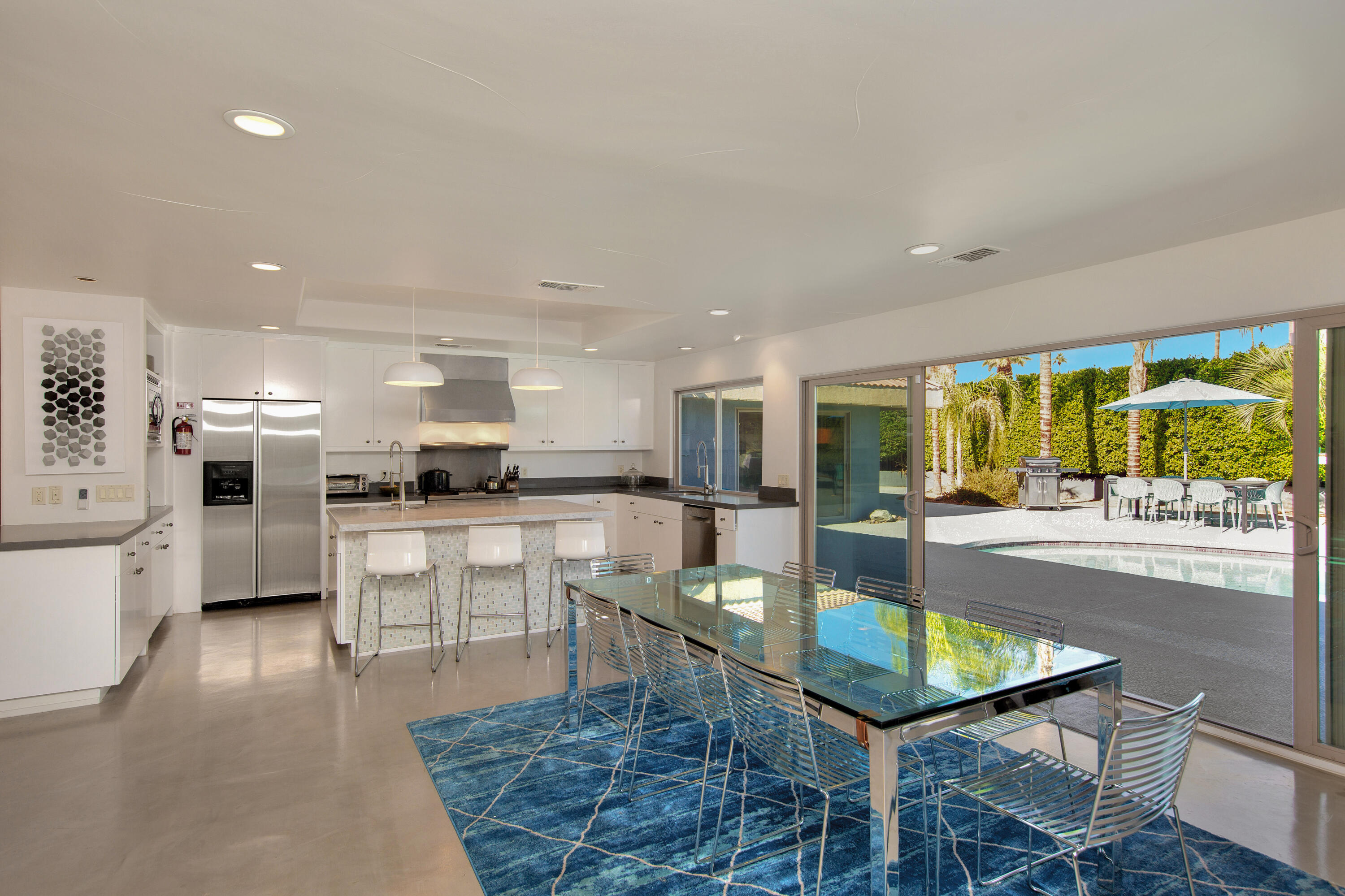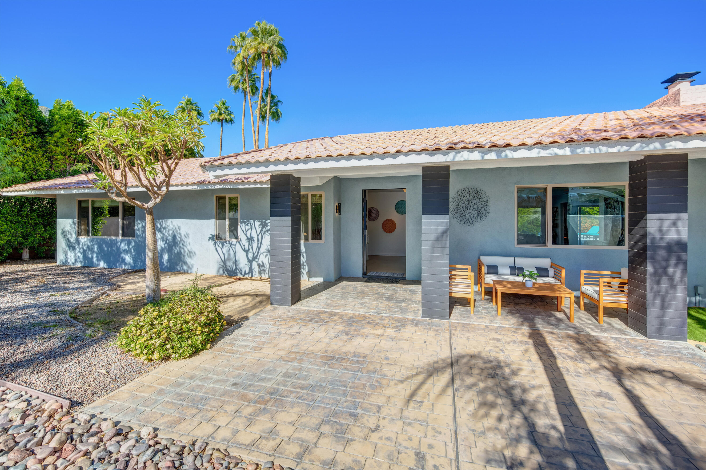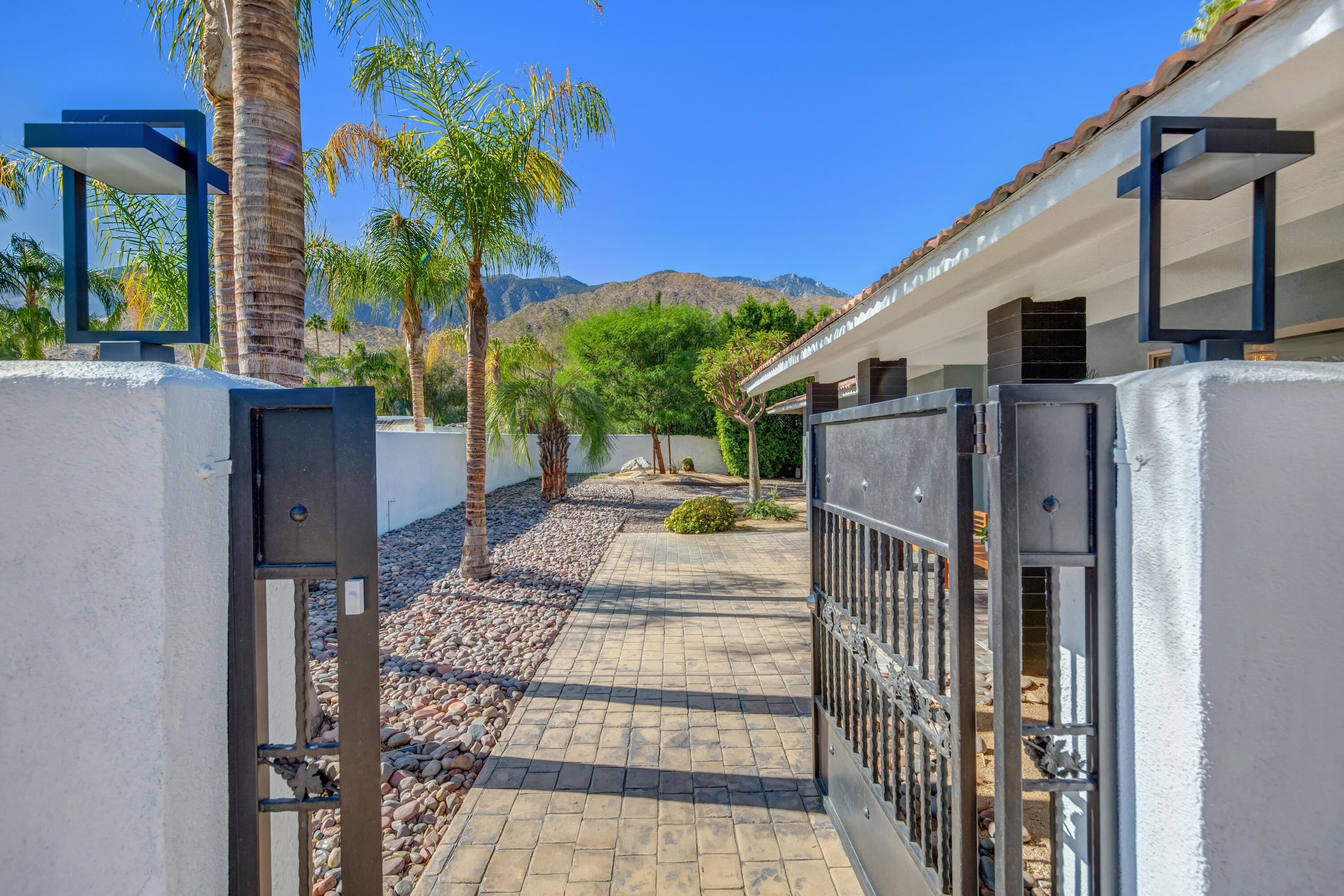 Desert retreat: 4 bedroom, 3 - bath home with pool, spa and mountain views in the south Palm Springs neighborhood of Indian Canyons. Relax at this cool & comfortable, 2,900-square-foot 1967 retreat with heated pool, spa and mountain views just steps from the public Indian Canyons golf course and grill! This property is within walking distance of popular spots including the Ace Hotel, Moorten Botanical Gardens, Mr. Lyon's restaurant and the beautiful hiking trails of the Indian Canyons. Enter through the private walled front garden with mountain views, the perfect setting to take in quiet morning vistas of the San Jacinto peaks. Enjoy the expansive, 600 square-foot living-dining-media space with wall-to-wall windows to the pool. Amenities include 85' smart TV, foosball table, dining table for 8 and counter bar. The large chef's kitchen with dual sinks, espresso machine, and large island makes meal preparation easy and social. Outdoors, you'll find a large and totally private outdoor space for entertaining. Enjoy the pool and hot tub/spa, outdoor shower, and Char-broil gas grill. After a long day retreat to one of four comfortable bedrooms all with Smart TVs, views and large closets. Casita: King bed, 55'' LG Smart TV with private entrance from pool area/side yard. Primary Bedroom: King bed, 75'' Smart TV, ensuite bathroom with rain shower large enough for 2. Bedroom 3: Queen bed; 32-inch Smart TV. Bedroom 4: Queen bed; 55-inch Smart TV. Available short term for $8,950/month.Interested in this Listing?