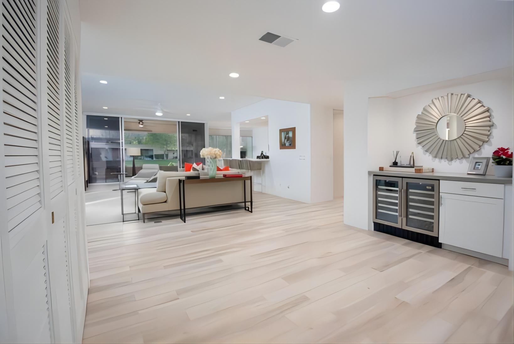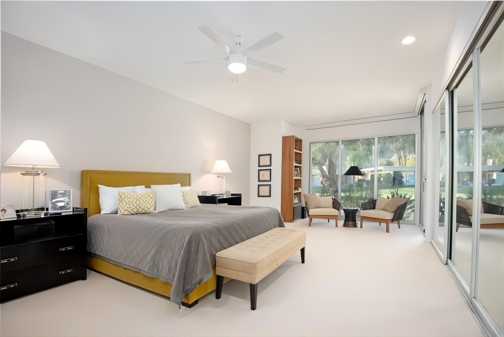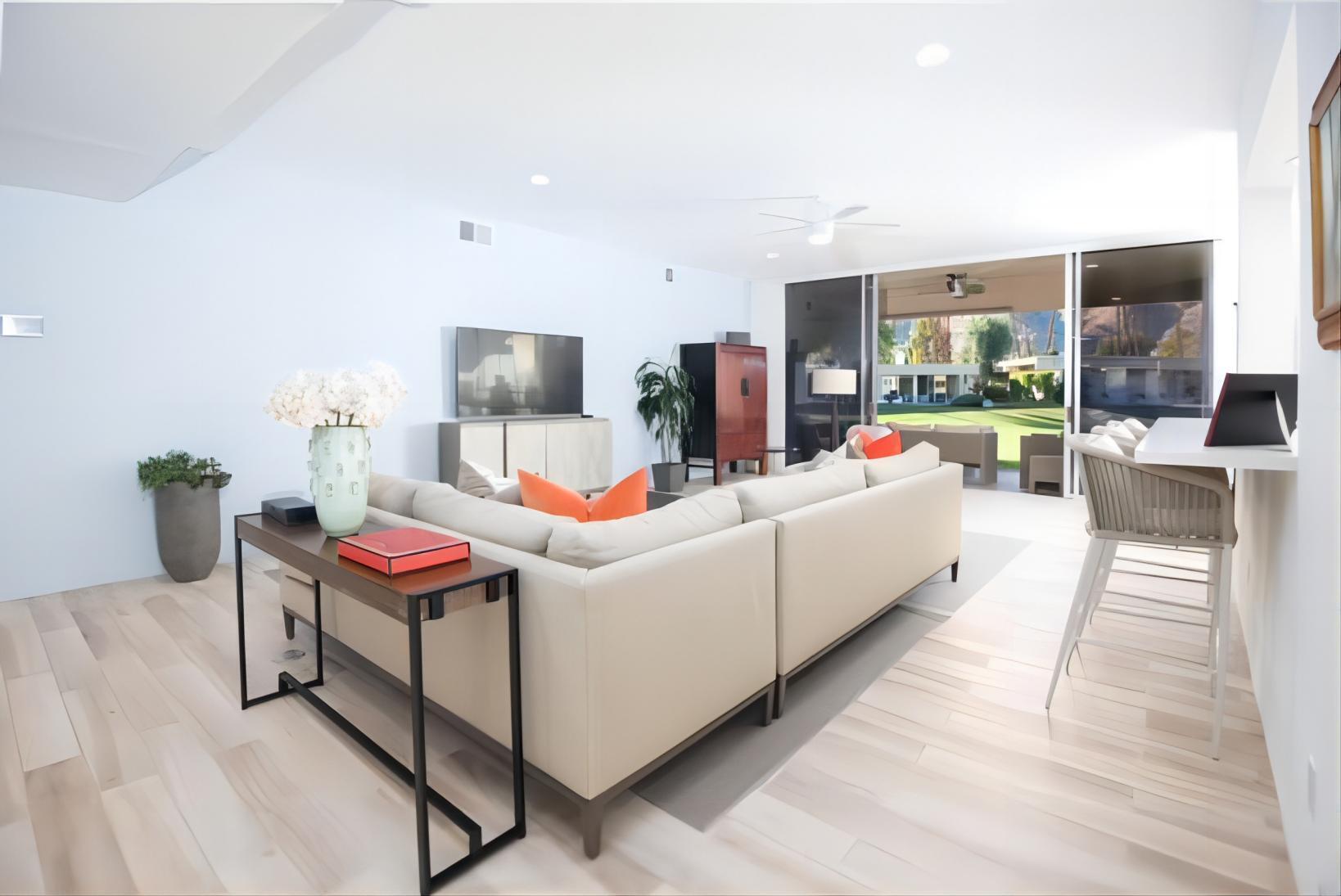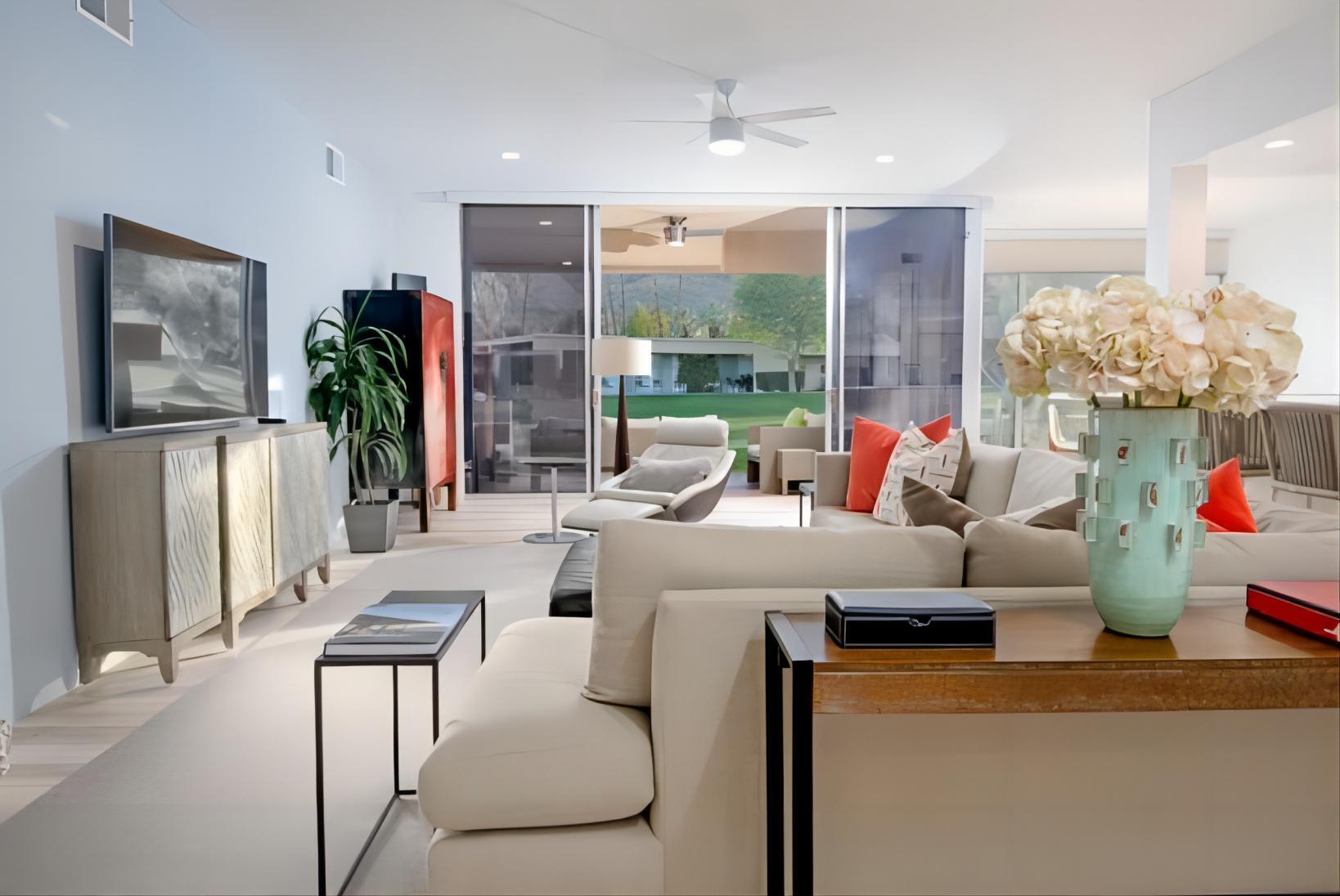 Vacation at the renowned SEVEN LAKES Golf Course and Country Club in this exquisite 3-bedroom, 3-bath mid-century modern home. It is a true masterpiece. In a prime location within the community, this free-standing property boasts 2,604 sq. ft. of meticulously renovated serenity, enhanced by beautiful southern views of the mountains and fairways. A low density community with expansive outdoor spaces. Ideal for unwinding or entertaining. Inside, very attractive high-end features include a private sauna, a chef's kitchen outfitted with premium finishes. Wine enthusiasts will appreciate the 68-bottle wine chiller, while those seeking productivity can work in the desk area of the second bedroom. In unit, full-size laundry. One private garage space. 15 Pools and outdoor spas, built in BBQ areas, a challenging Ted Robinson designed Par 58 golf course, where President Eisenhower hit his only hole-in-one on the course! On site club designed by William Cody. This fully turnkey-furnished home is available for a minimum one-month stay or longer. The only community in Palm Springs with 24 hr guard gated entry. Maximum occupancy, 4 adults. Not suitable for children. No Pets. No smoking. Nov-May: $8000/mo June-Oct: $5550/mo. Booked: Feb 1-April 16, 2025 and Nov 1, 2025-April 30, 2026.Interested in this Listing?