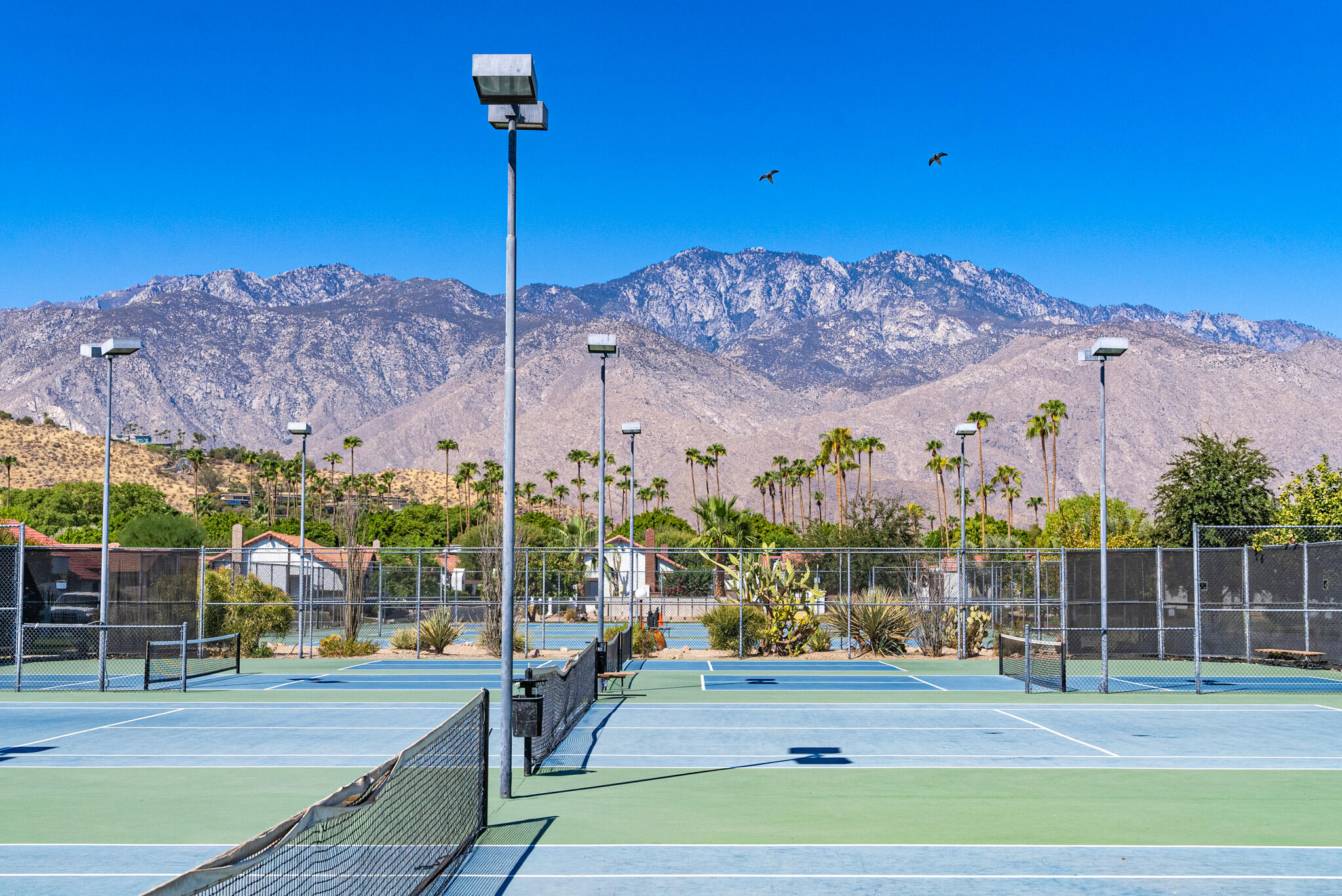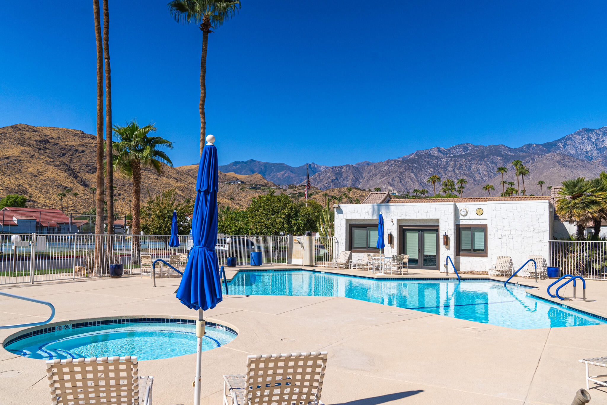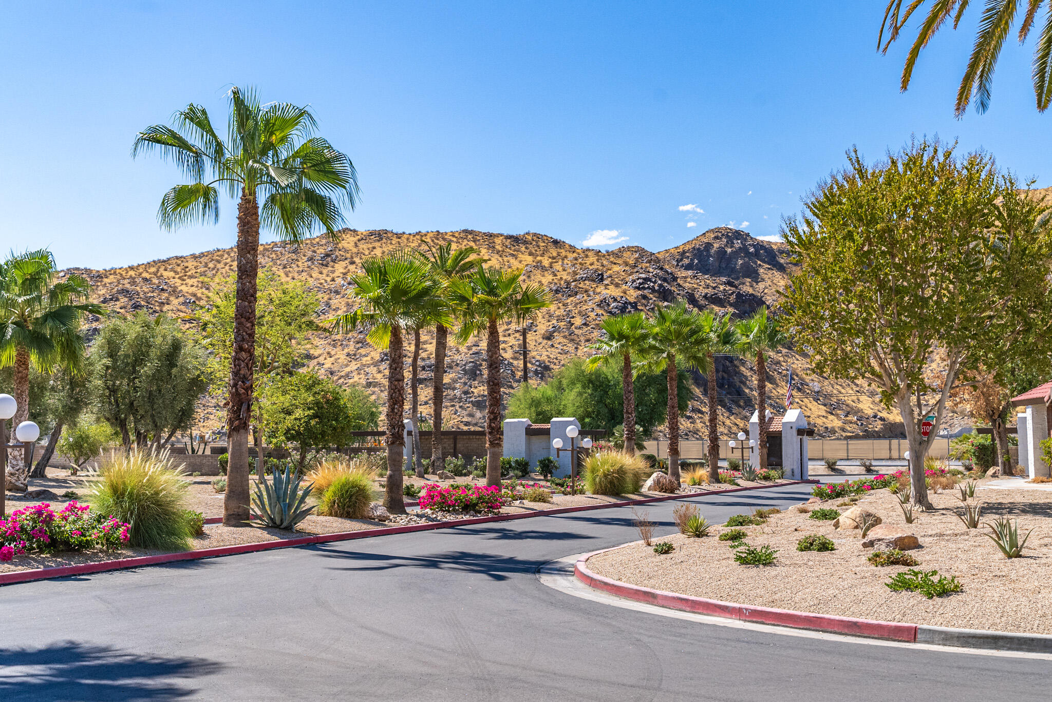 Welcome to this beautiful 2-bedroom, 2-bath in prime South Palm Springs! This vacation home boasts vaulted ceilings, a stunning stacked stone fireplace, and sunlit garden windows that offer natural light with perfect privacy. The spacious primary suite and second bedroom provide comfort and style, with the latter featuring sliding pocket doors and adjacent full bath. Enjoy direct access to a 2-car garage and indulge in the amenities of Canyon Sands: 7 saltwater pools/spas, 2 saunas, 6 tennis/pickleball courts, and lush pathways. Ideal for a relaxing getaway!Interested in this Listing?