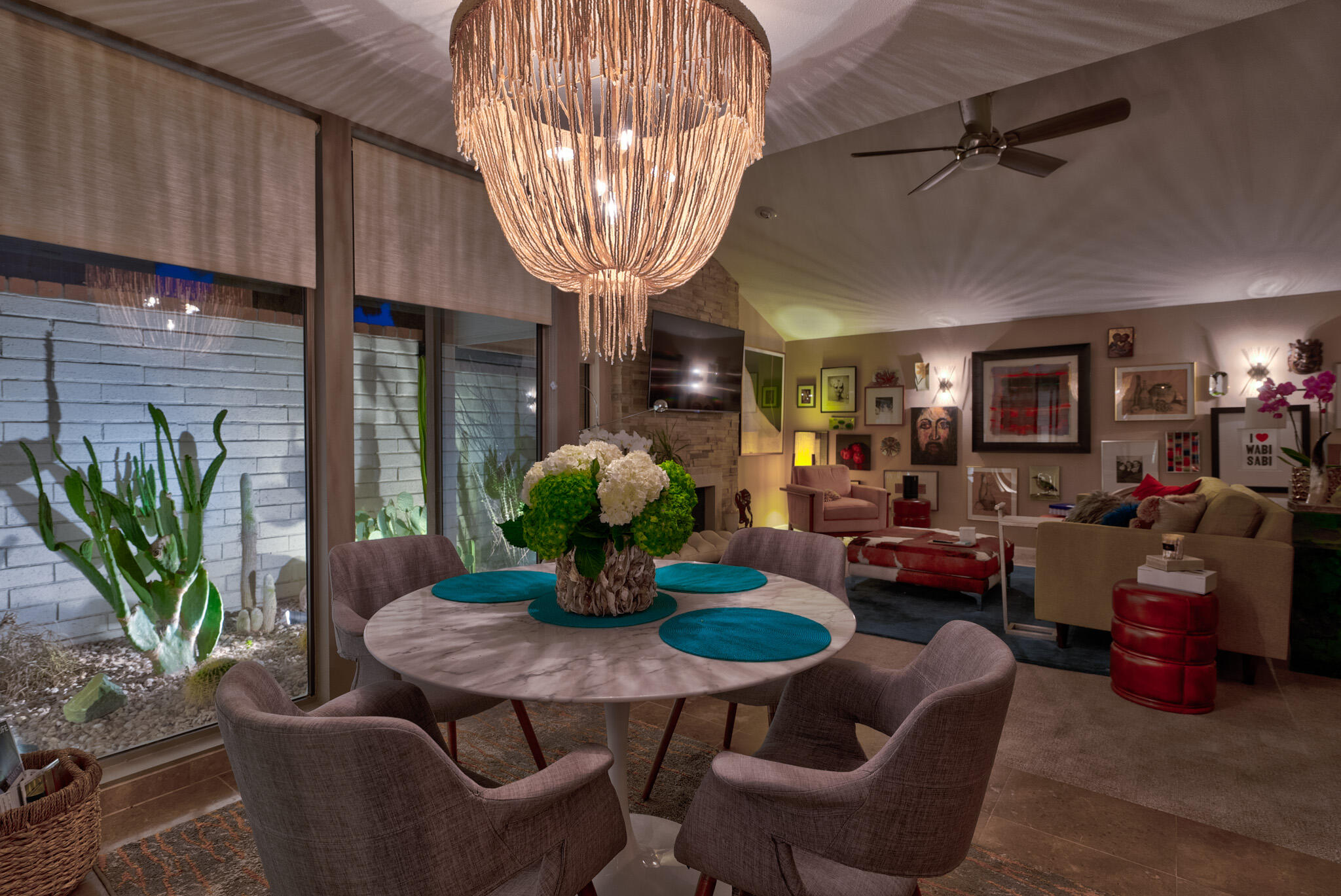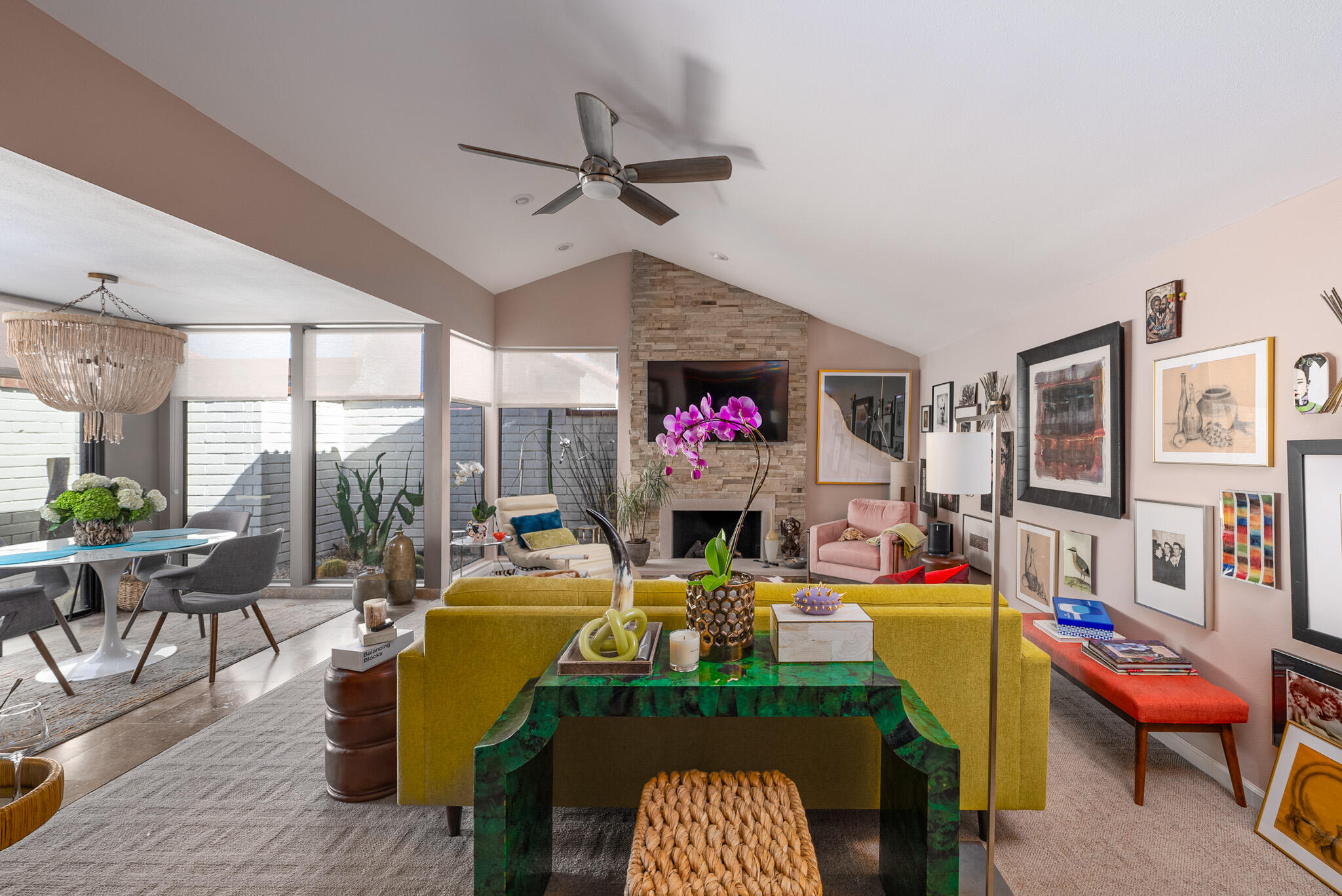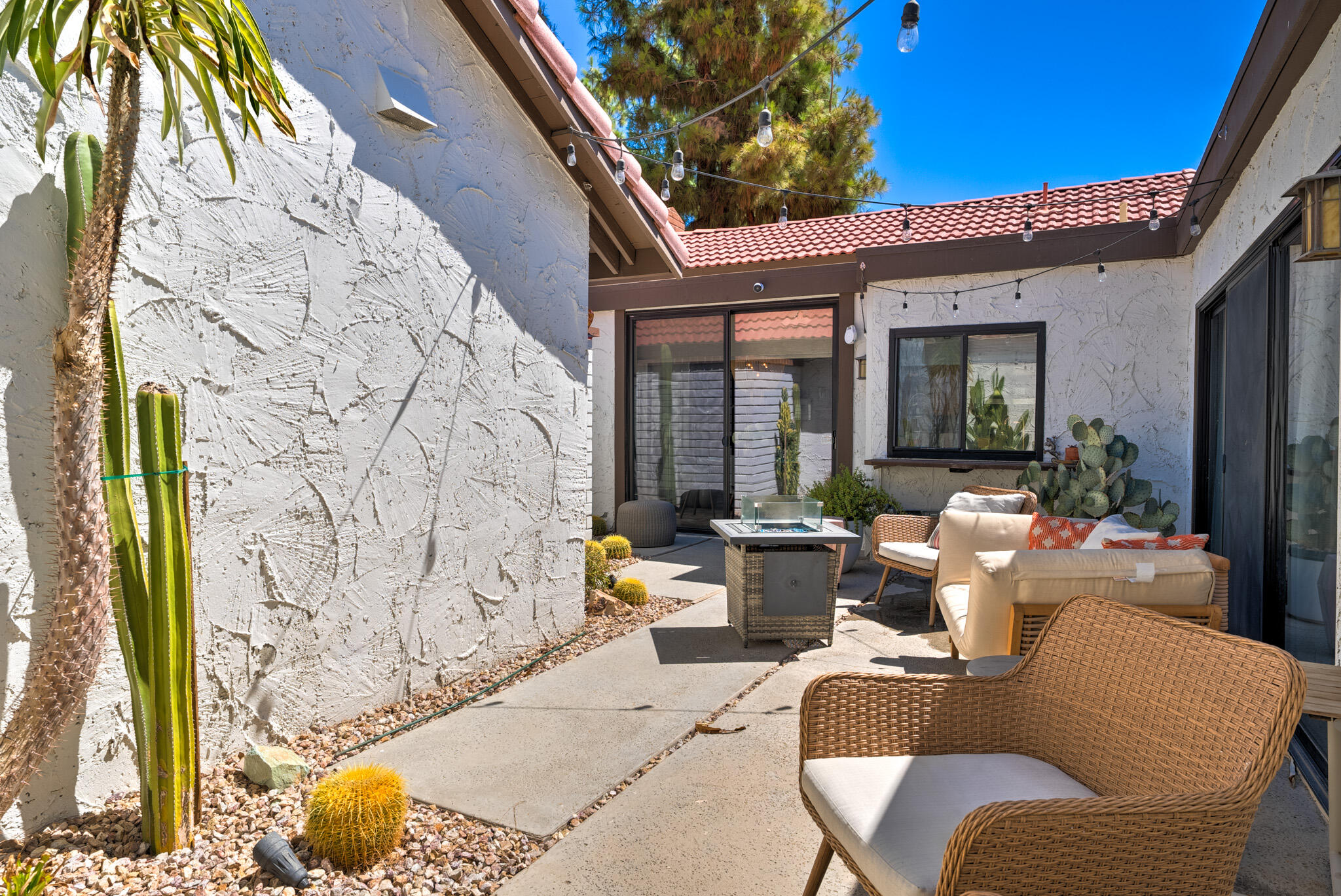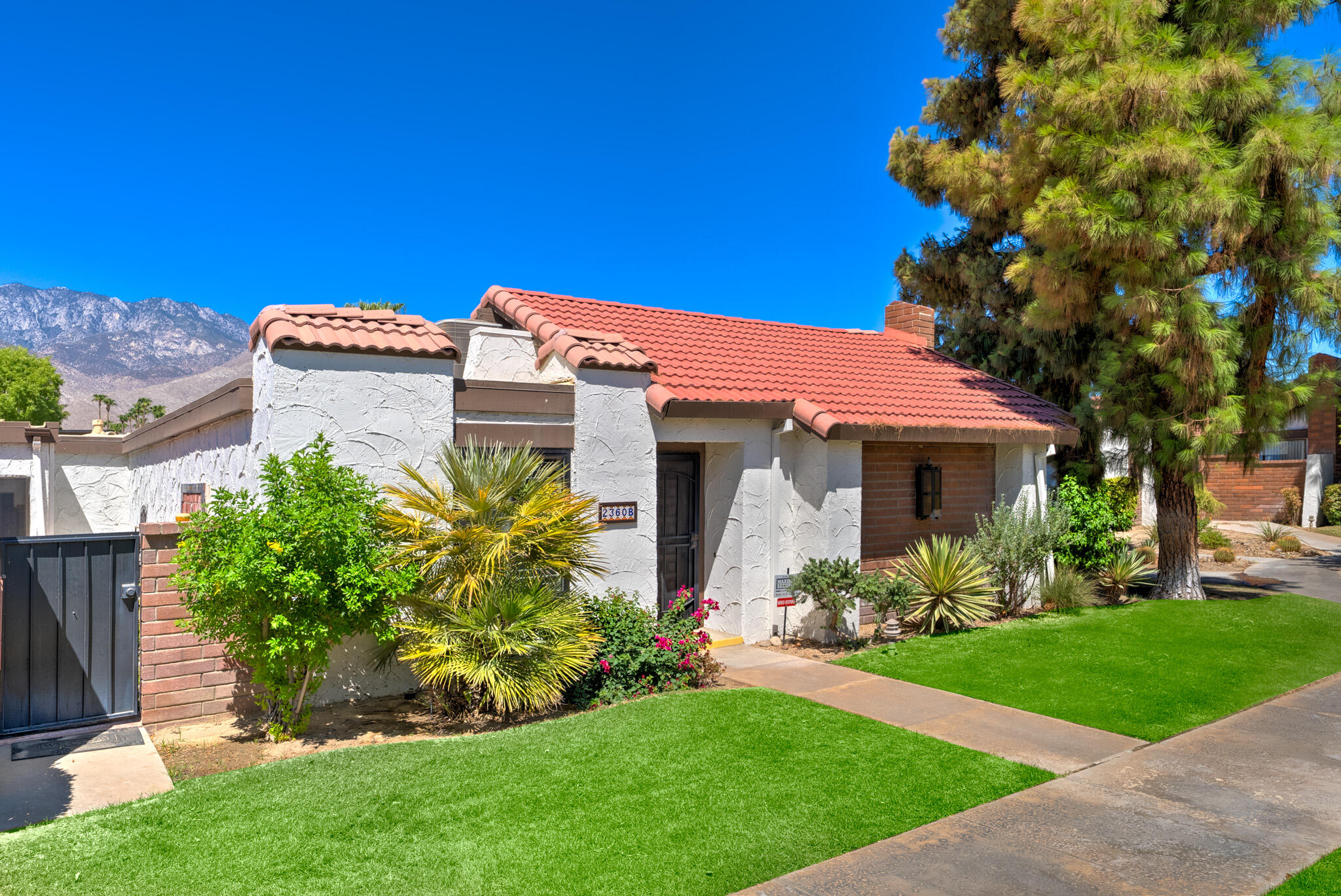 Welcome to this beautiful 2-bedroom, 2-bath in prime South Palm Springs! This vacation home boasts vaulted ceilings, a stunning stacked stone fireplace, and sunlit garden windows that offer natural light with perfect privacy. The spacious primary suite and second bedroom provide comfort and style, with the latter featuring sliding pocket doors and adjacent full bath. Enjoy direct access to a 2-car garage and indulge in the amenities of Canyon Sands: 7 saltwater pools/spas, 2 saunas, 6 tennis/pickleball courts, and lush pathways. Ideal for a relaxing getaway!Interested in this Listing?