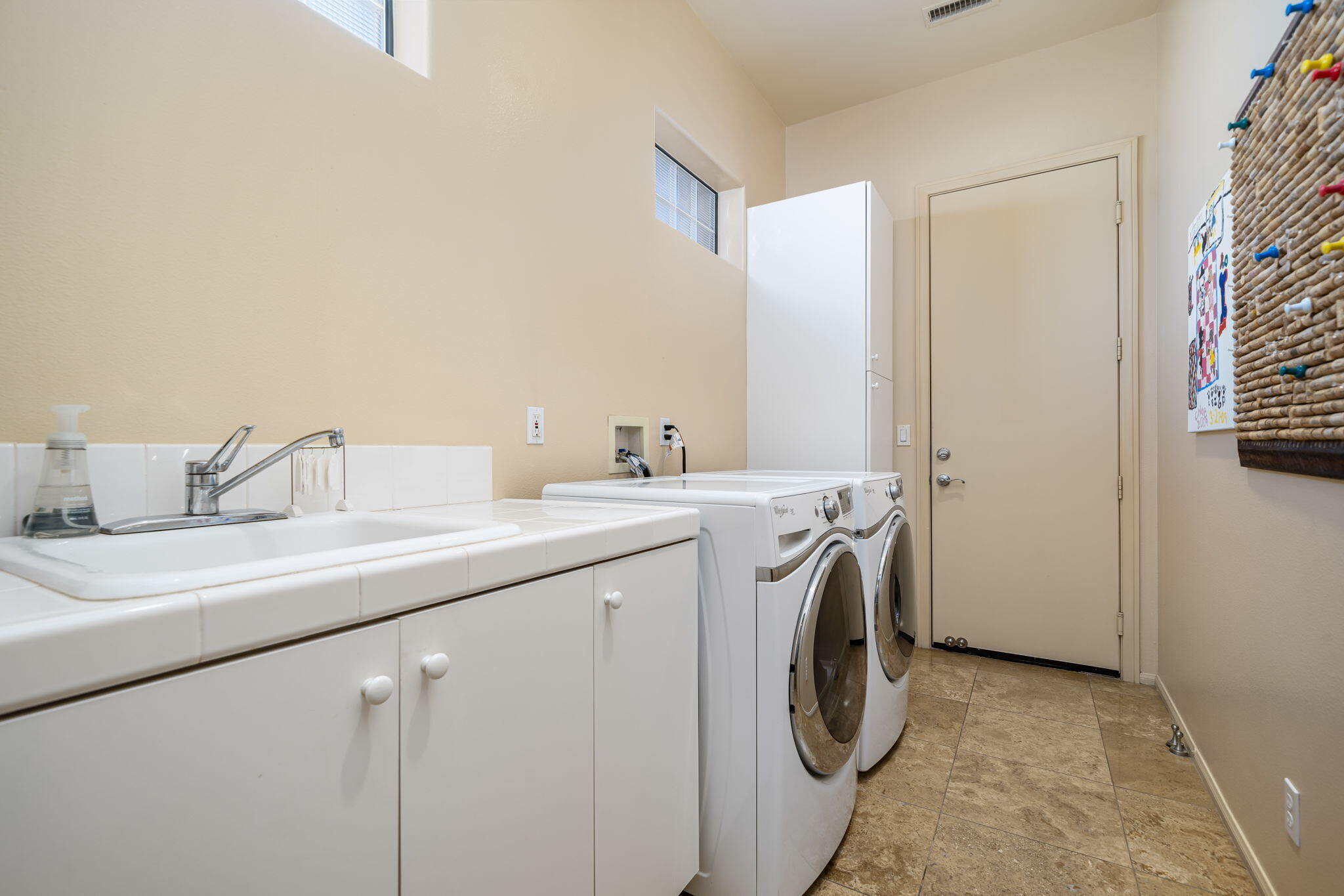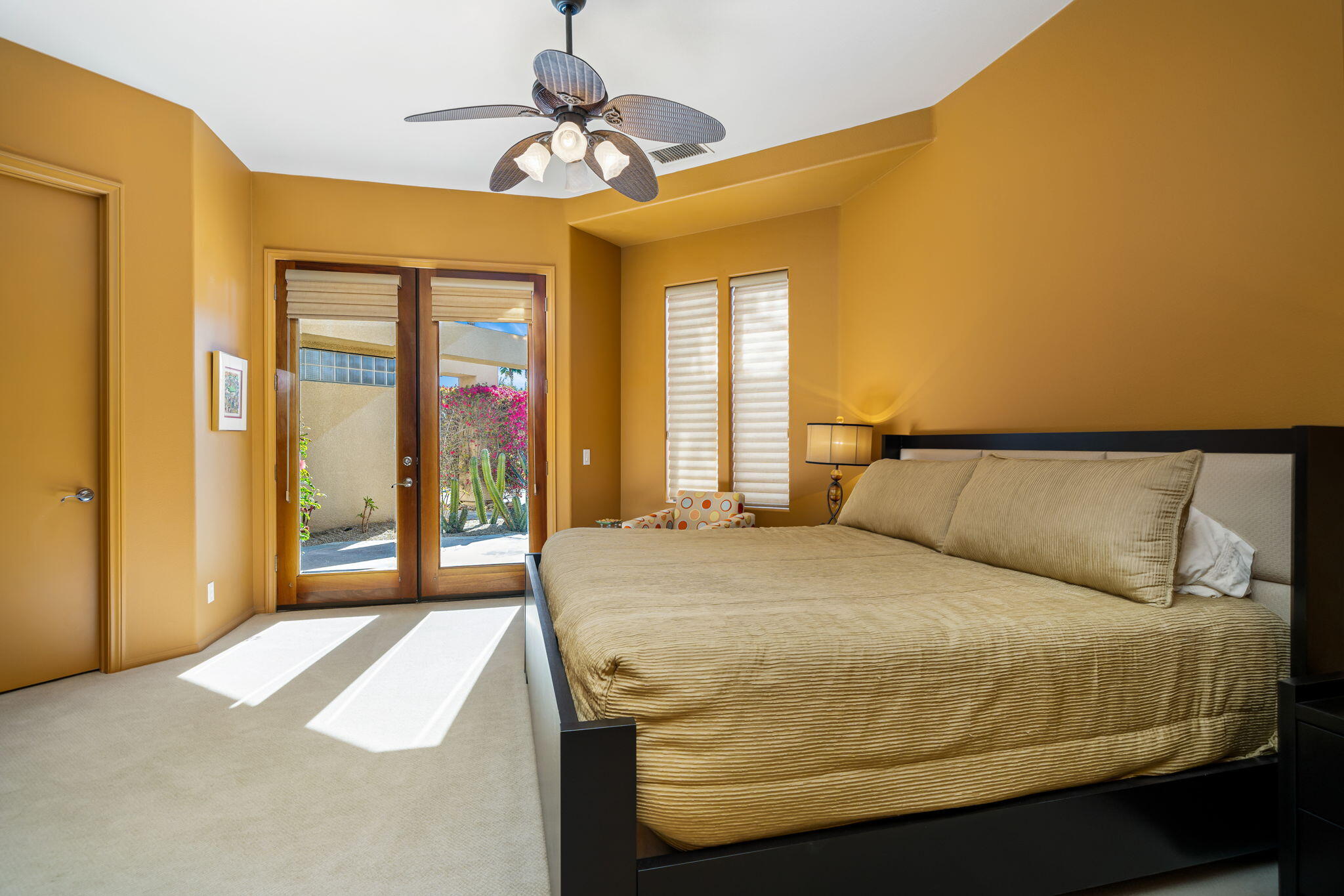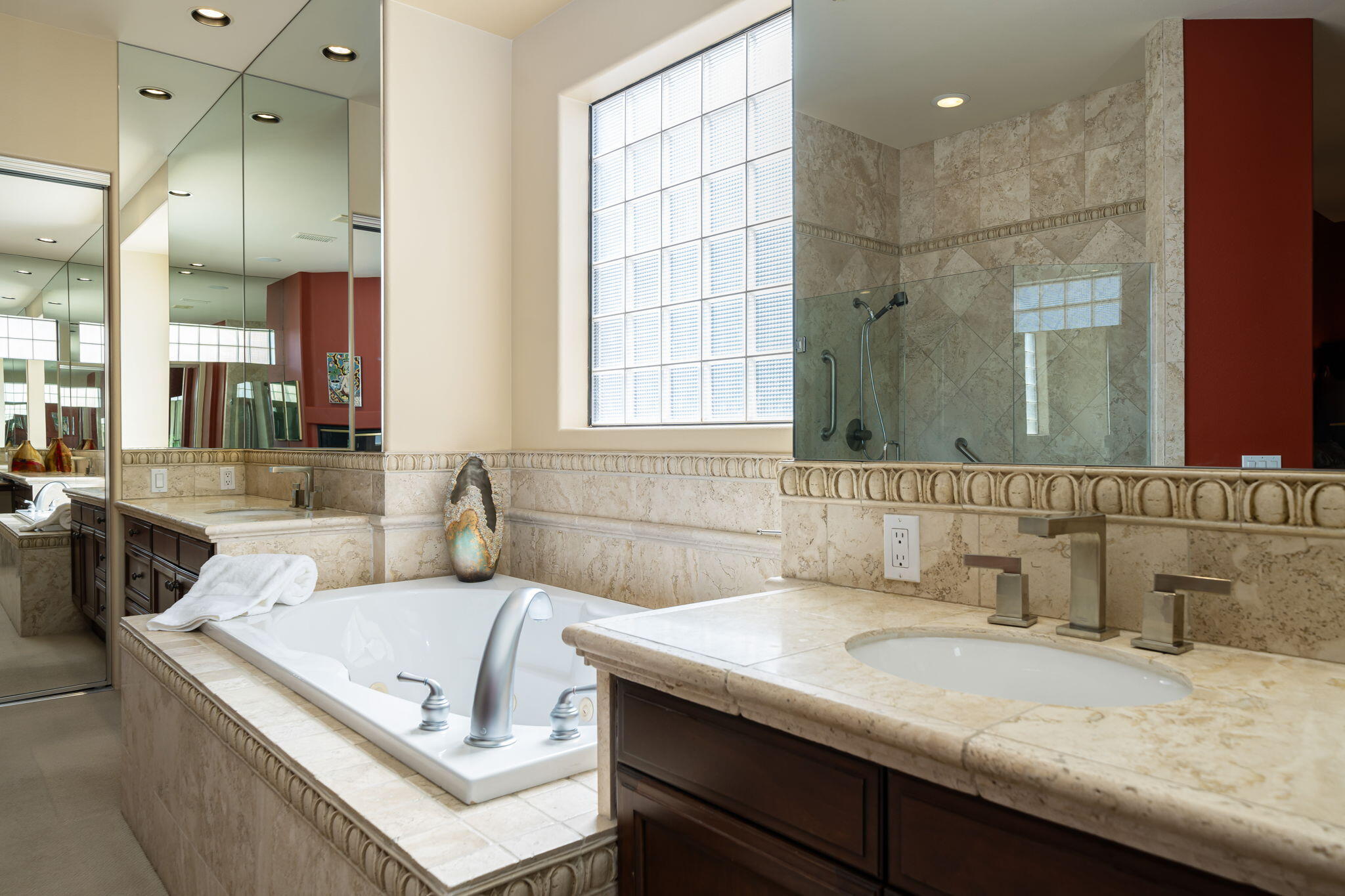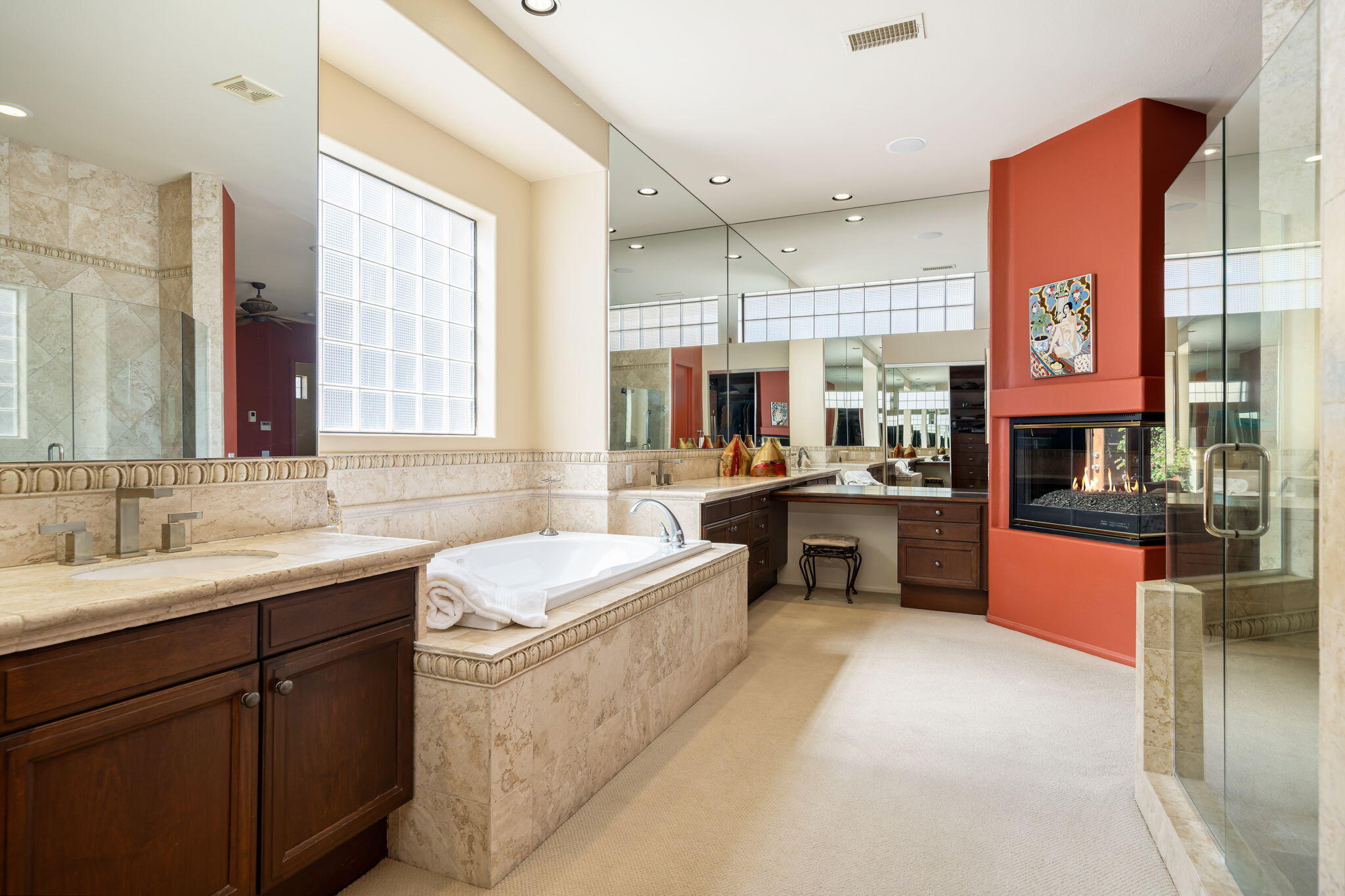Located on a premium west-facing lot with beautiful mountain views on the 13th tee of the Pete Dye course, this home is loaded with upgrades and lovingly maintained. Sit on the patio and enjoy the Pebble Tec salt water pool with stacked stone spillway with an elevated spa. Turn on the fire pit for evening gatherings with crystals lighting the perimeter or utilize the chef's outdoor cooking area adjacent to the covered patio. Inside, the gourmet kitchen includes a Viking cooktop, Sub-zero refrigerator, wine cooler, center island and elegant dark cherry cabinets. The triple sided glass fireplace separates the living room and great room with built-in entertainment center and high tech sound system. Both kitchen and great room feature electric shades for easy adjusting of the sunshine that radiates the room. The primary suite, with ample room and walk in closet includes a fireplace, to warm you at night or while you enjoy time in the jacuzzi tub. The guest suite has its own outdoor patio and ensuite bath. The third ensuite bedroom is being used as an office with built-in desk and work area. Other notable features are a new tankless water heater, entire home water filtration system, and Leased Solar for lower electric bills. One of the lowest HOA in Mission Hills which includes a social and fitness membership to the club. Call for your private showing.Interested in this Listing?