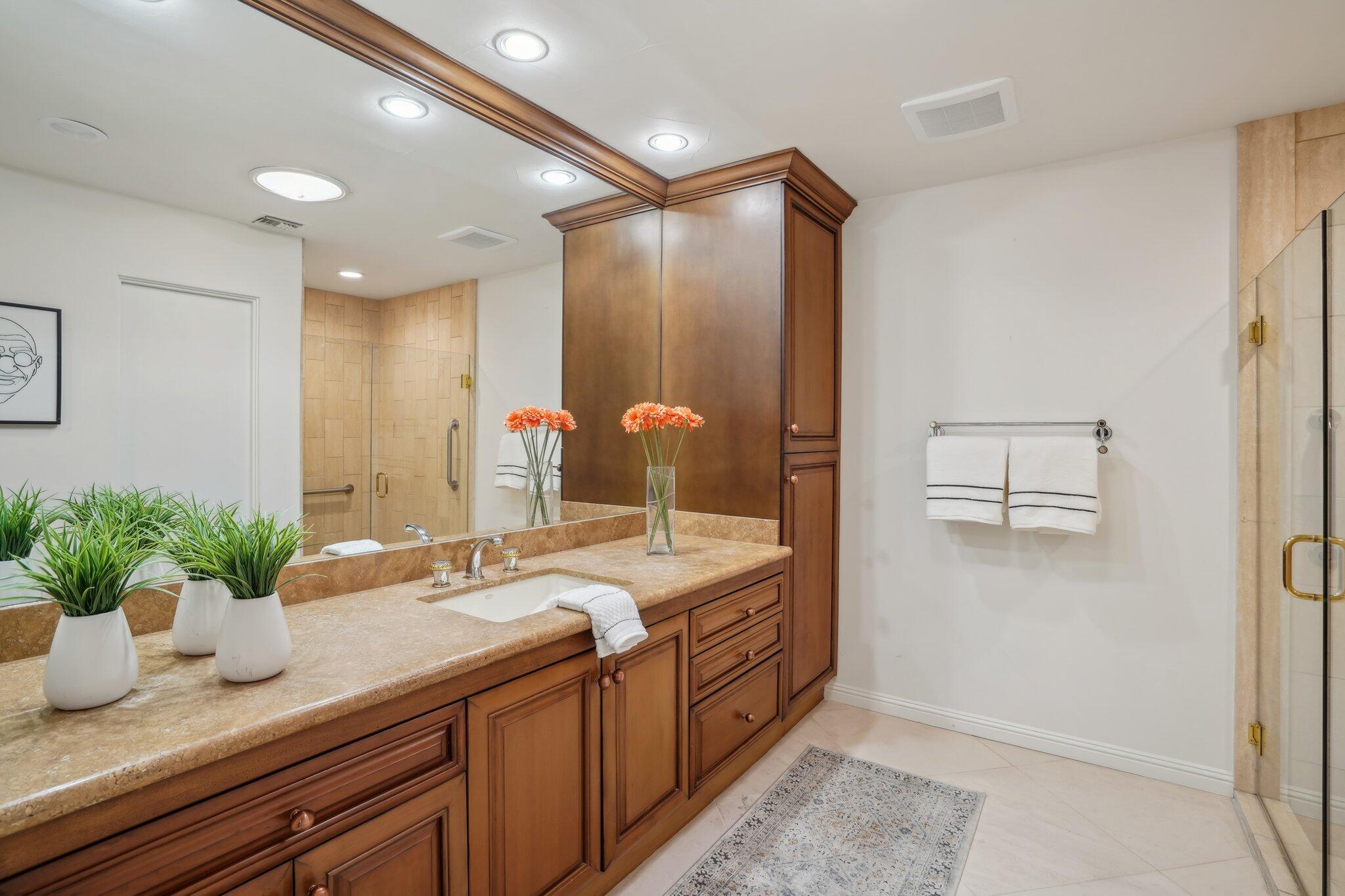 This bright 3-bedroom, 3-bathroom, 3,288 SQFT home in the stunning Morningside community is move-in-ready and offers an open-concept layout ideal for modern living. The kitchen features double ovens, an oversized granite topped peninsula and island, ample storage, and perfect space for entertaining. The great room impresses with custom built-in cabinetry, a cozy fireplace, a wall of windows, and automated window shades, all contributing to an inviting atmosphere.Enjoy the tranquility of the private greenspace and take advantage of one of the seven community pools and spas throughout the development. Each of the three generously sized bedrooms are all en-suited, have private patio access, and abundant closet space. Consistent cabinetry throughout, even in the laundry room, provides a cohesive and polished look. With limestone tiles and carpeting throughout, this meticulously maintained home is a true delight to show. Don't miss your chance to make this exceptional property, nestled in the quiet interior of the community, your own!Interested in this Listing?