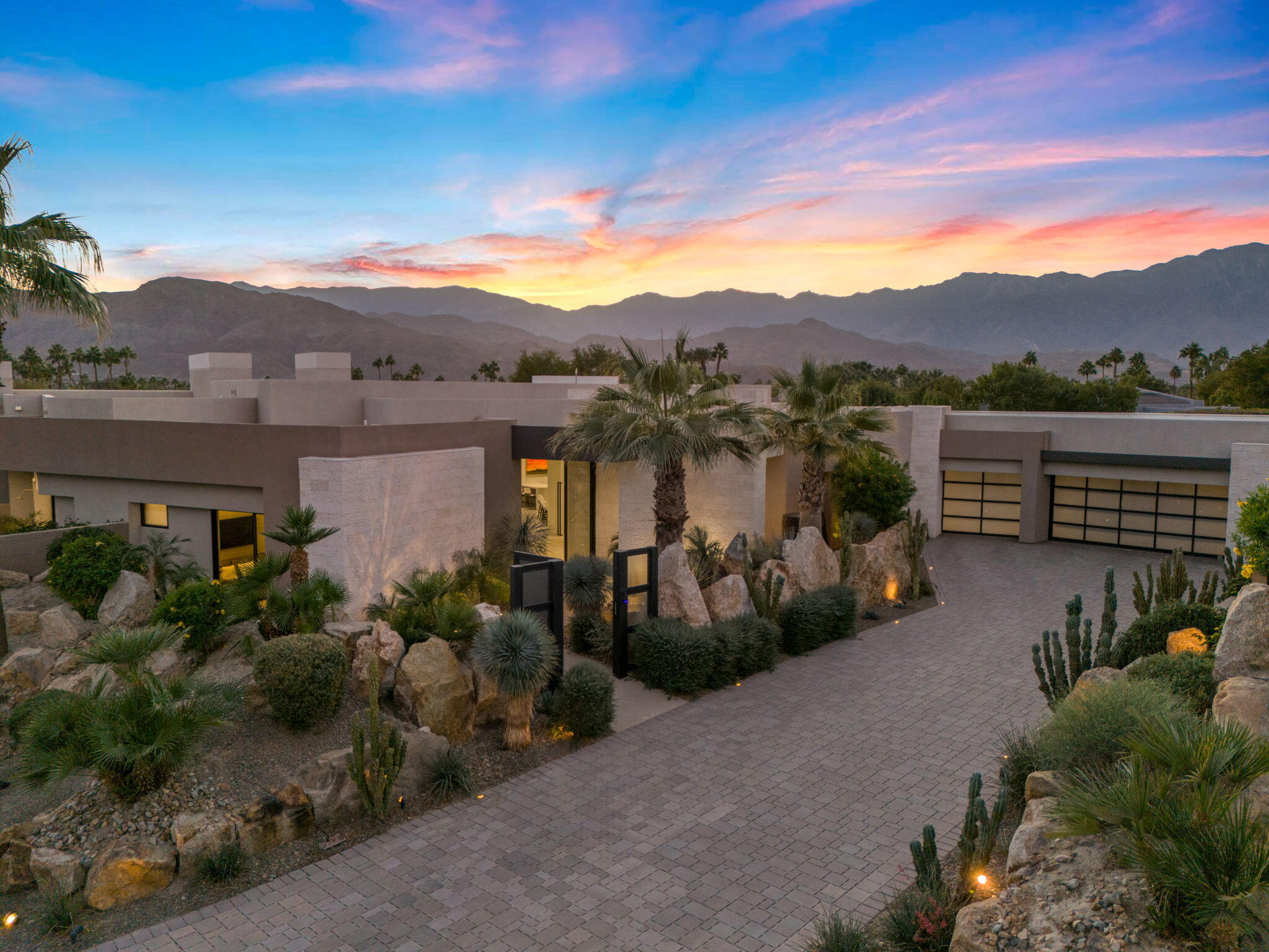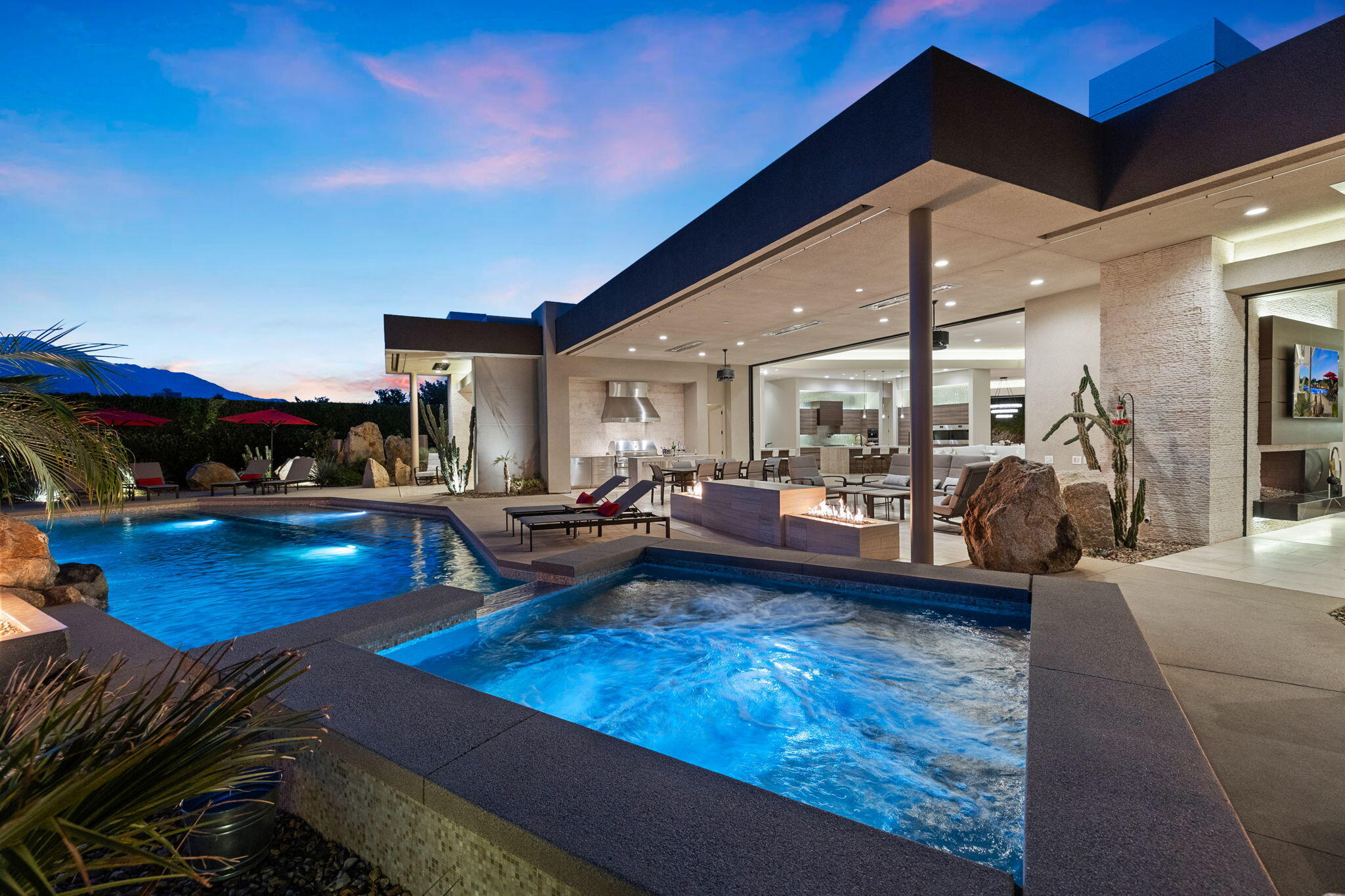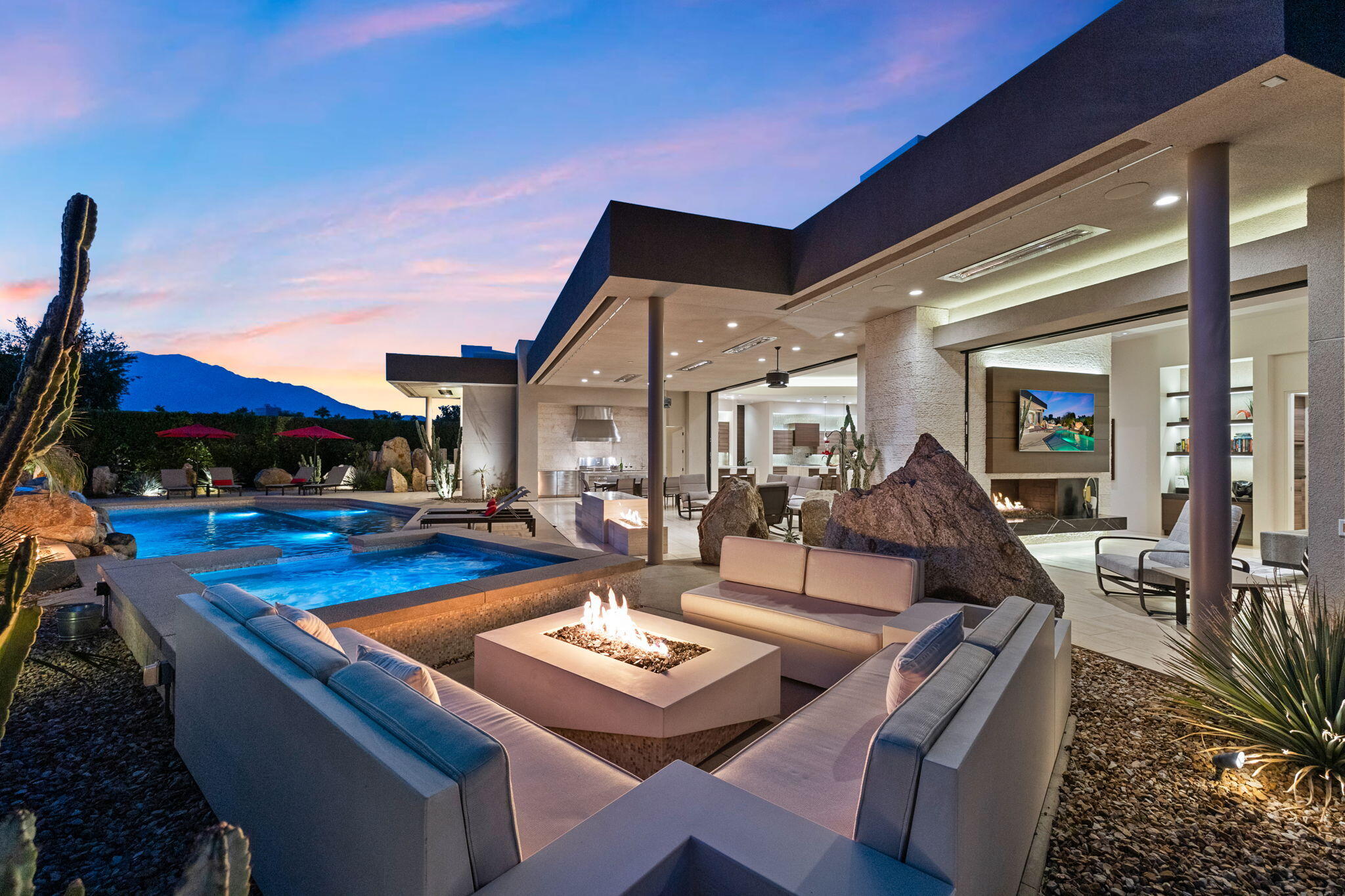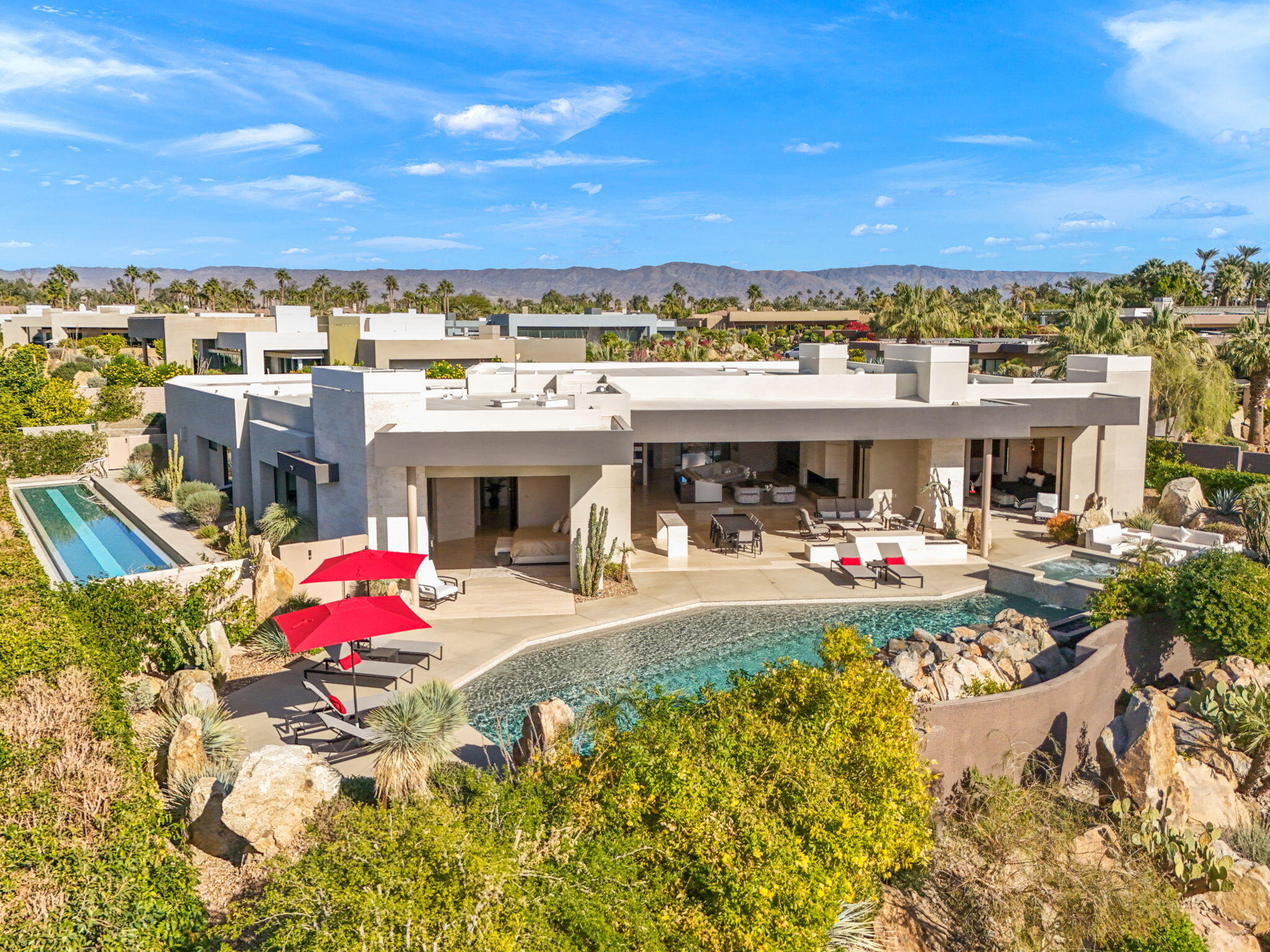 PRICE INCLUDES ALL custom made furniture, patio furniture and audio/video. STERLING RIDGE: Where Luxury Contemporary sophistication meets effortless indoor-outdoor living. This stunning residence offers ultimate privacy, breathtaking mountain views, and is surrounded by majestic boulders and lush landscaping. Just minutes from world-class golf, fine dining, shopping, and more, this home offers the perfect retreat with convenient access to all the best amenities. Designed for elegance and comfort, this meticulously maintained estate features five bedrooms, including two opulent primary suites. With high-end finishes and a Smart Home Crestron automation system, you can control fire & water features, motorized sliding doors, lighting, shades, and more with ease. The professional-grade kitchen is equipped with top-of-the-line Wolf, Sub-Zero, and Miele appliances. Adjacent to the kitchen is a full bar, and bordering the dining room is a glass-enclosed, climate-controlled wine room. The oversized 1,117 sq. ft. garage is outfitted with A/C and custom built-in cabinets. Experience the uninterrupted flow of resort living at the exterior, with an oversized spa, a statement pool with boulder waterfall, along with a private 25-meter lap pool. Whether lounging poolside or warming up by the fire features, every detail has been crafted for ultimate comfort. The covered patio is equipped with mist systems, recessed heaters, a pool bath, a 75' pop-up TV, and a 52' Kalamazoo BBQ station--making it ready for enjoyment all season long. Sterling Ridge Development, embraced environmental stewardship at conception with the use of drought tolerant plantings, boulder accent out-croppings and the use of permeable pavers, which has enabled low HOA fees of only $189/m. Don't miss this rare opportunity to own a private oasis in the heart of Rancho Mirage!Interested in this Listing?