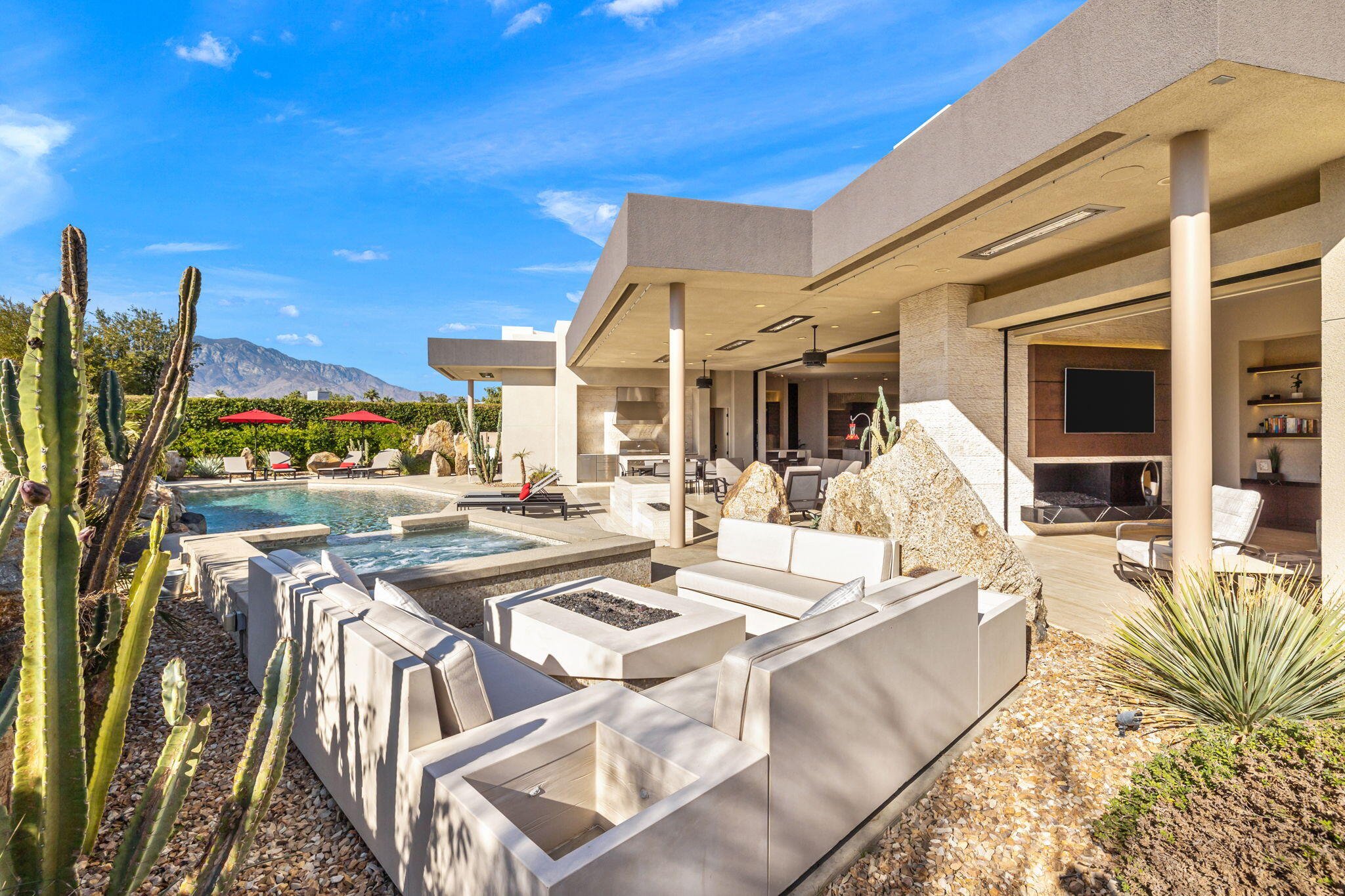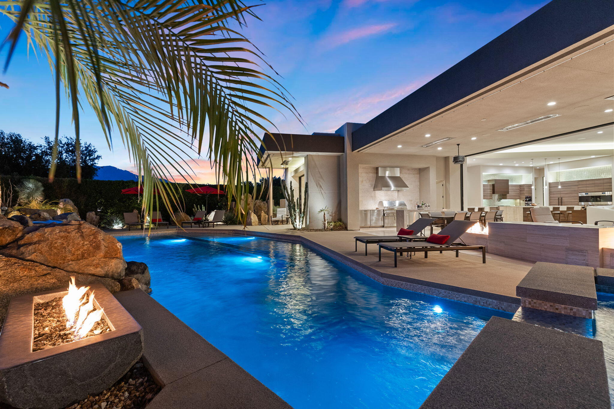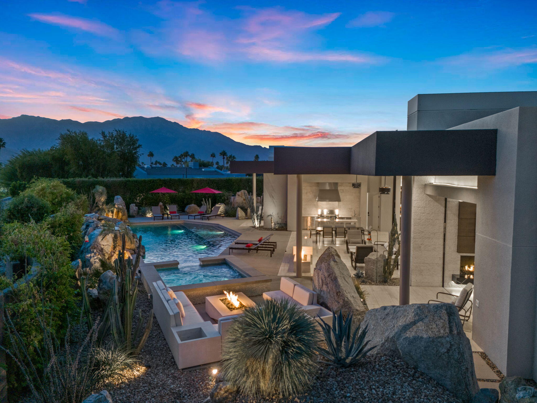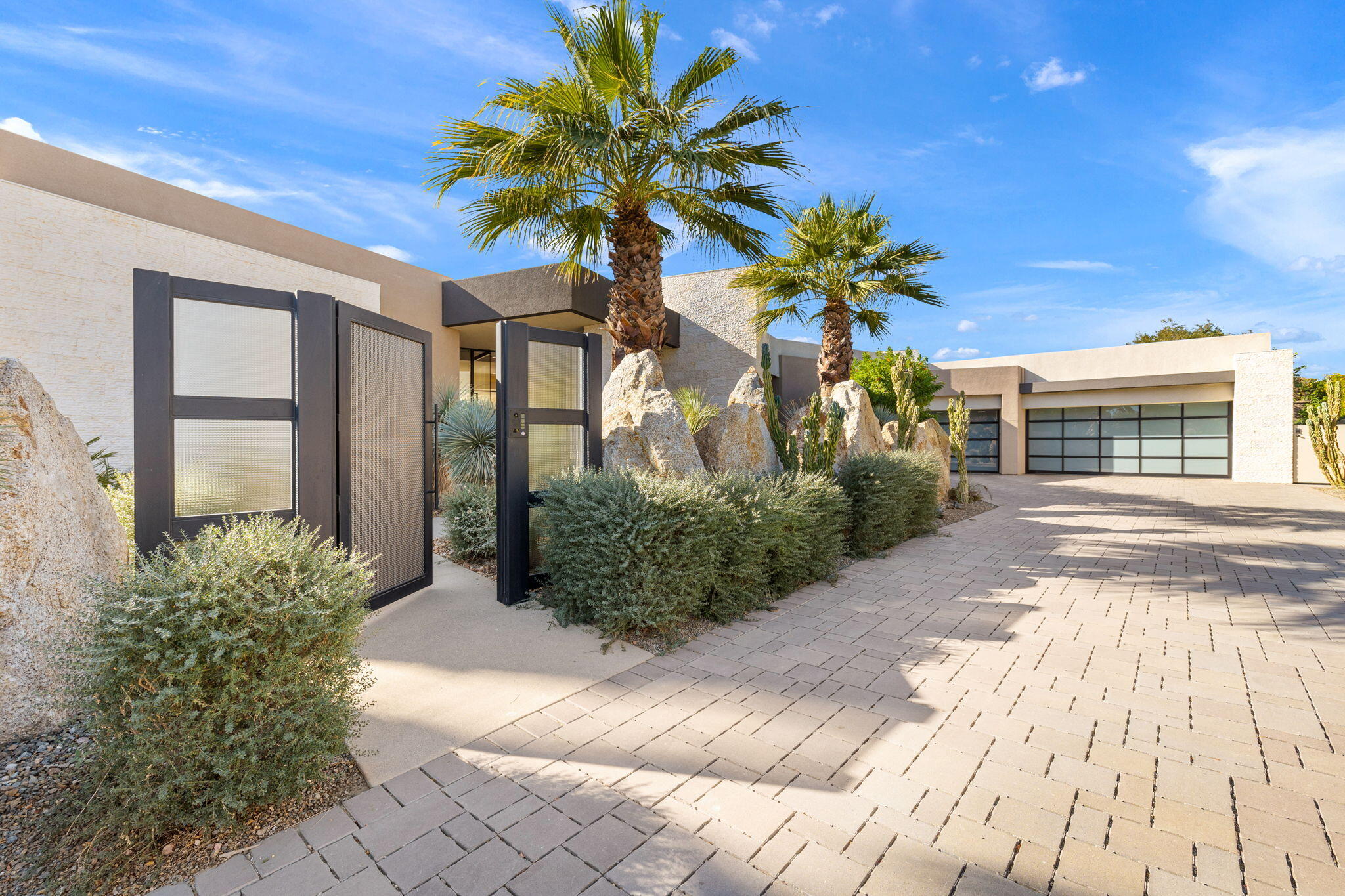 PRICE INCLUDES ALL custom made furniture, patio furniture and audio/video. STERLING RIDGE: Where Luxury Contemporary sophistication meets effortless indoor-outdoor living. This stunning residence offers ultimate privacy, breathtaking mountain views, and is surrounded by majestic boulders and lush landscaping. Just minutes from world-class golf, fine dining, shopping, and more, this home offers the perfect retreat with convenient access to all the best amenities. Designed for elegance and comfort, this meticulously maintained estate features five bedrooms, including two opulent primary suites. With high-end finishes and a Smart Home Crestron automation system, you can control fire & water features, motorized sliding doors, lighting, shades, and more with ease. The professional-grade kitchen is equipped with top-of-the-line Wolf, Sub-Zero, and Miele appliances. Adjacent to the kitchen is a full bar, and bordering the dining room is a glass-enclosed, climate-controlled wine room. The oversized 1,117 sq. ft. garage is outfitted with A/C and custom built-in cabinets. Experience the uninterrupted flow of resort living at the exterior, with an oversized spa, a statement pool with boulder waterfall, along with a private 25-meter lap pool. Whether lounging poolside or warming up by the fire features, every detail has been crafted for ultimate comfort. The covered patio is equipped with mist systems, recessed heaters, a pool bath, a 75' pop-up TV, and a 52' Kalamazoo BBQ station--making it ready for enjoyment all season long. Sterling Ridge Development, embraced environmental stewardship at conception with the use of drought tolerant plantings, boulder accent out-croppings and the use of permeable pavers, which has enabled low HOA fees of only $189/m. Don't miss this rare opportunity to own a private oasis in the heart of Rancho Mirage!Interested in this Listing?