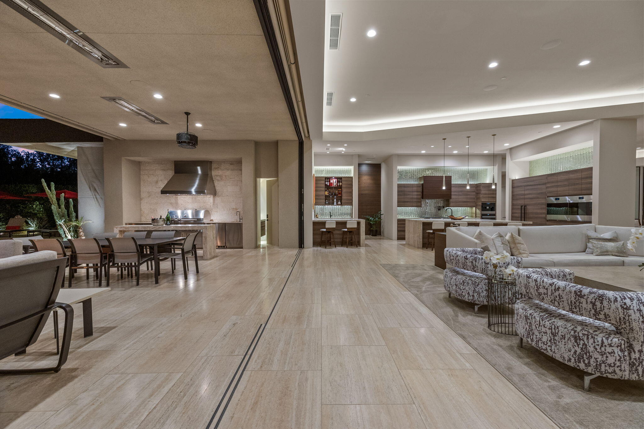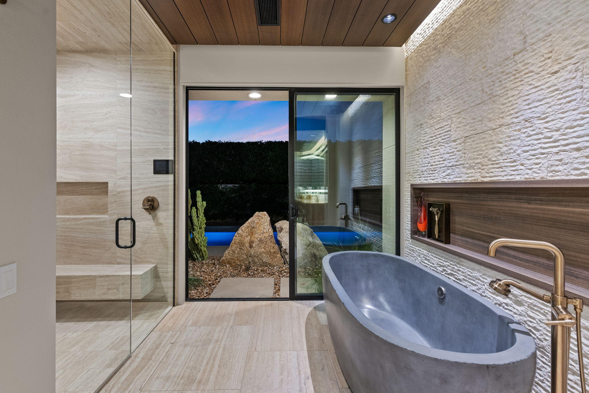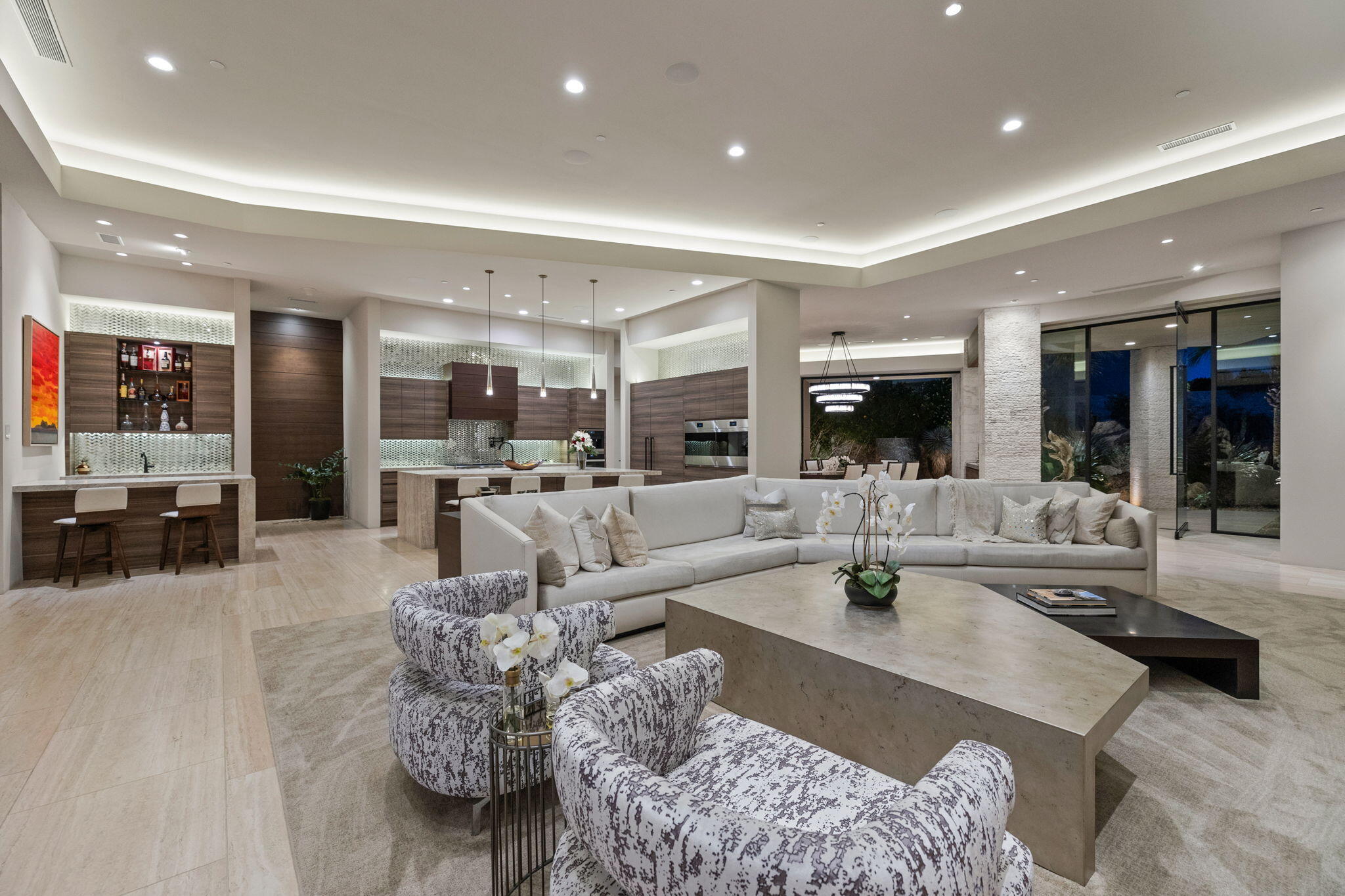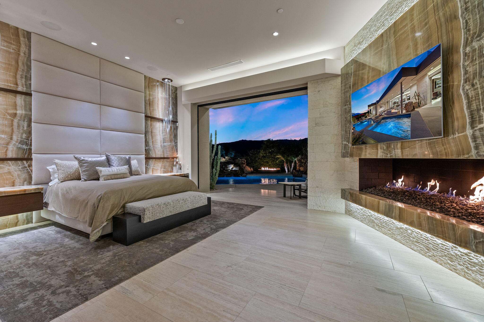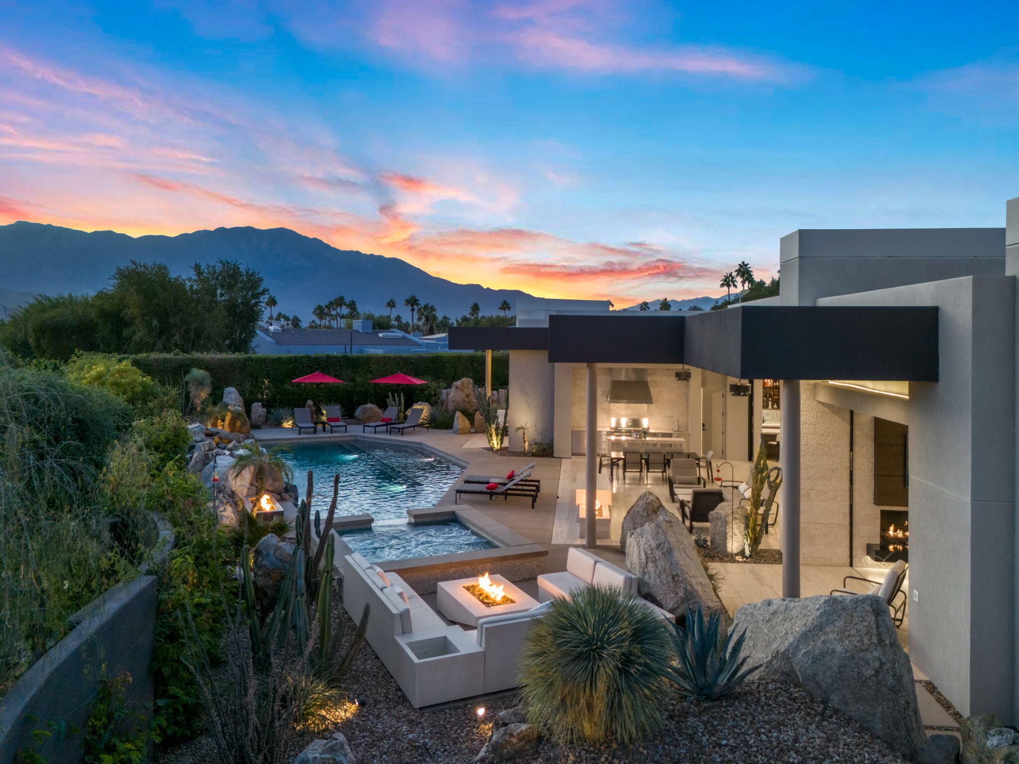 PRICE INCLUDES ALL custom made furniture, patio furniture and audio/video. STERLING RIDGE: Where Luxury Contemporary sophistication meets effortless indoor-outdoor living. This stunning residence offers ultimate privacy, breathtaking mountain views, and is surrounded by majestic boulders and lush landscaping. Just minutes from world-class golf, fine dining, shopping, and more, this home offers the perfect retreat with convenient access to all the best amenities. Designed for elegance and comfort, this meticulously maintained estate features five bedrooms, including two opulent primary suites. With high-end finishes and a Smart Home Crestron automation system, you can control fire & water features, motorized sliding doors, lighting, shades, and more with ease. The professional-grade kitchen is equipped with top-of-the-line Wolf, Sub-Zero, and Miele appliances. Adjacent to the kitchen is a full bar, and bordering the dining room is a glass-enclosed, climate-controlled wine room. The oversized 1,117 sq. ft. garage is outfitted with A/C and custom built-in cabinets. Experience the uninterrupted flow of resort living at the exterior, with an oversized spa, a statement pool with boulder waterfall, along with a private 25-meter lap pool. Whether lounging poolside or warming up by the fire features, every detail has been crafted for ultimate comfort. The covered patio is equipped with mist systems, recessed heaters, a pool bath, a 75' pop-up TV, and a 52' Kalamazoo BBQ station--making it ready for enjoyment all season long. Sterling Ridge Development, embraced environmental stewardship at conception with the use of drought tolerant plantings, boulder accent out-croppings and the use of permeable pavers, which has enabled low HOA fees of only $189/m. Don't miss this rare opportunity to own a private oasis in the heart of Rancho Mirage!Interested in this Listing?