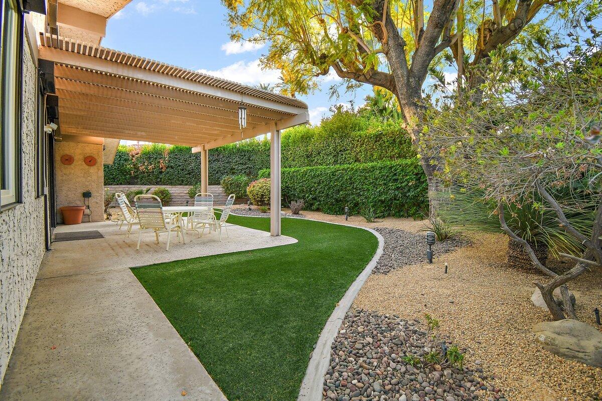 Welcome to Presidential Estates in the heart of Rancho Mirage, where this charming home offers a wonderful opportunity to create your desert dream retreat. Nestled in the picturesque setting, this residence boasts 3 spacious bedrooms (primary has large walk in closet) and 3 bath and is situated on a grand lot surrounded by lush greenery. New HVAC. Inside you will find it light and bright with high cathedral ceilings, enhancing the space and light in the home. Large windows invite the natural light and provide glimpses of the majestic mountain views that encircle the community. The backyard offers plenty of potential for outdoor living, with ample space to design your perfect oasis. Presidential estates is a well maintained community featuring access to a community pool , tennis courts and beautifully landscaped surroundings. This home offers endless possibilities to customize and add your personal touch. The serene setting makes this property perfect for those seeking a peaceful desert lifestyle with the convenience of Rancho Mirage's nearby amenities. Nearby golf courses and hiking as well. Don't miss this desert opportunity.Interested in this Listing?
