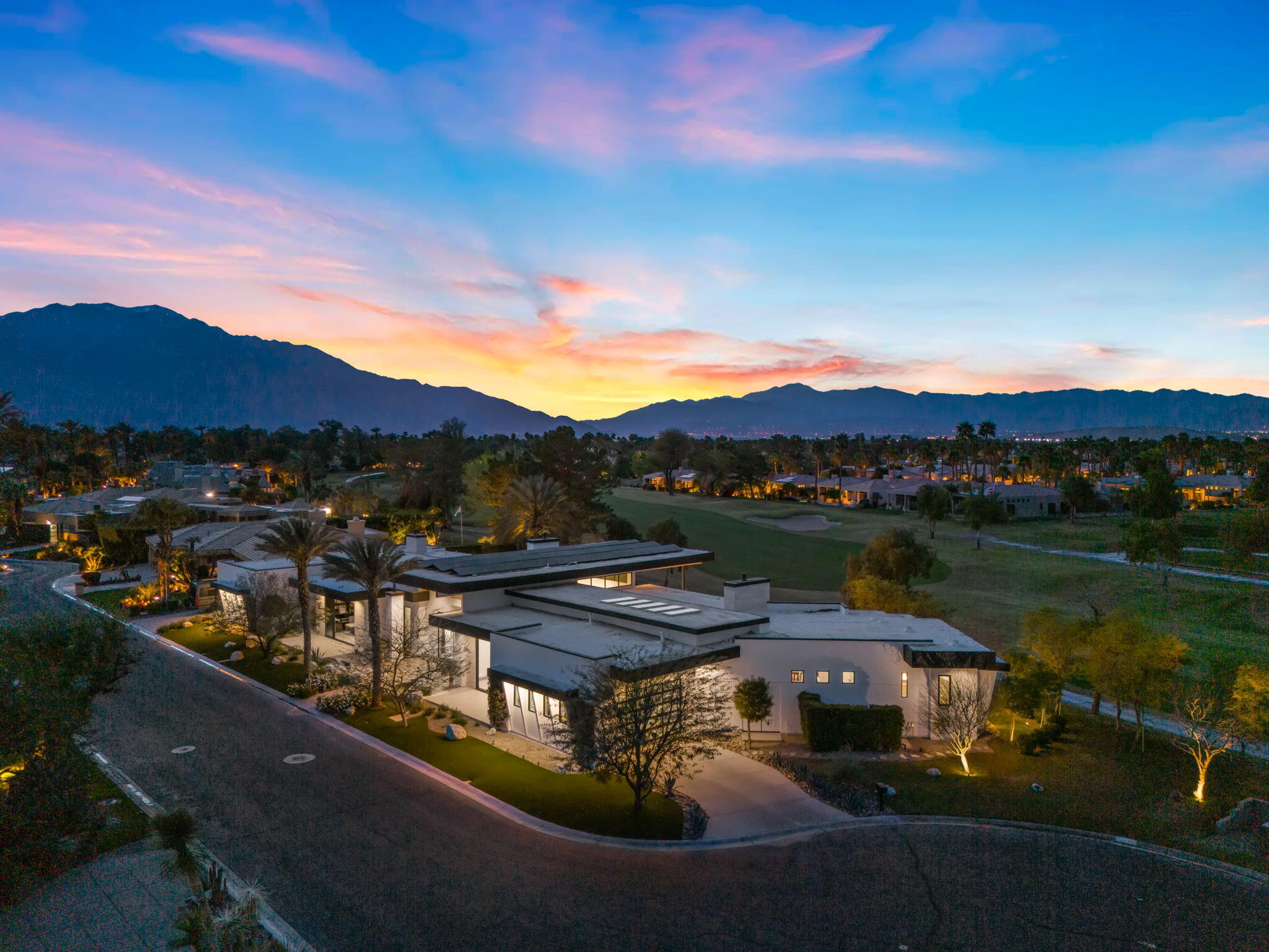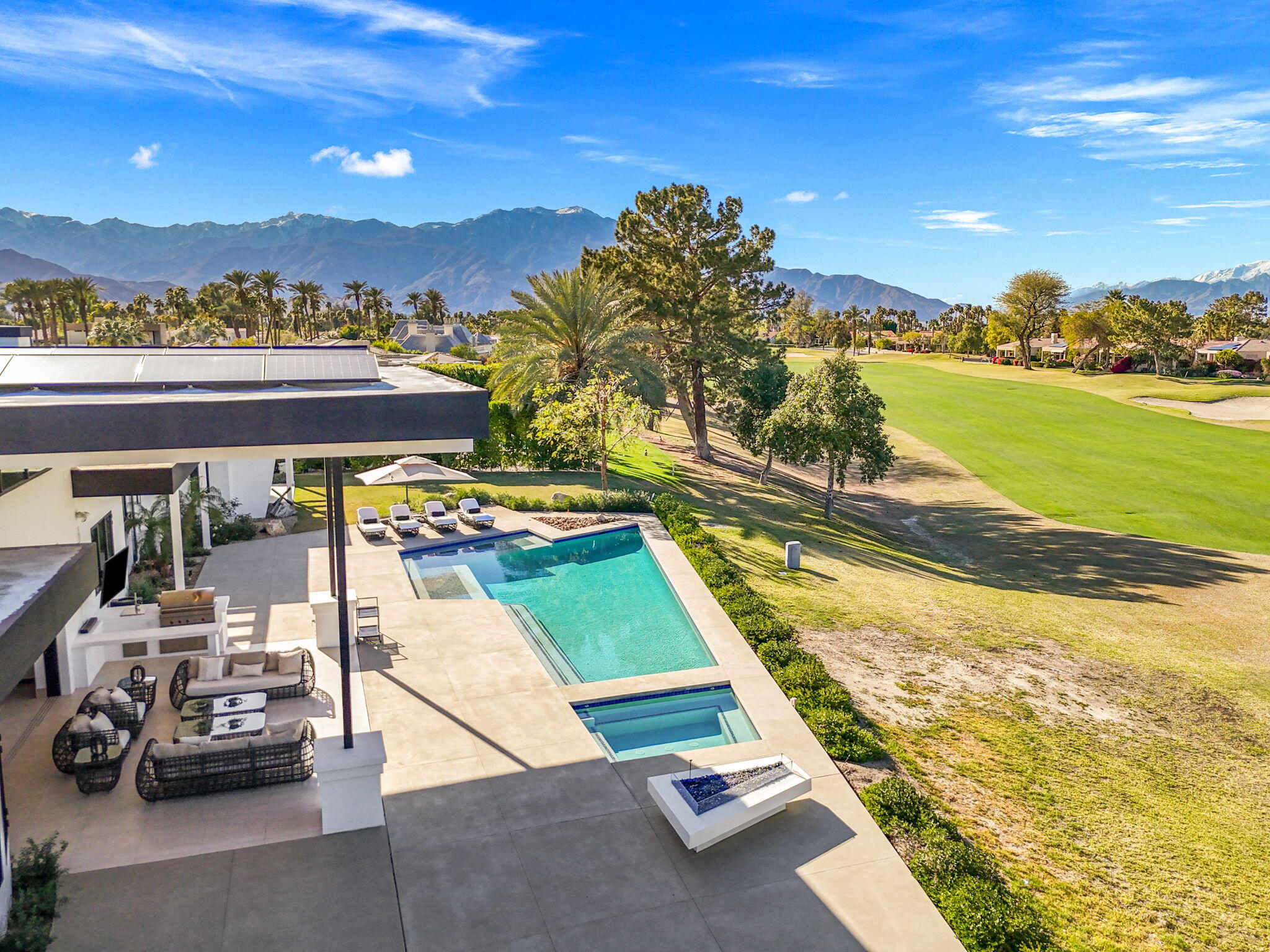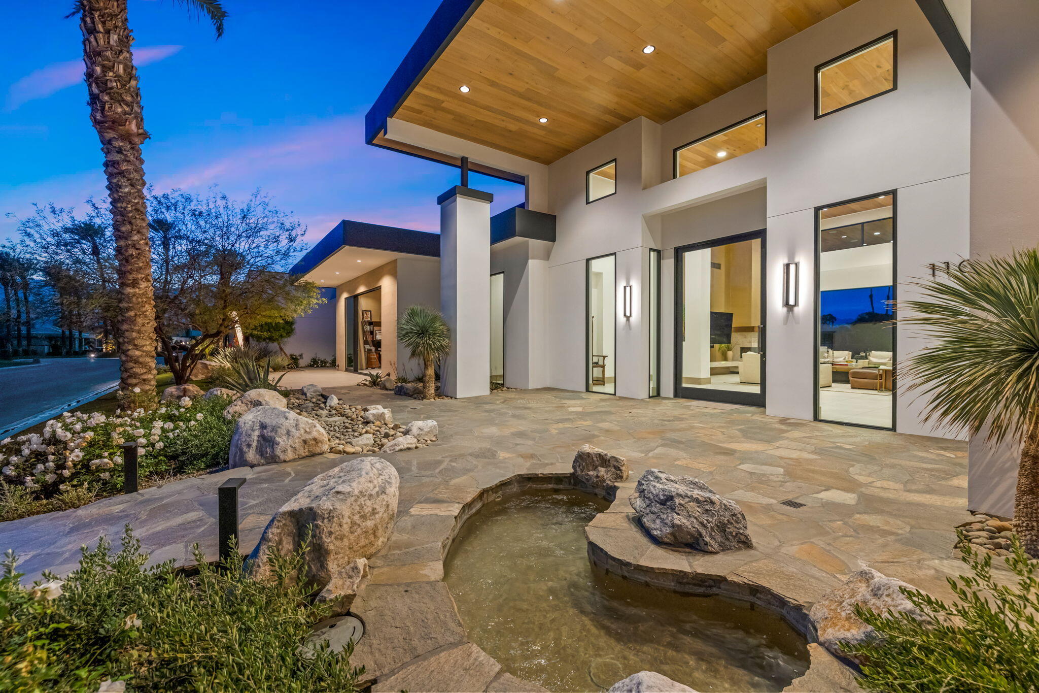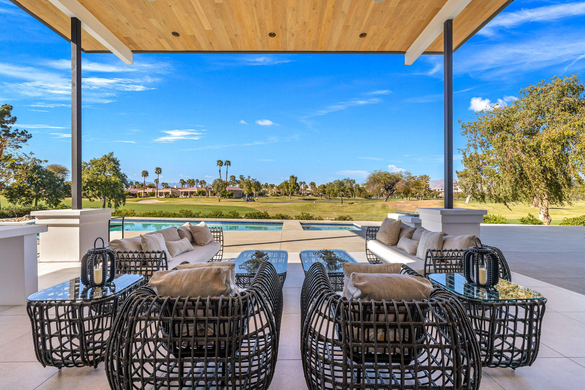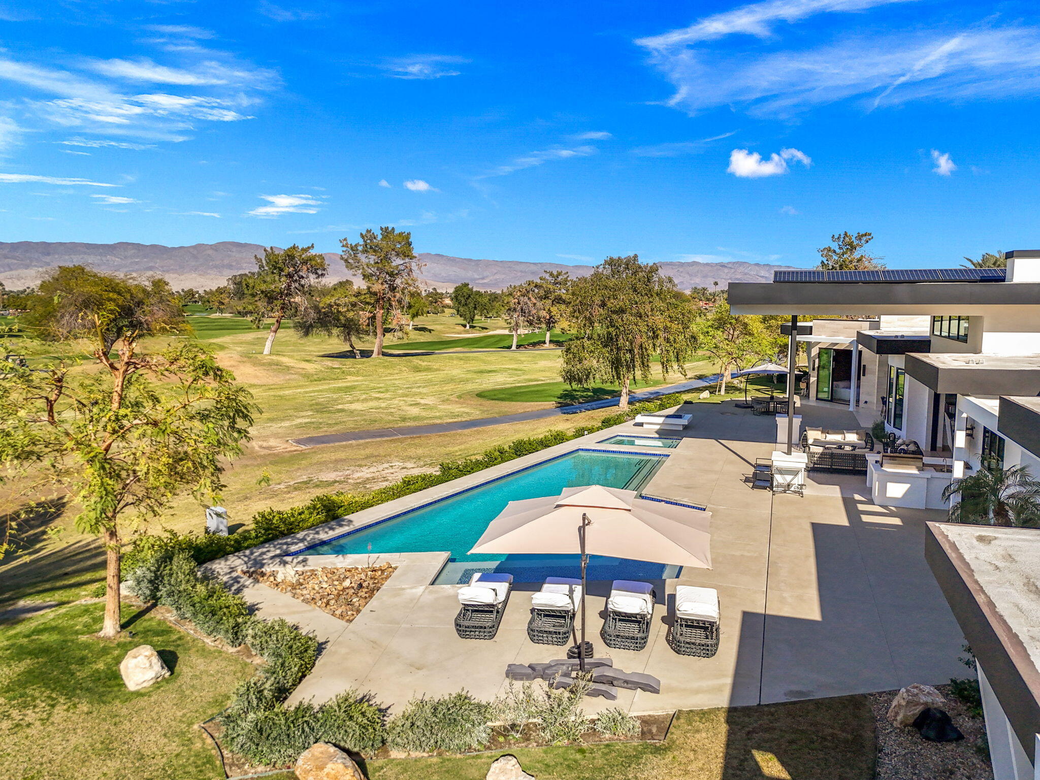 Nestled behind a private gate within the exclusive Mission Hills Country Club, this 6,830 sq. ft. contemporary masterpiece offers unparalleled design and architectural elegance. Every detail has been meticulously crafted to create a seamless blend of indoor and outdoor living. Towering 20-foot wood-lined ceilings and expansive walls of glass invite natural light while framing breathtaking double fairway views from the 12th tee of the Pete Dye course. This exceptional home features four luxurious en-suite bedrooms and five bathrooms, thoughtfully designed for both comfort and flow. The primary suite, positioned at the east end, boasts a spa-like bath with a walk-in shower, dual vanities, separate toilet areas, and a custom walk-in closet. A junior primary suite, complete with a soaking tub, shower, and dual walk-in closets, along with two additional spacious en-suite bedrooms, are located at the opposite end of the home. Art enthusiasts will appreciate the gallery-style hallways, offering ideal niches for curated collections. The home office, surrounded by glass, includes a private entrance, making it perfect for remote work or creative endeavors. Outdoors, a resort-style setting awaits with a large pool and spa, a fire pit, an outdoor kitchen with a TV, and expansive concrete decking--ideal for entertaining. Enjoy breathtaking mountain and golf course views from the covered patio, offering the perfect setting for relaxation. Designed for convenience and security, the estate includes a four-car garage, with two separate two-car garages strategically placed at opposite ends of the home. With a low HOA of just $242, this modern architectural gem is a rare find, ready for the most sophisticated buyer.Interested in this Listing?