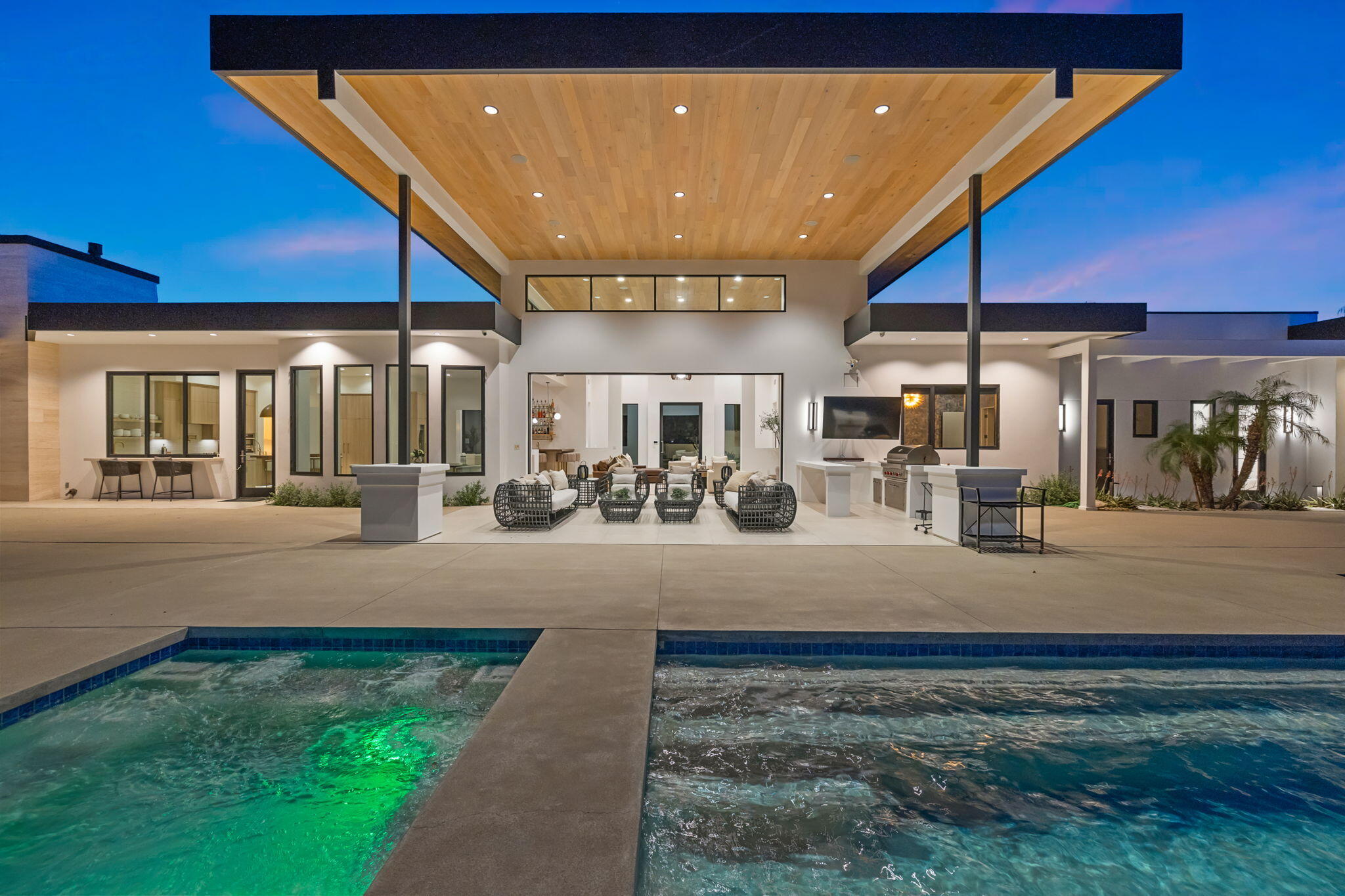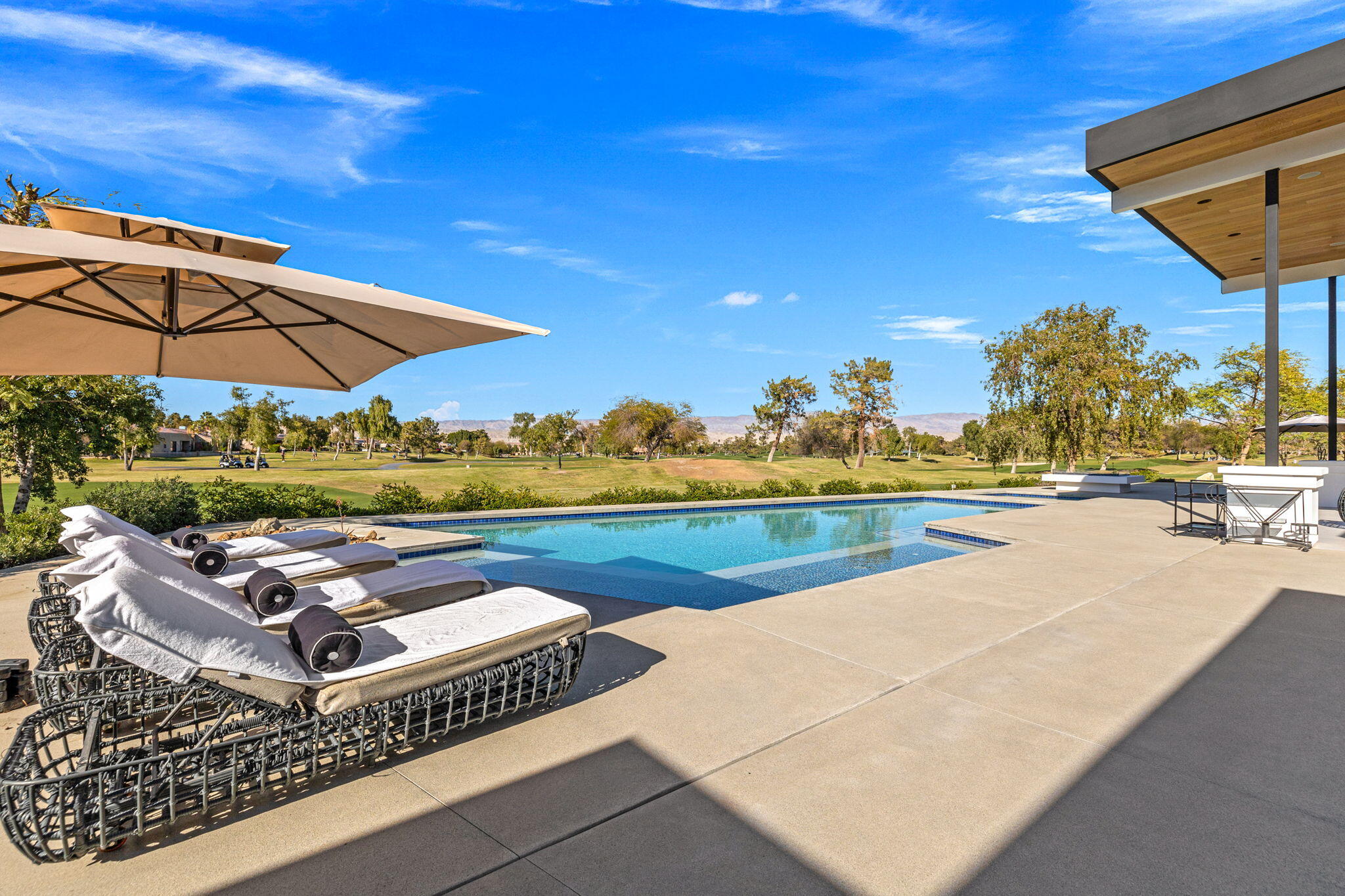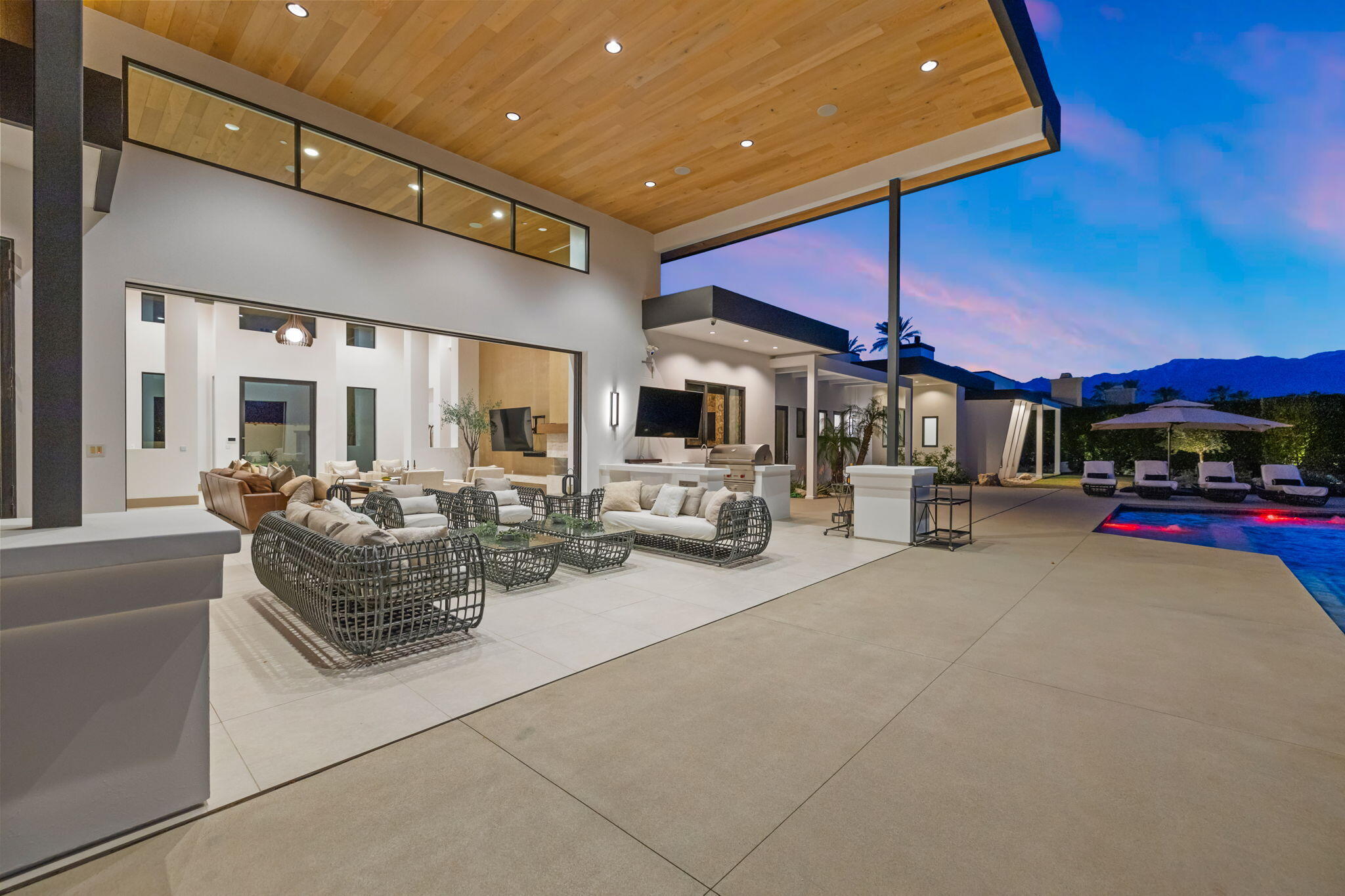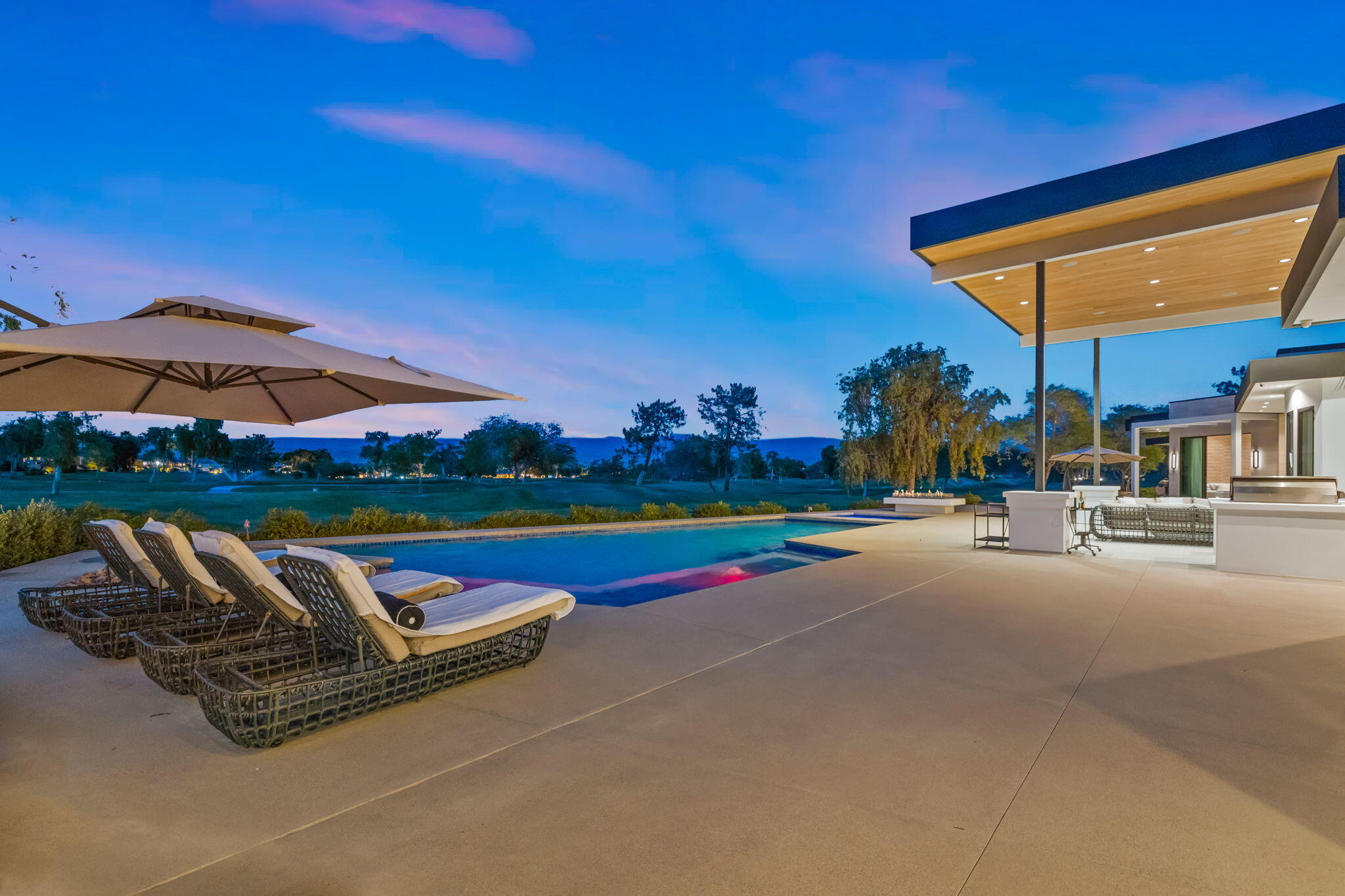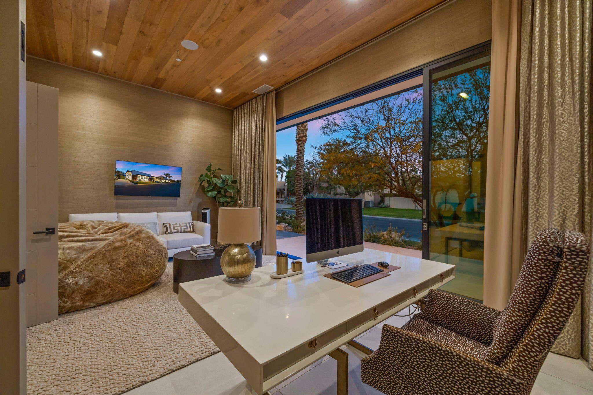 Nestled behind a private gate within the exclusive Mission Hills Country Club, this 6,830 sq. ft. contemporary masterpiece offers unparalleled design and architectural elegance. Every detail has been meticulously crafted to create a seamless blend of indoor and outdoor living. Towering 20-foot wood-lined ceilings and expansive walls of glass invite natural light while framing breathtaking double fairway views from the 12th tee of the Pete Dye course. This exceptional home features four luxurious en-suite bedrooms and five bathrooms, thoughtfully designed for both comfort and flow. The primary suite, positioned at the east end, boasts a spa-like bath with a walk-in shower, dual vanities, separate toilet areas, and a custom walk-in closet. A junior primary suite, complete with a soaking tub, shower, and dual walk-in closets, along with two additional spacious en-suite bedrooms, are located at the opposite end of the home. Art enthusiasts will appreciate the gallery-style hallways, offering ideal niches for curated collections. The home office, surrounded by glass, includes a private entrance, making it perfect for remote work or creative endeavors. Outdoors, a resort-style setting awaits with a large pool and spa, a fire pit, an outdoor kitchen with a TV, and expansive concrete decking--ideal for entertaining. Enjoy breathtaking mountain and golf course views from the covered patio, offering the perfect setting for relaxation. Designed for convenience and security, the estate includes a four-car garage, with two separate two-car garages strategically placed at opposite ends of the home. With a low HOA of just $242, this modern architectural gem is a rare find, ready for the most sophisticated buyer.Interested in this Listing?