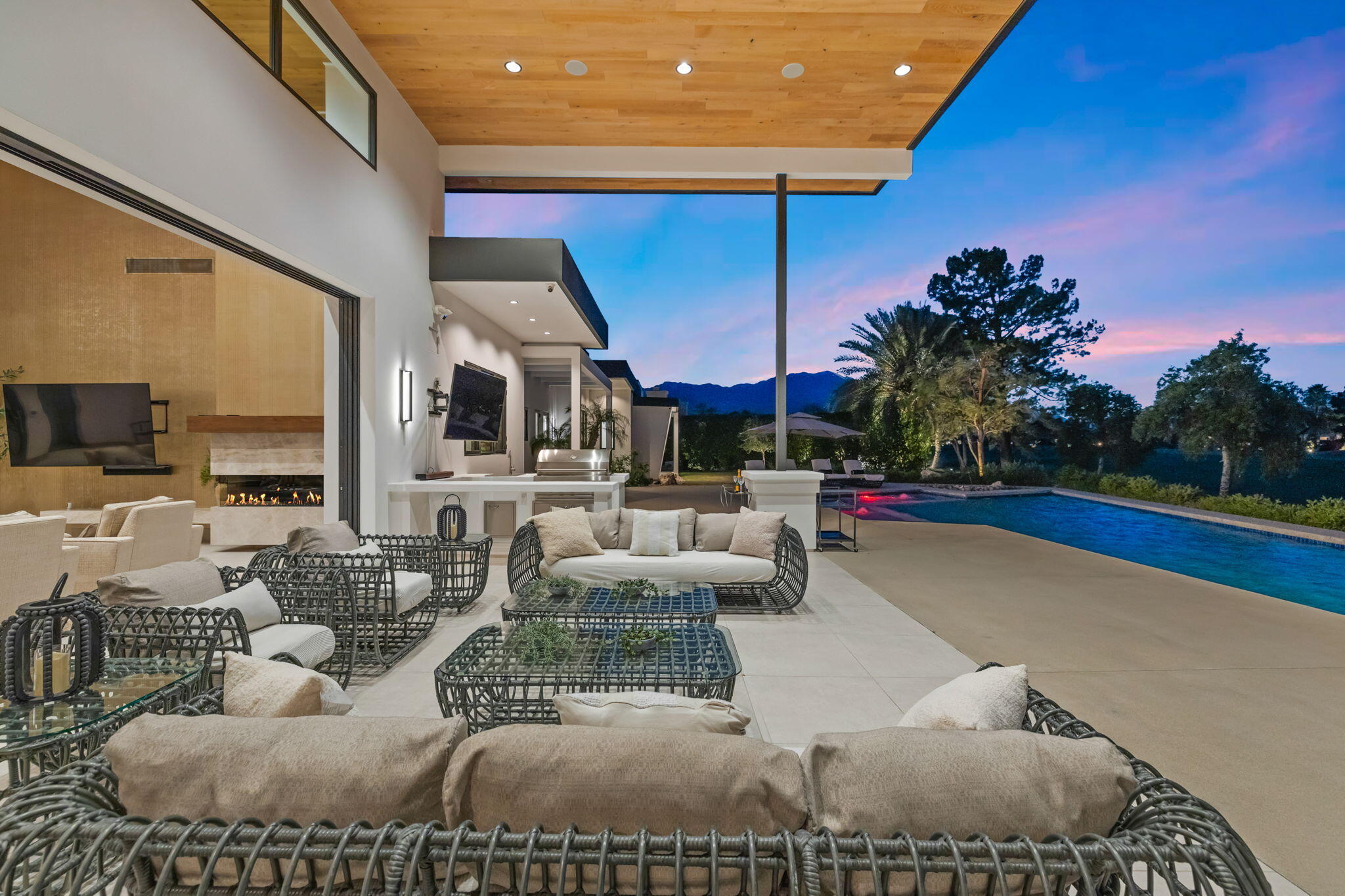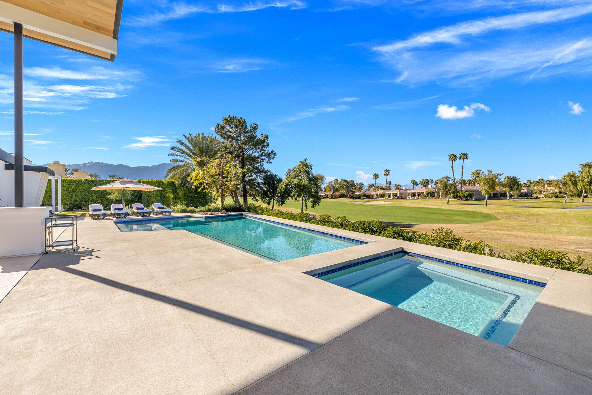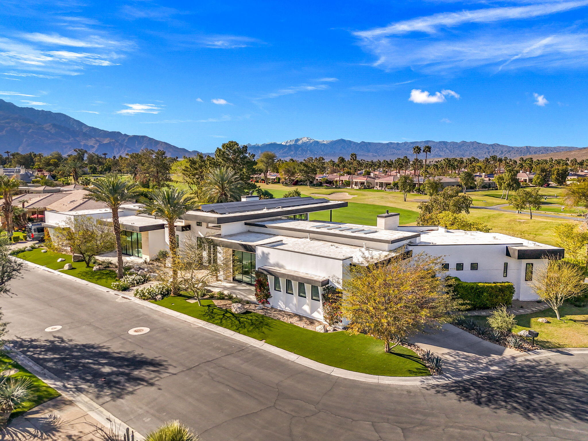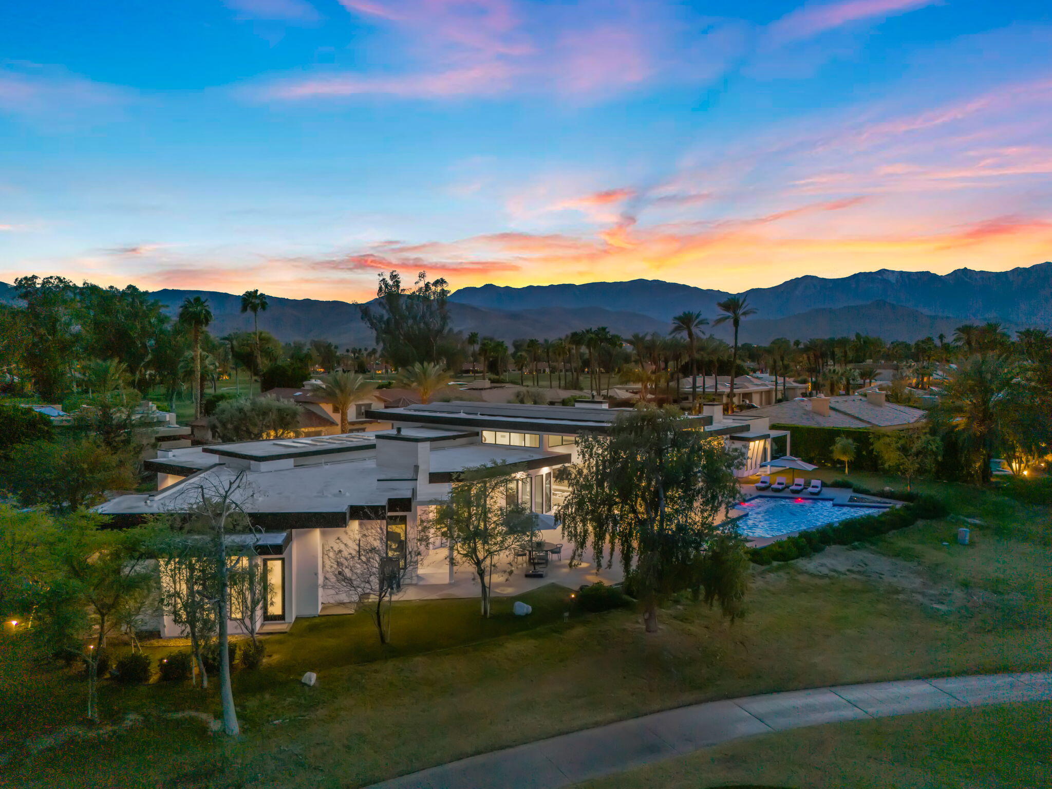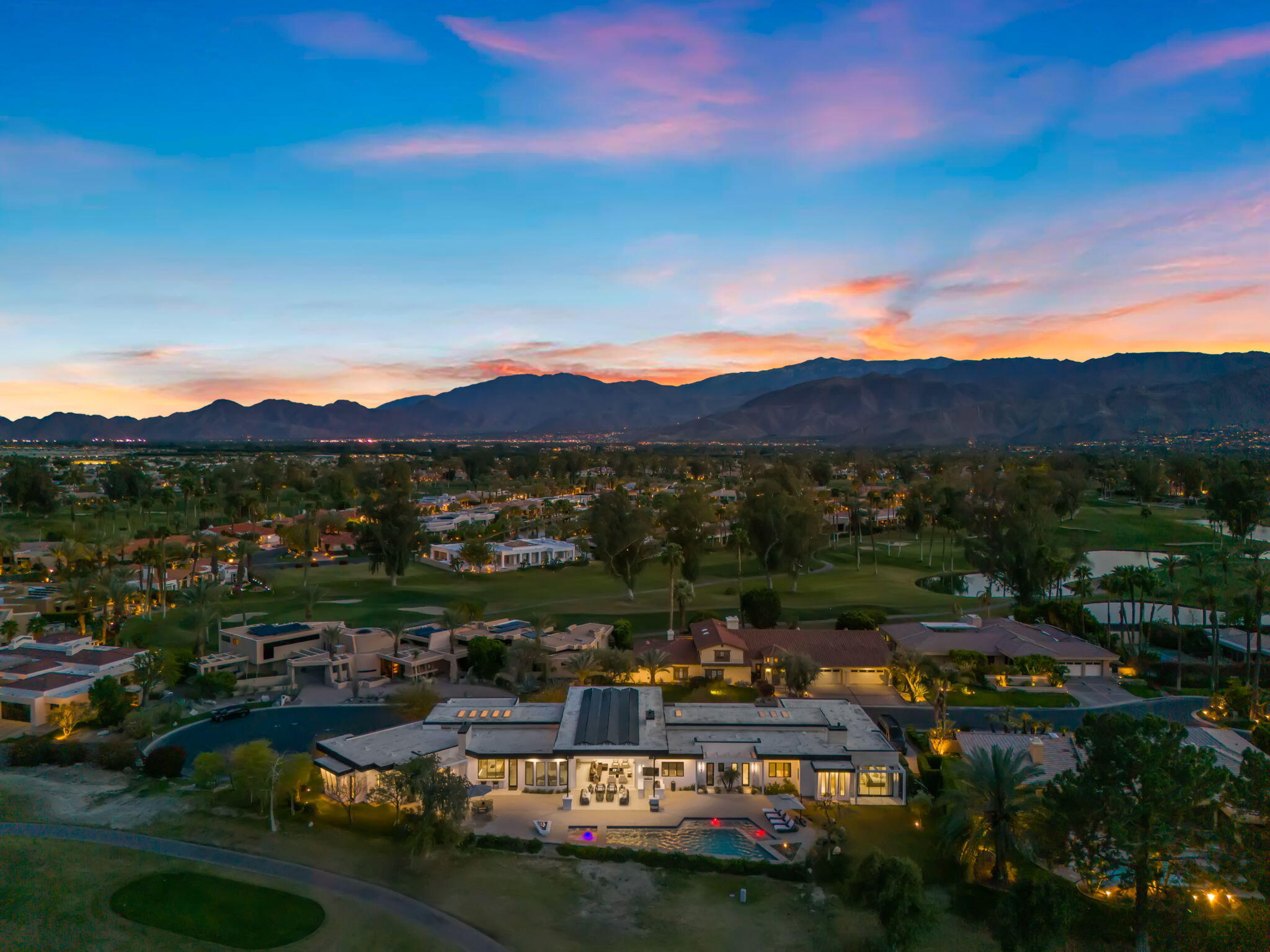 Nestled behind a private gate within the exclusive Mission Hills Country Club, this 6,830 sq. ft. contemporary masterpiece offers unparalleled design and architectural elegance. Every detail has been meticulously crafted to create a seamless blend of indoor and outdoor living. Towering 20-foot wood-lined ceilings and expansive walls of glass invite natural light while framing breathtaking double fairway views from the 12th tee of the Pete Dye course. This exceptional home features four luxurious en-suite bedrooms and five bathrooms, thoughtfully designed for both comfort and flow. The primary suite, positioned at the east end, boasts a spa-like bath with a walk-in shower, dual vanities, separate toilet areas, and a custom walk-in closet. A junior primary suite, complete with a soaking tub, shower, and dual walk-in closets, along with two additional spacious en-suite bedrooms, are located at the opposite end of the home. Art enthusiasts will appreciate the gallery-style hallways, offering ideal niches for curated collections. The home office, surrounded by glass, includes a private entrance, making it perfect for remote work or creative endeavors. Outdoors, a resort-style setting awaits with a large pool and spa, a fire pit, an outdoor kitchen with a TV, and expansive concrete decking--ideal for entertaining. Enjoy breathtaking mountain and golf course views from the covered patio, offering the perfect setting for relaxation. Designed for convenience and security, the estate includes a four-car garage, with two separate two-car garages strategically placed at opposite ends of the home. With a low HOA of just $242, this modern architectural gem is a rare find, ready for the most sophisticated buyer.Interested in this Listing?