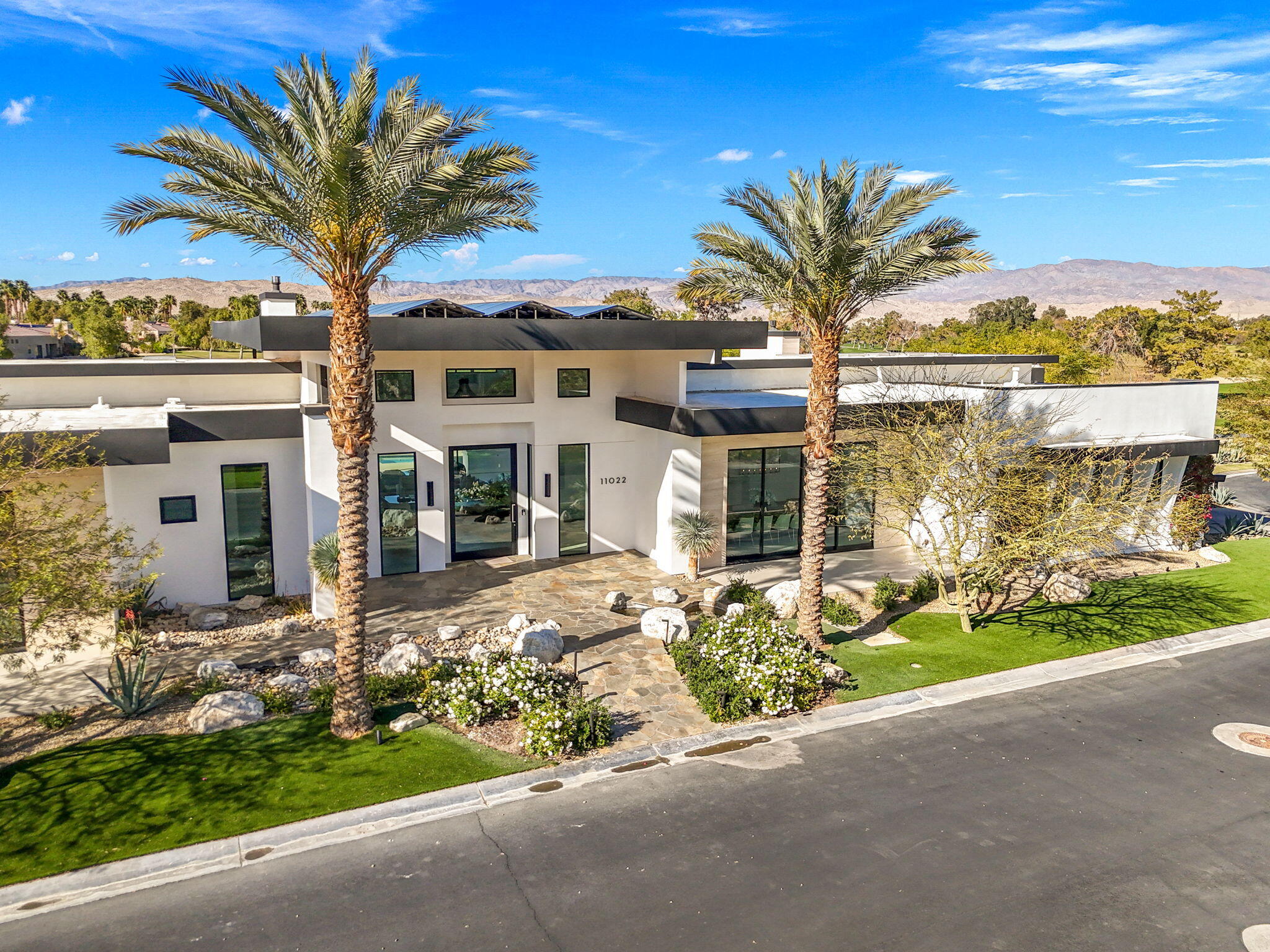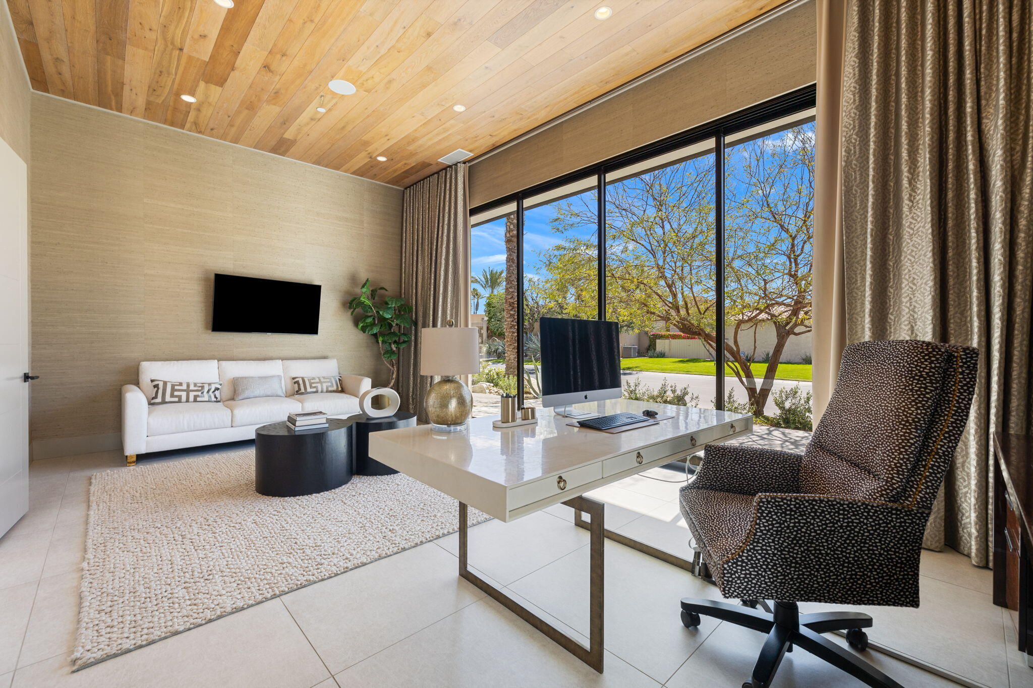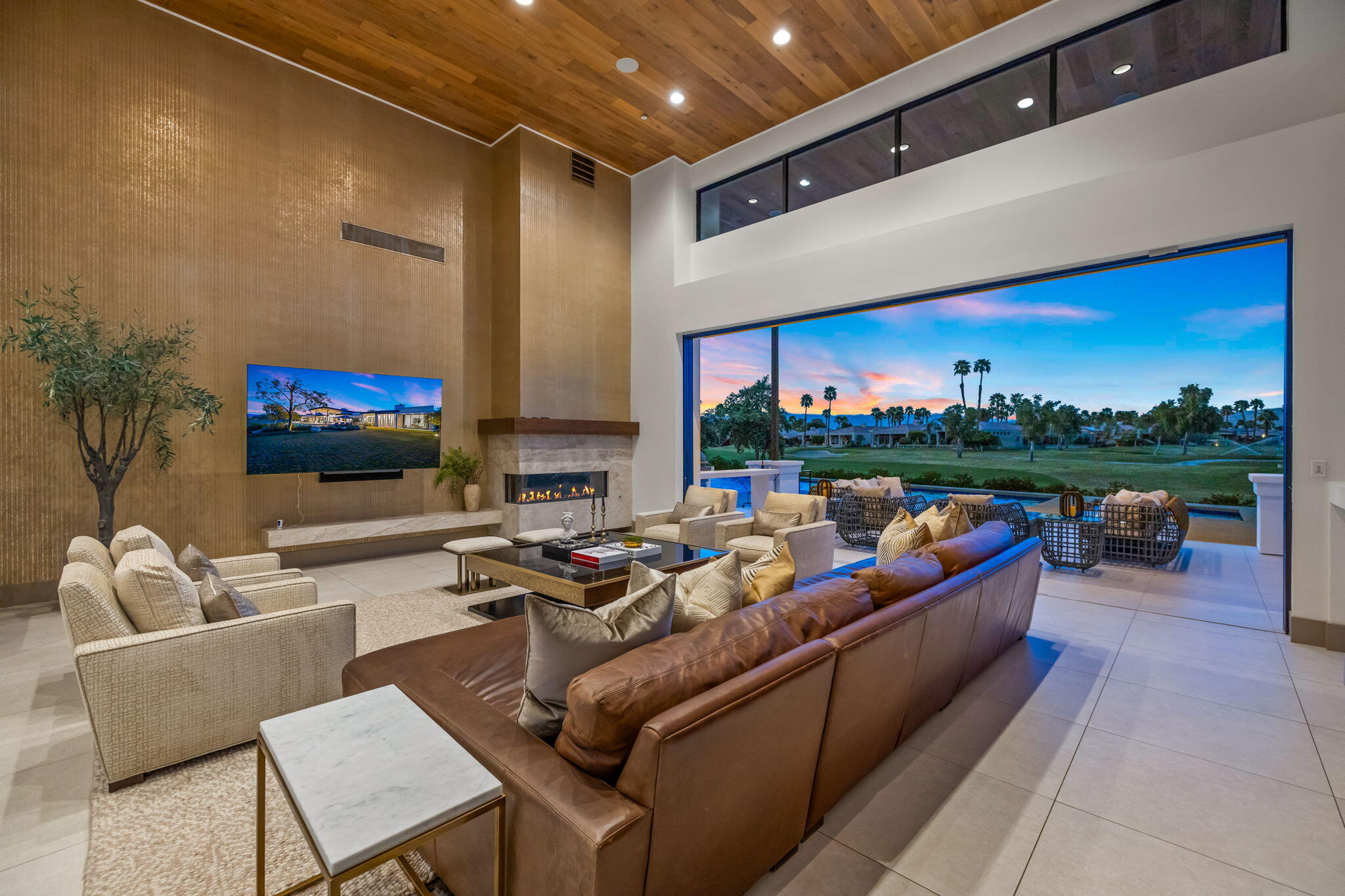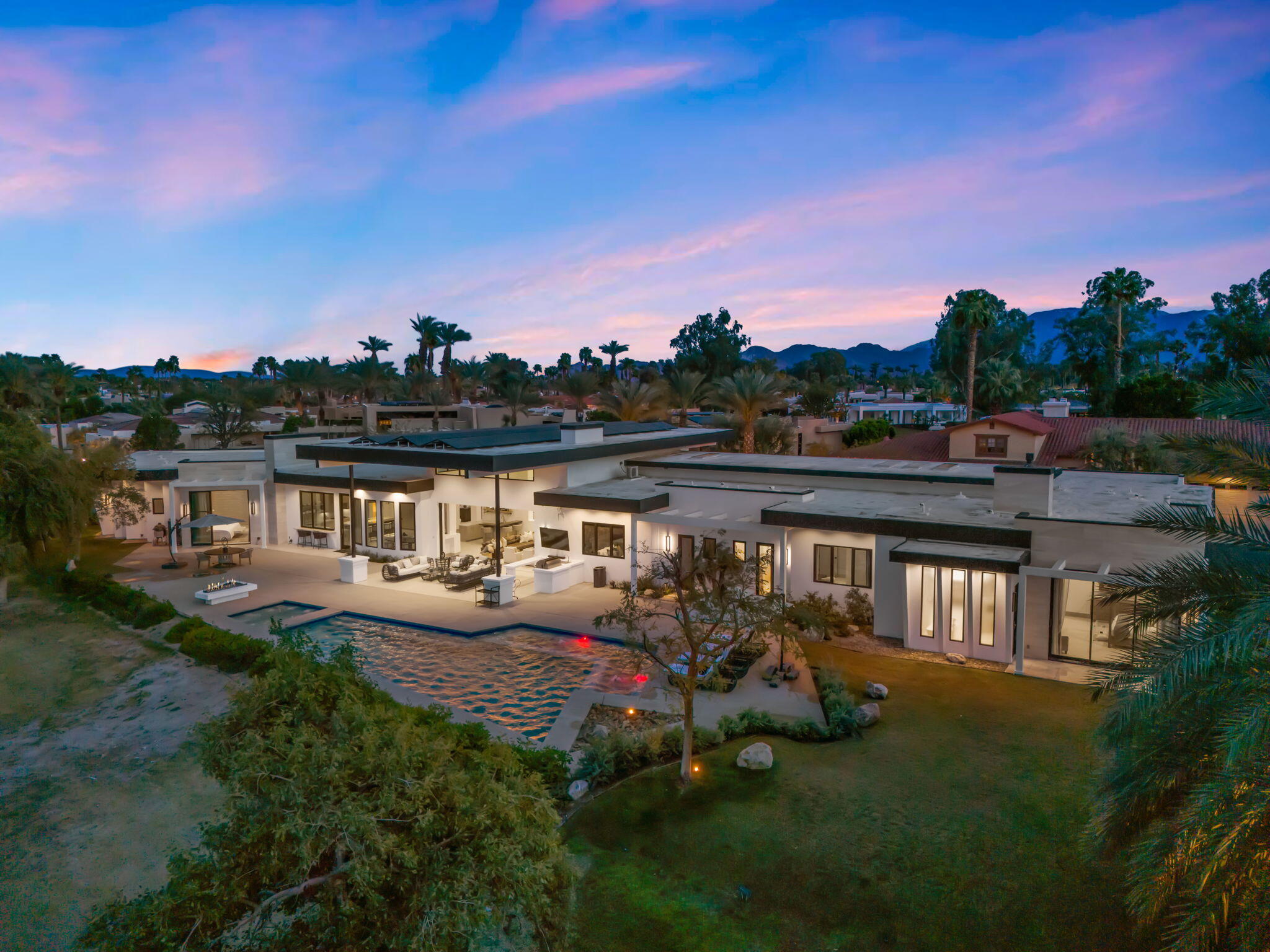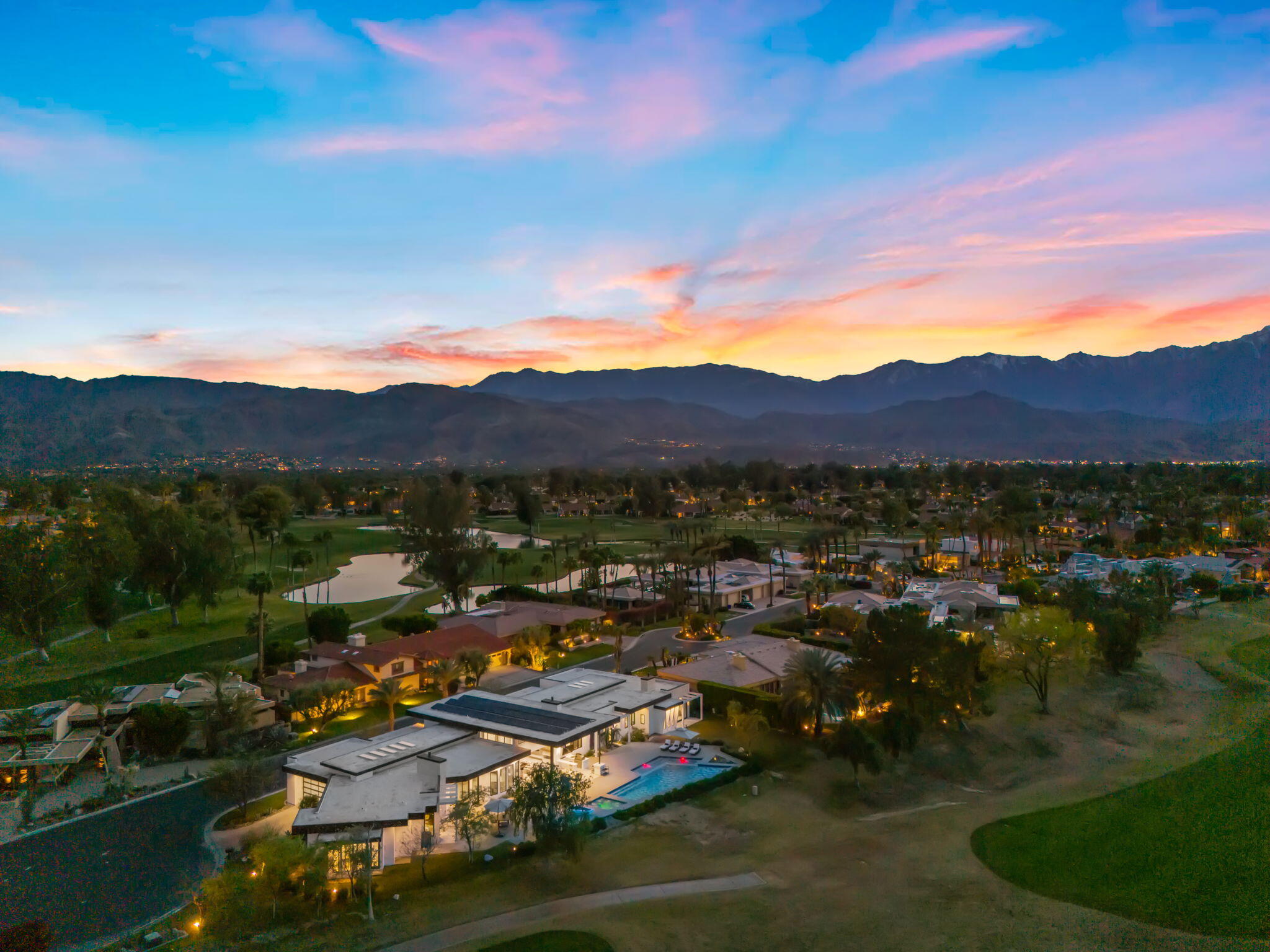 Nestled behind a private gate within the exclusive Mission Hills Country Club, this 6,830 sq. ft. contemporary masterpiece offers unparalleled design and architectural elegance. Every detail has been meticulously crafted to create a seamless blend of indoor and outdoor living. Towering 20-foot wood-lined ceilings and expansive walls of glass invite natural light while framing breathtaking double fairway views from the 12th tee of the Pete Dye course. This exceptional home features four luxurious en-suite bedrooms and five bathrooms, thoughtfully designed for both comfort and flow. The primary suite, positioned at the east end, boasts a spa-like bath with a walk-in shower, dual vanities, separate toilet areas, and a custom walk-in closet. A junior primary suite, complete with a soaking tub, shower, and dual walk-in closets, along with two additional spacious en-suite bedrooms, are located at the opposite end of the home. Art enthusiasts will appreciate the gallery-style hallways, offering ideal niches for curated collections. The home office, surrounded by glass, includes a private entrance, making it perfect for remote work or creative endeavors. Outdoors, a resort-style setting awaits with a large pool and spa, a fire pit, an outdoor kitchen with a TV, and expansive concrete decking--ideal for entertaining. Enjoy breathtaking mountain and golf course views from the covered patio, offering the perfect setting for relaxation. Designed for convenience and security, the estate includes a four-car garage, with two separate two-car garages strategically placed at opposite ends of the home. With a low HOA of just $242, this modern architectural gem is a rare find, ready for the most sophisticated buyer.Interested in this Listing?