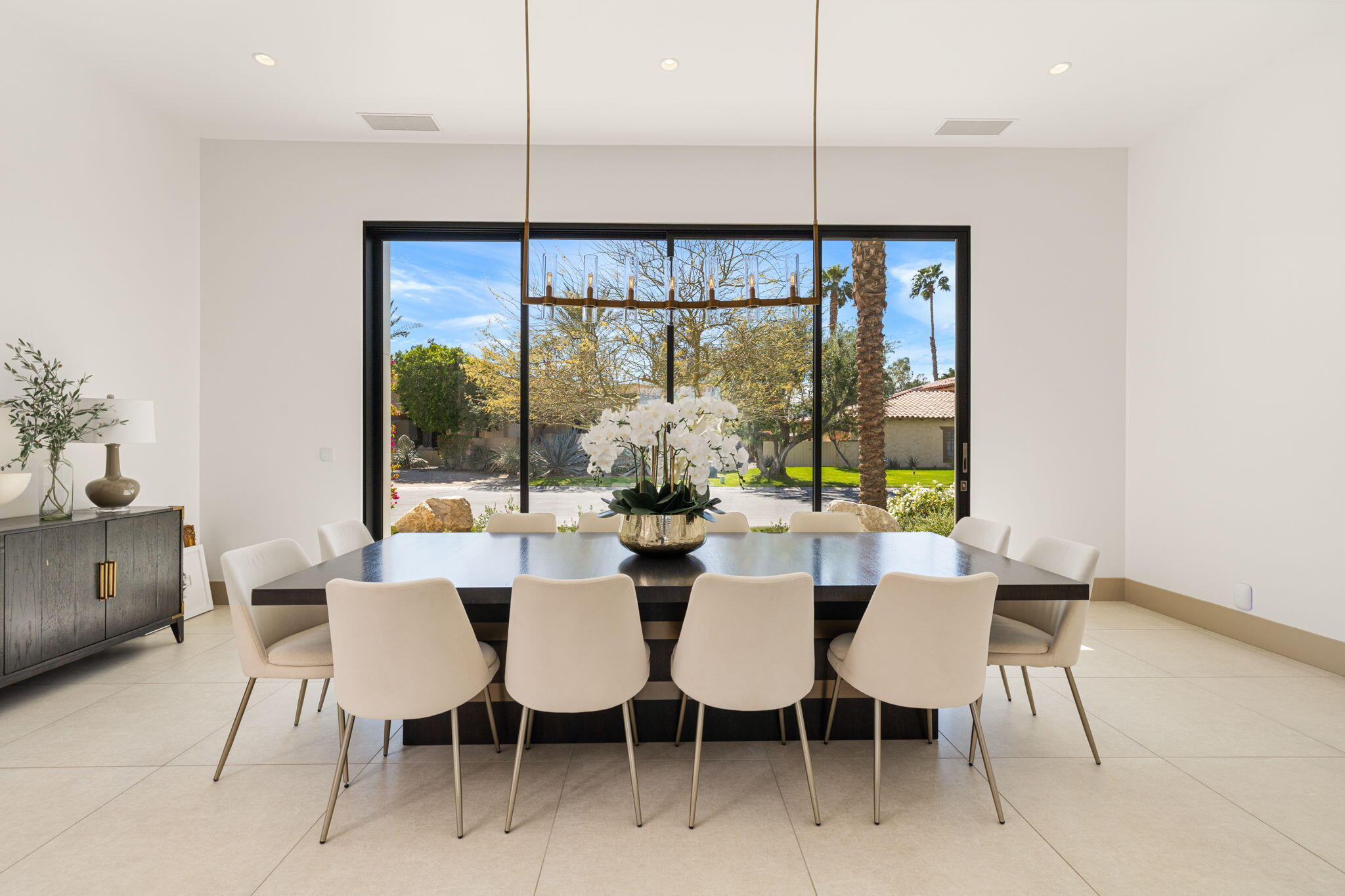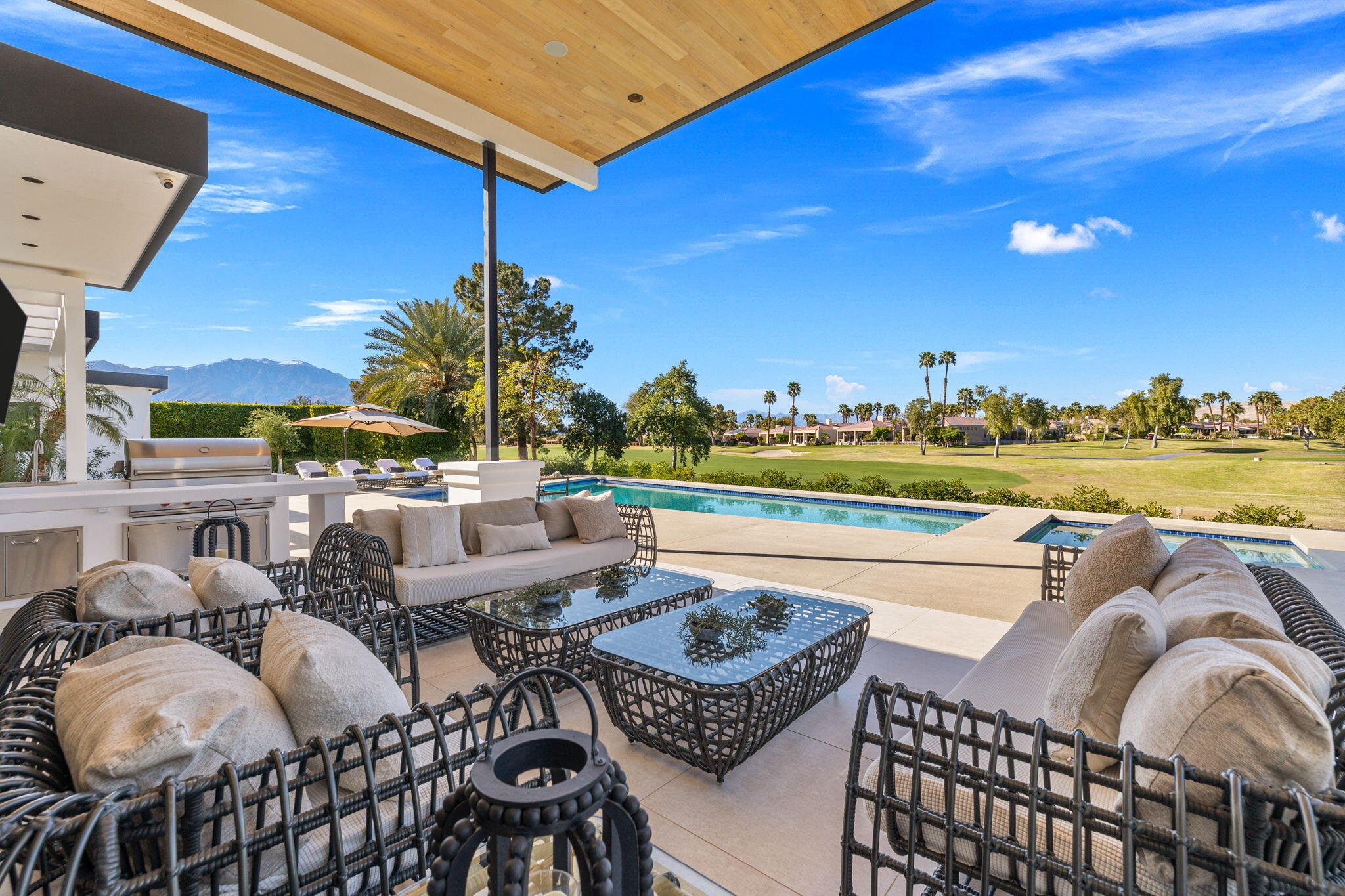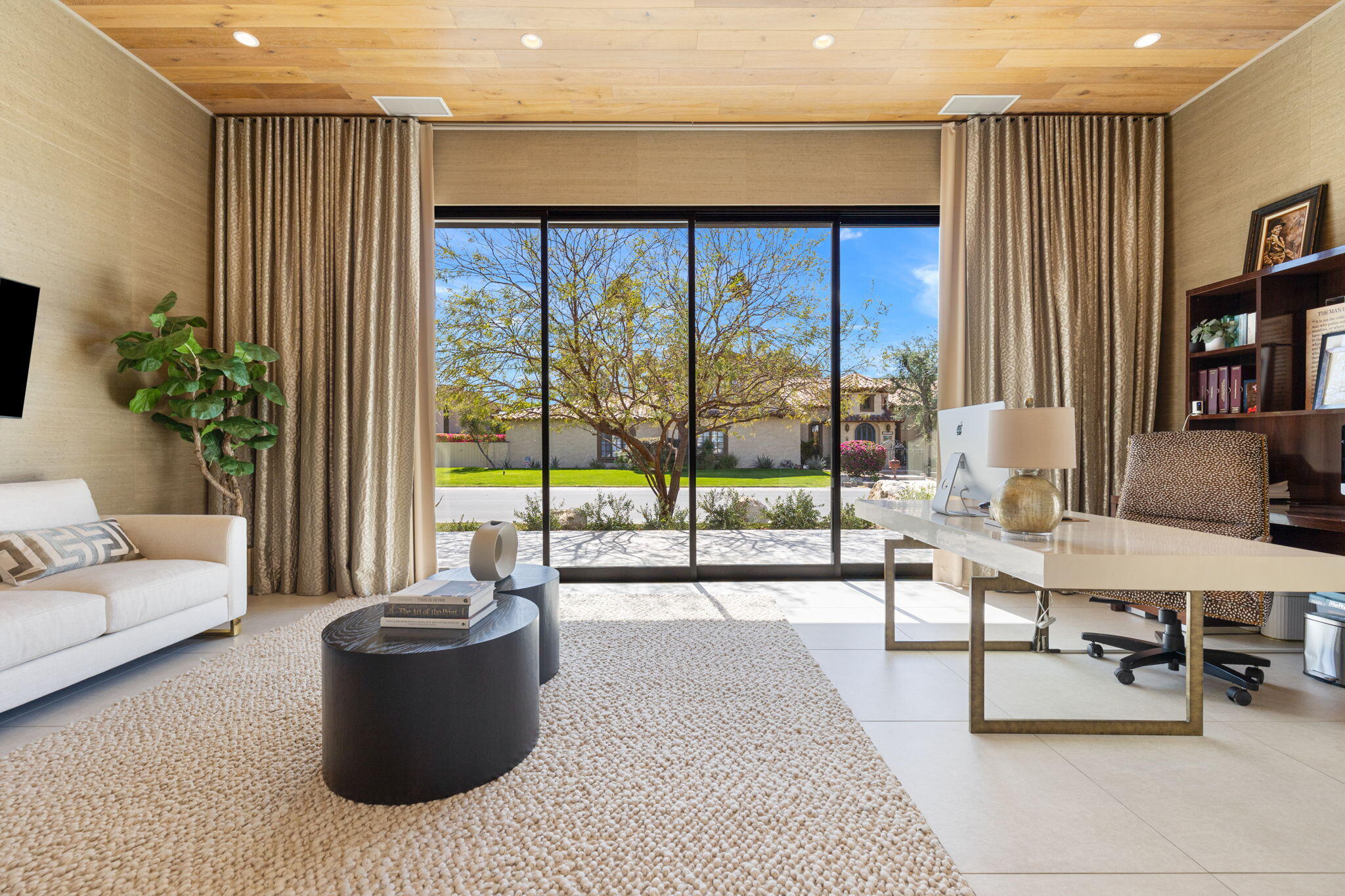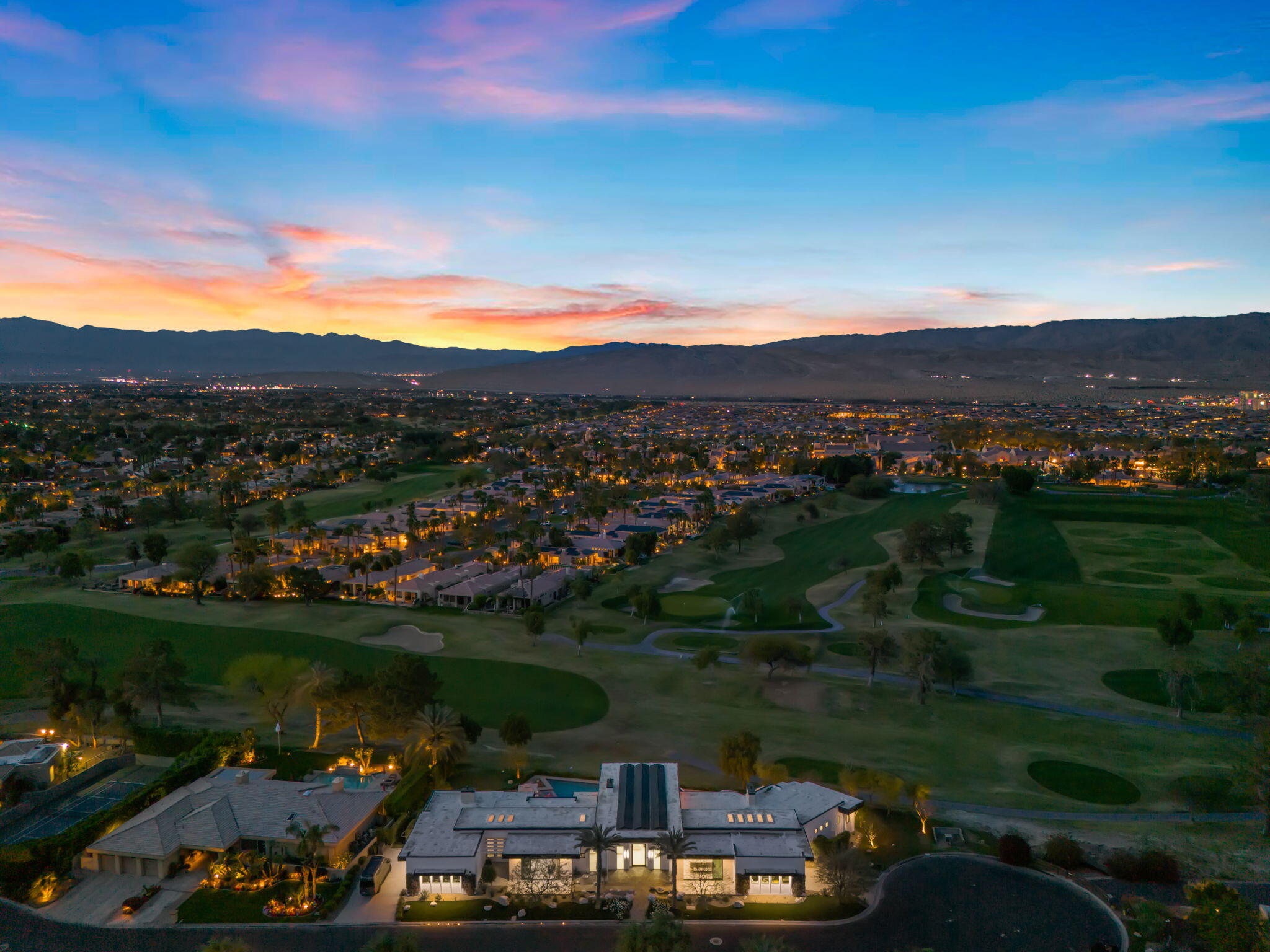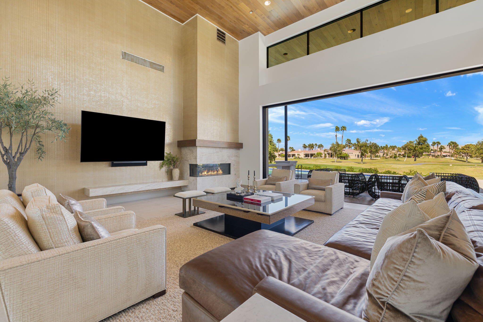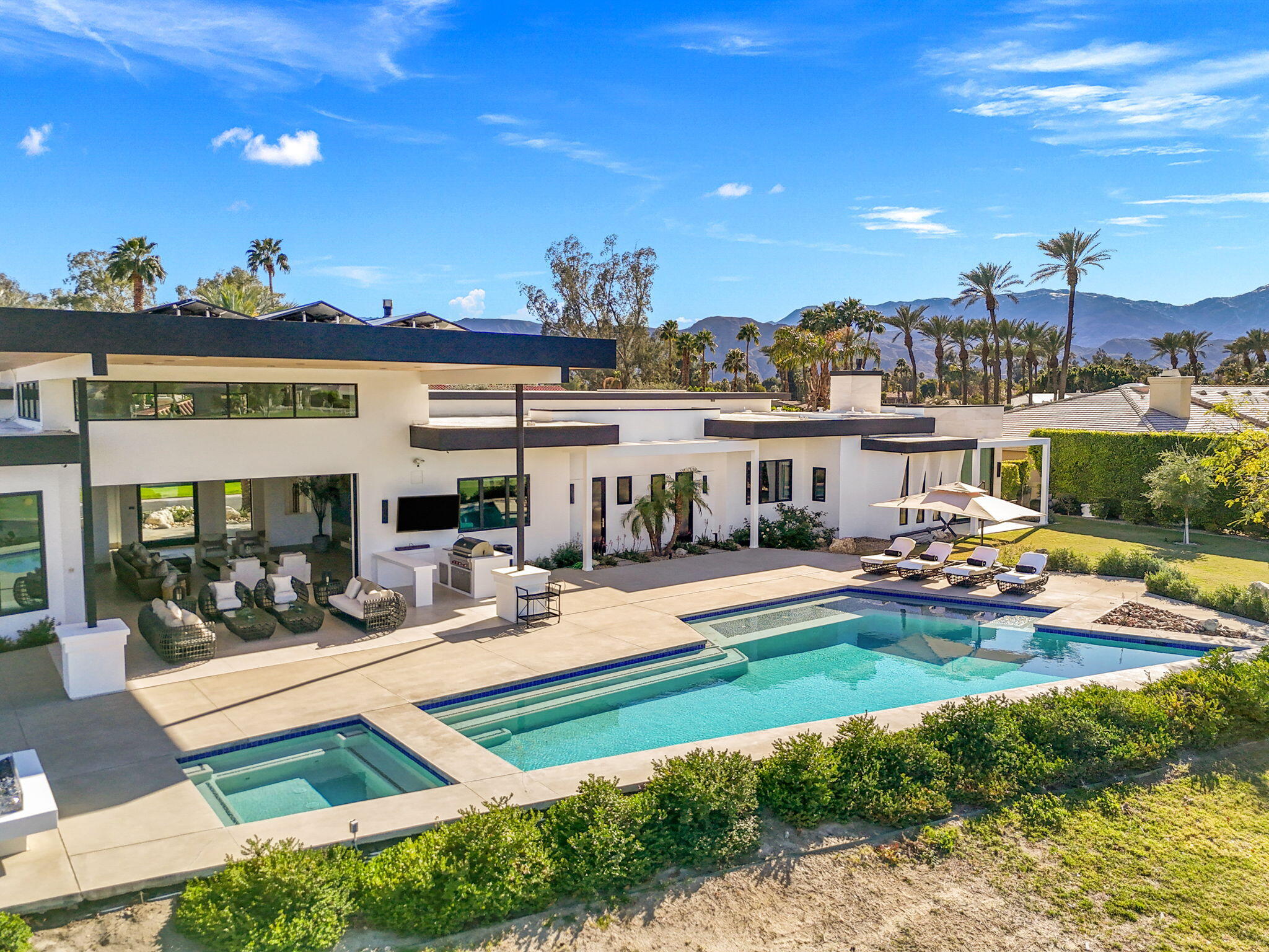 Nestled behind a private gate within the exclusive Mission Hills Country Club, this 6,830 sq. ft. contemporary masterpiece offers unparalleled design and architectural elegance. Every detail has been meticulously crafted to create a seamless blend of indoor and outdoor living. Towering 20-foot wood-lined ceilings and expansive walls of glass invite natural light while framing breathtaking double fairway views from the 12th tee of the Pete Dye course. This exceptional home features four luxurious en-suite bedrooms and five bathrooms, thoughtfully designed for both comfort and flow. The primary suite, positioned at the east end, boasts a spa-like bath with a walk-in shower, dual vanities, separate toilet areas, and a custom walk-in closet. A junior primary suite, complete with a soaking tub, shower, and dual walk-in closets, along with two additional spacious en-suite bedrooms, are located at the opposite end of the home. Art enthusiasts will appreciate the gallery-style hallways, offering ideal niches for curated collections. The home office, surrounded by glass, includes a private entrance, making it perfect for remote work or creative endeavors. Outdoors, a resort-style setting awaits with a large pool and spa, a fire pit, an outdoor kitchen with a TV, and expansive concrete decking--ideal for entertaining. Enjoy breathtaking mountain and golf course views from the covered patio, offering the perfect setting for relaxation. Designed for convenience and security, the estate includes a four-car garage, with two separate two-car garages strategically placed at opposite ends of the home. With a low HOA of just $242, this modern architectural gem is a rare find, ready for the most sophisticated buyer.Interested in this Listing?