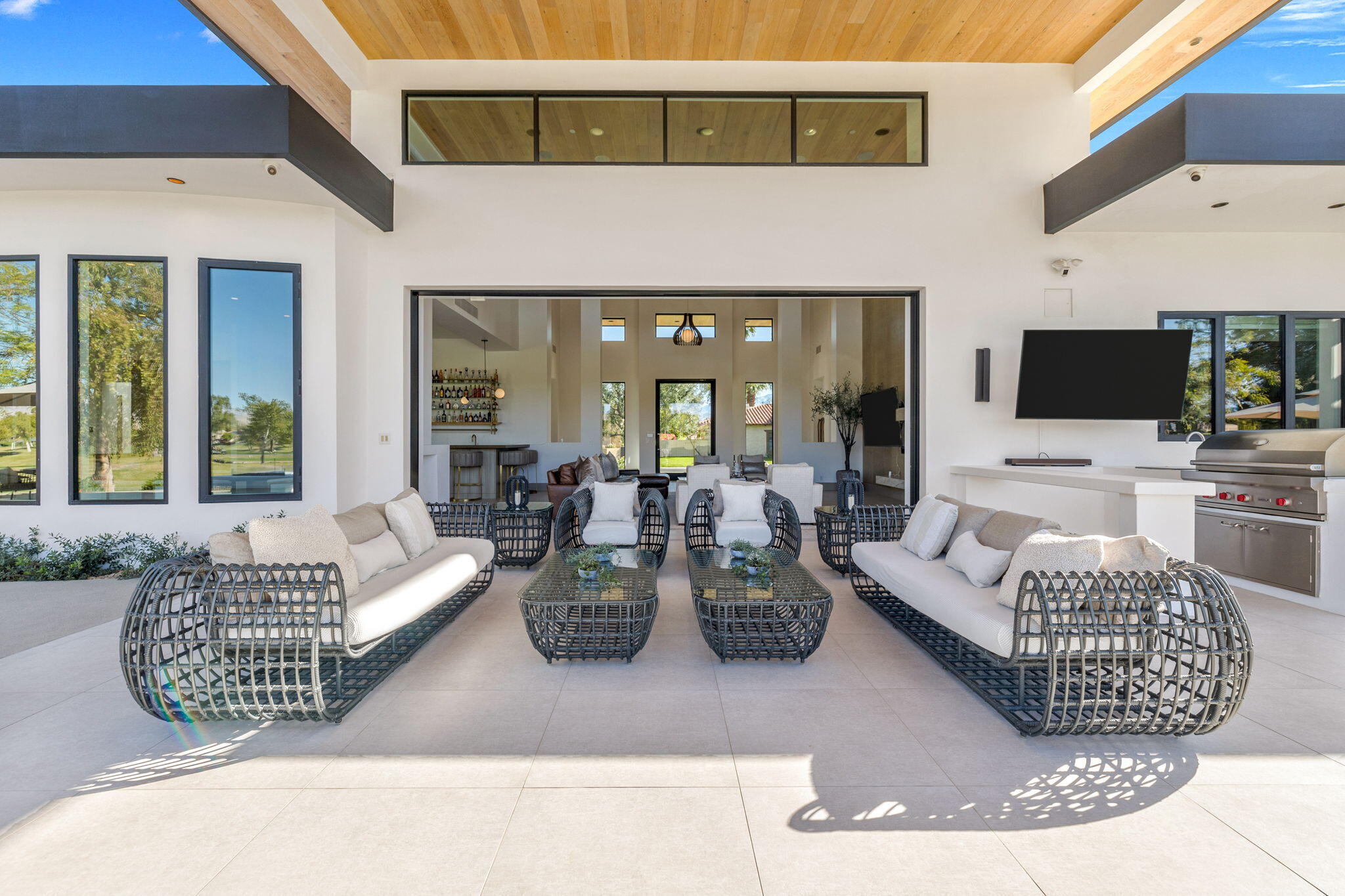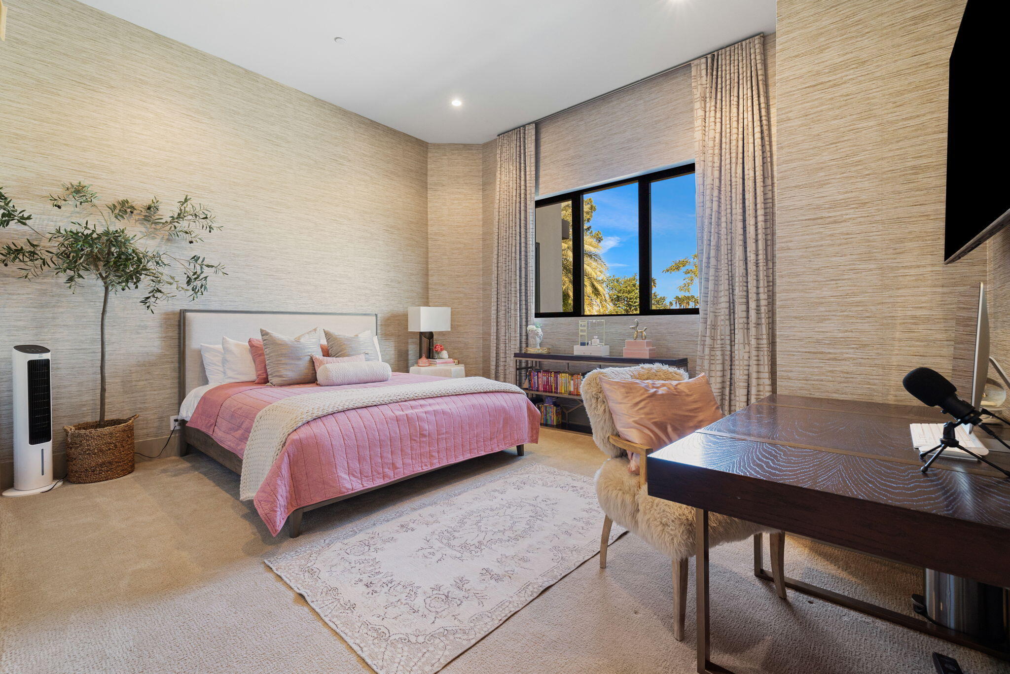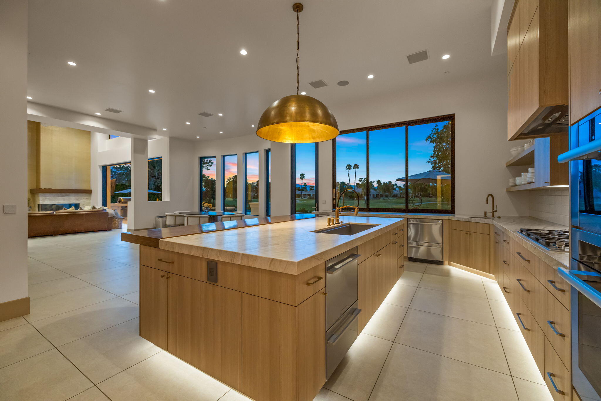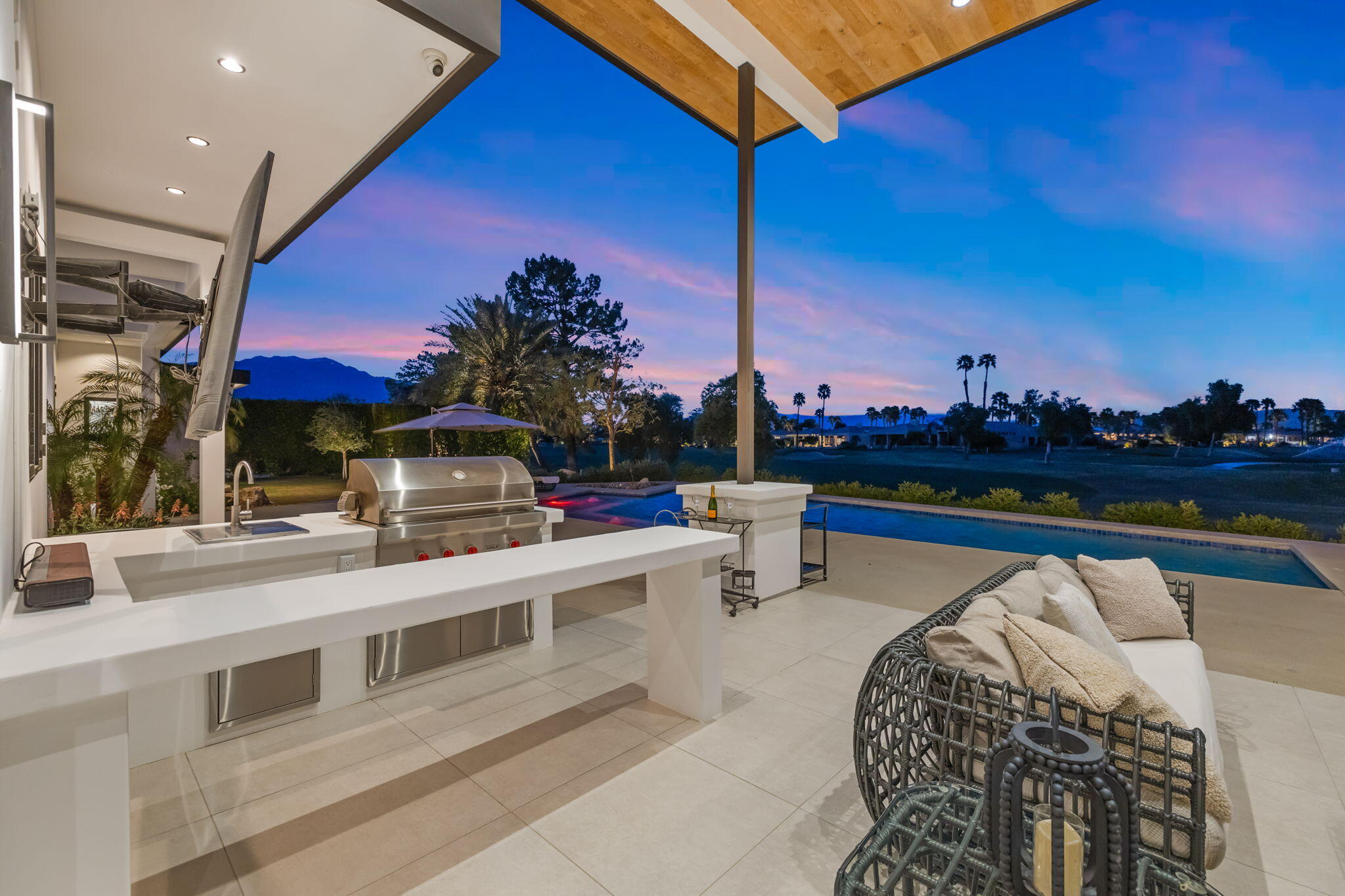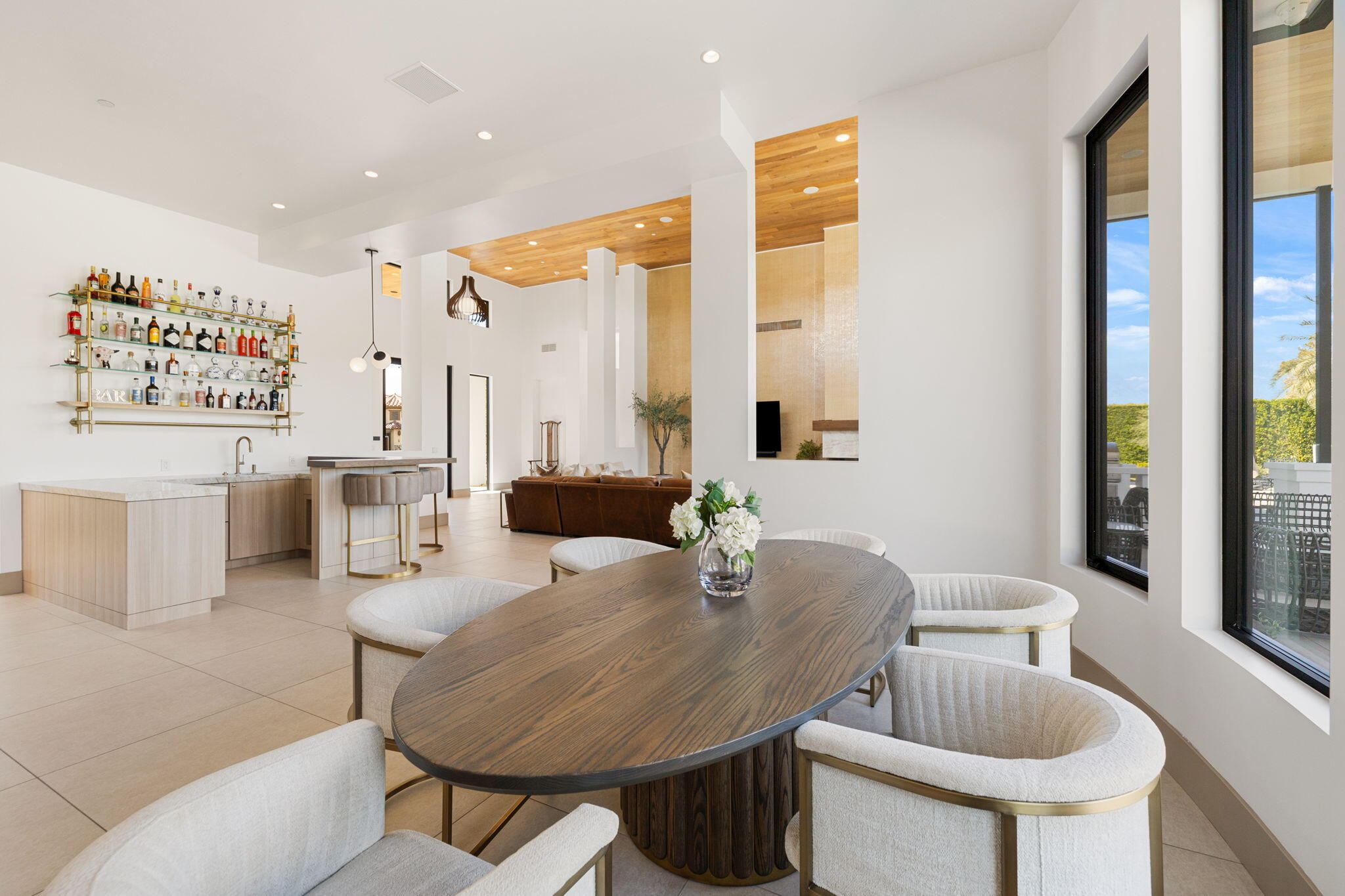 Nestled behind a private gate within the exclusive Mission Hills Country Club, this 6,830 sq. ft. contemporary masterpiece offers unparalleled design and architectural elegance. Every detail has been meticulously crafted to create a seamless blend of indoor and outdoor living. Towering 20-foot wood-lined ceilings and expansive walls of glass invite natural light while framing breathtaking double fairway views from the 12th tee of the Pete Dye course. This exceptional home features four luxurious en-suite bedrooms and five bathrooms, thoughtfully designed for both comfort and flow. The primary suite, positioned at the east end, boasts a spa-like bath with a walk-in shower, dual vanities, separate toilet areas, and a custom walk-in closet. A junior primary suite, complete with a soaking tub, shower, and dual walk-in closets, along with two additional spacious en-suite bedrooms, are located at the opposite end of the home. Art enthusiasts will appreciate the gallery-style hallways, offering ideal niches for curated collections. The home office, surrounded by glass, includes a private entrance, making it perfect for remote work or creative endeavors. Outdoors, a resort-style setting awaits with a large pool and spa, a fire pit, an outdoor kitchen with a TV, and expansive concrete decking--ideal for entertaining. Enjoy breathtaking mountain and golf course views from the covered patio, offering the perfect setting for relaxation. Designed for convenience and security, the estate includes a four-car garage, with two separate two-car garages strategically placed at opposite ends of the home. With a low HOA of just $242, this modern architectural gem is a rare find, ready for the most sophisticated buyer.Interested in this Listing?