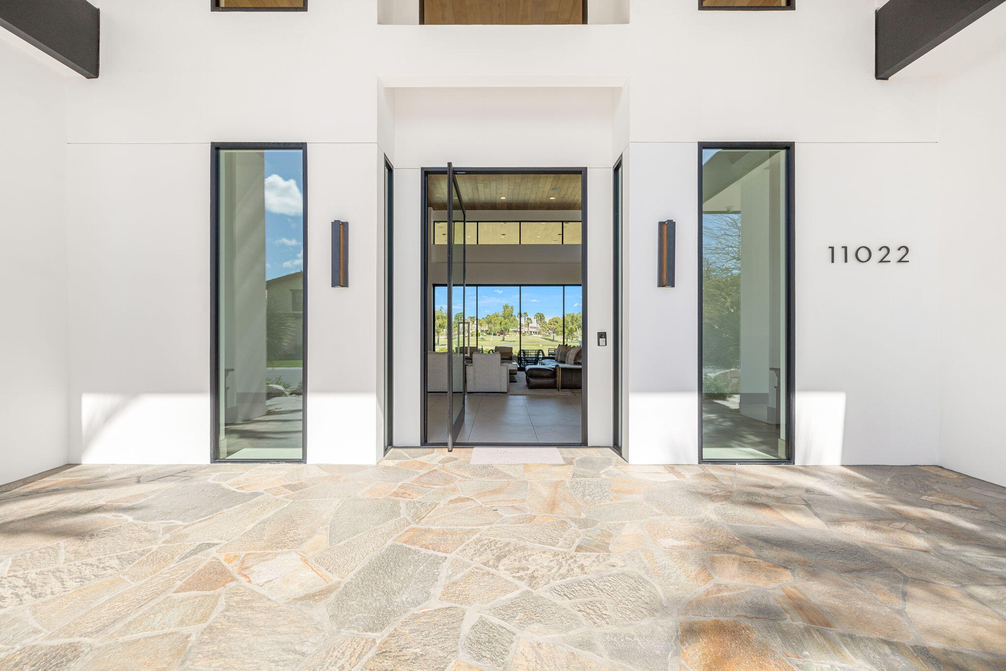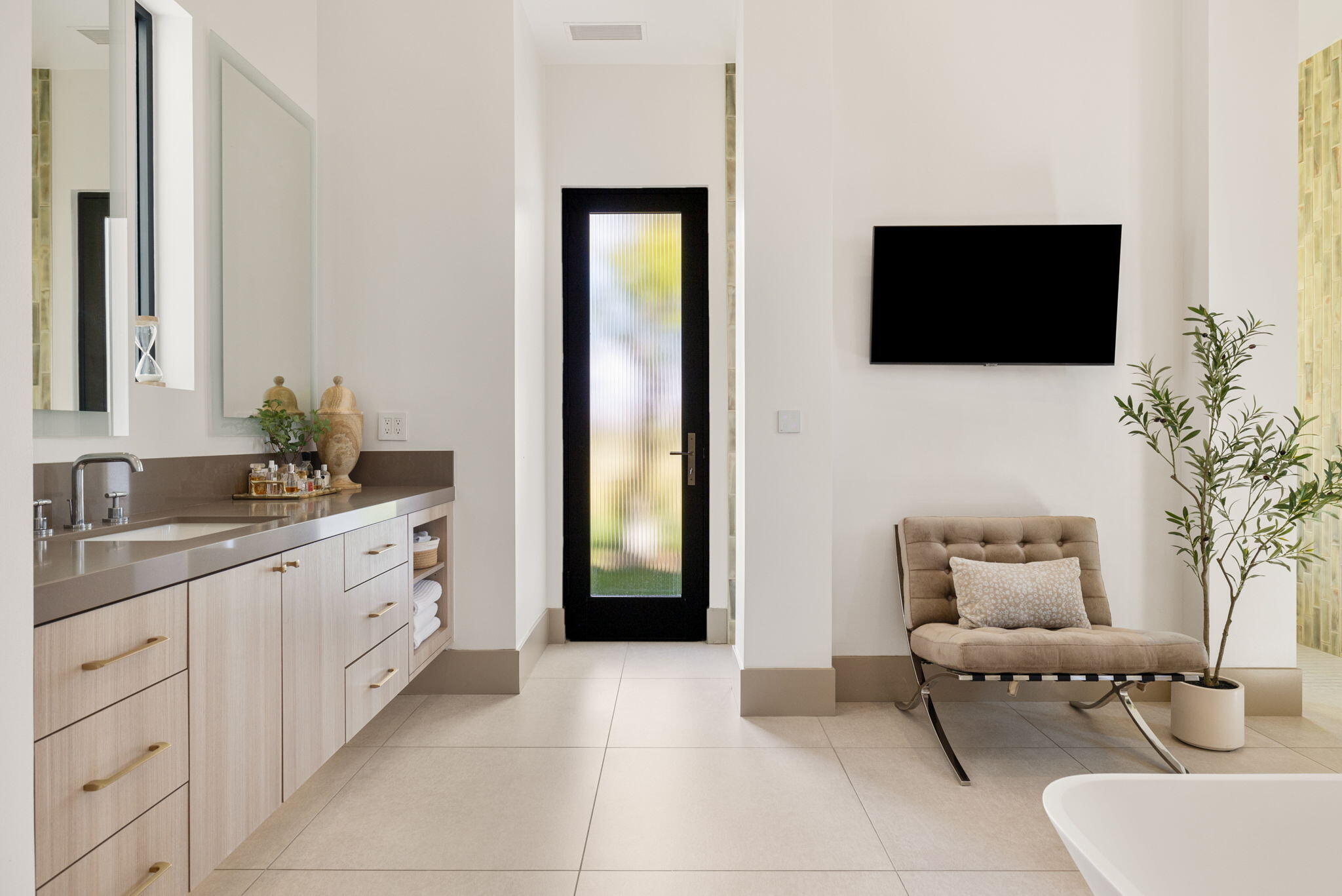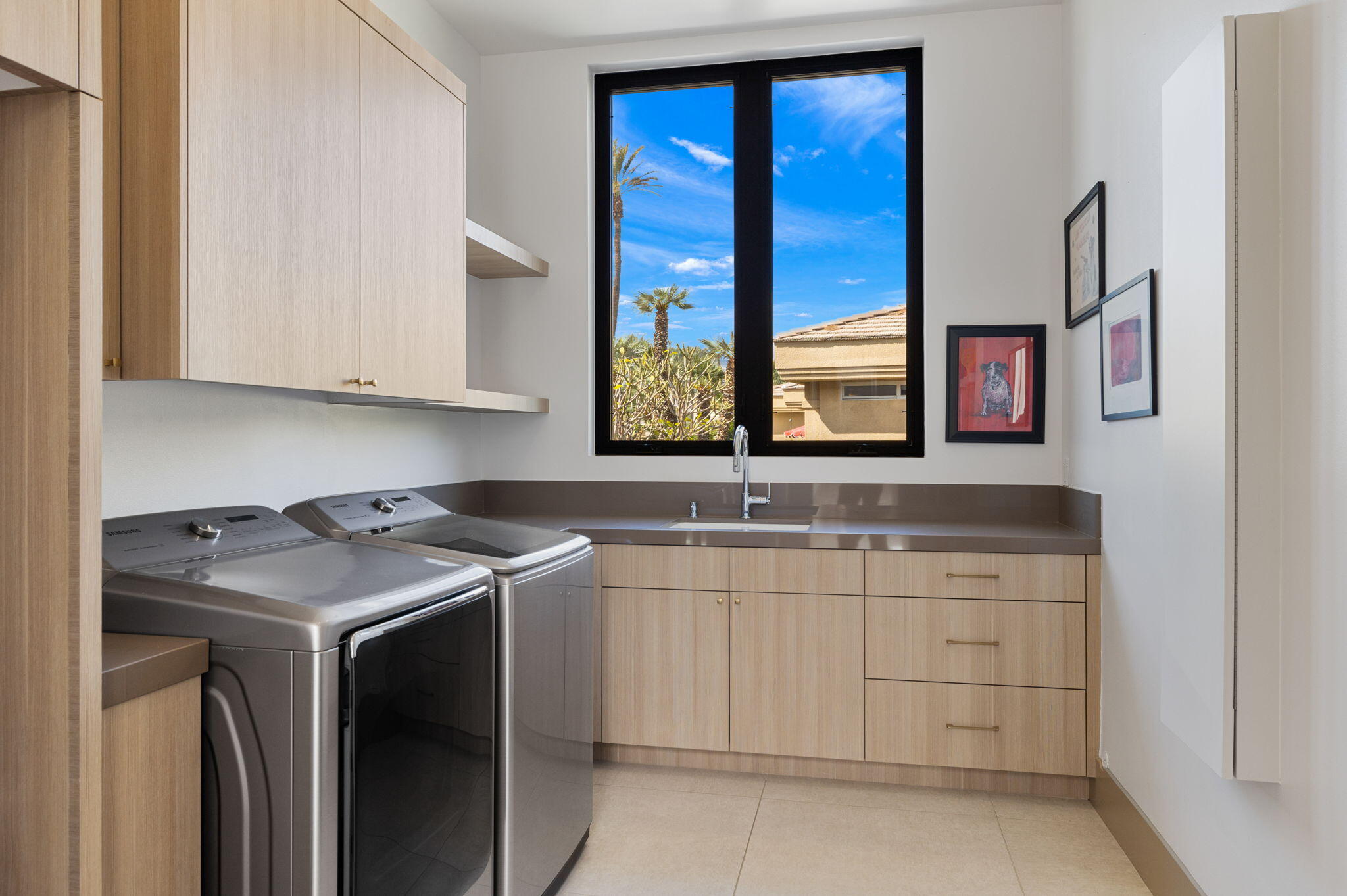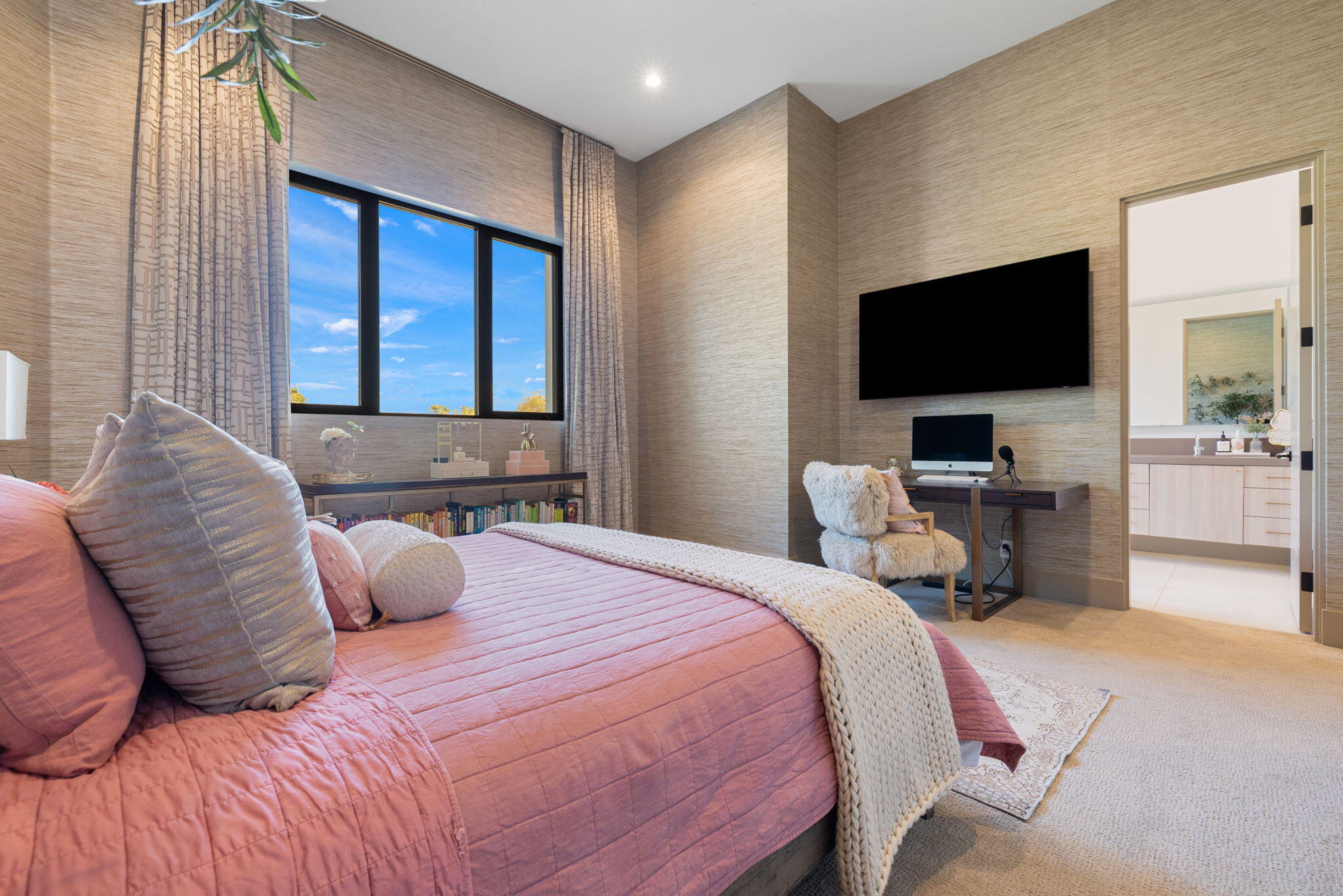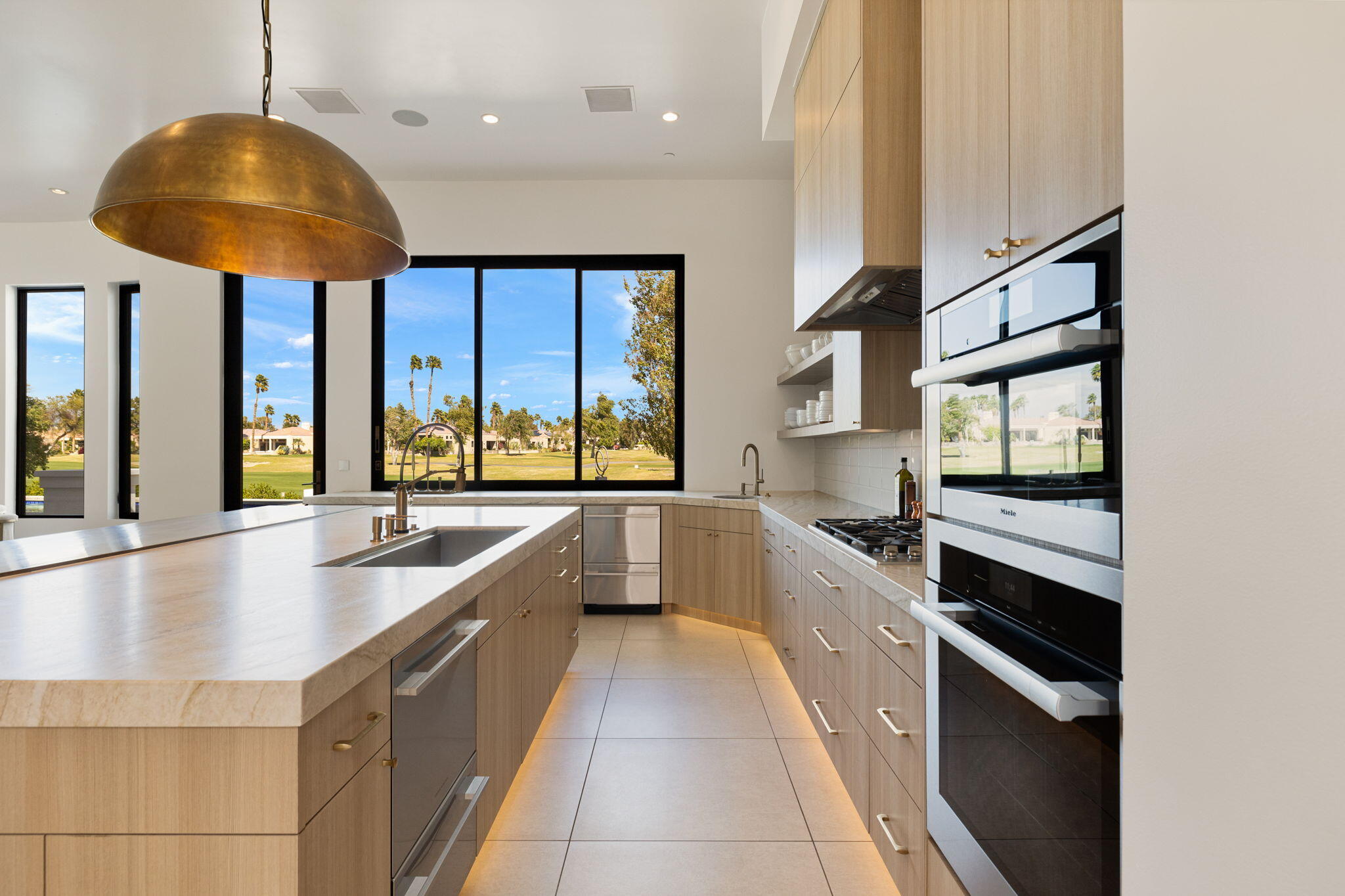 Nestled behind a private gate within the exclusive Mission Hills Country Club, this 6,830 sq. ft. contemporary masterpiece offers unparalleled design and architectural elegance. Every detail has been meticulously crafted to create a seamless blend of indoor and outdoor living. Towering 20-foot wood-lined ceilings and expansive walls of glass invite natural light while framing breathtaking double fairway views from the 12th tee of the Pete Dye course. This exceptional home features four luxurious en-suite bedrooms and five bathrooms, thoughtfully designed for both comfort and flow. The primary suite, positioned at the east end, boasts a spa-like bath with a walk-in shower, dual vanities, separate toilet areas, and a custom walk-in closet. A junior primary suite, complete with a soaking tub, shower, and dual walk-in closets, along with two additional spacious en-suite bedrooms, are located at the opposite end of the home. Art enthusiasts will appreciate the gallery-style hallways, offering ideal niches for curated collections. The home office, surrounded by glass, includes a private entrance, making it perfect for remote work or creative endeavors. Outdoors, a resort-style setting awaits with a large pool and spa, a fire pit, an outdoor kitchen with a TV, and expansive concrete decking--ideal for entertaining. Enjoy breathtaking mountain and golf course views from the covered patio, offering the perfect setting for relaxation. Designed for convenience and security, the estate includes a four-car garage, with two separate two-car garages strategically placed at opposite ends of the home. With a low HOA of just $242, this modern architectural gem is a rare find, ready for the most sophisticated buyer.Interested in this Listing?