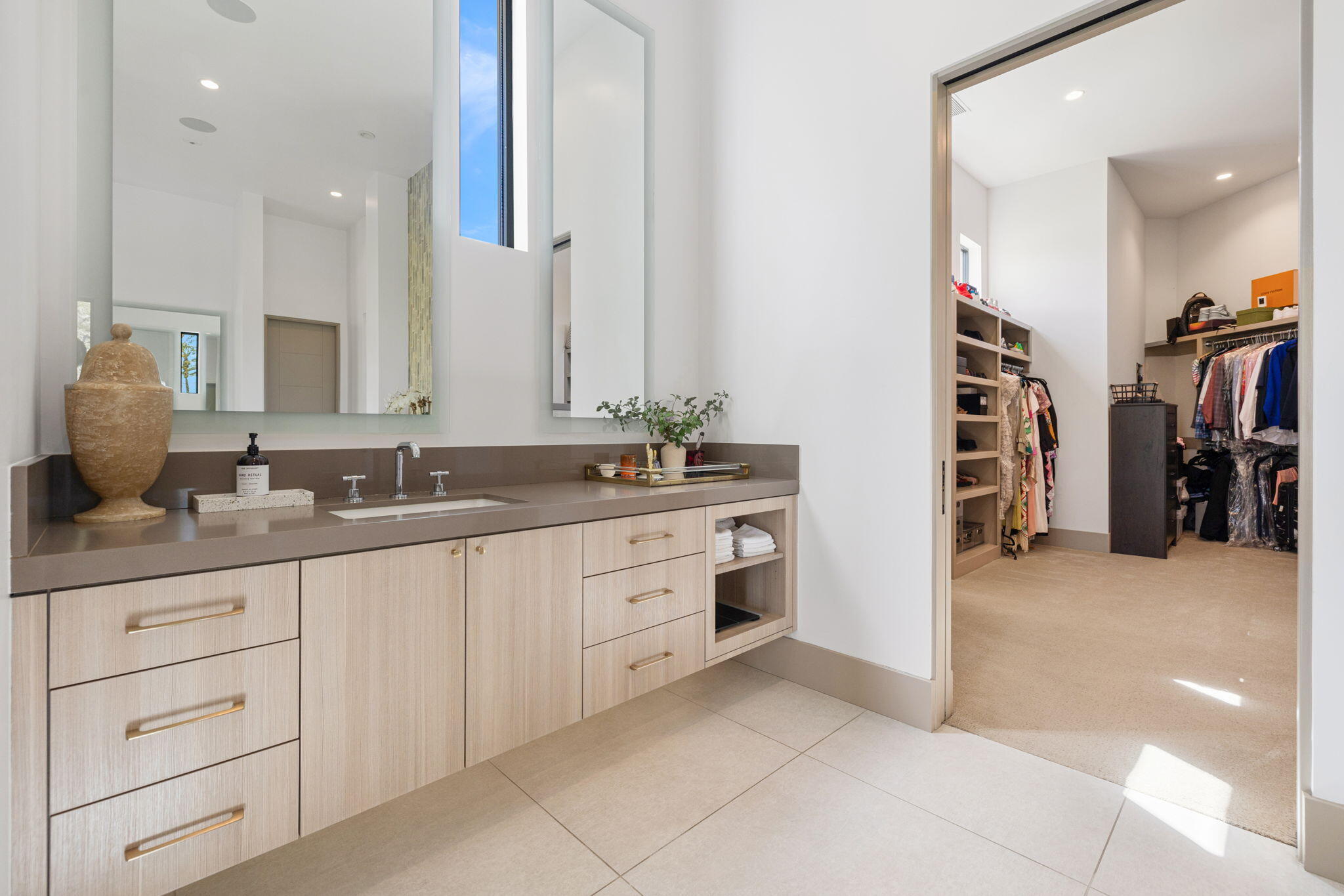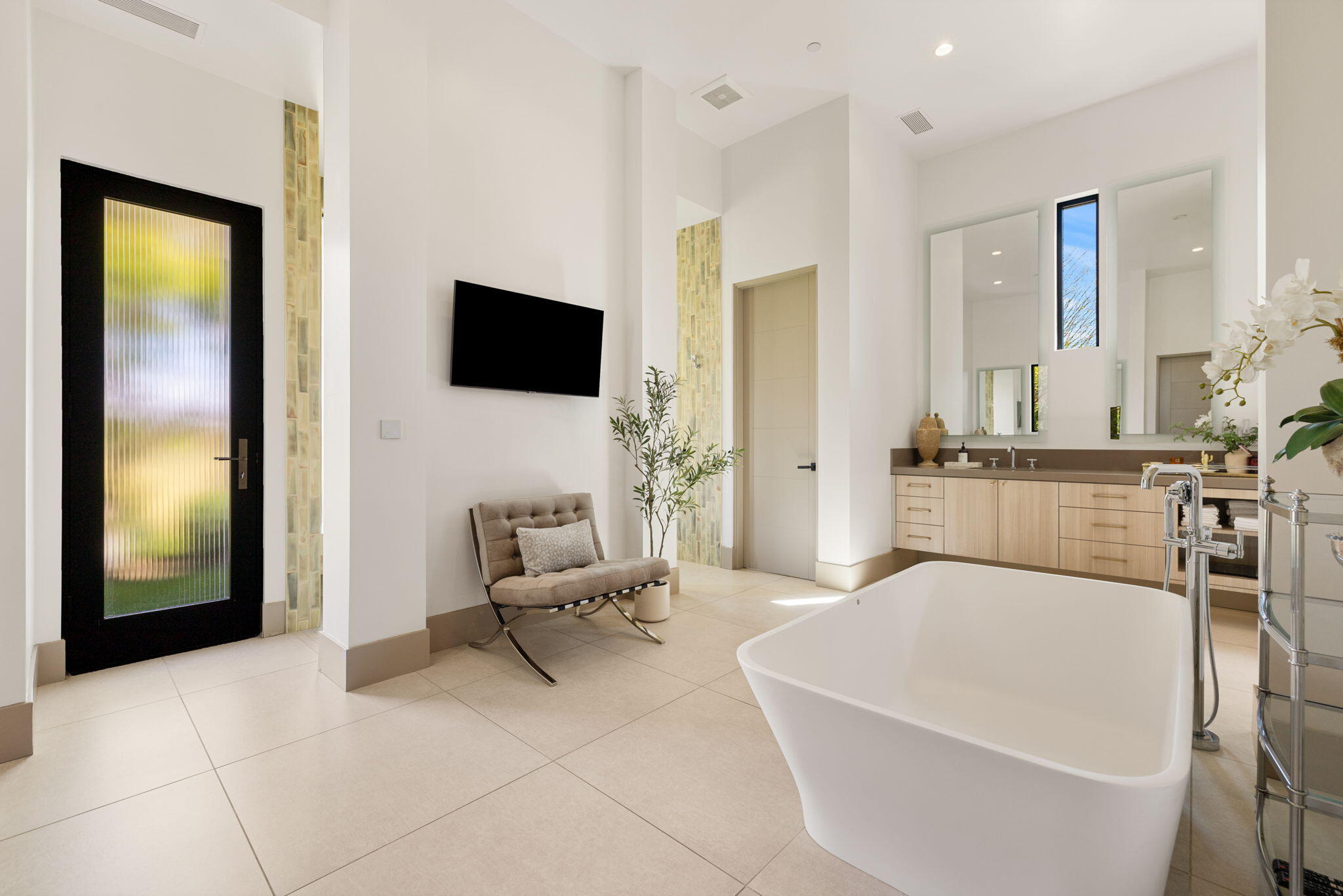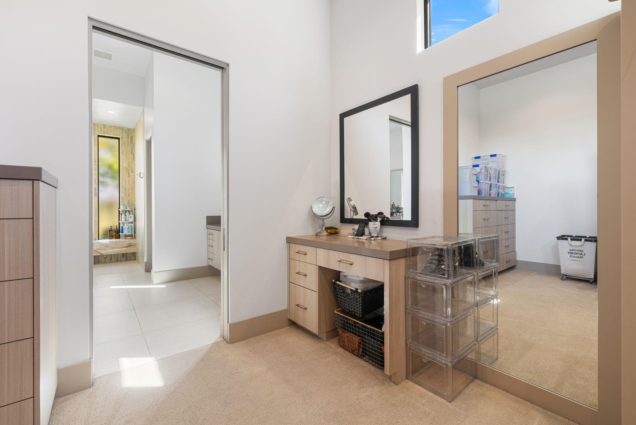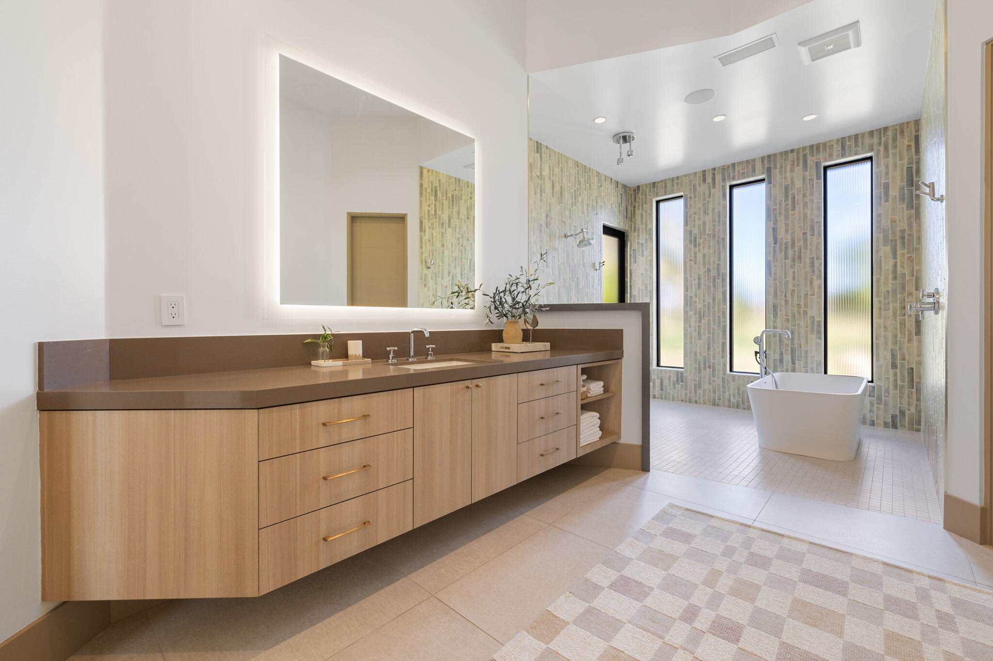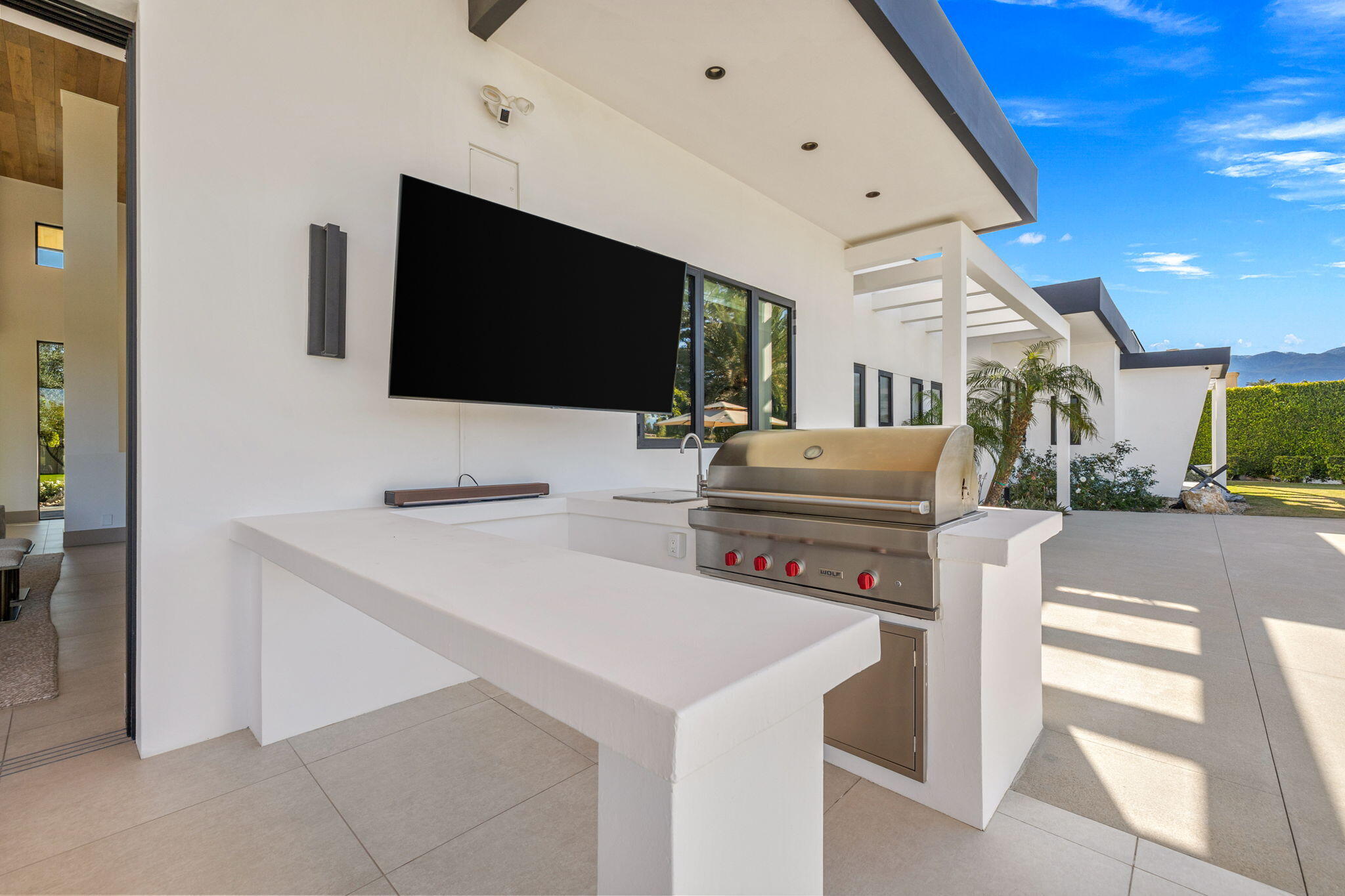 Nestled behind a private gate within the exclusive Mission Hills Country Club, this 6,830 sq. ft. contemporary masterpiece offers unparalleled design and architectural elegance. Every detail has been meticulously crafted to create a seamless blend of indoor and outdoor living. Towering 20-foot wood-lined ceilings and expansive walls of glass invite natural light while framing breathtaking double fairway views from the 12th tee of the Pete Dye course. This exceptional home features four luxurious en-suite bedrooms and five bathrooms, thoughtfully designed for both comfort and flow. The primary suite, positioned at the east end, boasts a spa-like bath with a walk-in shower, dual vanities, separate toilet areas, and a custom walk-in closet. A junior primary suite, complete with a soaking tub, shower, and dual walk-in closets, along with two additional spacious en-suite bedrooms, are located at the opposite end of the home. Art enthusiasts will appreciate the gallery-style hallways, offering ideal niches for curated collections. The home office, surrounded by glass, includes a private entrance, making it perfect for remote work or creative endeavors. Outdoors, a resort-style setting awaits with a large pool and spa, a fire pit, an outdoor kitchen with a TV, and expansive concrete decking--ideal for entertaining. Enjoy breathtaking mountain and golf course views from the covered patio, offering the perfect setting for relaxation. Designed for convenience and security, the estate includes a four-car garage, with two separate two-car garages strategically placed at opposite ends of the home. With a low HOA of just $242, this modern architectural gem is a rare find, ready for the most sophisticated buyer.Interested in this Listing?