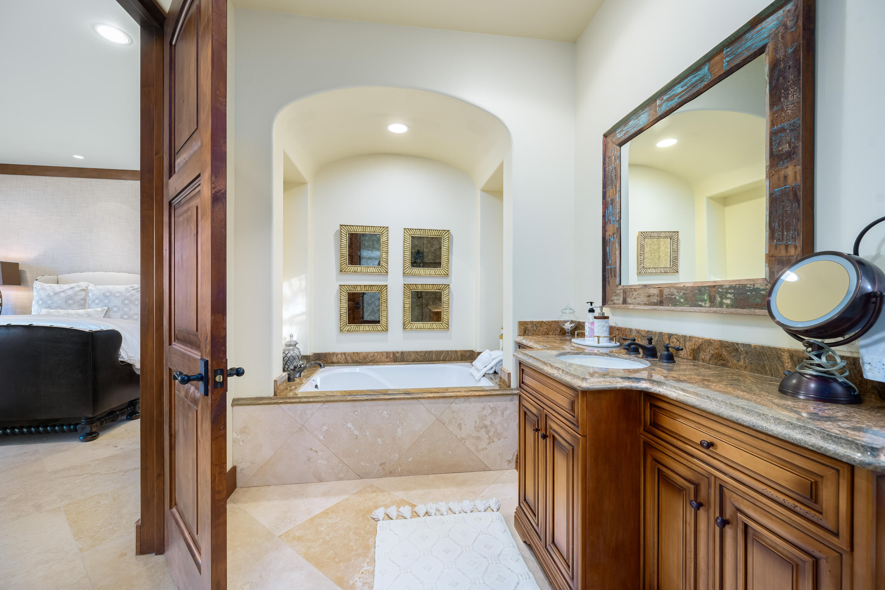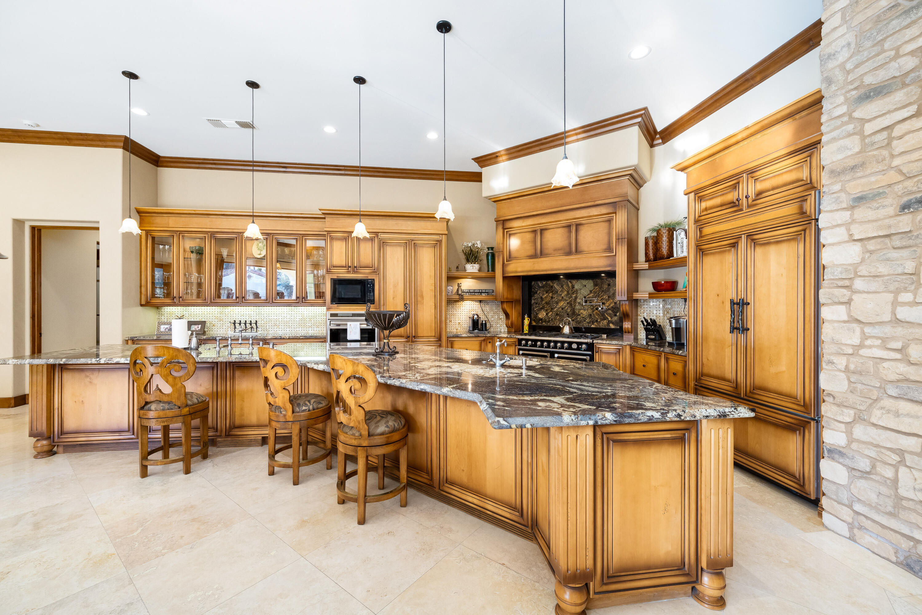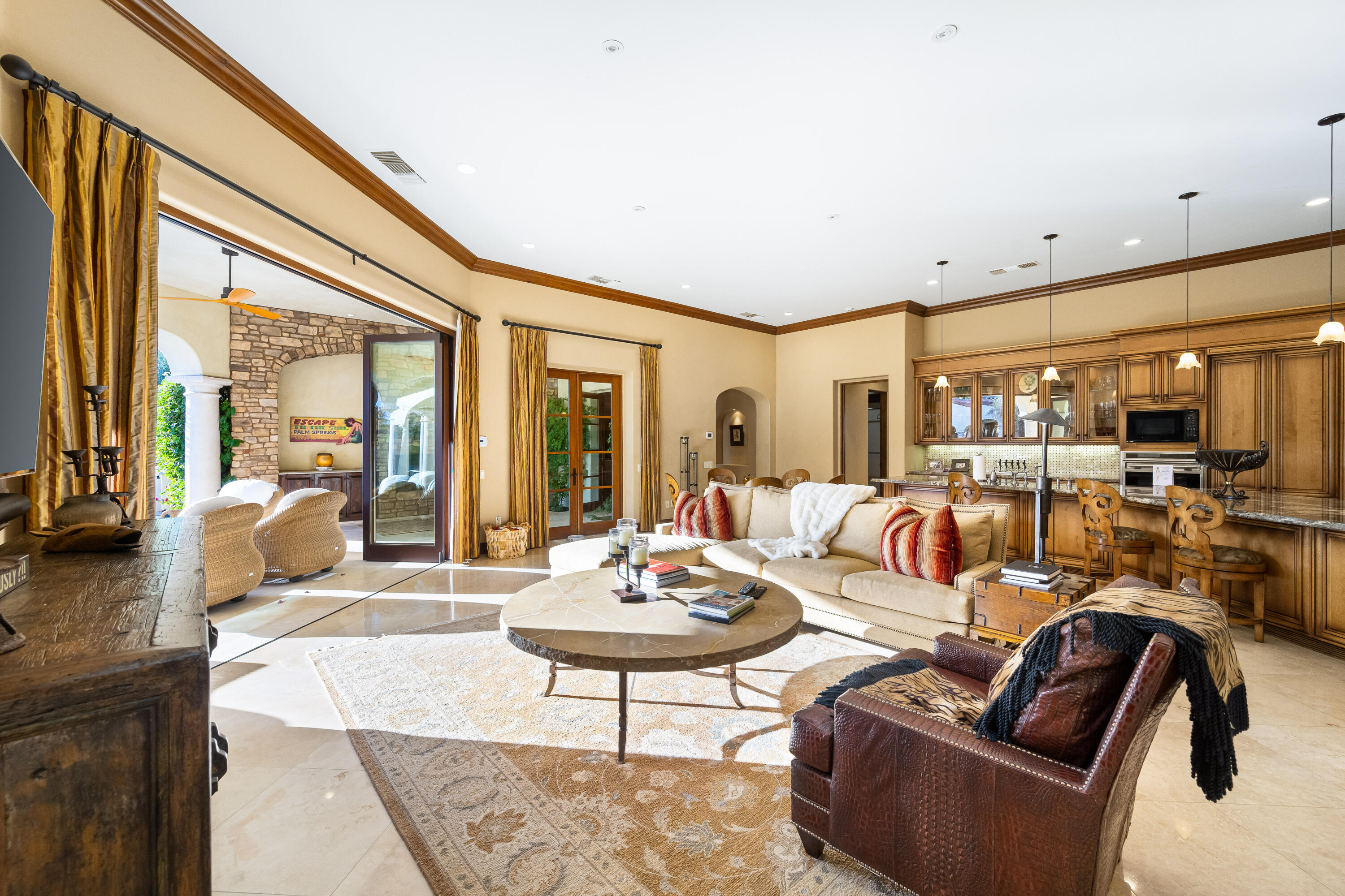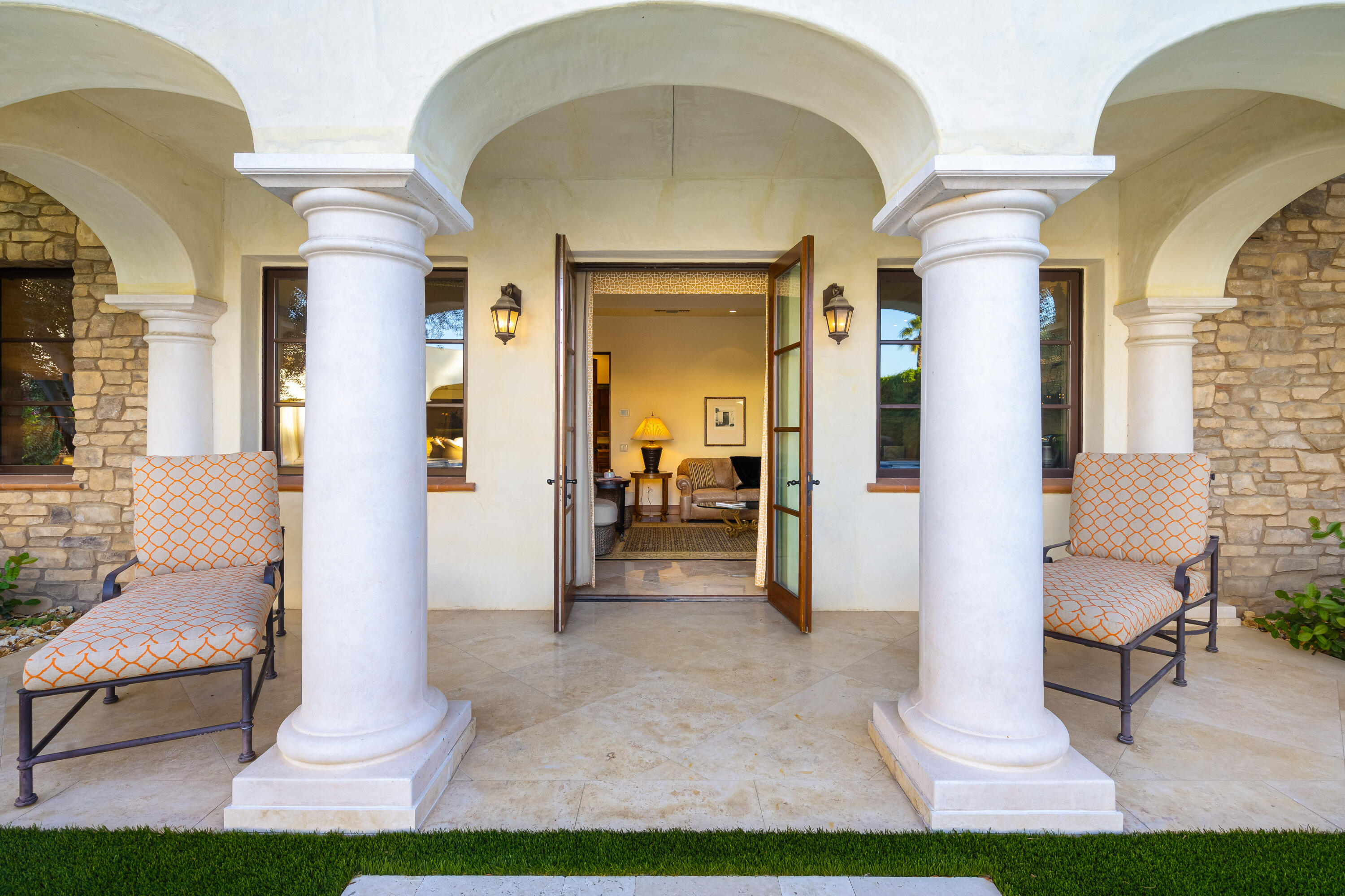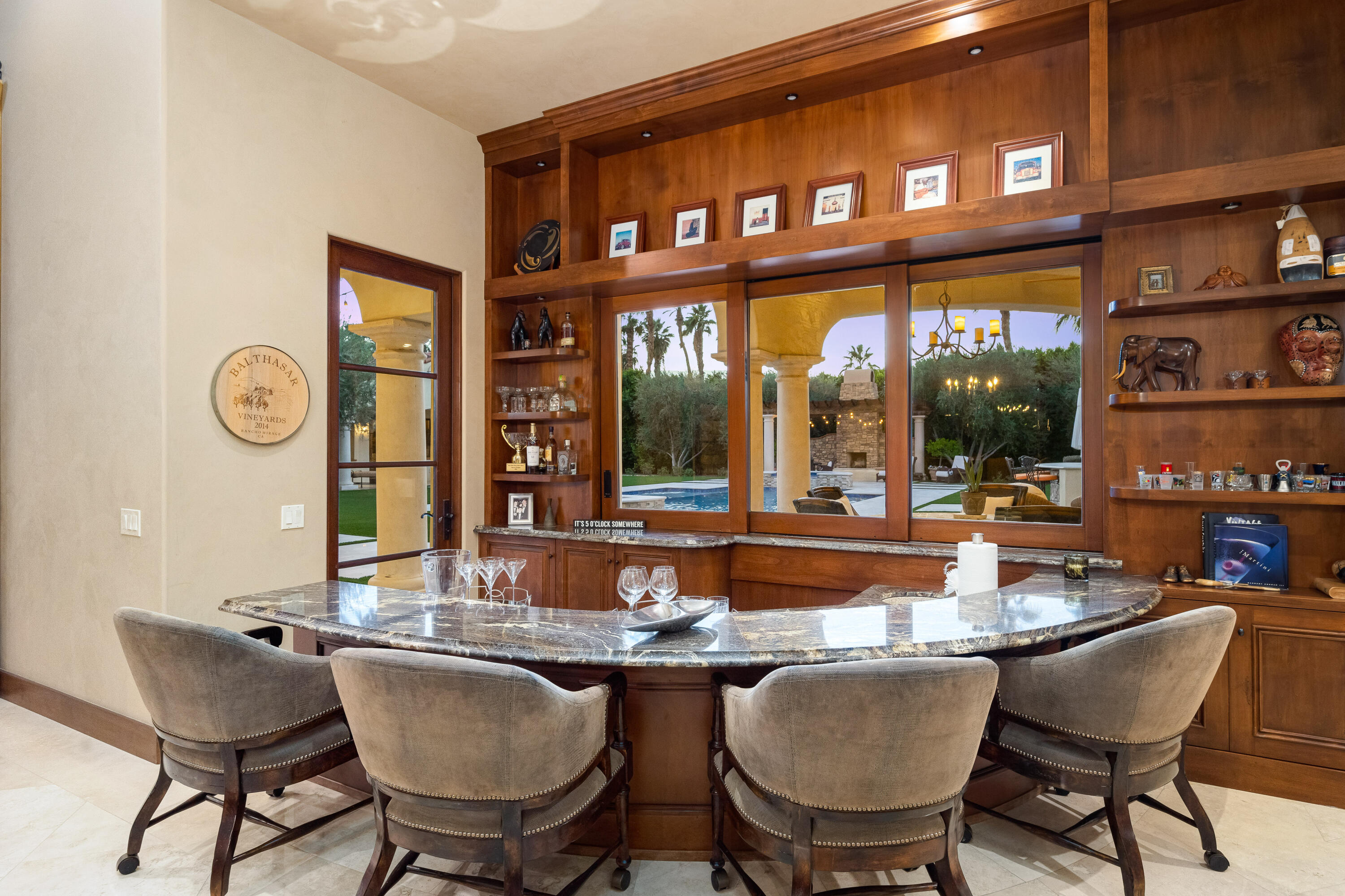 Privately gated estate on over an acre at The Renaissance featuring a private pickleball court! Five bedrooms, seven and a half baths including guest house. Approximately 7,480 sq. ft. on 1.31 acres. Enter through grand foyer to great room with two-way fireplace to formal dining room with custom wet bar. Gourmet kitchen with extended double sink island and counter bar, top-of-the-line appliances, adjacent wine cellar, prep kitchen and family room with media. Gorgeous master retreat with fireplace, sitting area, lavish bath and custom closet. The inviting guest suites include a detached one bedroom guest house. All major rooms open to the outdoor entertainment area with dining and lounging loggia including fireplace. There is another custom stone fireplace under pergola with seating, step down to pickleball court and putting green. Custom pool with waterfall spa and fountain, outdoor bar and BBQ kitchen. Meticulous mature landscaping, four car garage, solar panels and more! Offered furnished per inventory.Interested in this Listing?