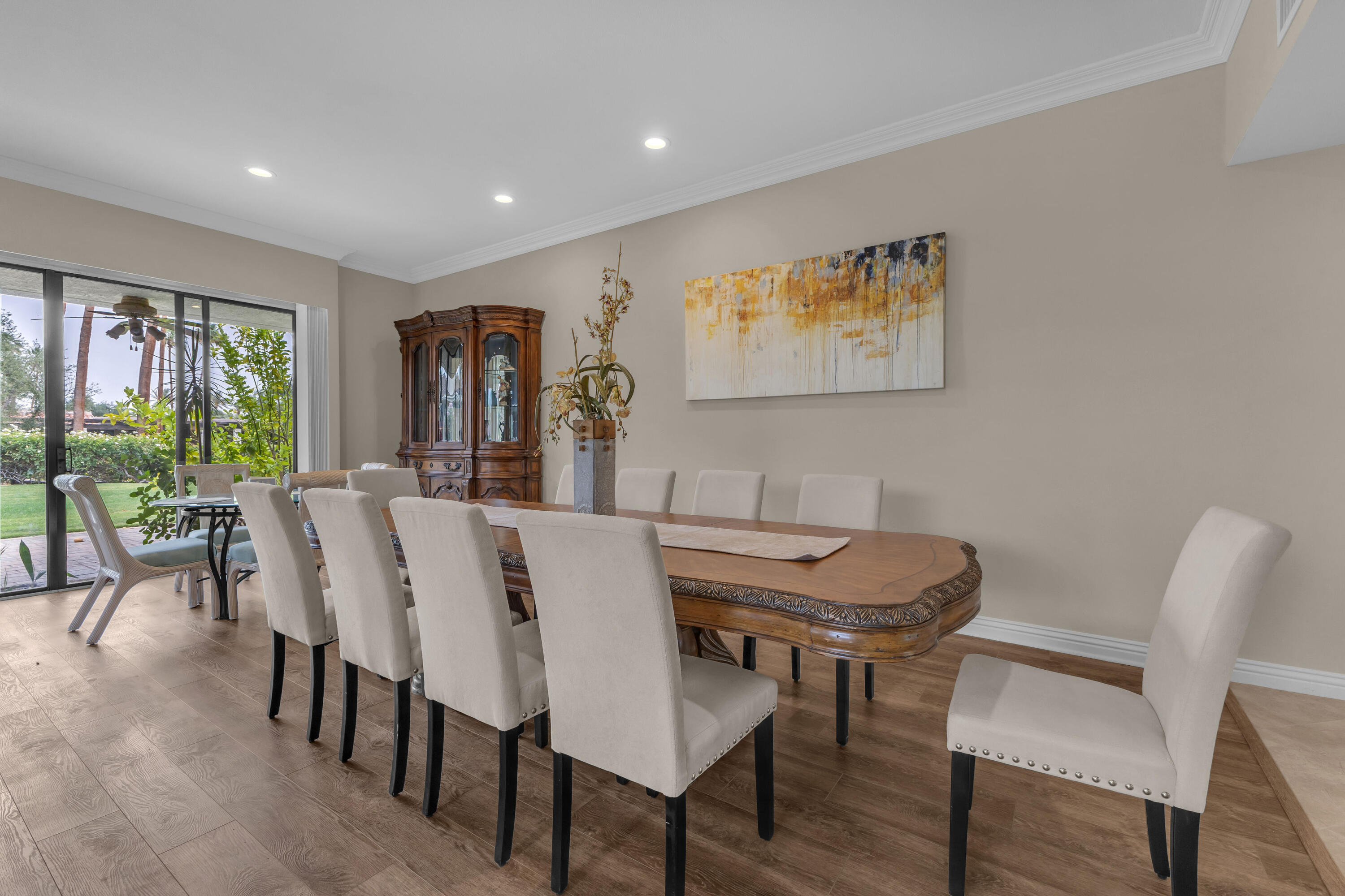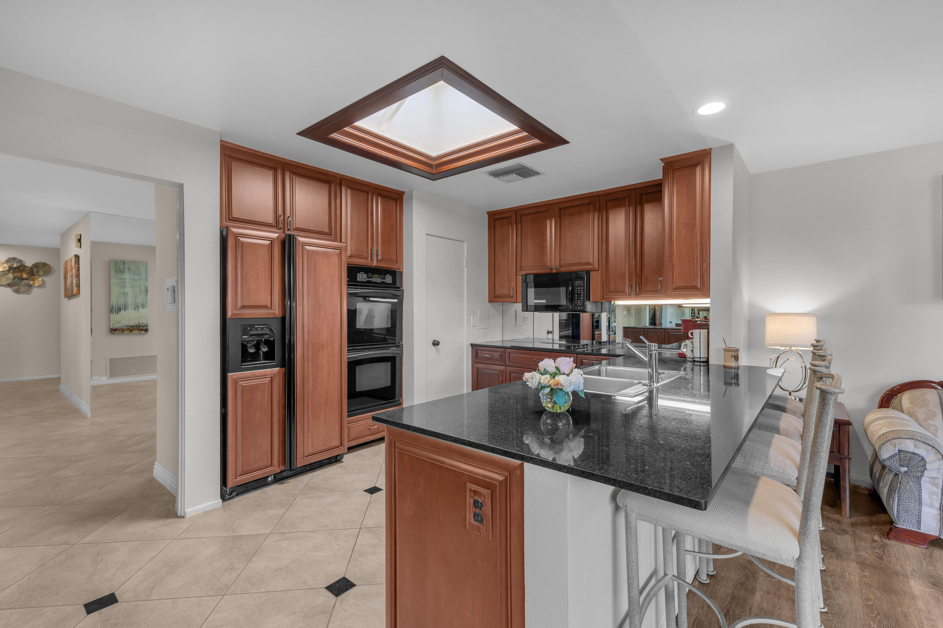 This beautifully updated home features a bright, open floor plan with skylights, mirrored accent walls, crown molding, and a mix of tile and wood-look flooring, located in the heart of the highly sought after Springs Country Club. Upon entry, you're greeted by a spacious living area with a striking fireplace flows into a stylish bar with a wine fridge--perfect for entertaining.The kitchen offers sleek countertops, ample cabinetry, and a breakfast bar. Originally three bedrooms, one guest room is currently used as a sitting area for added space but can easily be converted back. The primary suite includes garden access and a luxurious ensuite with soaking tub and walk-in shower.Additional highlights include a large laundry room, a two-car garage with golf cart space, and a grand paved circular driveway. Just steps from the clubhouse and community pool, the HOA includes a social membership to The Springs. Enjoy top-tier amenities including an 18-hole championship golf course (separate membership), tennis courts, and more.Interested in this Listing?