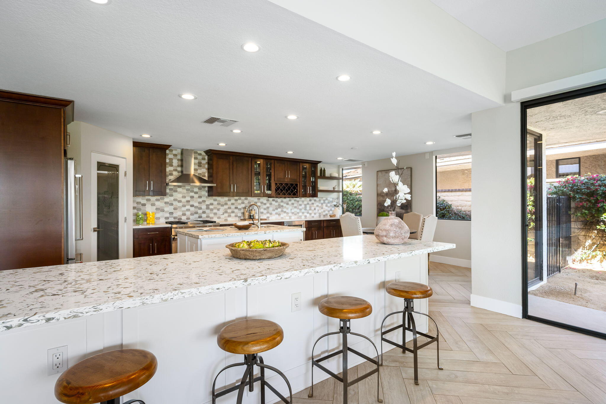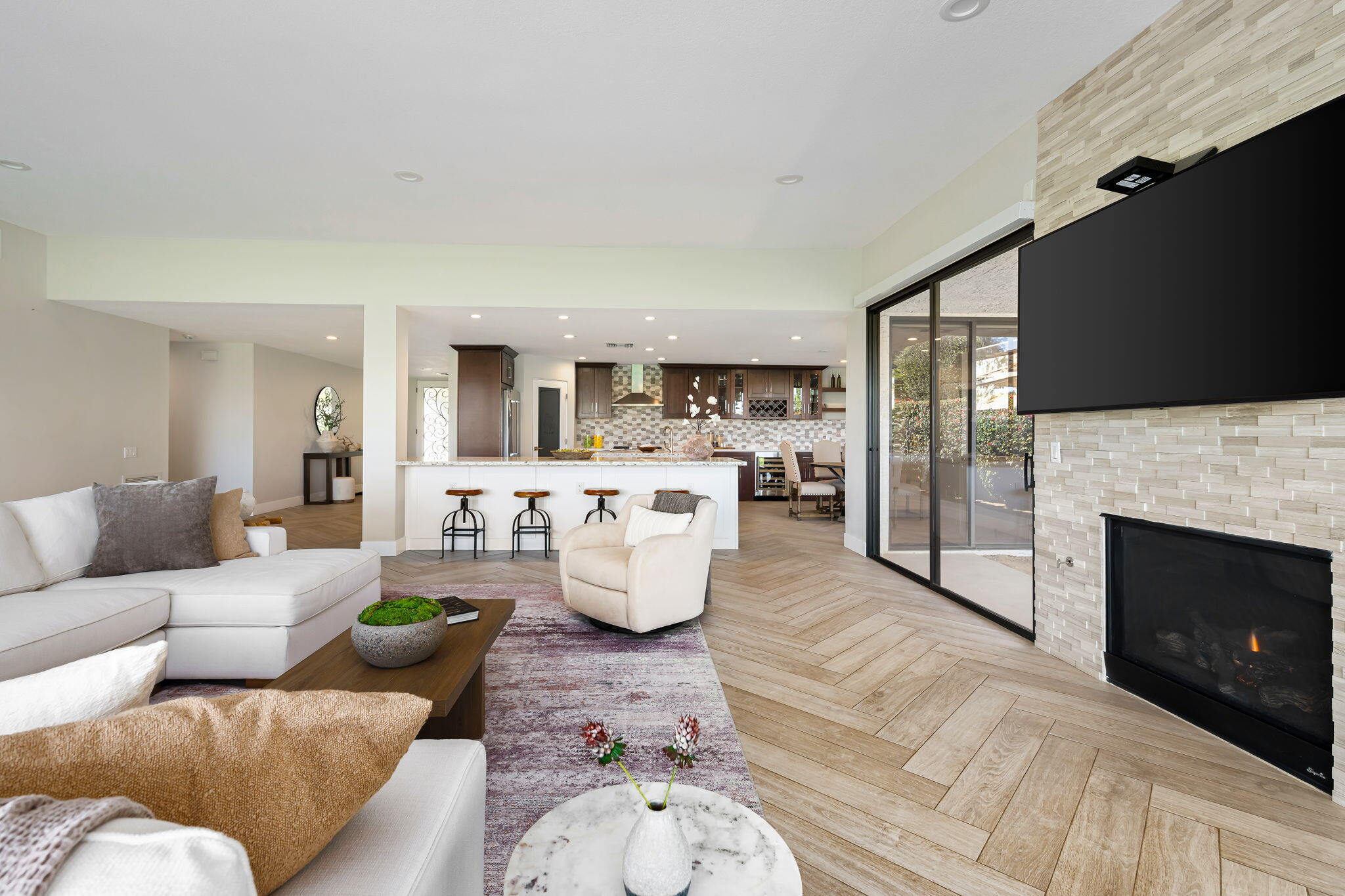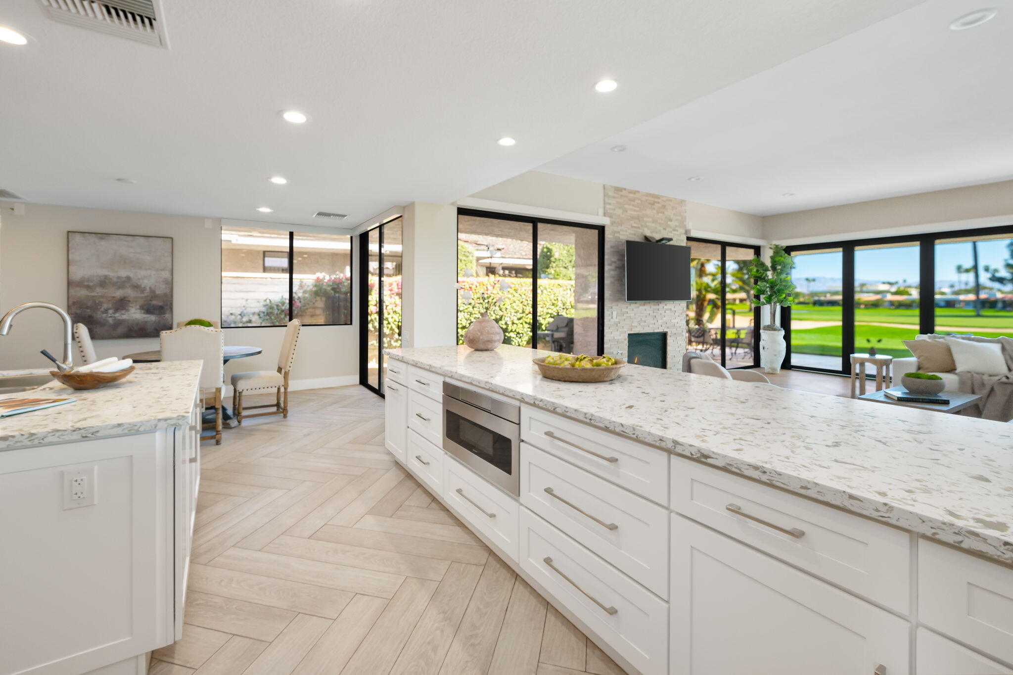 Views, views and more views! This Beautifully popular extended Shaughnessy dual master floor plan features stunning herringbone patterned Italian porcelain plank tile floors and a show stopping 24 feet of stacking doors that expands the length of the wall, giving way to expansive double fairway and mountain views for incredible indoor/outdoor living and entertaining. Open concept kitchen features professional appliances, designer custom cabinets and quartz counter tops. Two Primary retreats with breathtaking views. All three bedroom have access to their own patio areas. Desert Living at its best with guard gated community, private golf course, tennis, pickleball, bocce ball, health club, spa and full club facilities.Interested in this Listing?