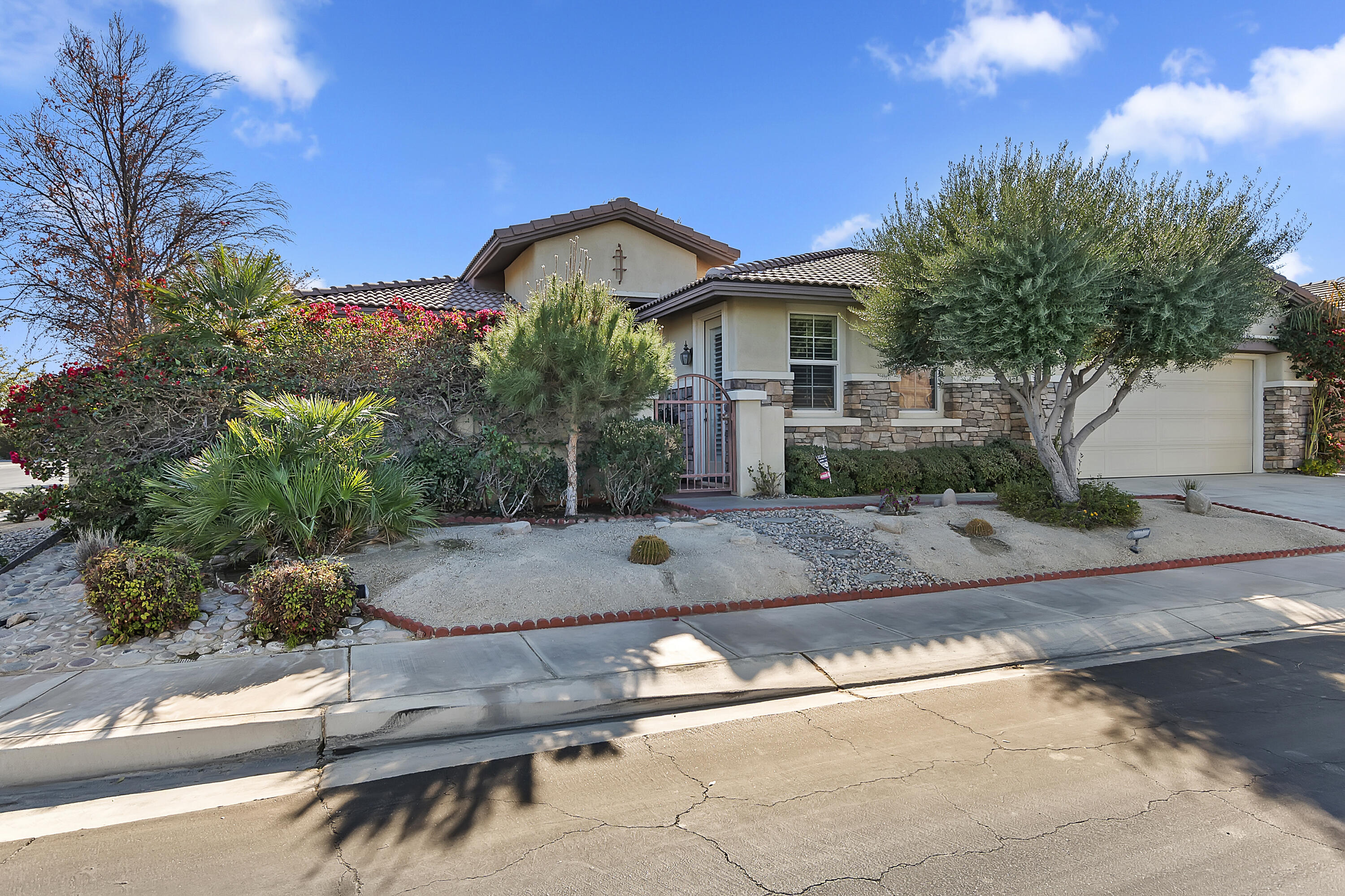 Wow!!! What a Great Value on this Chianti model from the Siena Collection with 3BR/3BA approx 2184 sf corner lot home with a floor plan that flows nicely! Hurry !! This home has a lot to offer.... most of the home has been remodeled from the original plan.... includes the Private Courtyard which leads into the elegant foyer, inviting gourmet spacious kitchen, decorative tile flooring, ceilings fans, Great Room w/ fireplace, wood shutters. and spacious master bedroom and master bath suite with soaking tub and separate shower, plus a walk-in closet. Also Popular in this well -designed model is the 2nd Master bedroom/Casita like with separate entrance from the private front entrance courtyard ! You'll find French doors leading out to the large covered patio and a glorious private backyard professionally landscaped with views of the Jacinto mountains and Amazing Sunsets ! You're going appreciate the low HOA fees of only $227 per month which includes cable and internet...plus just steps away to the Community Pool & Spa. Also Included behind Tuscany's Gated Community it also features blocks of Open space with paved sidewalks for strolling around the neighborhood or jogging etc. along with a Dog Park and Tot Lot.Interested in this Listing?