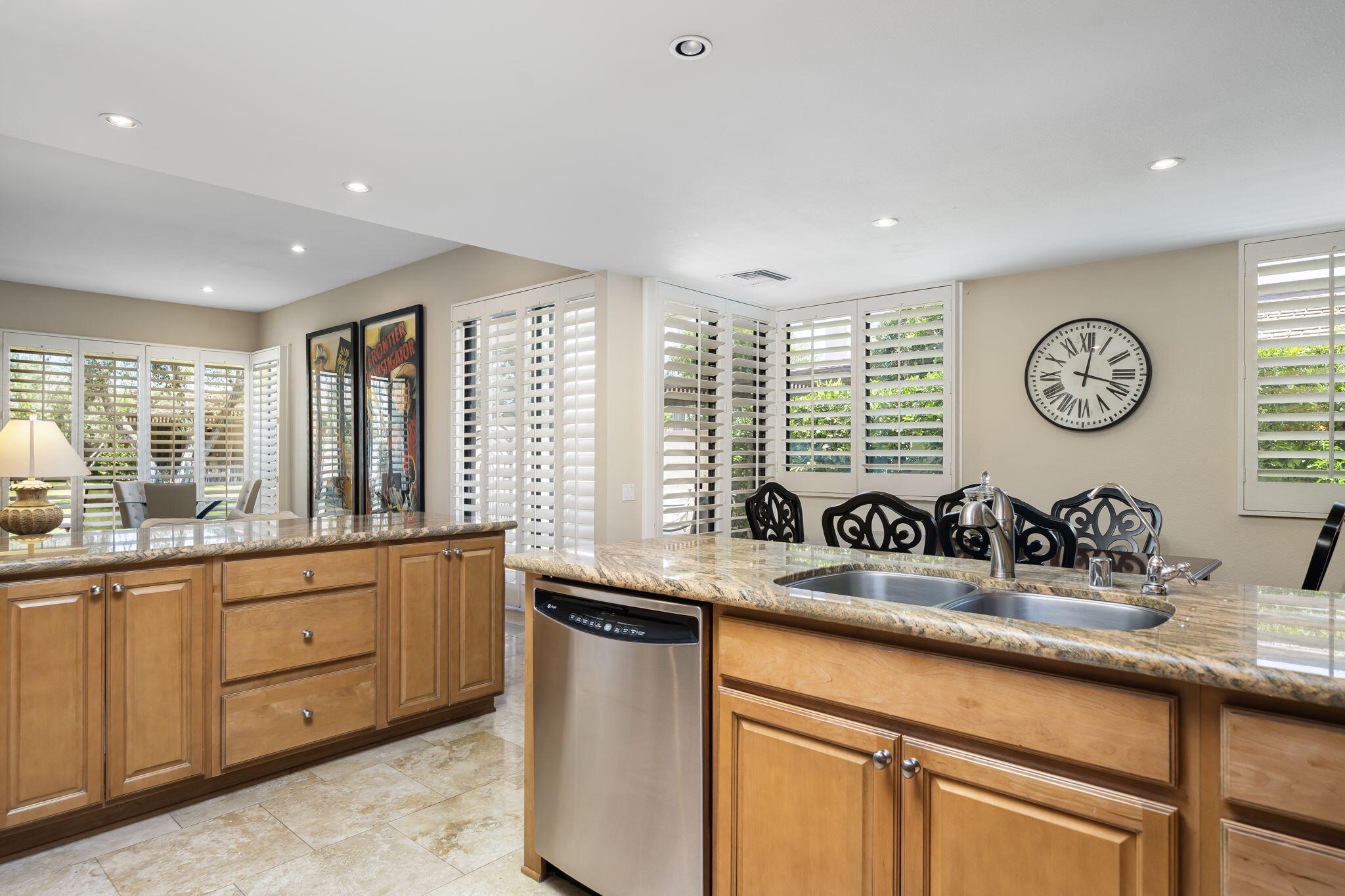 Discover this pristine 2,891 square-foot home in the sought-after Springs Country Club, located in the heart of Rancho Mirage. With natural elegance, this residence features three spacious bedrooms and three updated bathrooms, offering the perfect blend of style and comfort.The interior showcases travertine floors in the main living areas and plush carpeting in the bedrooms. High ceilings and sliding doors in every room invite abundant natural light, creating an airy, open atmosphere. Enhancements include recessed architectural lighting, a state-of-the-art sound system, and ample storage solutions.The chef's kitchen is a culinary delight, boasting stainless steel appliances, slab granite countertops, and custom rich cherry cabinetry. A bright morning/breakfast nook complements the modern kitchen space.The luxurious master suite is adorned in soothing neutral tones and features dual closets. All bathrooms have been beautifully updated with travertine, granite countertops, and bespoke cabinetry.The expansive great room opens to a private greenbelt area, providing a tranquil view and easy access to the community pool, perfect for relaxation and entertainment. Experience elegance, comfort, and convenience in this exceptional home.Interested in this Listing?