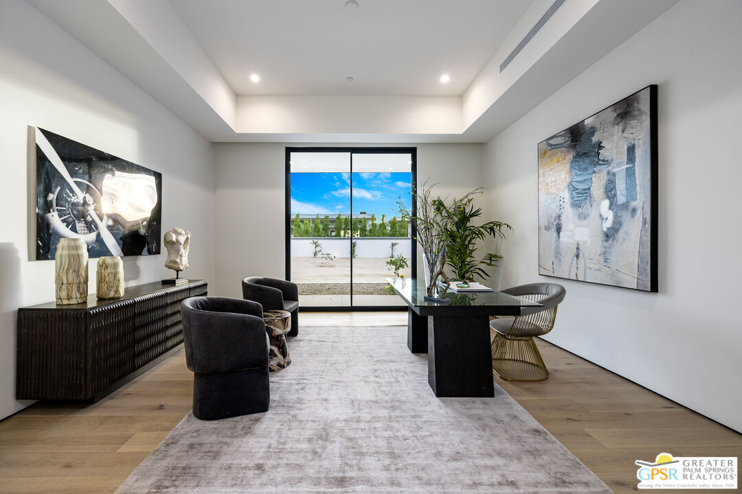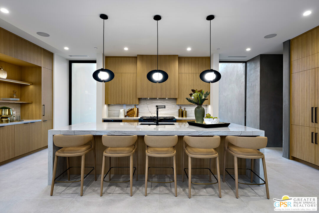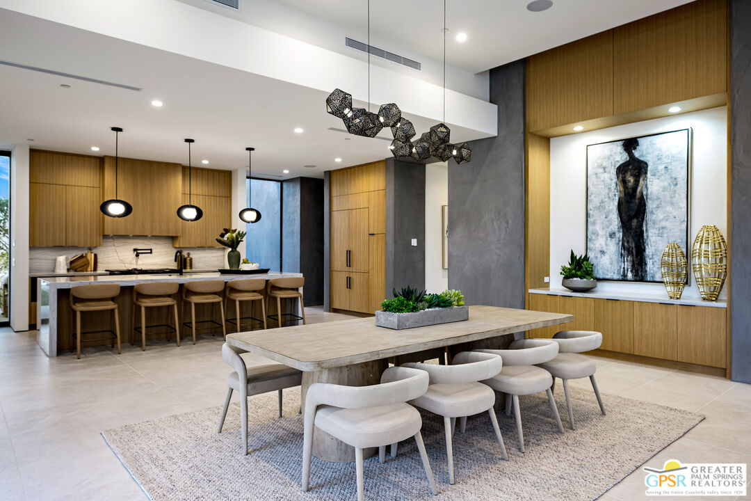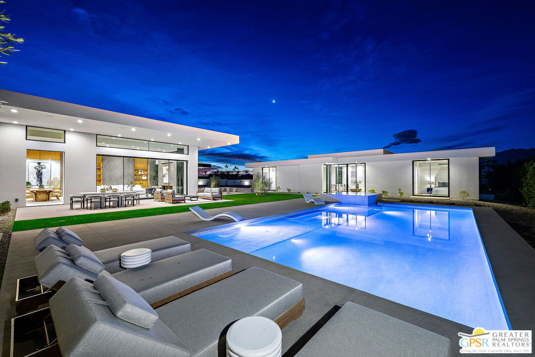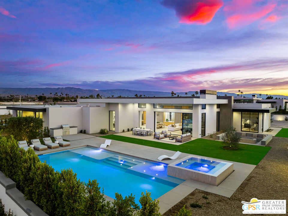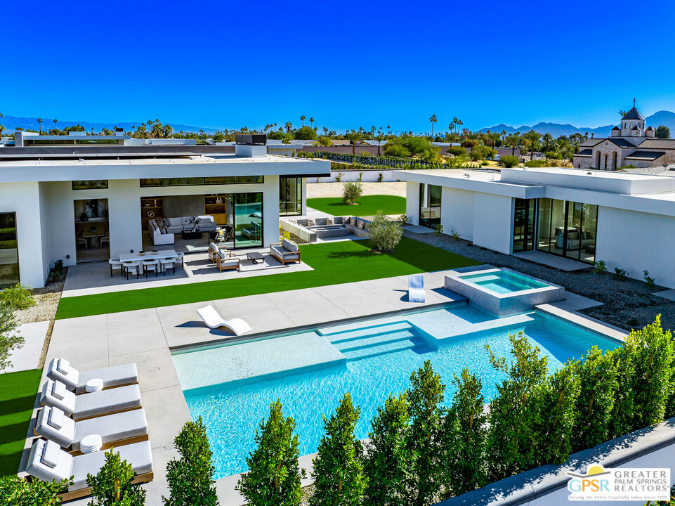Two Wren Court in Rancho Mirage is a stunning, newly constructed contemporary estate set on a private 1.25-acre lot. This 5934 square foot architectural home is designed to elevate luxury living with an elegant, open layout and seamless indoor-outdoor flow. Inside, the main residence offers three spacious bedrooms, highlighted by an expansive primary suite that boasts a spa-like bathroom with a soaking tub, dual showers (including a unique outdoor shower), and an oversized walk-in closet. Two additional guest suites, each with their own en-suite bathrooms, are complemented by a private shared sitting room, creating an ideal retreat for family or friends. A versatile flex room awaits your customization, perfect as a home theater, office, or personal gym. The heart of this home is its beautiful kitchen, featuring top-of-the-line Dacor appliances, two dishwashers, range with double ovens, microwave, and a substantial refrigerator/freezer. A butler's kitchen adds even more functionality for seamless entertaining. Adjacent to the kitchen is a stylish wet bar, complete with a wine refrigerator. The great room shines with a vast sliding glass door and pocket door, inviting in natural light and connecting effortlessly with the vast mountain views and to the outdoors. Outside, your private oasis awaits. The 1,116 square foot detached two-bedroom guest house includes a cozy living area, ensuring guests enjoy comfort and privacy. An expansive saltwater pool and infinity edge spa, a built-in barbecue, and a large fire pit create an ideal setting for relaxation and entertaining under the desert sky. Additional highlights include a Control4 home automation system, a six-car air-conditioned garage, owned solar power with backup battery, water filtration system and a private gated entry. Experience Rancho Mirage's finest luxury living at 2 Wren Court, where modern sophistication meets desert tranquility.Interested in this Listing?