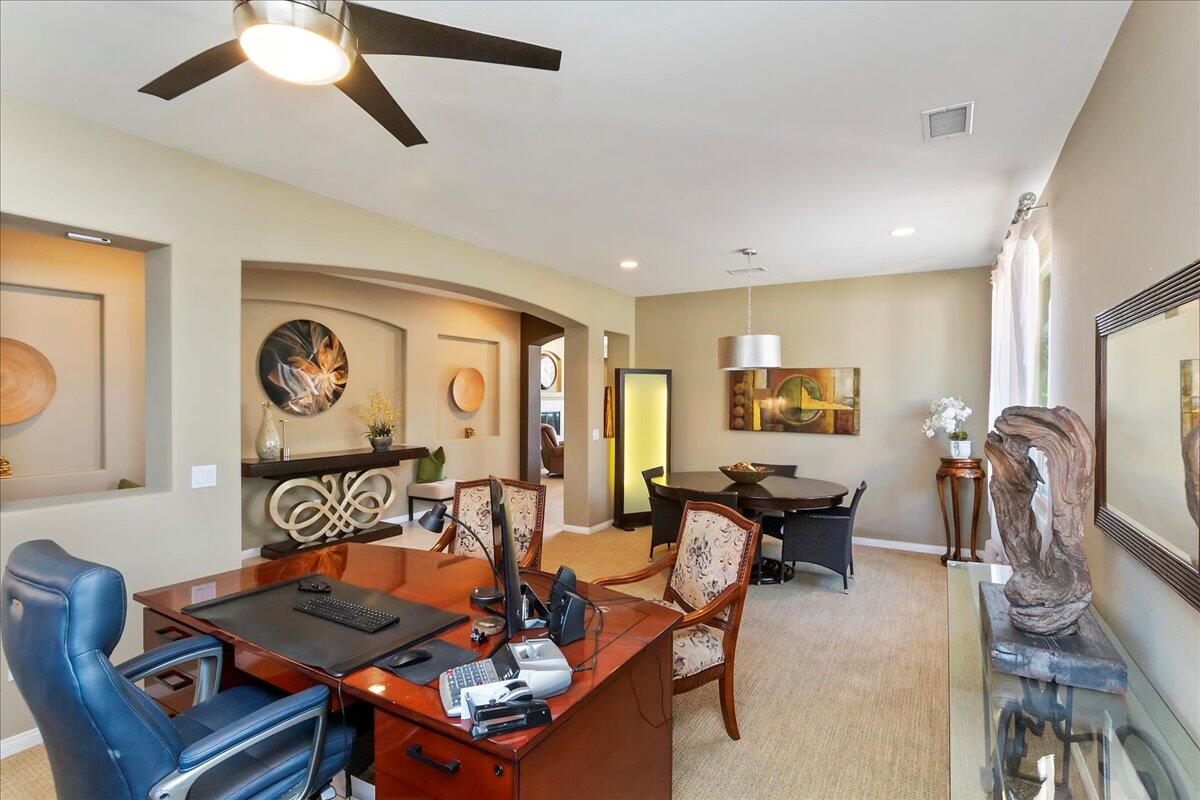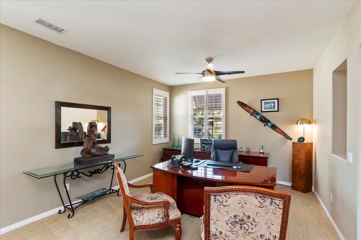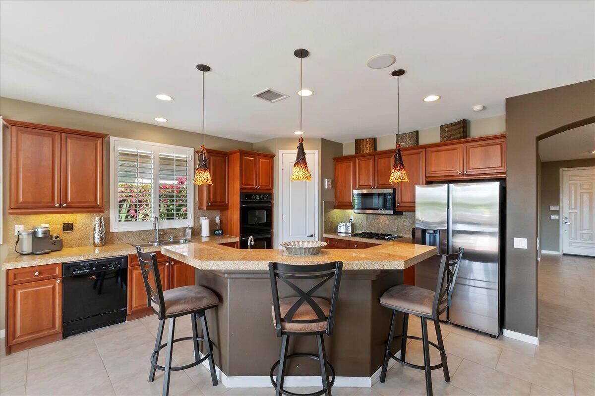Enjoy Resort Style living w/amazing sit-down views of San Joaquin Mtns from Tuscany's ''Cervair'' popular open floorplan in the Siena Collection behind prestigious entry gates in one of Rancho Mirage's most sought after communities where you'll discover a world of luxurious yet affordable RM living. Prvt neighborhood of quality homes designed for the most astute homebuyer. This 4br/3ba 2434esf model is largest home w/one of the largest lots, 10,454sf in all Tuscany. Best priced home w/10's of thousands of $$$ in upgrades in interior & exterior of this beautiful designed and decorated home. Interior features include granite kitchen counters & island w/wet bar/sink, stainless steel appliances, plantation shutters, custom 20'' porcelain tile & Berber carpet custom ceiling fans throughout, European custom raised panel maple cabinetry in kit, dual A/C, surround sound, security system, media hub/home theatre & audio systems. 9' volume ceilings, Low HOA fees of $230.includes cable and internet, plus community pool & Spa, Dog park, tot park,etc.. ,low electric bills w/Solar panels.Interested in this Listing?
