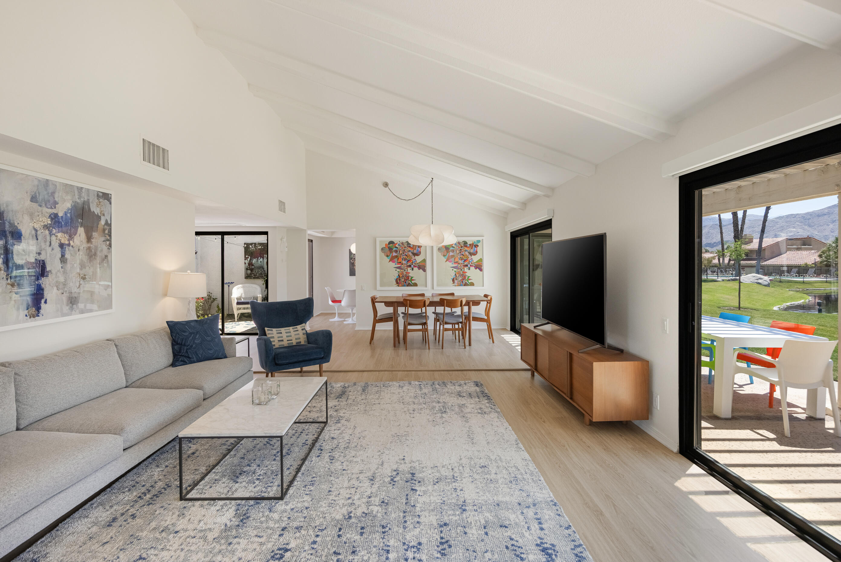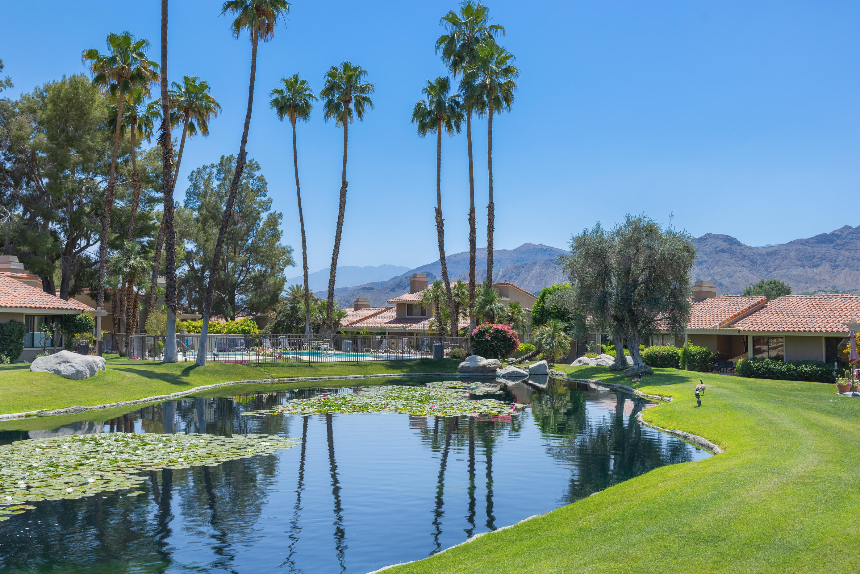 Experience luxury desert living in this beautifully updated 3BD/2BA, offering 1,899 SQ FT of sleek and modern design. Nestled in the heart of Rancho Mirage, this elegant home boasts breathtaking mountain and tranquil lake views from multiple vantage points. The spacious open-concept layout is perfect for entertaining or relaxing, featuring modern finishes, vaulted ceilings, and abundant natural light that flows throughout. Stylish interiors blend seamlessly with the serene outdoor surroundings. Located within a secure, gated community, residents enjoy access to exceptional resort-style amenities including sparkling community pools and spas, lush landscaping, and meticulously maintained tennis courts. Whether you're seeking a full-time residence or a seasonal getaway, this condo combines comfort, convenience, and sophistication in one of the desert's most desirable and scenic locations.Interested in this Listing?