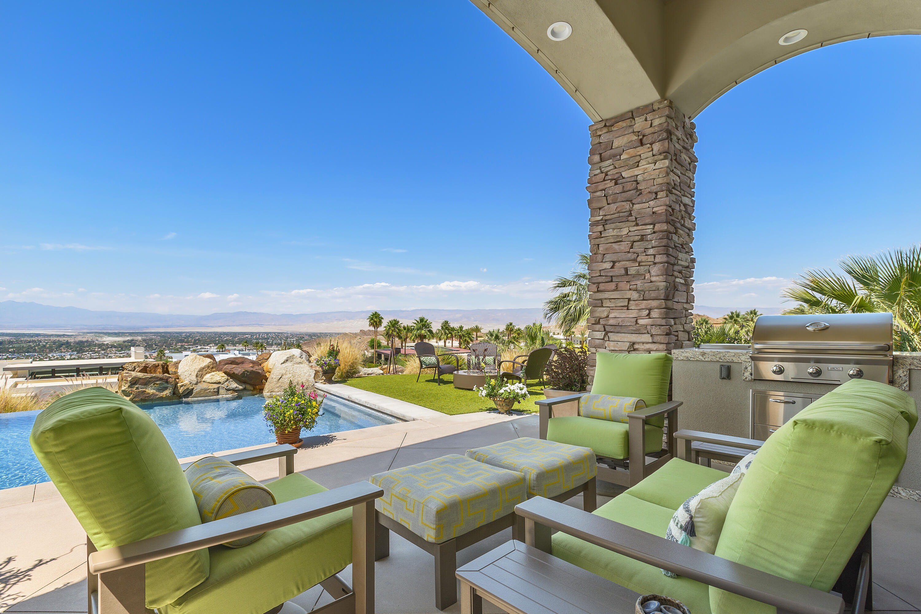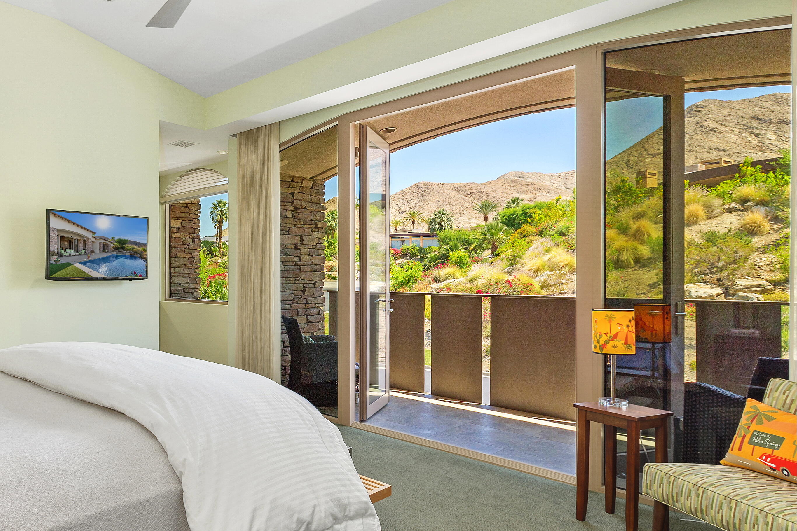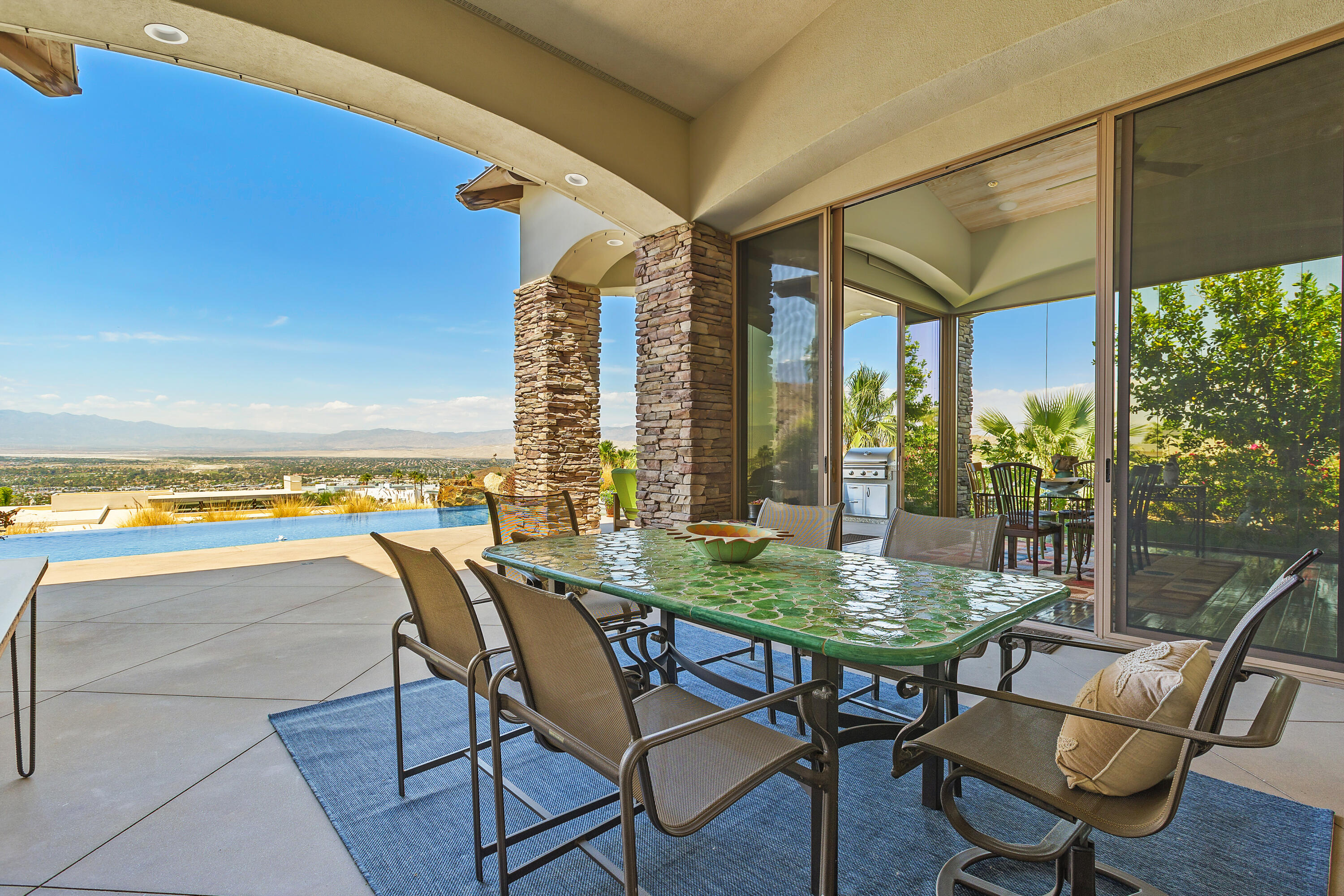 One of the best views in the entire Coachella Valley! Perched on an elevated corner lot within Rancho Mirage's exclusive Mirada Estates, this architecturally distinct residence captures the essence of refined desert living. With expansive walls of glass, the home showcases spectacular mountain and city light views from every room, merging indoor and outdoor spaces in perfect harmony. Privacy is paramount in this 3,964 sq. ft. retreat, which features three luxurious en-suite bedrooms, including a primary suite with steam shower and heated floor, and a private-entry casita. A Murphy bed in the den/office increases the sleeping capacity to 8+. Elegant design elements, from quartzite stone finishes to the custom built-in storage, underscore the meticulous craftsmanship throughout. At the heart of the home, a recently remodeled gourmet kitchen with Wolf appliances, Subzero refrigeration, and custom quartzite counters enhances the home's unique architectural flair. The outdoor spaces, featuring an infinity-edge saltwater pool, cooling misters lining the patios to cool down hot summer days, Burning Bush fire pit, and expansive patio areas, provide an ideal setting for both relaxation and entertaining. The home is equipped with a wholly owned 52 panel rooftop solar system and Tesla Power Walls, and a whole-house music system, marrying high-end technology with environmental sustainability. Residents enjoy exclusive access to the Ritz-Carlton's Mirada Preferred Access Program, which includes discounts on dining, spa services, and fitness facilities, as well as special room rates and privileged access to resort amenities. This remarkable property is an ideal choice for those seeking an elevated lifestyle with privacy, unparalleled views, and access to world-class amenities.Interested in this Listing?